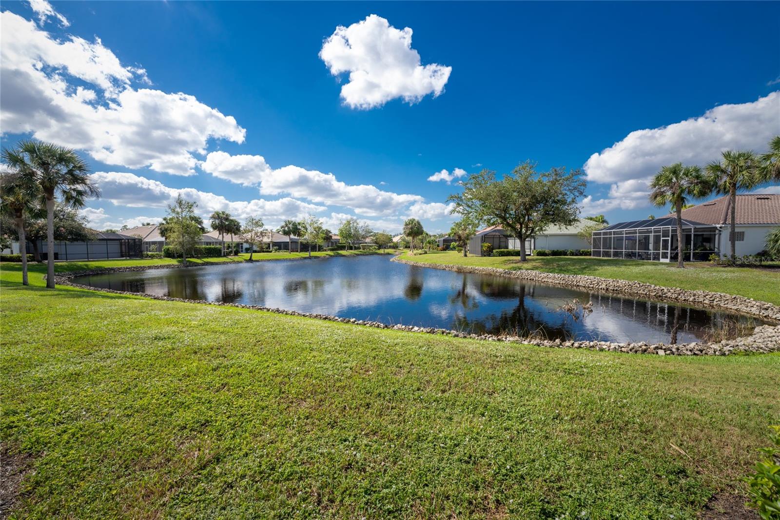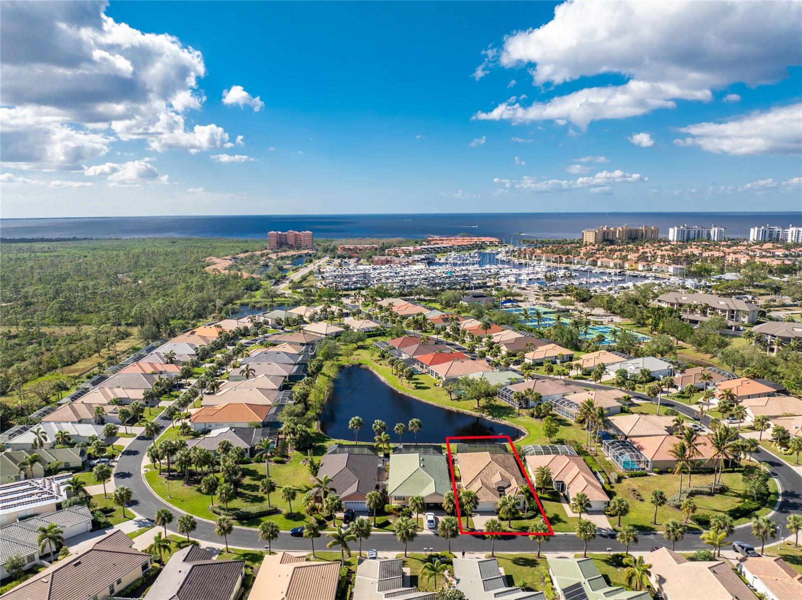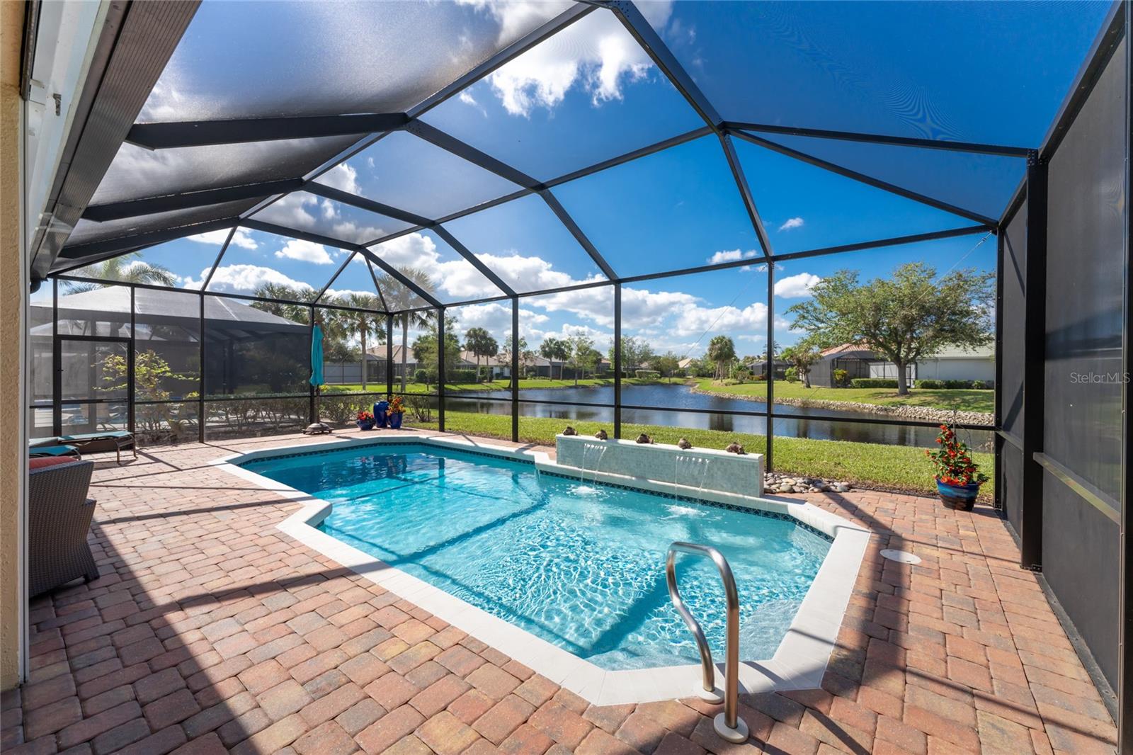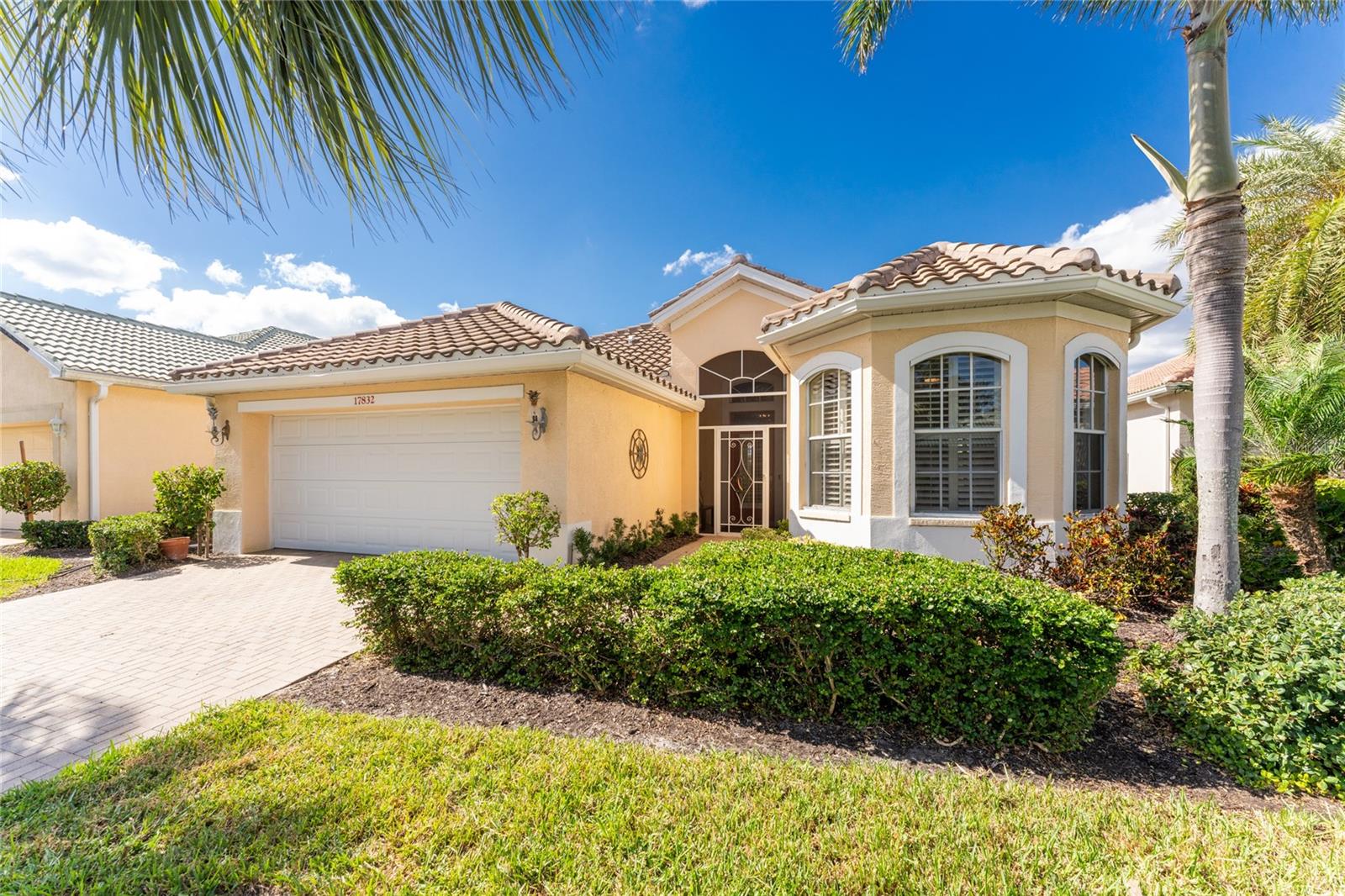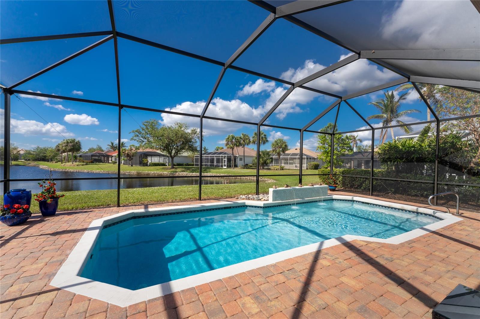 No detail has been overlooked in this brilliantly updated lakefront home, located in the coveted neighborhood of Courtside Landings in Burnt Store Marina. Nestled in the heart of the community, this home is just a short walk to Cass Cay waterfront restaurant, the Trading Post, the south marina basin, fitness, pickleball and tennis. As you approach this charming retreat, you are sure to appreciate the paver drive, pleasing landscape and the handsome new roof - installed in 2023. This stunning Lacoste floor plan is being offered partially furnished, so you can move right in and begin living the vibrant Florida lifestyle you’ve been dreaming of! You are sure to be impressed with the striking architecture from the moment you enter the inviting foyer. At the heart of the home, the freshly renovated kitchen showcases impeccable craftsmanship by Cornerstone Builders. Extensive white shaker cabinetry is adorned with Taj Mahal quartzite countertops, zellige tile backsplash, and sleek GE Café stainless steel appliances, including a double oven and induction cooktop with stainless hood…a true chef’s delight! Crisp white cabinetry is accentuated by decorative glass insets, pull out shelving and a handy touch faucet that add sophistication to this stylish space. The main living area exudes refinement, featuring crown molding, diamond-set tile flooring, custom drapery, and plenty of natural light through three sets of sliding doors. Step outside to the expansive paver pool deck, where a large pool with double waterfall, promises endless relaxation and entertainment, all set against the serene backdrop of the lake. The home’s thoughtful layout includes two bedrooms plus a den, providing flexible space for guests or a home office. Your guests will be delighted to stay in the attractive guest suite which enjoys abundant sunshine, laminate flooring and a tasteful bath updated by Cornerstone. The spacious primary suite is a private retreat with tasteful tray ceiling, laminate flooring and pool and pond views framed by sliding doors that lead out to the lanai. Two closets flank the hall leading to the luxurious en-suite bath with dual sinks and a spacious tiled walk-in shower. Full hurricane protection provides peace of mind, including convenient motorized storm screens on the lanai, and an upgraded hurricane grade garage door. Step outside and enjoy easy access to the community’s friendly social and recreational culture. The gated community of Burnt Store Marina boasts a 27-hole golf course, clubhouse with tiki bar, two on-site restaurants, tennis, pickleball, fitness center, and lots of great people! Come for the lifestyle…stay for life!