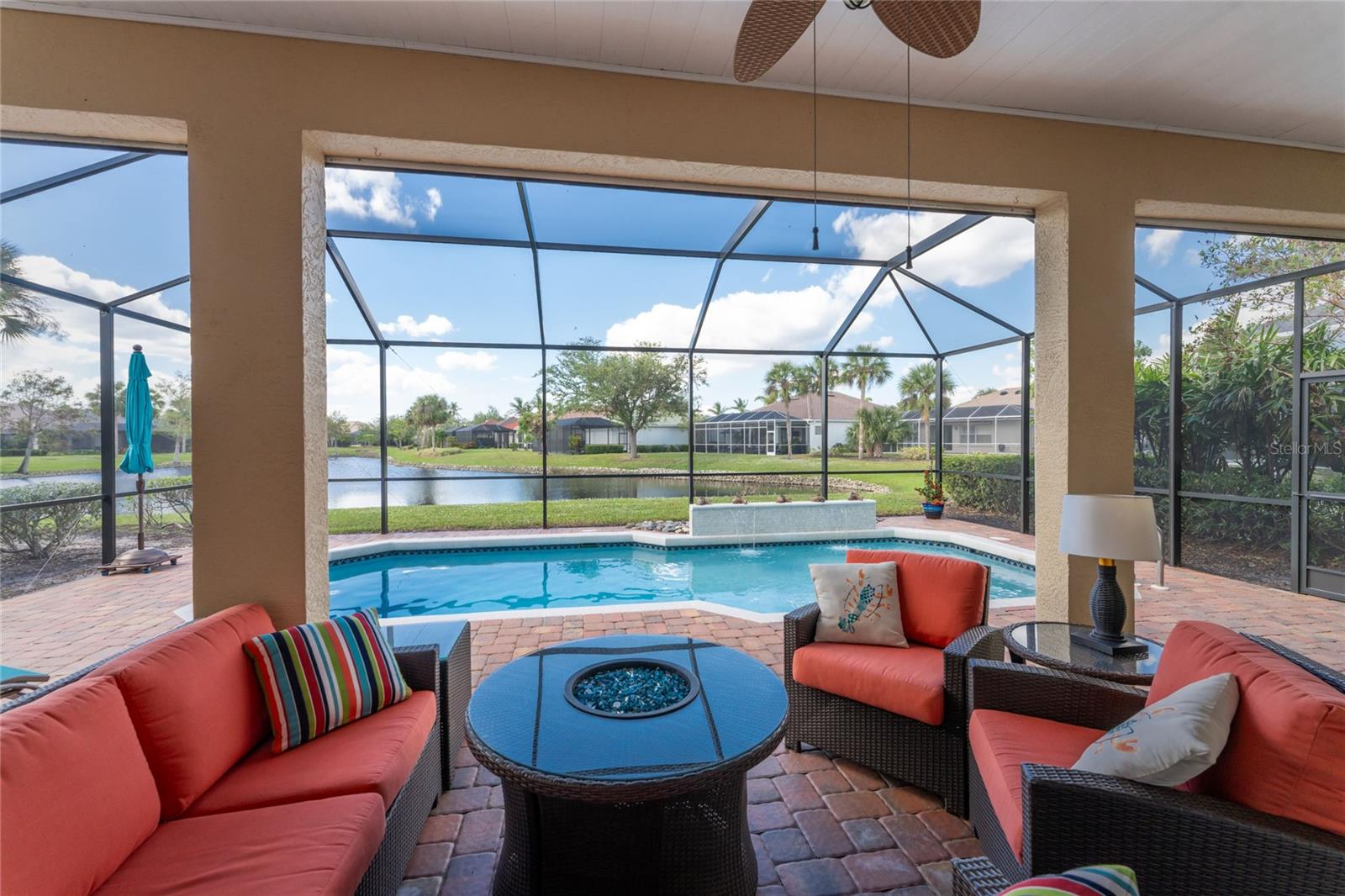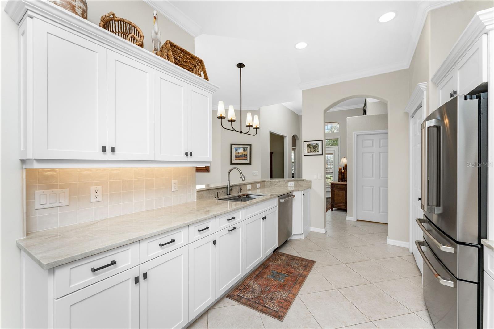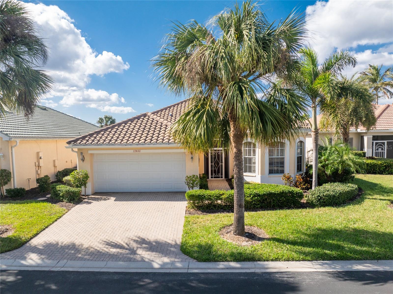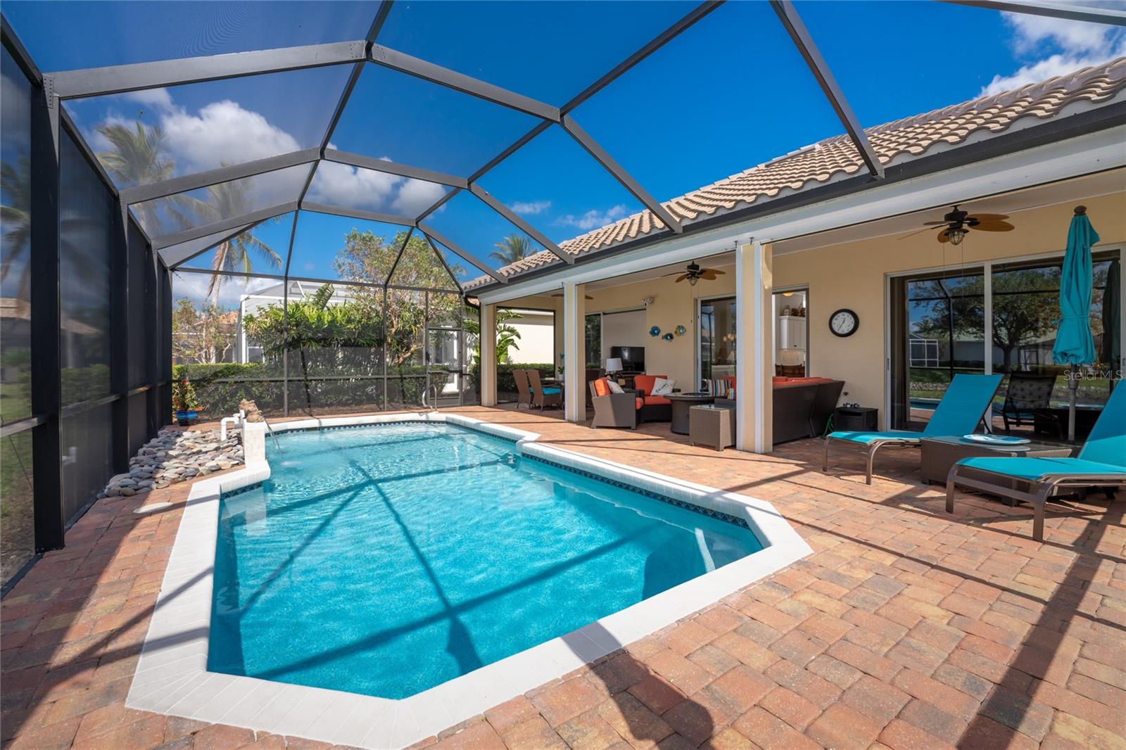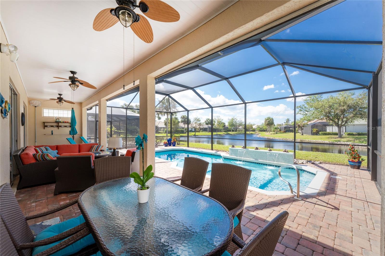 No detail has been overlooked in this brilliantly updated lakefront home, located in the coveted neighborhood of Courtside Landings in Burnt Store Marina. Nestled in the heart of the community, this home is just a short walk to Cass Cay waterfront restaurant, the Trading Post, the south marina basin, fitness, pickleball and tennis. As you approach this charming retreat, you are sure to appreciate the paver drive, pleasing landscape and the handsome new roof - installed in 2023. This stunning Lacoste floor plan is being offered partially furnished, so you can move right in and begin living the vibrant Florida lifestyle you’ve been dreaming of! You are sure to be impressed with the striking architecture from the moment you enter the inviting foyer. At the heart of the home, the freshly renovated kitchen showcases impeccable craftsmanship by Cornerstone Builders. Extensive white shaker cabinetry is adorned with Taj Mahal quartzite countertops, zellige tile backsplash, and sleek GE Café stainless steel appliances, including a double oven and induction cooktop with stainless hood…a true chef’s delight! Crisp white cabinetry is accentuated by decorative glass insets, pull out shelving and a handy touch faucet that add sophistication to this stylish space. The main living area exudes refinement, featuring crown molding, diamond-set tile flooring, custom drapery, and plenty of natural light through three sets of sliding doors. Step outside to the expansive paver pool deck, where a large pool with double waterfall, promises endless relaxation and entertainment, all set against the serene backdrop of the lake. The home’s thoughtful layout includes two bedrooms plus a den, providing flexible space for guests or a home office. Your guests will be delighted to stay in the attractive guest suite which enjoys abundant sunshine, laminate flooring and a tasteful bath updated by Cornerstone. The spacious primary suite is a private retreat with tasteful tray ceiling, laminate flooring and pool and pond views framed by sliding doors that lead out to the lanai. Two closets flank the hall leading to the luxurious en-suite bath with dual sinks and a spacious tiled walk-in shower. Full hurricane protection provides peace of mind, including convenient motorized storm screens on the lanai, and an upgraded hurricane grade garage door. Step outside and enjoy easy access to the community’s friendly social and recreational culture. The gated community of Burnt Store Marina boasts a 27-hole golf course, clubhouse with tiki bar, two on-site restaurants, tennis, pickleball, fitness center, and lots of great people! Come for the lifestyle…stay for life!