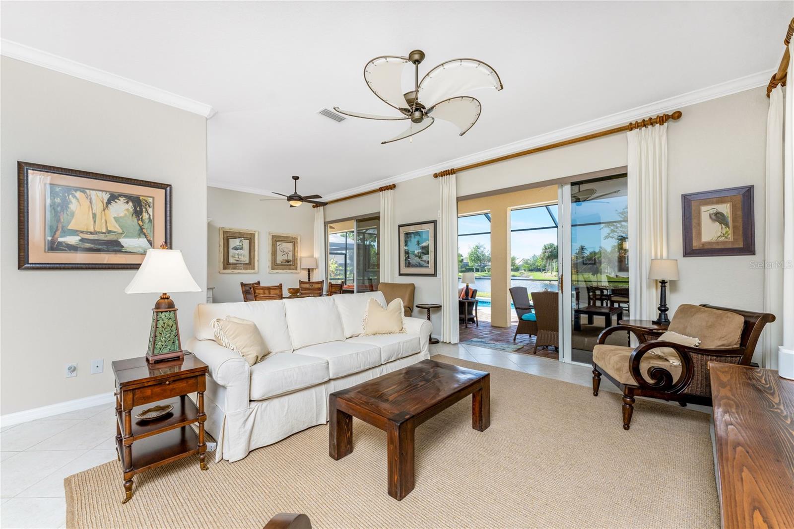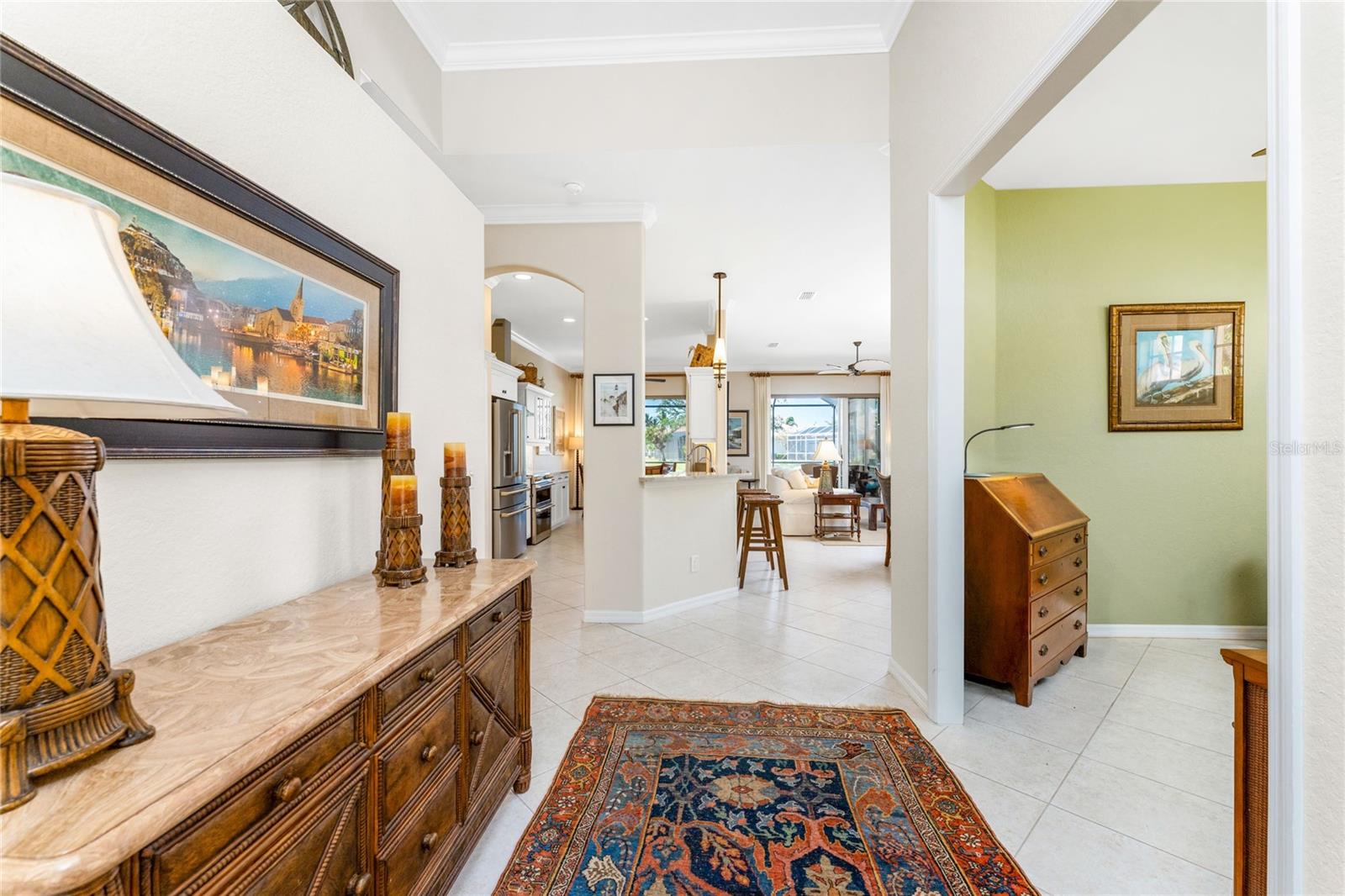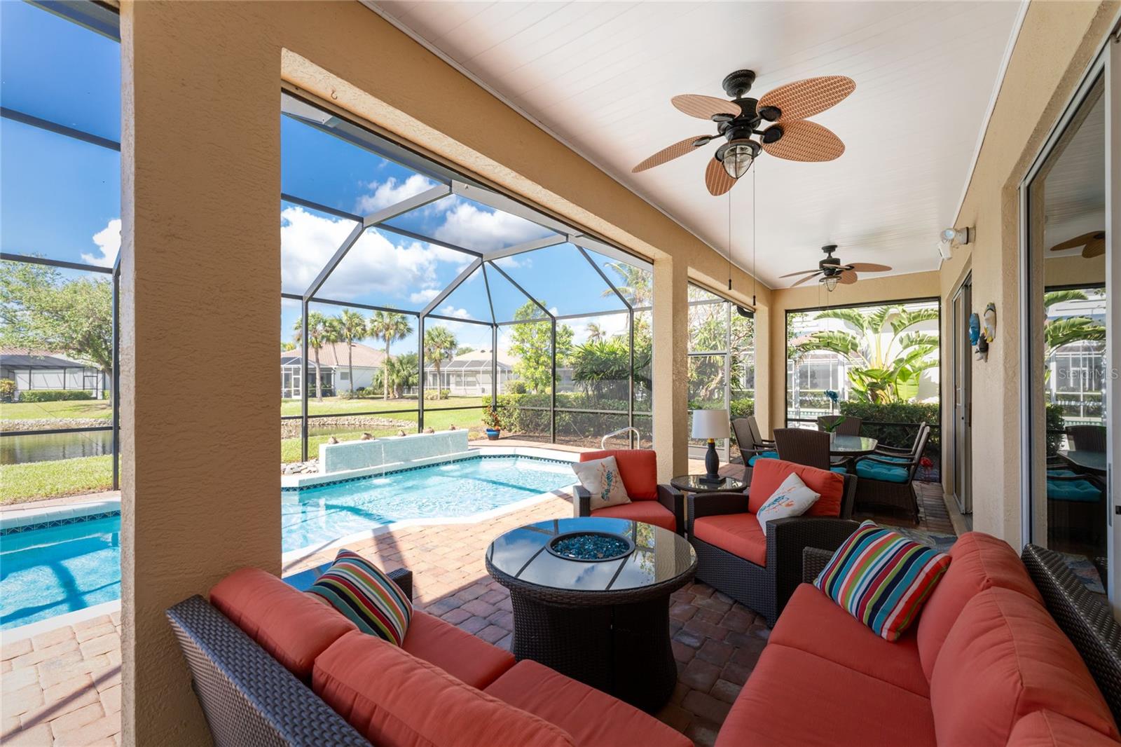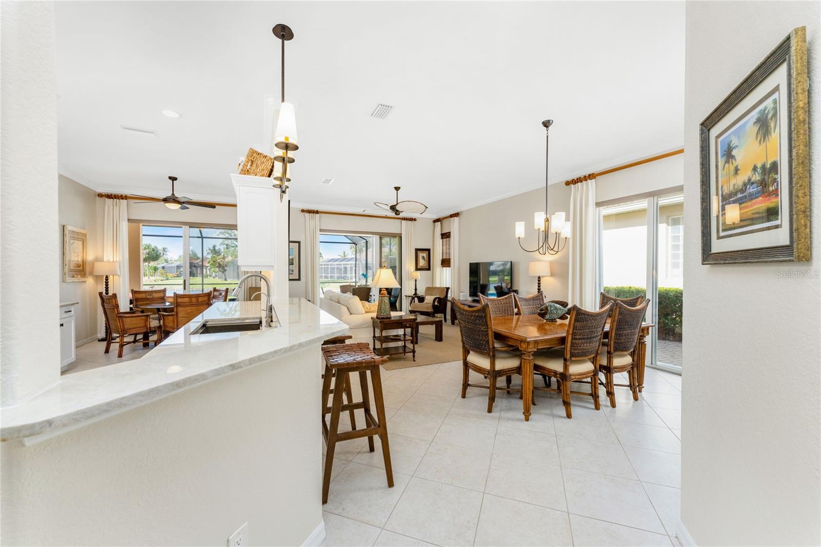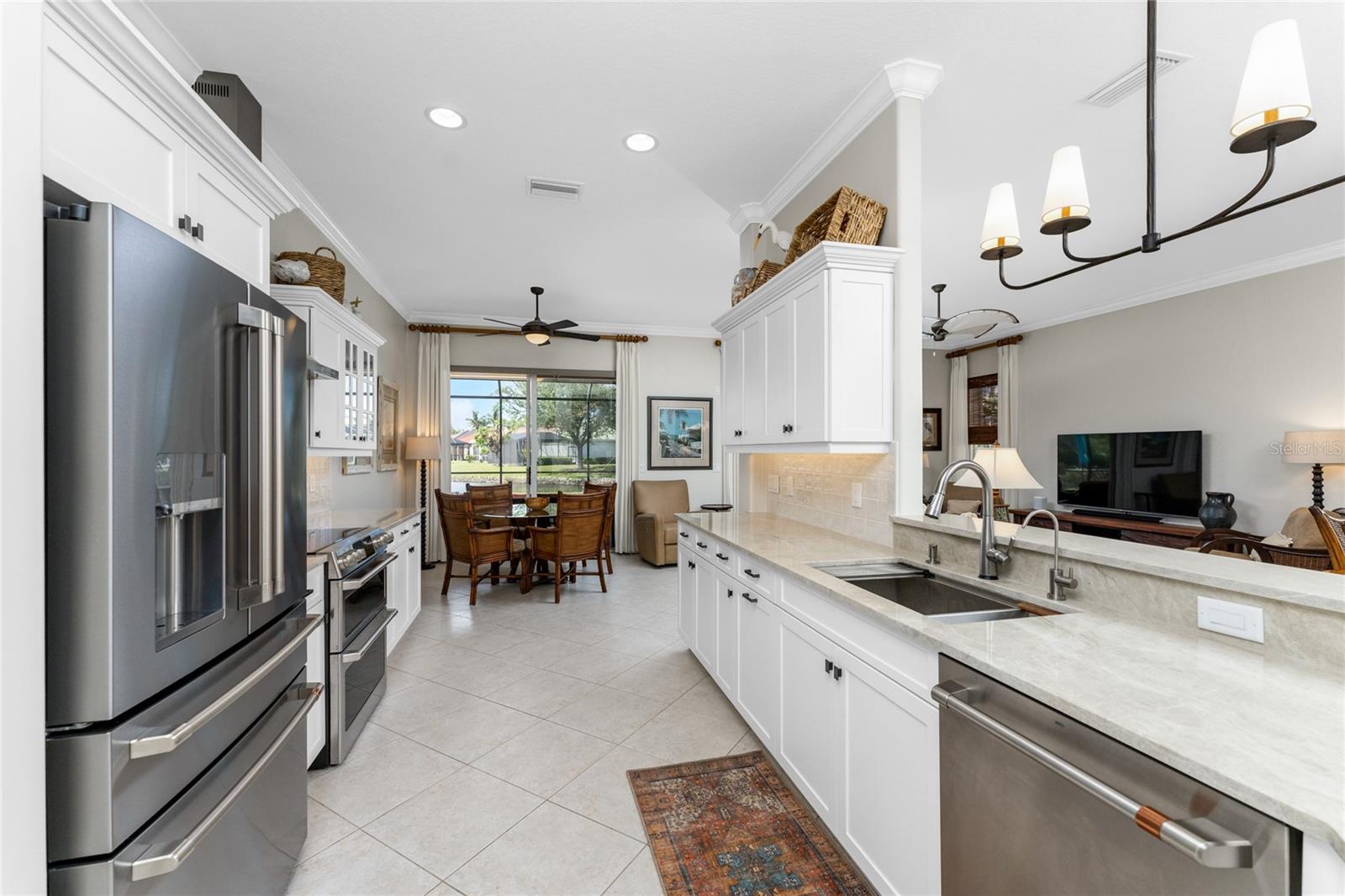 No detail has been overlooked in this brilliantly updated lakefront home, located in the coveted neighborhood of Courtside Landings in Burnt Store Marina. Nestled in the heart of the community, this home is just a short walk to Cass Cay waterfront restaurant, the Trading Post, the south marina basin, fitness, pickleball and tennis. As you approach this charming retreat, you are sure to appreciate the paver drive, pleasing landscape and the handsome new roof - installed in 2023. This stunning Lacoste floor plan is being offered partially furnished, so you can move right in and begin living the vibrant Florida lifestyle you’ve been dreaming of! You are sure to be impressed with the striking architecture from the moment you enter the inviting foyer. At the heart of the home, the freshly renovated kitchen showcases impeccable craftsmanship by Cornerstone Builders. Extensive white shaker cabinetry is adorned with Taj Mahal quartzite countertops, zellige tile backsplash, and sleek GE Café stainless steel appliances, including a double oven and induction cooktop with stainless hood…a true chef’s delight! Crisp white cabinetry is accentuated by decorative glass insets, pull out shelving and a handy touch faucet that add sophistication to this stylish space. The main living area exudes refinement, featuring crown molding, diamond-set tile flooring, custom drapery, and plenty of natural light through three sets of sliding doors. Step outside to the expansive paver pool deck, where a large pool with double waterfall, promises endless relaxation and entertainment, all set against the serene backdrop of the lake. The home’s thoughtful layout includes two bedrooms plus a den, providing flexible space for guests or a home office. Your guests will be delighted to stay in the attractive guest suite which enjoys abundant sunshine, laminate flooring and a tasteful bath updated by Cornerstone. The spacious primary suite is a private retreat with tasteful tray ceiling, laminate flooring and pool and pond views framed by sliding doors that lead out to the lanai. Two closets flank the hall leading to the luxurious en-suite bath with dual sinks and a spacious tiled walk-in shower. Full hurricane protection provides peace of mind, including convenient motorized storm screens on the lanai, and an upgraded hurricane grade garage door. Step outside and enjoy easy access to the community’s friendly social and recreational culture. The gated community of Burnt Store Marina boasts a 27-hole golf course, clubhouse with tiki bar, two on-site restaurants, tennis, pickleball, fitness center, and lots of great people! Come for the lifestyle…stay for life!