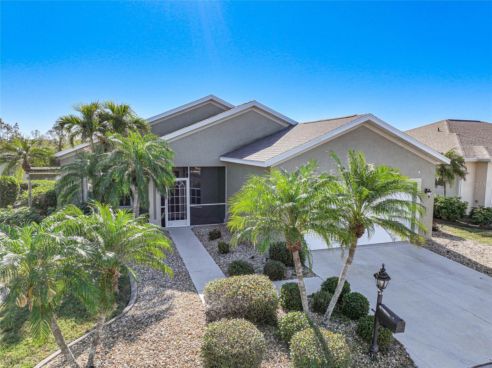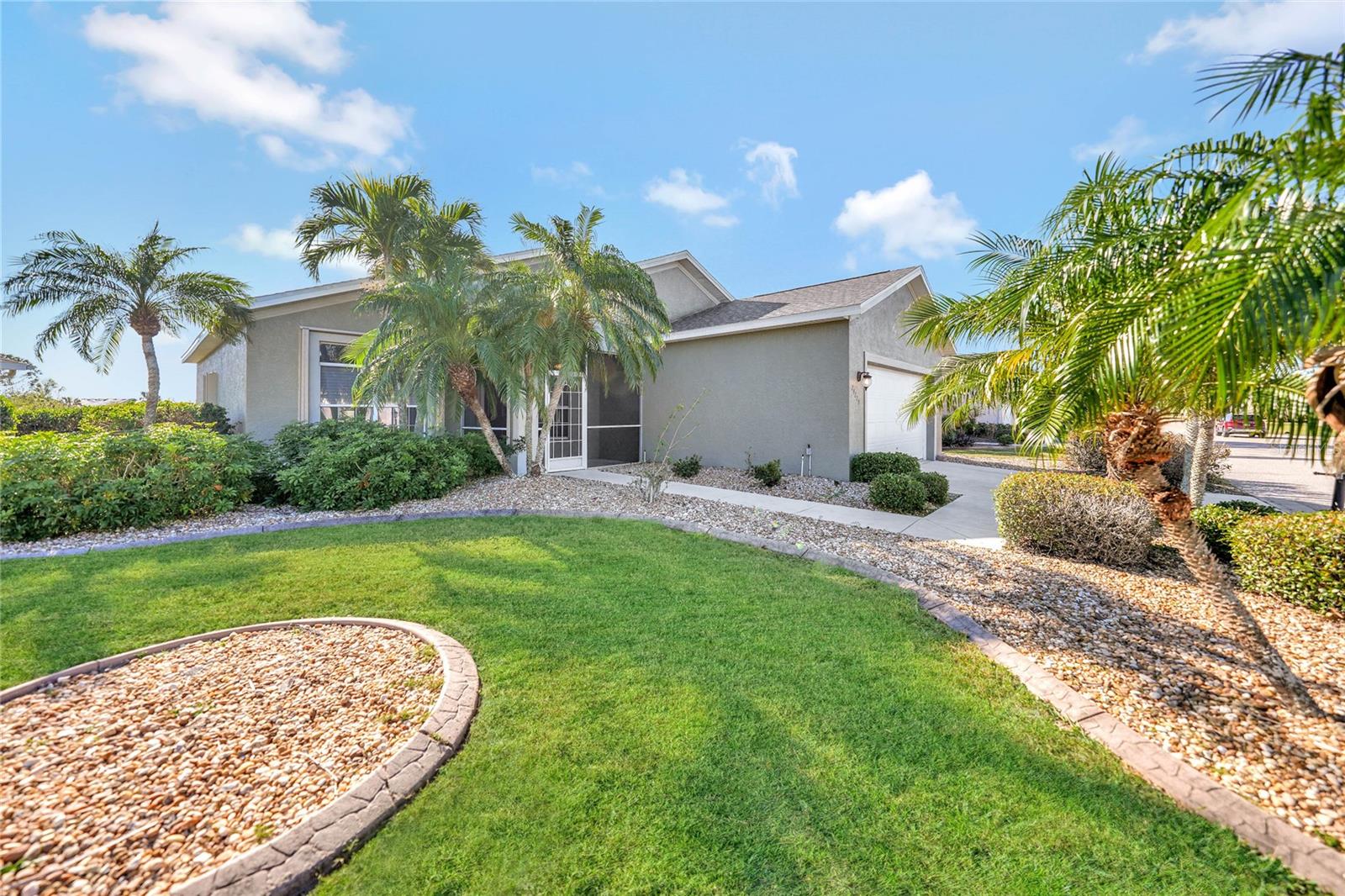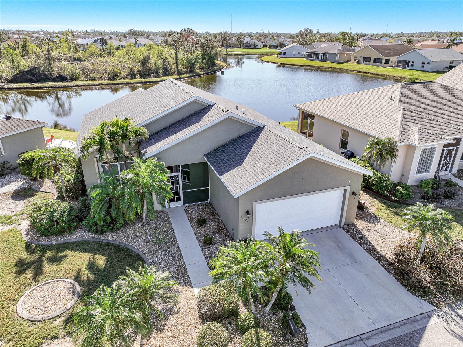 GATED 55+ Golf community home with a lake view!! This beauty is rare.... Lush landscaping, screened front entry, accordion shutters, tile and wood laminate throughout, spacious living room with a water view, sliding door, kitchen with eating nook, breakfast bar, wood cabinets, granite counters, formal dining room, master suite with water view, dual sinks, walk in shower, shower, guest bedroom next to a full bathroom with tub, washer and dryer closet, lanai, garage, storage room. This home has been kept in great condition. Roof was replaced April of 2022. Kings Gate is a fantastic community with tons of features and activities like swimming in the Olympic size swimming pool, relaxing in the spa, tennis courts, pickle ball, bocce, horseshoes and shuffleboard. Clubhouse is open for bingo, bridge, poker, playing pool and several other games. The Lions Den restaurant within the community serves stellar food and great drinks from the bar. Local restaurants, grocery shopping and other shops are a short golf cart ride away without being on any main roads. If you desire to travel outside the community you will find its a quick commute to downtown Punta Gorda, Fisherman's Village, Lashley park, mall, shopping, dining, beaches and only minutes to I-75.