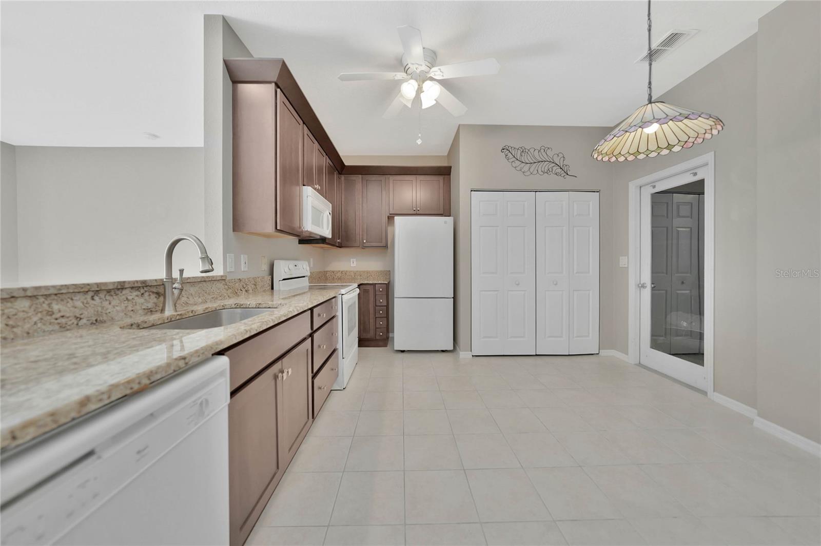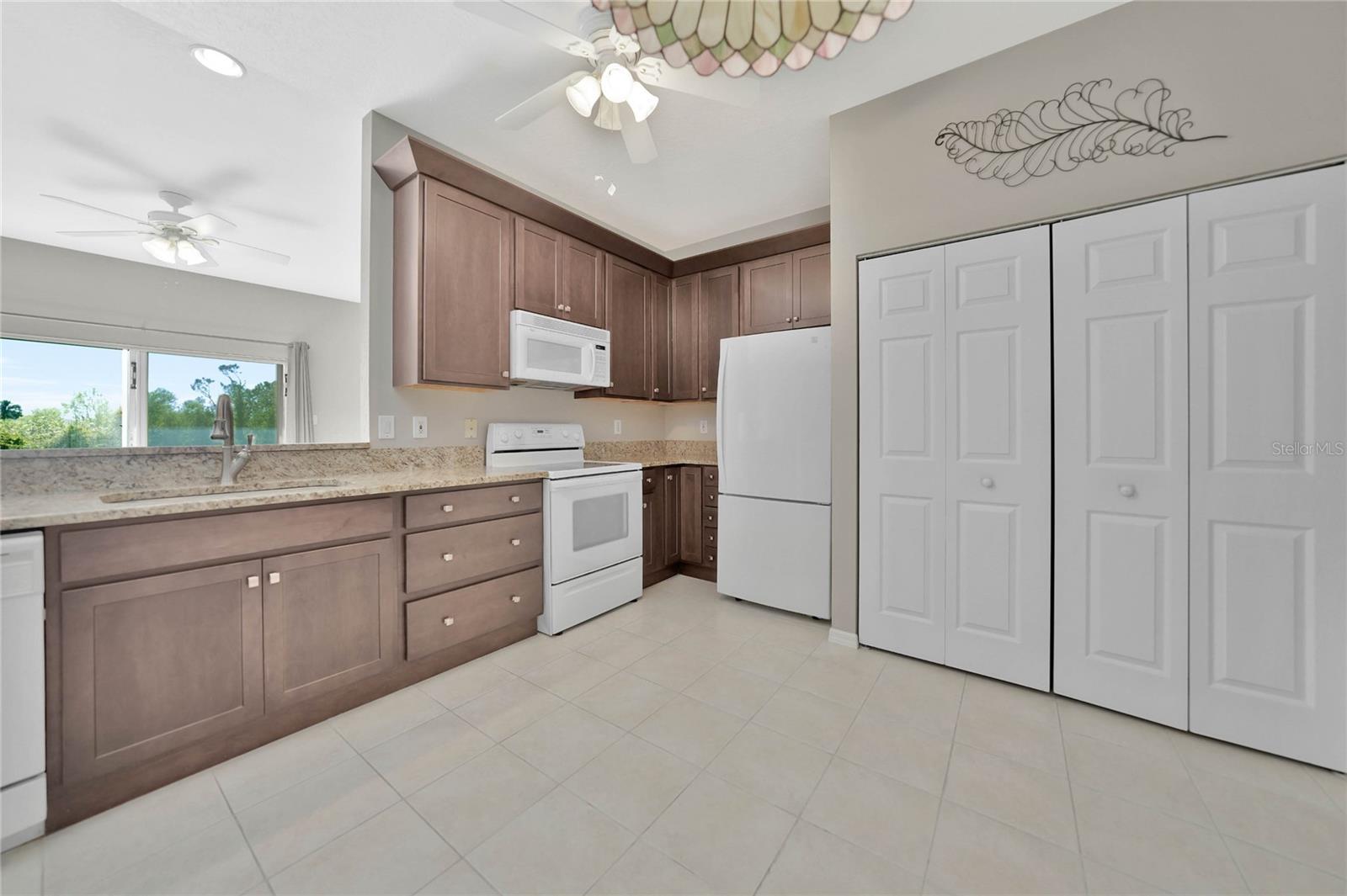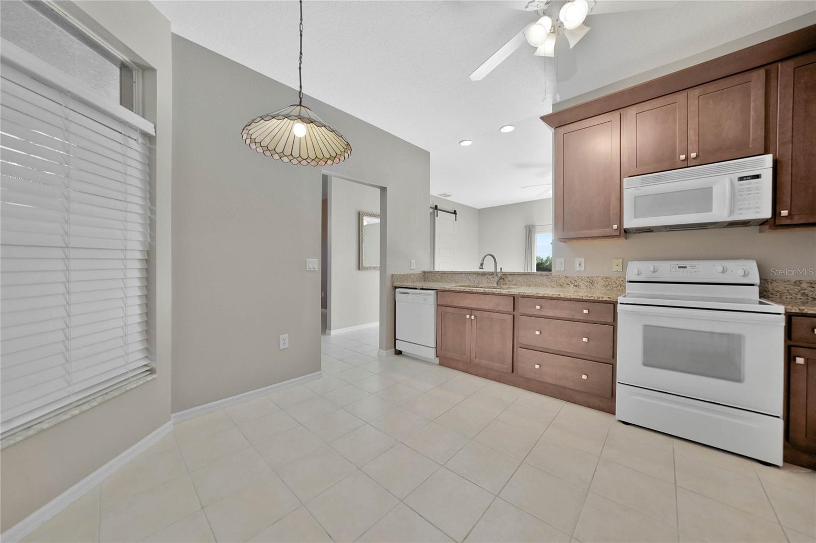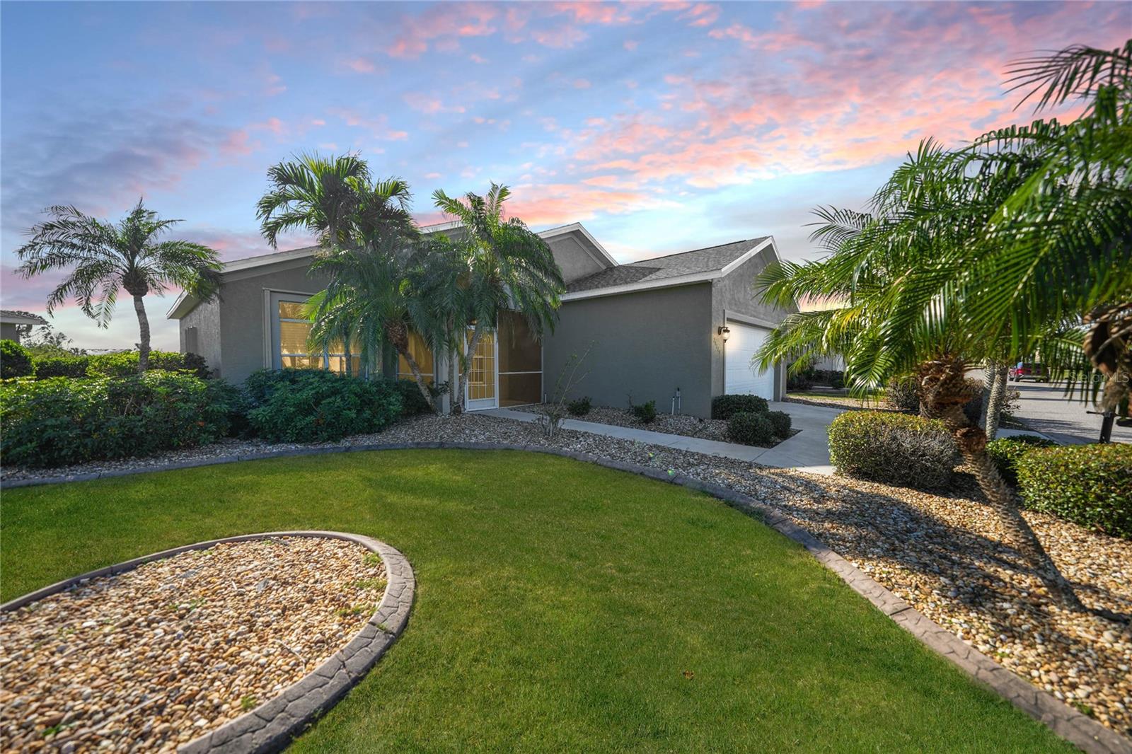 GATED 55+ Golf community home with a lake view!! This beauty is rare.... Lush landscaping, screened front entry, accordion shutters, tile and wood laminate throughout, spacious living room with a water view, sliding door, kitchen with eating nook, breakfast bar, wood cabinets, granite counters, formal dining room, master suite with water view, dual sinks, walk in shower, shower, guest bedroom next to a full bathroom with tub, washer and dryer closet, lanai, garage, storage room. This home has been kept in great condition. Roof was replaced April of 2022. Kings Gate is a fantastic community with tons of features and activities like swimming in the Olympic size swimming pool, relaxing in the spa, tennis courts, pickle ball, bocce, horseshoes and shuffleboard. Clubhouse is open for bingo, bridge, poker, playing pool and several other games. The Lions Den restaurant within the community serves stellar food and great drinks from the bar. Local restaurants, grocery shopping and other shops are a short golf cart ride away without being on any main roads. If you desire to travel outside the community you will find its a quick commute to downtown Punta Gorda, Fisherman's Village, Lashley park, mall, shopping, dining, beaches and only minutes to I-75.