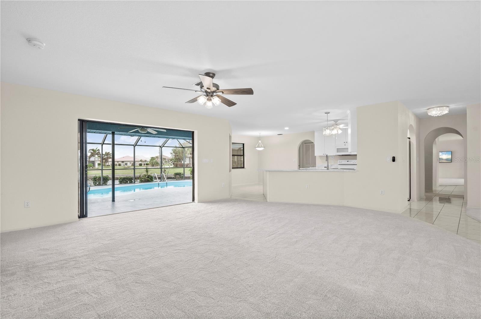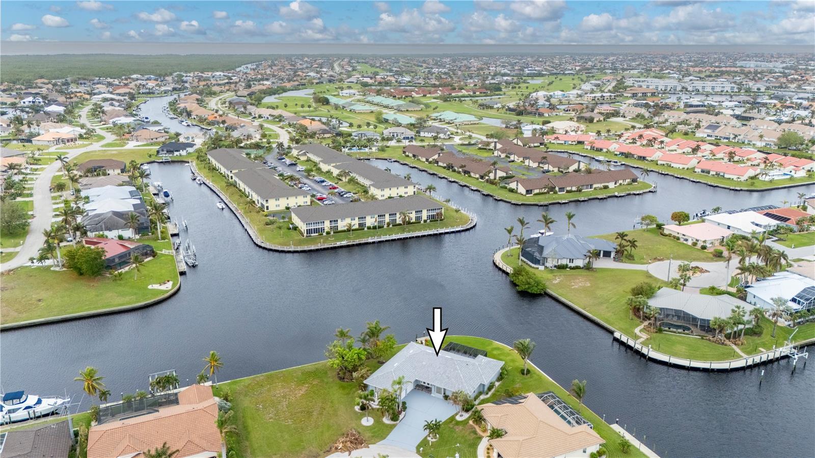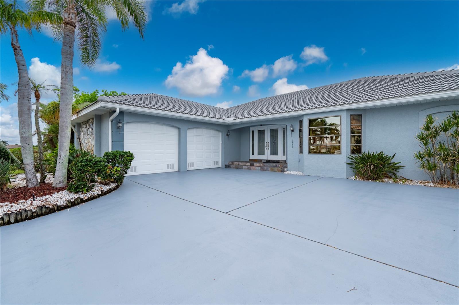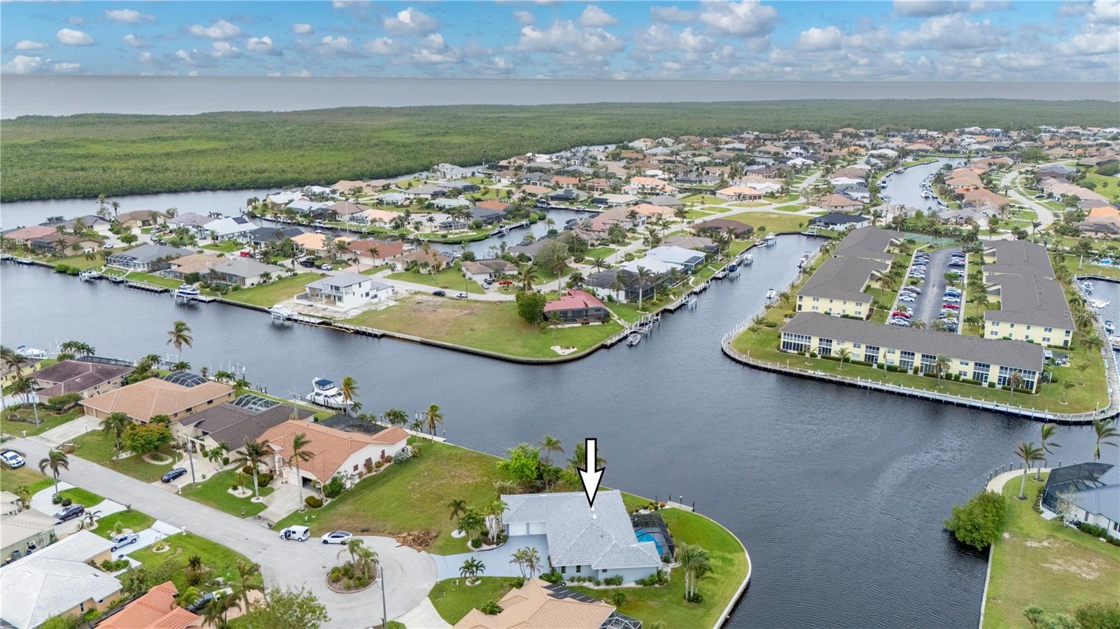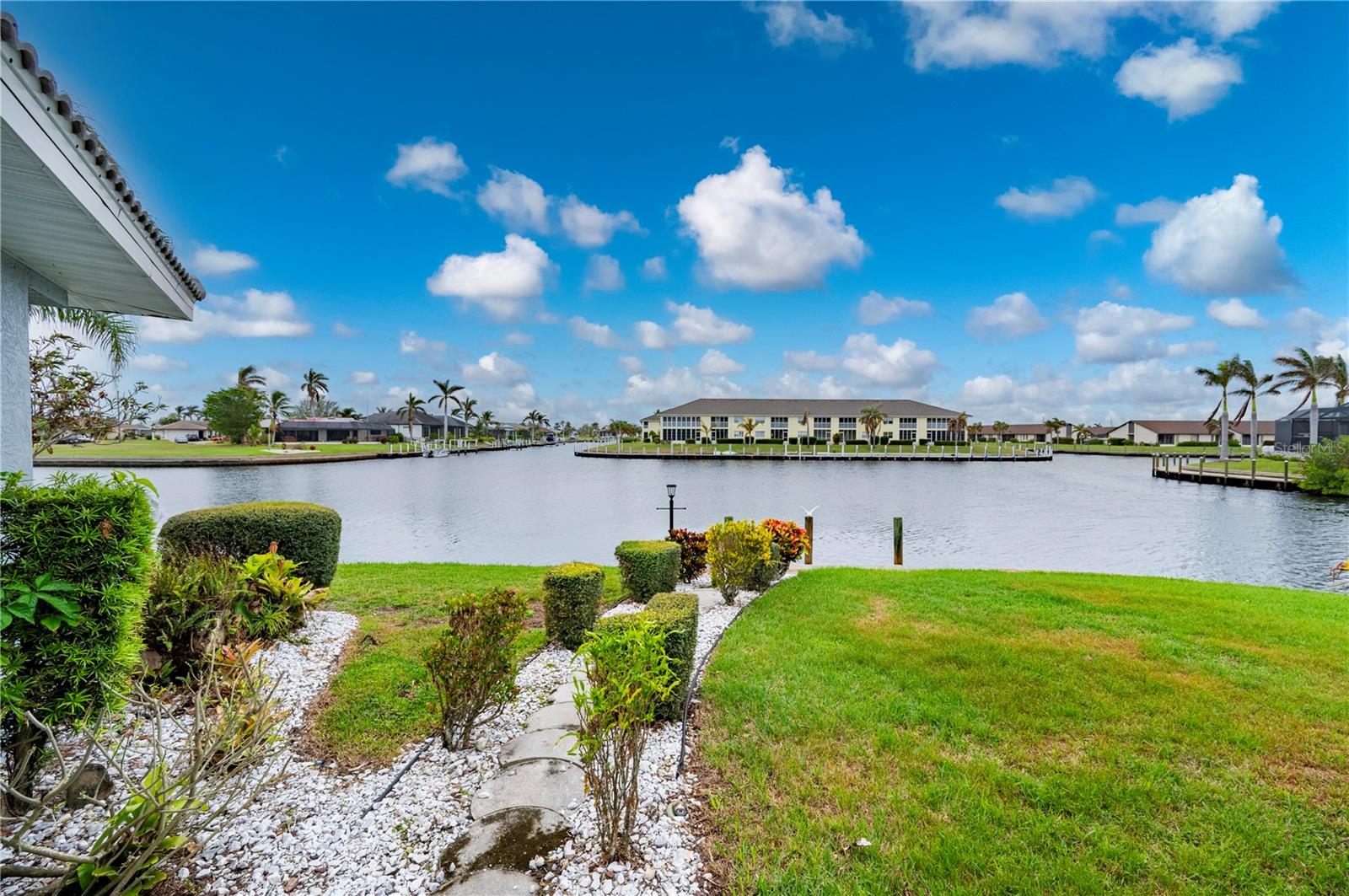 PRIME TIP LOT IN PUNTA GORDA ISLES! This single-owner 3 bedroom, 2 bath, 2-car garage waterfront pool home is a true gem with quick sailboat access to Charlotte Harbor leading to the Gulf of Mexico via Buckley’s Pass. This meticulously maintained cul-de-sac home boasts 173 ft of waterfrontage, large deep turning basin, concrete dock with electric and gorgeous intersecting canal views. Step inside through the stainless double door entry and be greeted by an open floor plan bathed in neutral tones. The living room features a pocket slider that opens up to the lanai, seamlessly blending indoor and outdoor living. The formal dining room, complete with a charming bay window, is perfect for hosting dinner parties. The recently updated kitchen is a chef's delight featuring granite countertops, new appliances (except the dishwasher), a large breakfast bar, and a movable center island. Enjoy casual meals in the cozy dining area overlooking the pool. Retreat to the generous primary suite, which offers a private slider to the lanai, walk-in closet, and private bath with dual sinks, garden tub, and walk-in shower. The split floor plan ensures privacy for guests, with two nicely sized bedrooms, each with walk-in closets, and a remodeled bath featuring dual sinks and a walk-in shower. The third bedroom even has direct access to the pool! The outdoor entertaining area is a true highlight, featuring a covered lanai and a screened free-form fiberglass pool, perfect for soaking up the Florida sun and enjoying amazing sunsets. Recent updates include brand new roof, a/c unit new in 2022, new ceiling fans, lighting fixtures, attic insulation, and fresh carpet in the living room. The tropical landscaping, walkway to the dock, and side-facing 2-car garage add to the home's appeal. Additional features include an irrigation system, an interior laundry room with sink, storage space and newer washer/dryer, and included items like a large screen TV, foyer mirror, and two cabinets in the garage. Nestled in a vibrant golf and boating community, you're just minutes away from St. Andrews South Golf Club, the Yacht Club, Fishermen's Village, and the historic downtown area of Punta Gorda. Enjoy world-class fishing, boating, fine dining, and beautiful parks, with easy access to the SWFL gulf beaches. Whether you're looking for a snowbird retreat or a permanent home, this fabulous property is ready for you. Schedule your private showing today!