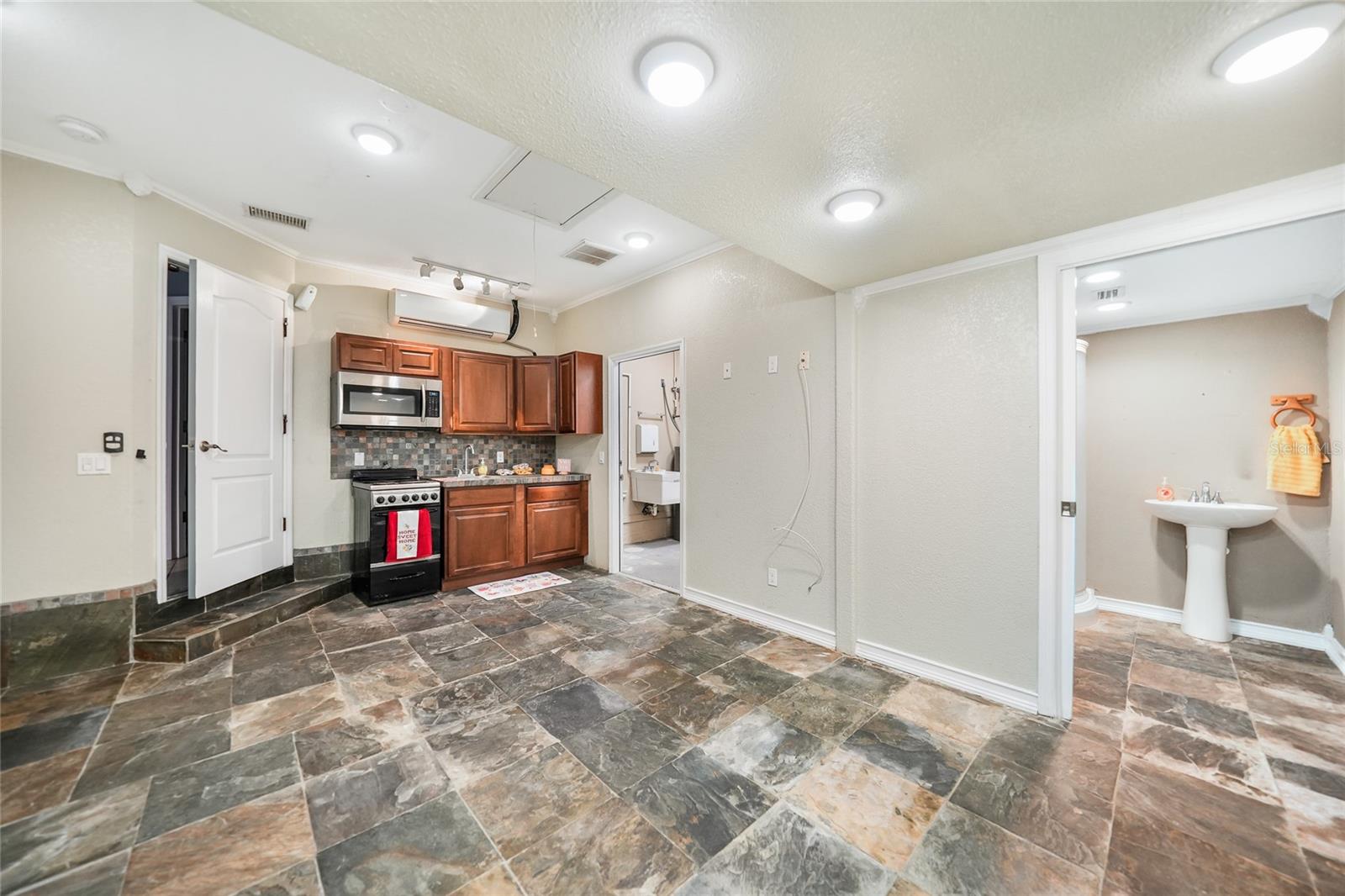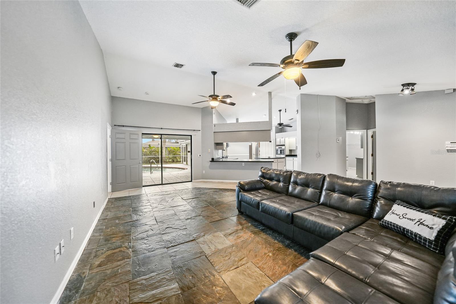 Located in the highly sought-after, deed-restricted community of Burnt Store Meadows, this home offers a perfect blend of modern comfort and spacious living. Featuring 4 bedrooms, 3 bathrooms, and a garage converted into a private in-law suite with full bathroom, this home provides ample space for family and guests to relax and create lasting memories. As you enter, you’ll be greeted by an open, split floor plan designed to offer both privacy and togetherness. High ceilings throughout enhance the sense of space, allowing natural light to fill the rooms and create a warm, inviting atmosphere. The home features easy-to-maintain tiled floors throughout, adding both style and convenience. The heart of the home is the thoughtfully designed kitchen, which features stainless steel appliances that include double built-in ovens, a central prep island, a cooktop with an overhead vent, walk-in pantry closet and an abundance of custom hardwood soft-close cabinetries and drawers. Overlooking the living and dining areas, this kitchen layout is perfect for entertaining or keeping an eye on the family while preparing meals. Sliding doors from the living and dining areas open to the lanai/pool area, extending your living space and offering an ideal spot for outdoor relaxation. Relax and unwind in the serene primary suite, featuring private access to the lanai and pool, spacious walk-in closets, and ample room for a king-size bed along with a cozy sitting area. The attached en-suite bath includes a walk-in shower with beautiful tile floor to ceiling and a dual sink vanity, offering both comfort and functionality. The additional bedrooms, located on the opposite side of the home, are thoughtfully designed with walk-in closets and are conveniently served by two guest bathrooms. One bathroom features a walk-in shower, while the other offers a doorless walk-in shower with a built-in bench and tile throughout, ensuring convenience for both residents and guests. For those who love outdoor living, the expanded lanai with enclosure provides a peaceful retreat, allowing you to enjoy the beautiful Florida weather without any pesky insects. The lanai also features a sparkling swimming pool, transforming your backyard into a private oasis perfect for relaxation and entertaining. For added convenience, the home includes an attached in-law suite, situated in the converted garage. This private retreat is equipped with a bedroom, bathroom, and kitchenette, offering comfort and privacy for guests or relatives. Other highlights of the home include a brand new roof (installed in 2023) and hurricane shutters for added peace of mind. Located near the Punta Gorda airport and I-75, this home has easy access to nearby shopping, dining, and everything the area has to offer. Come see all that this incredible property has to offer!