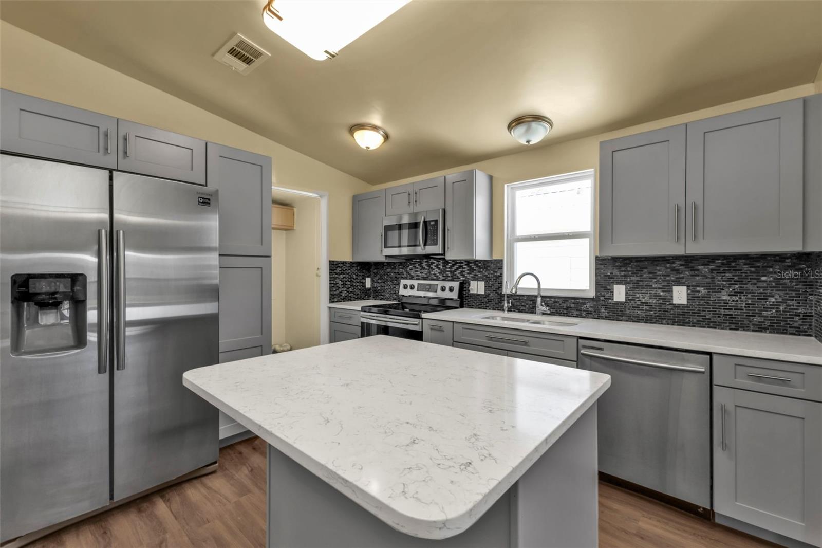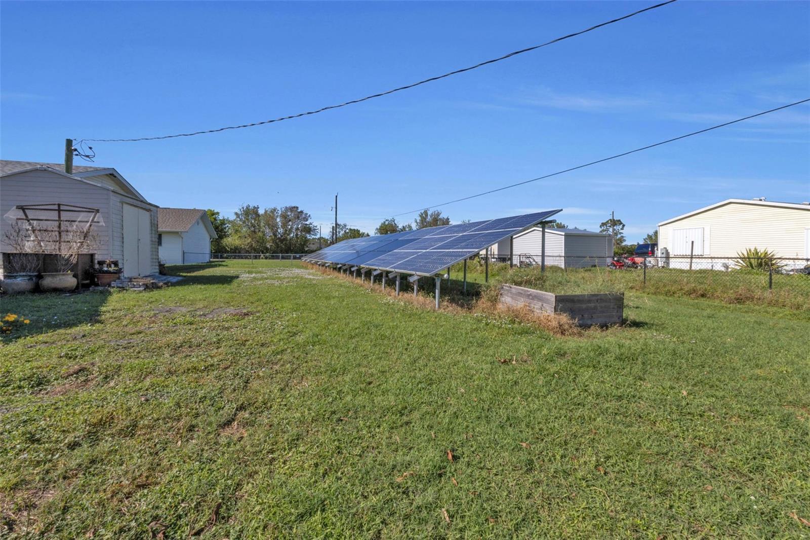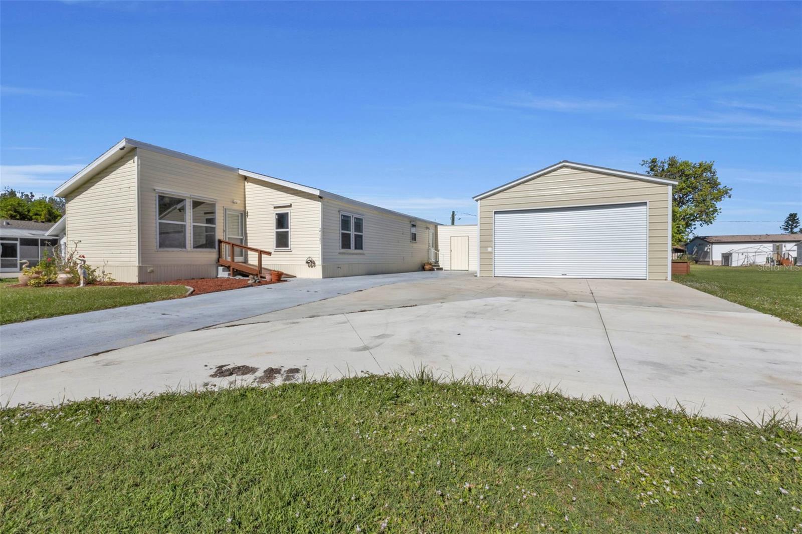 Wonderful home in Punta Gorda! This 2-bedroom, 2 bath home features newer flooring, updated kitchen cabinets, and appliances. A great room encompasses Dining room and living room. A large room at the front, that owner used as office, is a flexible space for den or even a guest room! New roof and AC installed in 2022. At the back of the property, a $$$ saving solar array! Seller reports that his 2024 average monthly electricity bills as low as $55!! A large detached garage and 2 sheds give plenty of storage space. NO HOA FEE! The spacious yard is ready for all your outdoor activities. Conveniently located near I-75 and 10 minutes from PG airport for quick access to all of the fun of Florida! All measurements and dimensions are subject to verification by buyer and buyer representatives.
