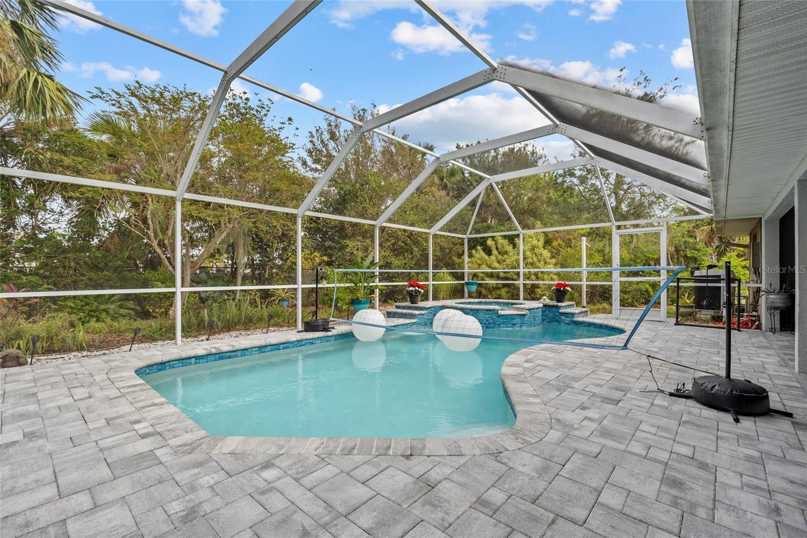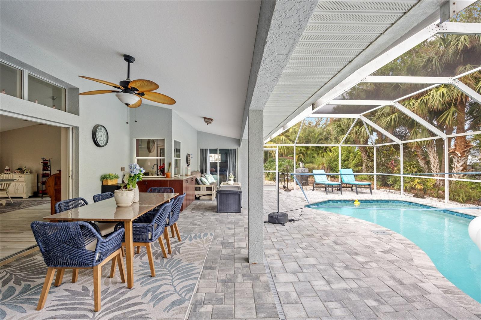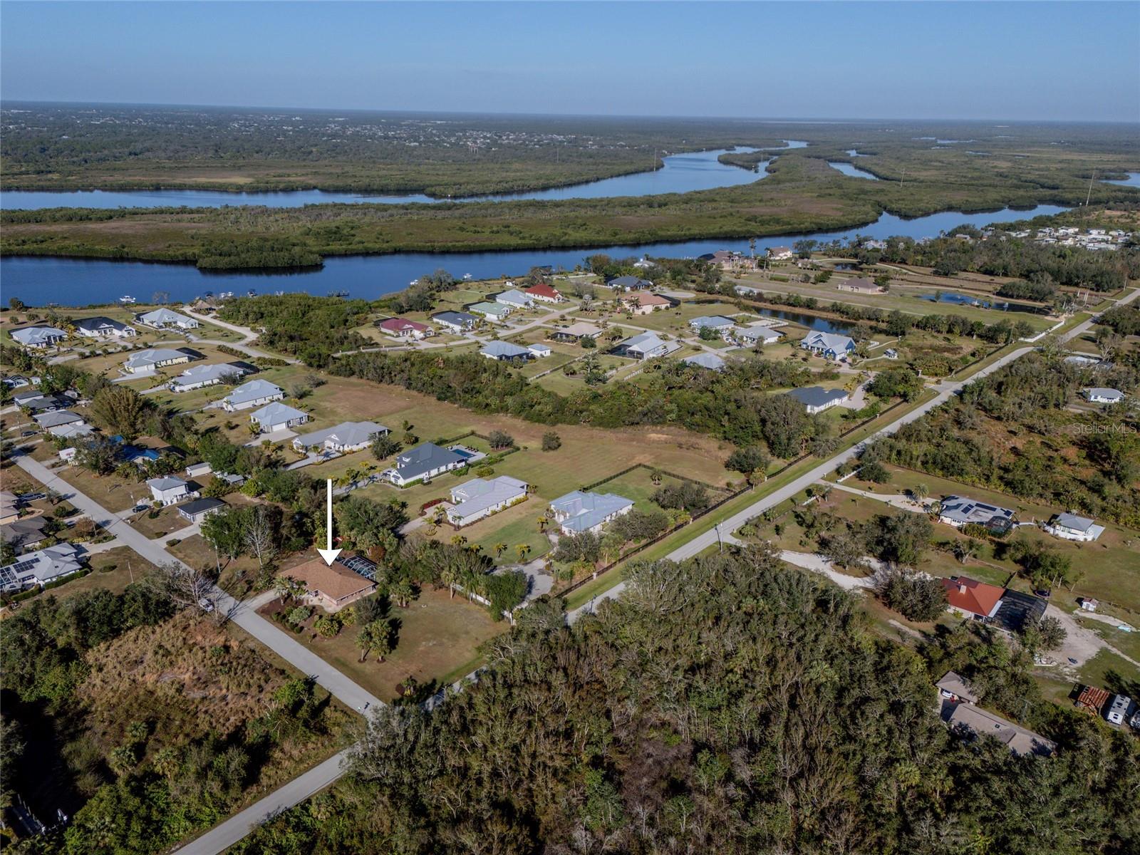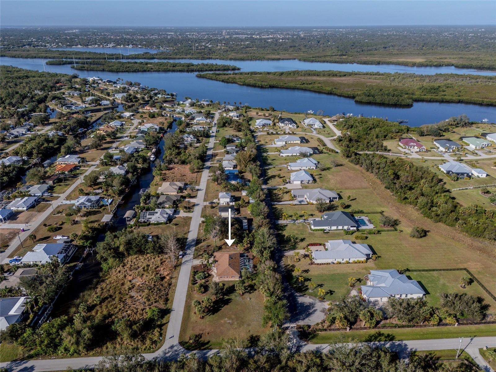 TRIPLE LOT! Beautifully updated 3 bedroom, 2 bath, 2-car garage pool home in quiet community of Palm Shores in Punta Gorda! Step inside to a bright and open floor plan featuring a cathedral ceiling and an abundance of natural light, thanks to large sliders and transom windows. The living area boasts built-in accents and tile flooring throughout, creating a seamless flow from room to room. The kitchen is a chef's delight with granite counters, a stylish tile backsplash, and newer appliances, including a gas stove and refrigerator. The primary suite is a true retreat, complete with a tray ceiling, private access to the lanai, and a luxurious bath featuring dual sinks and a walk-in shower. The split bedroom floor plan ensures privacy for guests, with two additional bedrooms and a full bath with dual sinks. Outdoor living is a breeze with a newly resurfaced screened pool and new spa, complemented by a new pool heater, pool pump, and pavers. The covered lanai overlooks a backyard adorned with mature trees, providing a peaceful and private setting. Additional features include new roof in 2021, underground propane tank for range and barbecue installed in 2022, new well pump, water softener system, new boards on dock and 1-year whole house warranty. Located on a quiet street with mature landscaping, you're just 15 minutes from downtown historic Punta Gorda, where you can explore restaurants, shopping, beautiful parks, world-class fishing, boating, and community events. Don't miss out on this incredible opportunity to own a slice of paradise!
