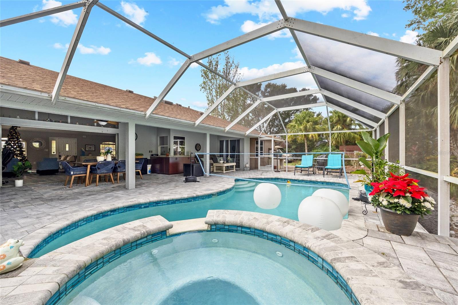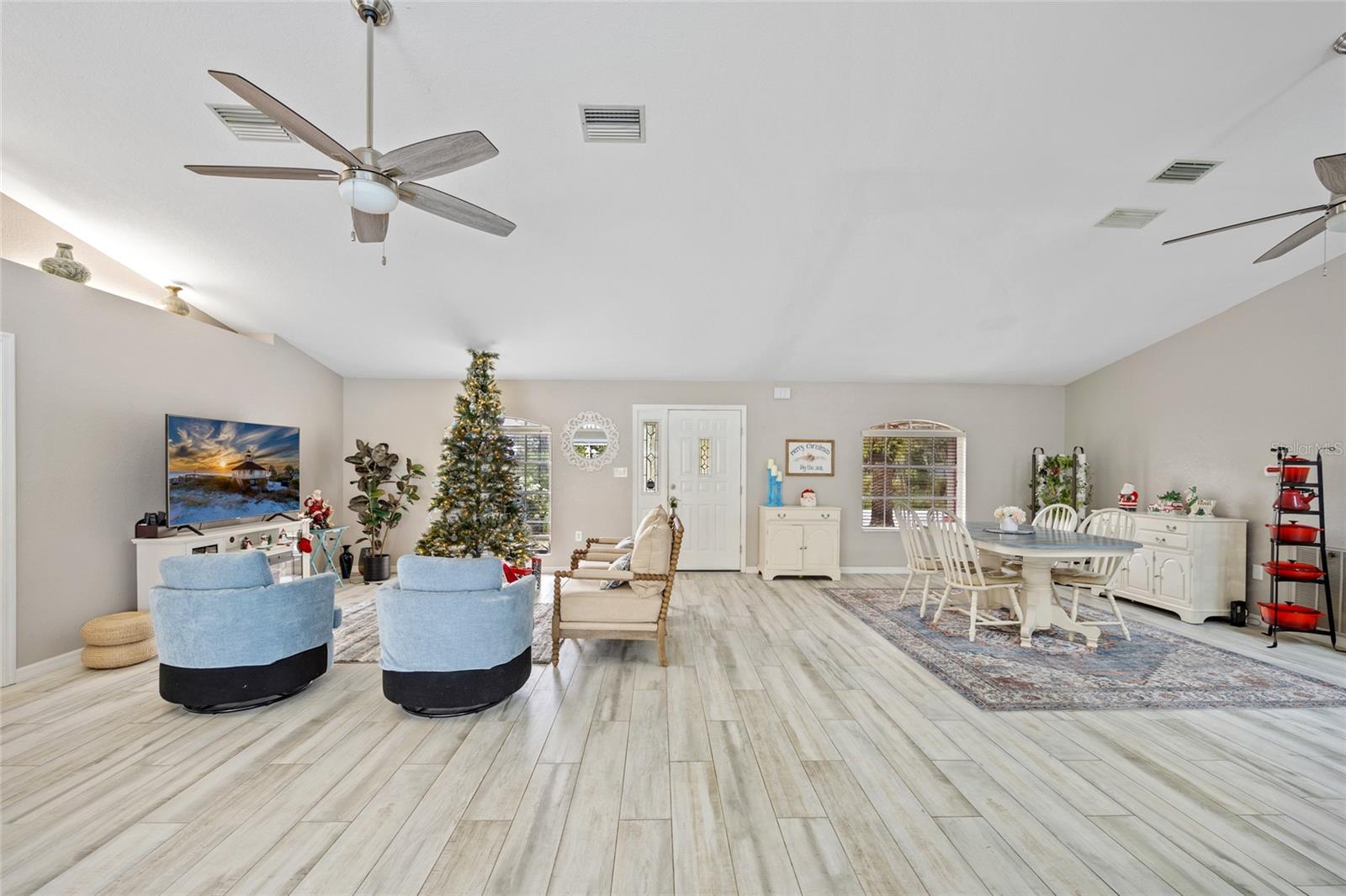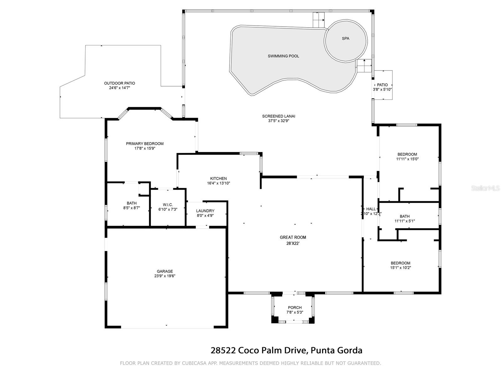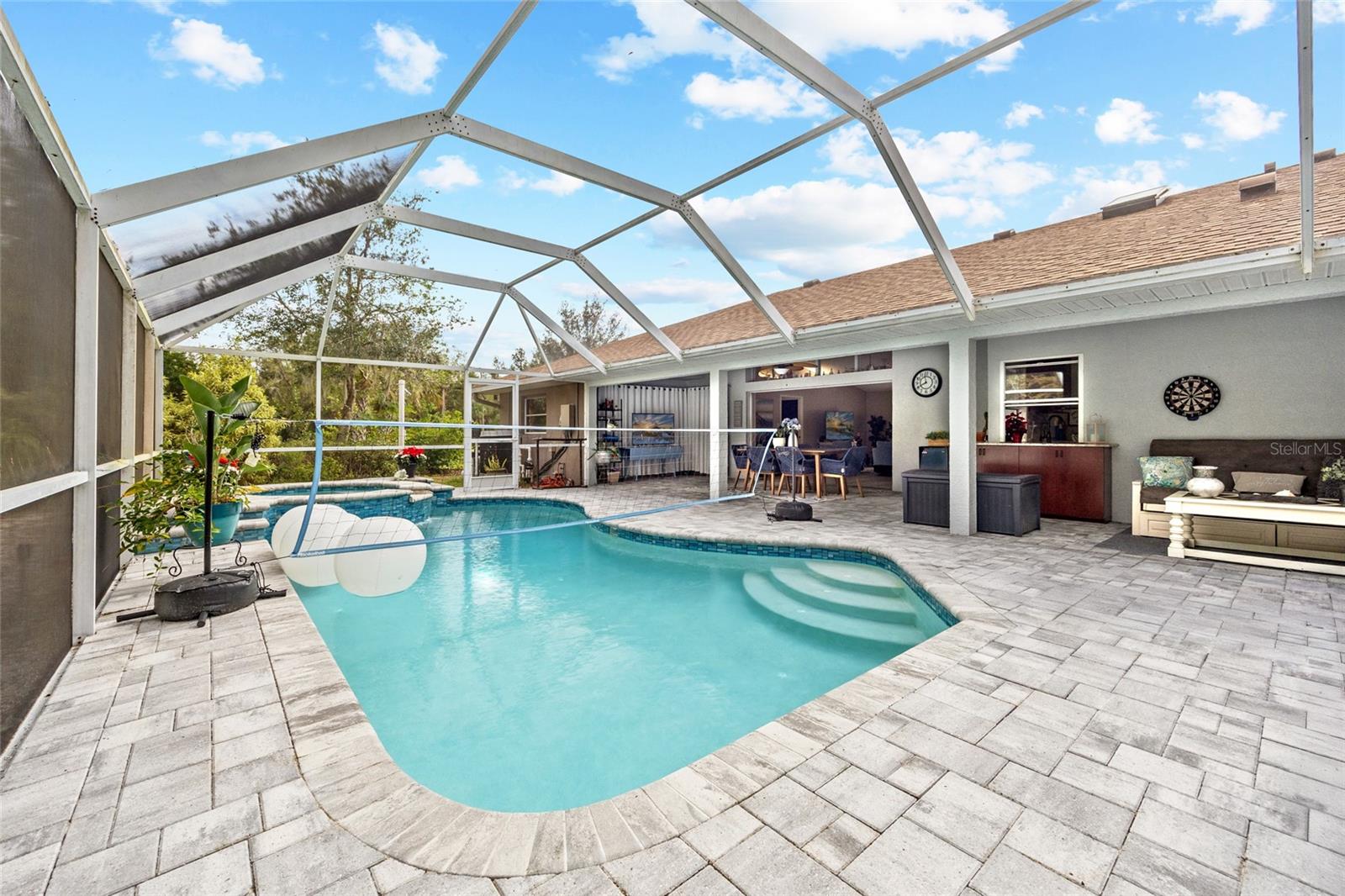TRIPLE LOT! Beautifully updated 3 bedroom, 2 bath, 2-car garage pool home in quiet community of Palm Shores in Punta Gorda! Step inside to a bright and open floor plan featuring a cathedral ceiling and an abundance of natural light, thanks to large sliders and transom windows. The living area boasts built-in accents and tile flooring throughout, creating a seamless flow from room to room. The kitchen is a chef's delight with granite counters, a stylish tile backsplash, and newer appliances, including a gas stove and refrigerator. The primary suite is a true retreat, complete with a tray ceiling, private access to the lanai, and a luxurious bath featuring dual sinks and a walk-in shower. The split bedroom floor plan ensures privacy for guests, with two additional bedrooms and a full bath with dual sinks. Outdoor living is a breeze with a newly resurfaced screened pool and new spa, complemented by a new pool heater, pool pump, and pavers. The covered lanai overlooks a backyard adorned with mature trees, providing a peaceful and private setting. Additional features include new roof in 2021, underground propane tank for range and barbecue installed in 2022, new well pump, water softener system, new boards on dock and 1-year whole house warranty. Located on a quiet street with mature landscaping, you're just 15 minutes from downtown historic Punta Gorda, where you can explore restaurants, shopping, beautiful parks, world-class fishing, boating, and community events. Don't miss out on this incredible opportunity to own a slice of paradise!