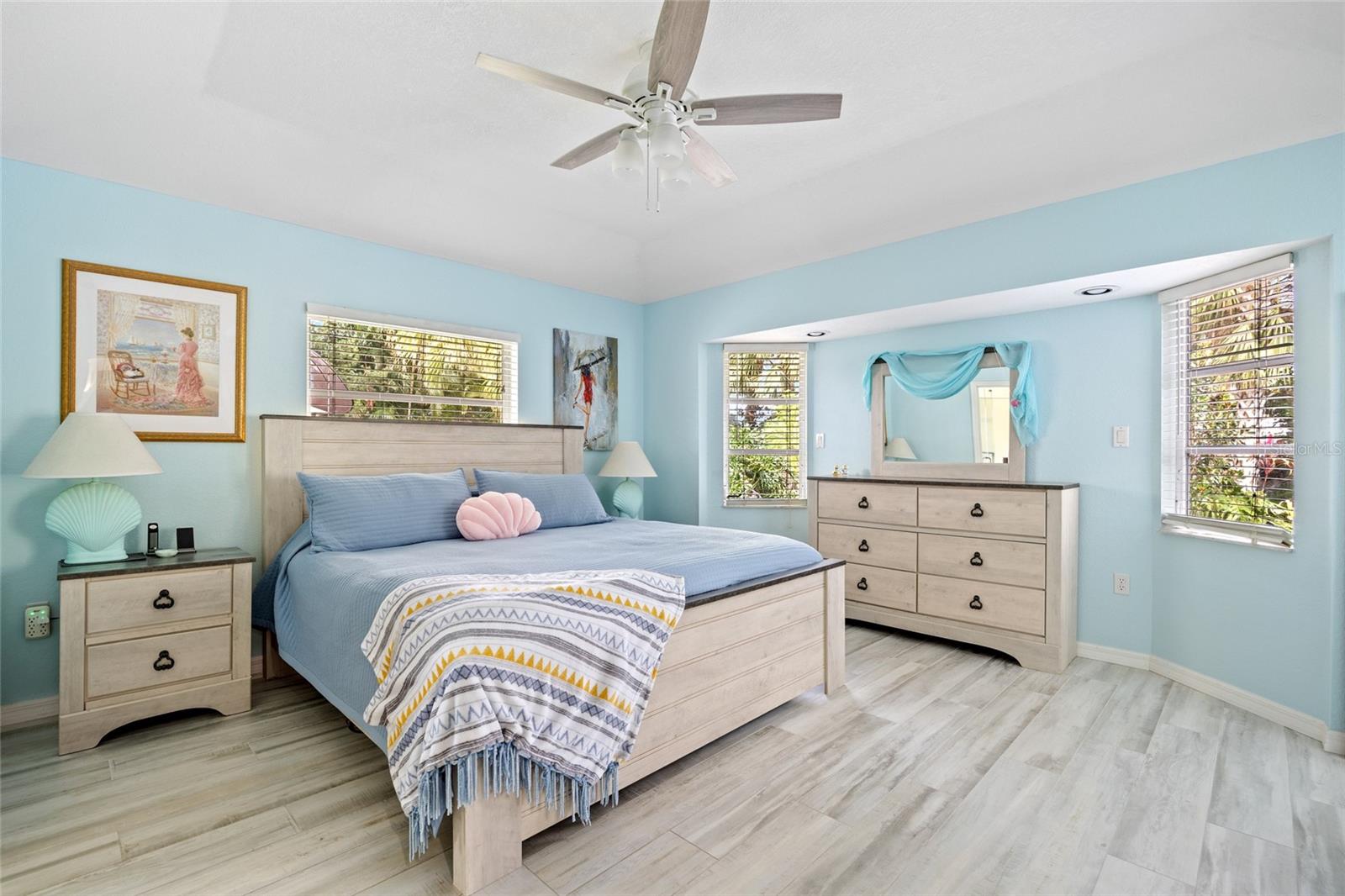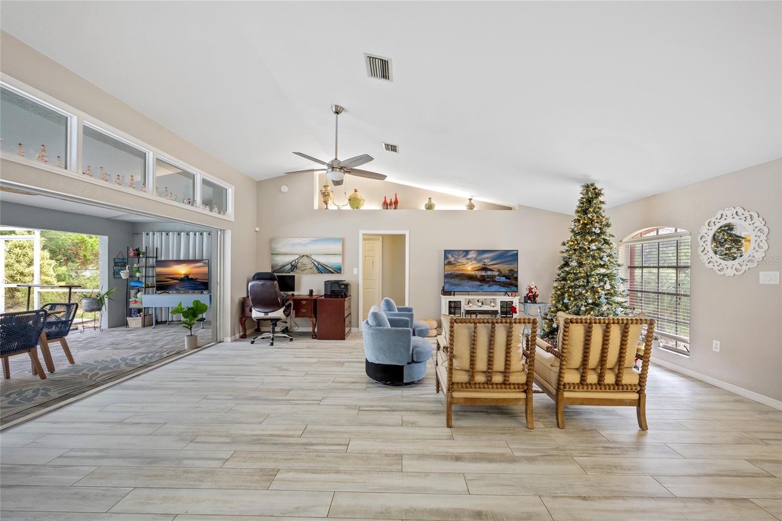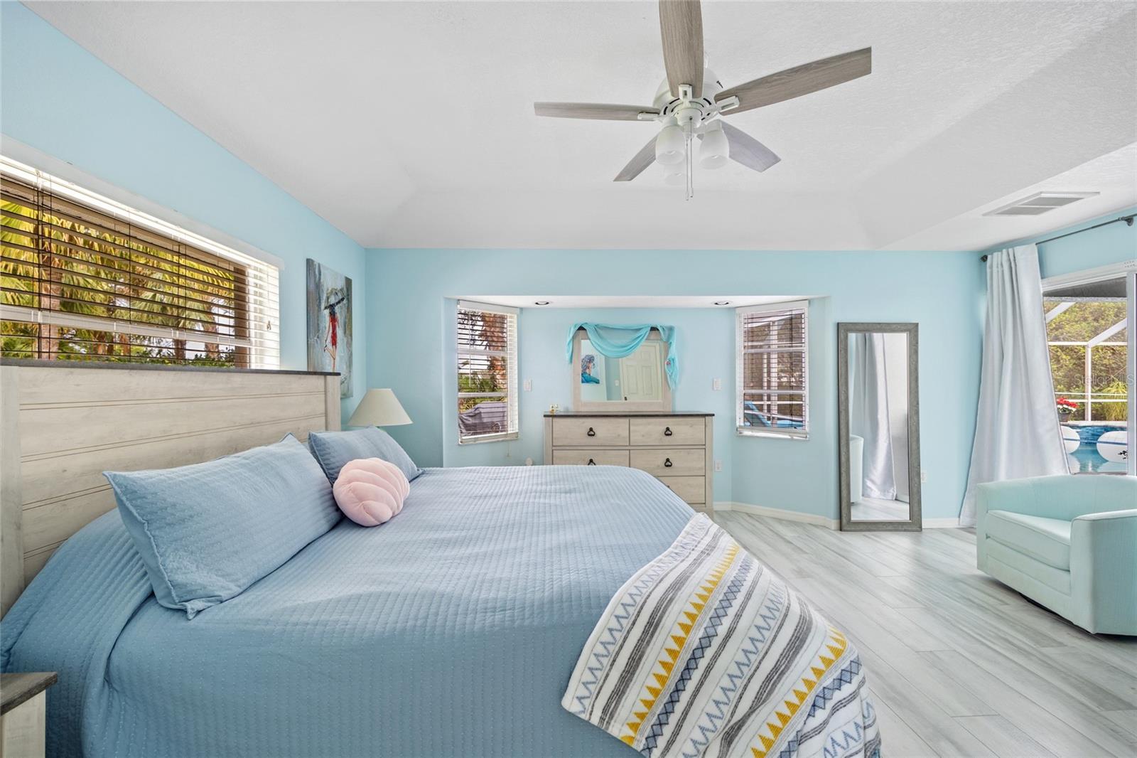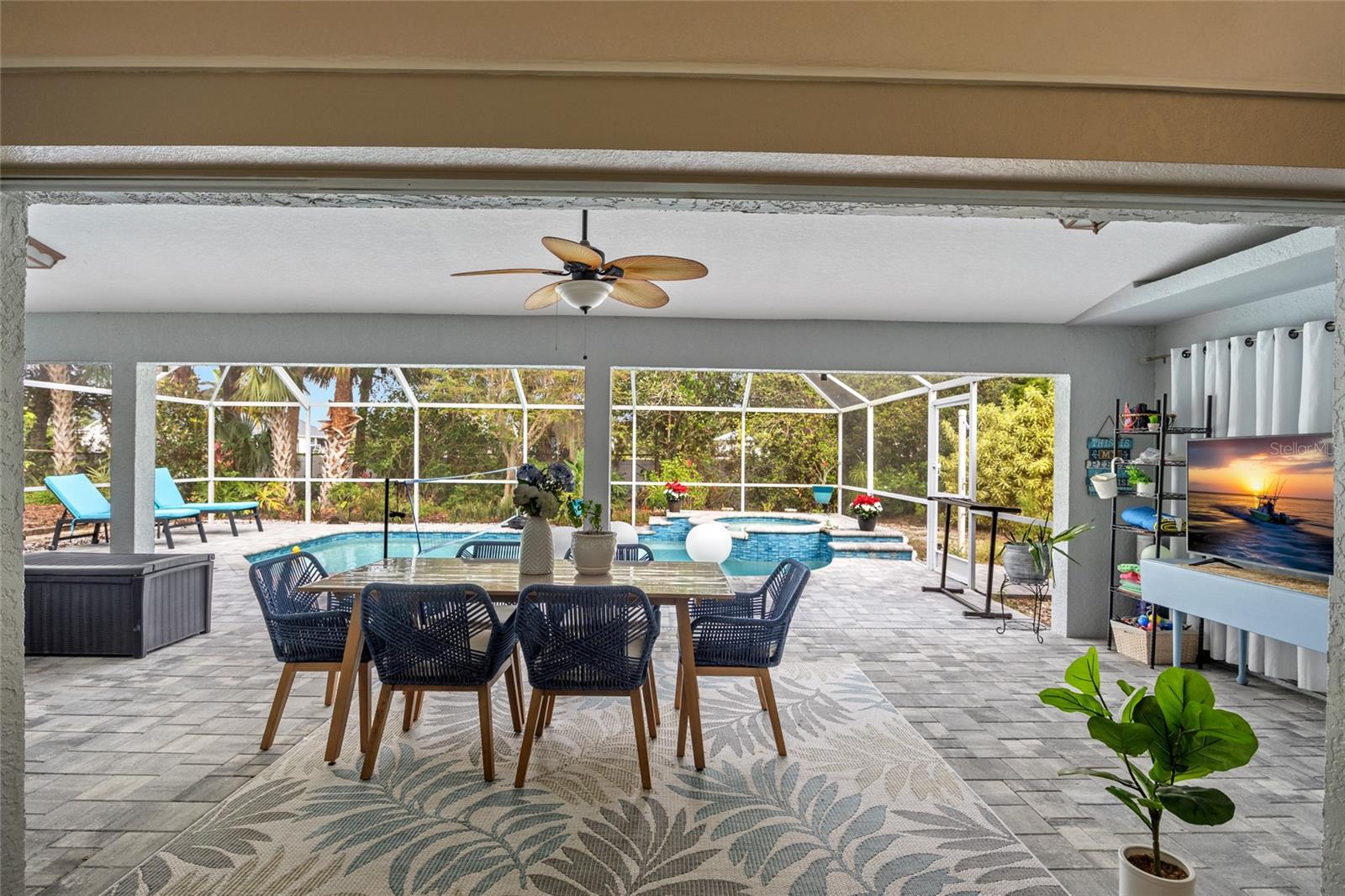 TRIPLE LOT! Beautifully updated 3 bedroom, 2 bath, 2-car garage pool home in quiet community of Palm Shores in Punta Gorda! Step inside to a bright and open floor plan featuring a cathedral ceiling and an abundance of natural light, thanks to large sliders and transom windows. The living area boasts built-in accents and tile flooring throughout, creating a seamless flow from room to room. The kitchen is a chef's delight with granite counters, a stylish tile backsplash, and newer appliances, including a gas stove and refrigerator. The primary suite is a true retreat, complete with a tray ceiling, private access to the lanai, and a luxurious bath featuring dual sinks and a walk-in shower. The split bedroom floor plan ensures privacy for guests, with two additional bedrooms and a full bath with dual sinks. Outdoor living is a breeze with a newly resurfaced screened pool and new spa, complemented by a new pool heater, pool pump, and pavers. The covered lanai overlooks a backyard adorned with mature trees, providing a peaceful and private setting. Additional features include new roof in 2021, underground propane tank for range and barbecue installed in 2022, new well pump, water softener system, new boards on dock and 1-year whole house warranty. Located on a quiet street with mature landscaping, you're just 15 minutes from downtown historic Punta Gorda, where you can explore restaurants, shopping, beautiful parks, world-class fishing, boating, and community events. Don't miss out on this incredible opportunity to own a slice of paradise!