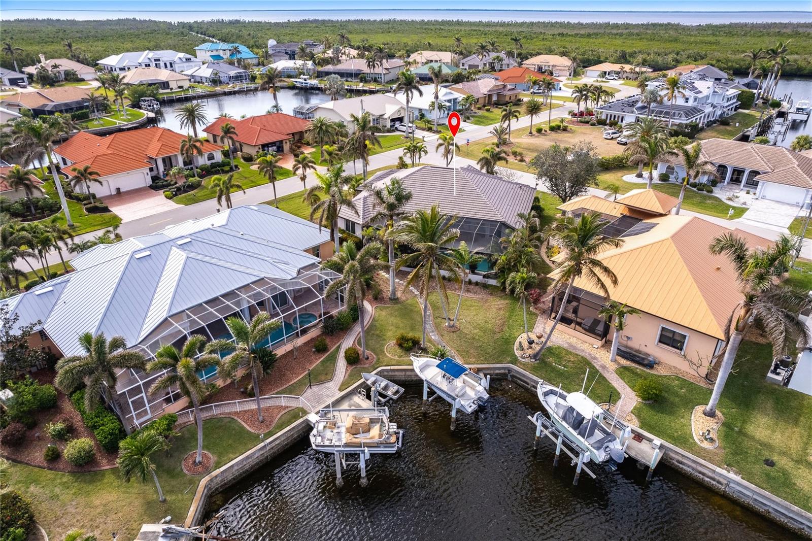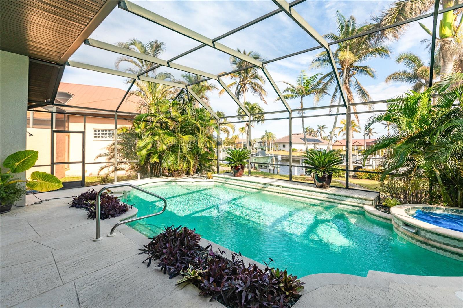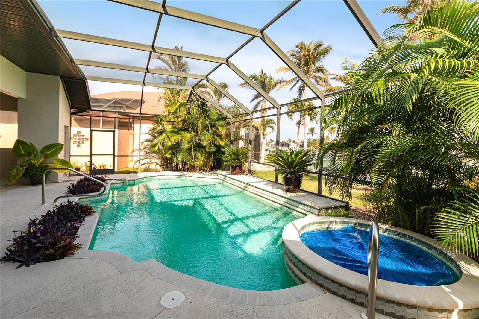 Recently added to Airbnb and was booked solid for 3 months within a couple days. Welcome to your dream home in desirable Punta Gorda Isles! This exceptional waterfront property offers Direct Sailboat Access!!! 2023 ROOF, NEW Maytag washer and dryer, NEW stainless steel refrigerator, NEW pool heater and hot tub bubbler you can control from your phone. This beautiful 3-bedroom, 2-bathroom home with an office that could be an additional Bedroom, 3-car garage offers a true Florida lifestyle, featuring breathtaking water views and an expansive open floor plan. With its perfect blend of luxury, functionality, and modern design, this property provides the ideal setting for relaxation and entertainment. Key Features: Spacious Open Living Areas: The large living room features soaring ceilings and large glass sliders that open directly to the pool area, offering breathtaking water views. This seamless indoor-outdoor flow makes the home perfect for both casual living and elegant entertaining. Gourmet Kitchen: The chef-inspired kitchen is a standout with all stainless-steel appliances, sleek granite countertops, a stylish tile backsplash, a closet pantry, and a built-in desk. The kitchen also features an off-kitchen dining room—perfect for intimate meals or family gatherings. Master Suite Retreat: The spacious master suite boasts stunning water views, a large walk-in closet, and a luxurious en-suite bathroom with dual vanities, a soaking tub, and a walk-in shower—creating a spa-like atmosphere to unwind. Private Outdoor Oasis: Step outside to your private backyard, featuring a sparkling screened-in pool that offers beautiful canal views. Whether you're swimming, relaxing in the spa, or enjoying the peaceful surroundings, this space is perfect for outdoor living. Three-Car Garage: A spacious 3-car garage provides ample room for vehicles, storage, and workspace. Prime Waterfront Location: With direct access to the water and a private dock, this home is a boater's dream. Whether you're fishing, kayaking, or cruising to Charlotte Harbor, this location offers endless possibilities for enjoying the water. Plus, you're just minutes away from downtown Punta Gorda, offering charming shops, restaurants, and local attractions. Whether you’re looking for a year-round residence or a vacation getaway, this home offers the perfect combination of comfort, convenience, and waterfront luxury. Seller will consider selling the property Turnkey! **PLEASE ENJOY THE 3D INTERACTIVE VIRTUAL TOUR ASSOCIATED WITH THIS LISTING