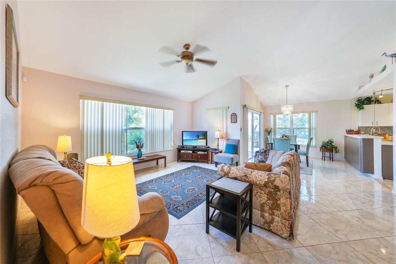 The lowest price for a home in Burnt Store Marina! This furnished 2 bed/2 bath single family home has the advantage of a ground floor condo plus the benefit of your own private space with a full 2 car garage for a car plus golf cart, bikes and other toys! And the new STONE-COATED METAL ROOF INSTALLED IN 2024 provides years of maintenance-free use. Inside the great room floorplan features a comfortable living room and dining area with loads of natural light from many large windows. A spacious kitchen is ready to handle all your favorite meals and includes abundant cabinet storage and counter space, tile backsplash, an island for additional prep, attractive contemporary track lighting, closet pantry, an open breakfast bar with extra custom cabinets below, newer appliances and even a built-in desk area. Full-size washer and dryer are inside behind bi-fold doors. Down the hall you’ll find a guest bedroom with full bath across the hall, and a generous owner’s suite with spacious bedroom, 2 walk-in closets and private bath featuring a dual vanity and large shower. Attractive diamond-set tile flooring covers the main living area with carpet in the guest bedroom. A screened lanai provides a delightful outdoor space overlooking a landscaped greenspace. A NEW AC was installed in 2023. Buy for an investment or a convenient 2nd home you can refresh with your own updates! Located close to the heart of the Marina, you’ll be a short golf cart ride to the boat docks, tennis, pickleball and fitness center, yacht club, the 27 hole golf course with active clubhouse and three dining options found in CassCay on the water, Linkside by the golf course and the take-out convenience of the Trading Post. Burnt Store Marina offers so much more than other gated communities with quick deep water access to Charlotte Harbor and a host of amenities that will keep you busy. Come see why so many people love to call it home!