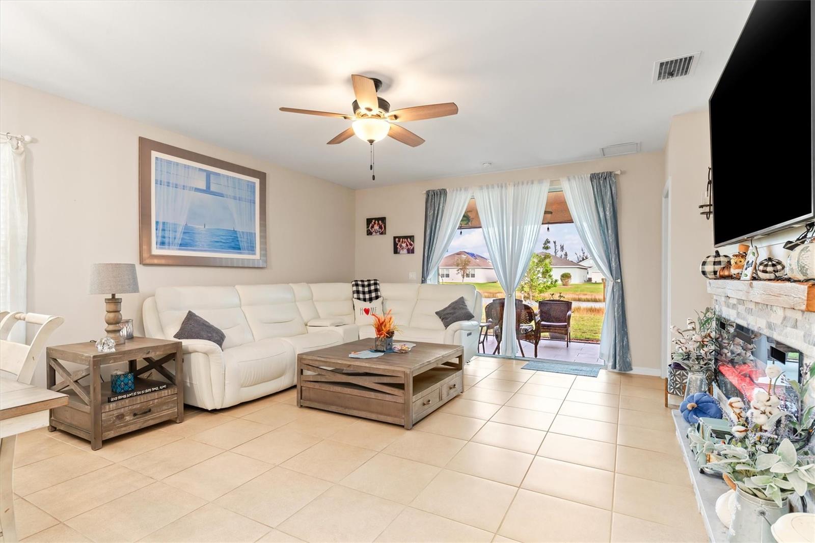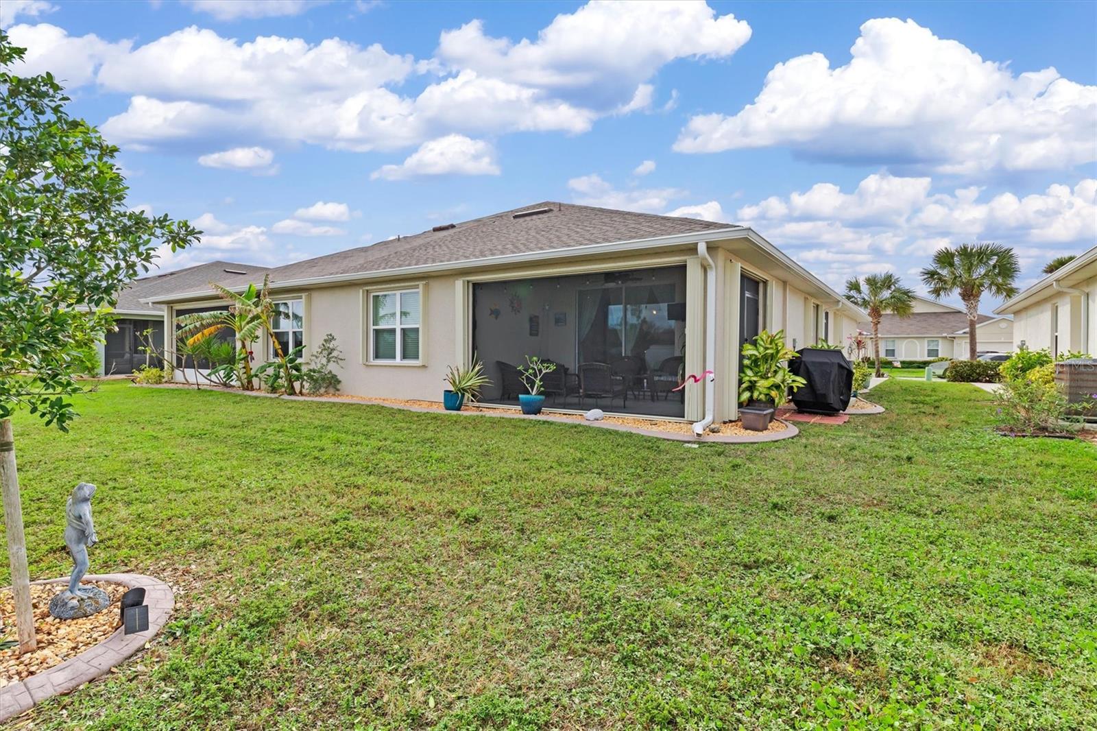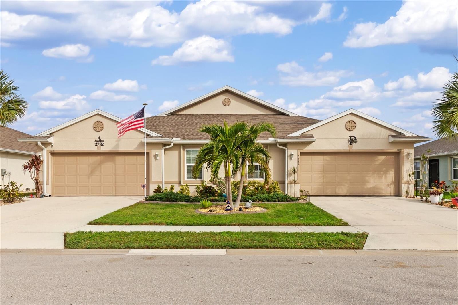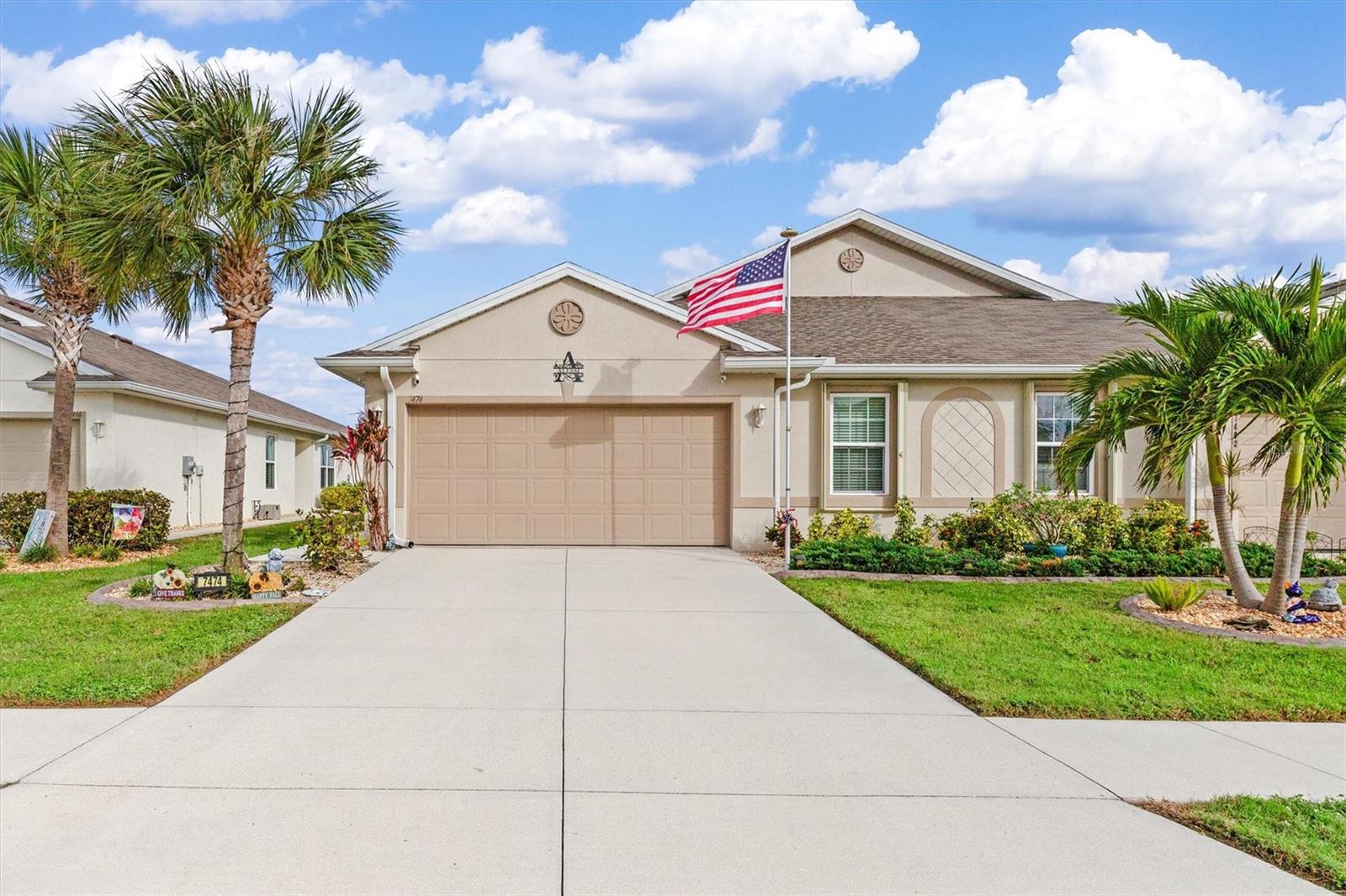 Welcome to your dream villa, where modern upgrades meet a serene lake setting in this stunning 2-bedroom, 2-bath villa with a den, located in a gated community in Punta Gorda, Florida. Thoughtfully designed and tastefully upgraded, this home offers a seamless blend of comfort and sophistication. The kitchen is a chef’s dream, boasting sleek quartz countertops, a striking marble backsplash, and upgraded appliances that elevate the heart of the home. Both bathrooms feature the same luxurious quartz finishes, adding a cohesive touch. Step outside to the tiled lanai, where lakefront views create the perfect backdrop for morning coffee or evening relaxation. The 2022 roof ensures peace of mind, while the epoxy-coated garage floor adds durability and style to your storage and parking space. Accordion hurricane shutters offer storm protection with ease, making this villa as practical as it is beautiful. Enjoy the unmatched lifestyle of this vibrant community, with amenities that cater to every interest including two pools, fitness center, card room, pool table, tennis/pickleball, bocce ball and numerous weekly social events. Conveniently located to shopping, restaurants and everything that Punta Gorda has to offer. Don’t miss this incredible opportunity to own a slice of paradise in Punta Gorda. THIS PROPERTY DID NOT HAVE ANY STORM DAMAGE.