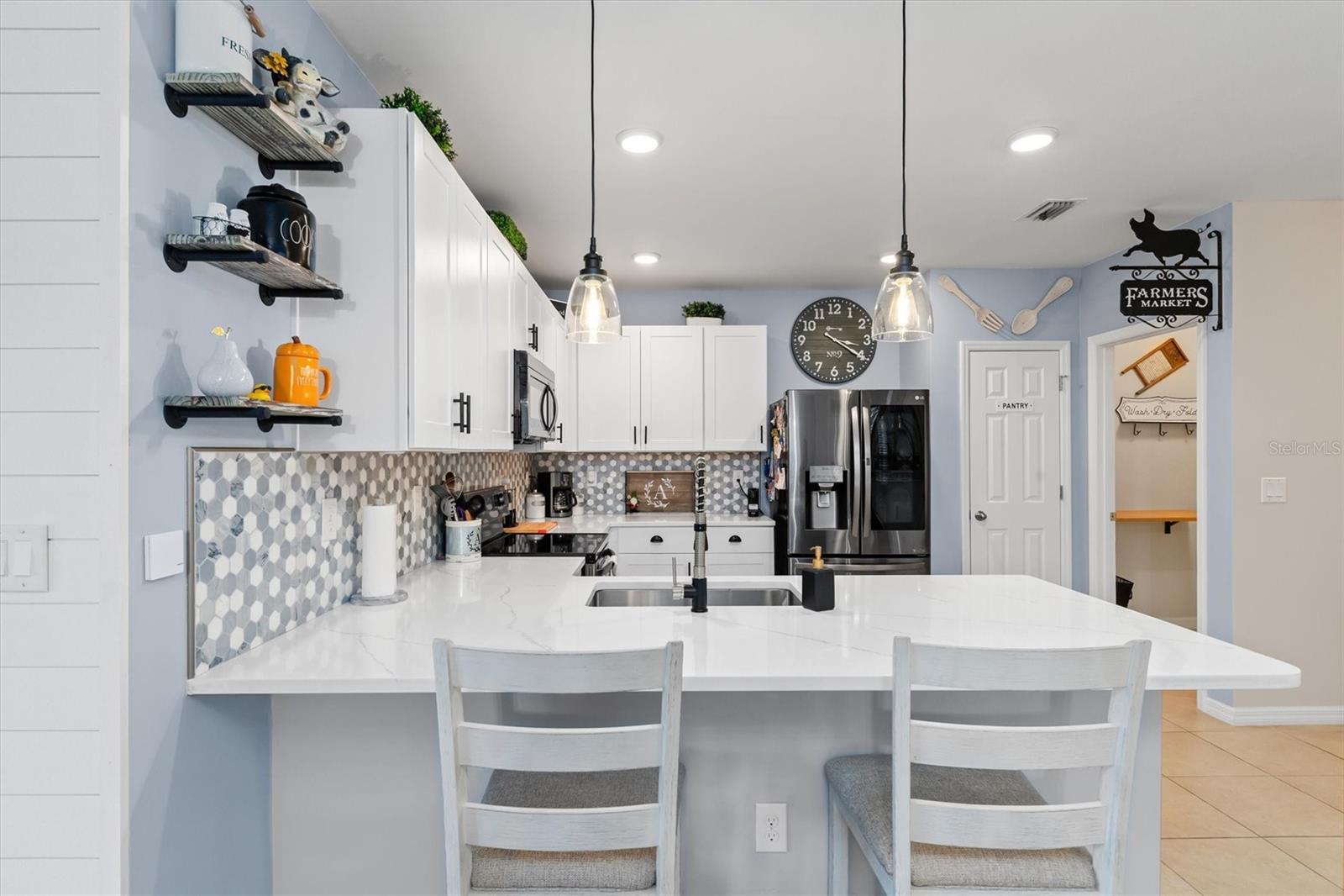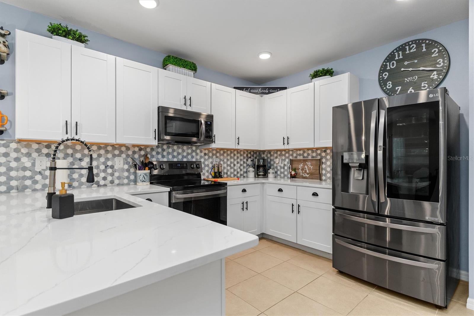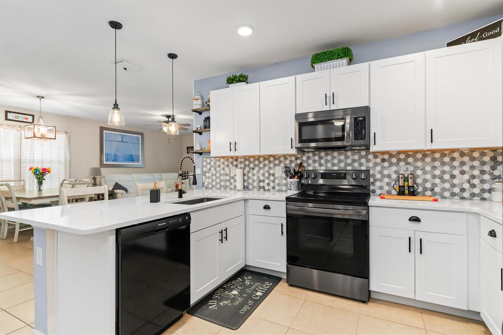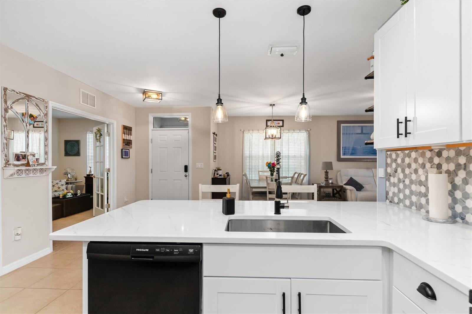Welcome to your dream villa, where modern upgrades meet a serene lake setting in this stunning 2-bedroom, 2-bath villa with a den, located in a gated community in Punta Gorda, Florida. Thoughtfully designed and tastefully upgraded, this home offers a seamless blend of comfort and sophistication. The kitchen is a chef’s dream, boasting sleek quartz countertops, a striking marble backsplash, and upgraded appliances that elevate the heart of the home. Both bathrooms feature the same luxurious quartz finishes, adding a cohesive touch. Step outside to the tiled lanai, where lakefront views create the perfect backdrop for morning coffee or evening relaxation. The 2022 roof ensures peace of mind, while the epoxy-coated garage floor adds durability and style to your storage and parking space. Accordion hurricane shutters offer storm protection with ease, making this villa as practical as it is beautiful. Enjoy the unmatched lifestyle of this vibrant community, with amenities that cater to every interest including two pools, fitness center, card room, pool table, tennis/pickleball, bocce ball and numerous weekly social events. Conveniently located to shopping, restaurants and everything that Punta Gorda has to offer. Don’t miss this incredible opportunity to own a slice of paradise in Punta Gorda. THIS PROPERTY DID NOT HAVE ANY STORM DAMAGE.