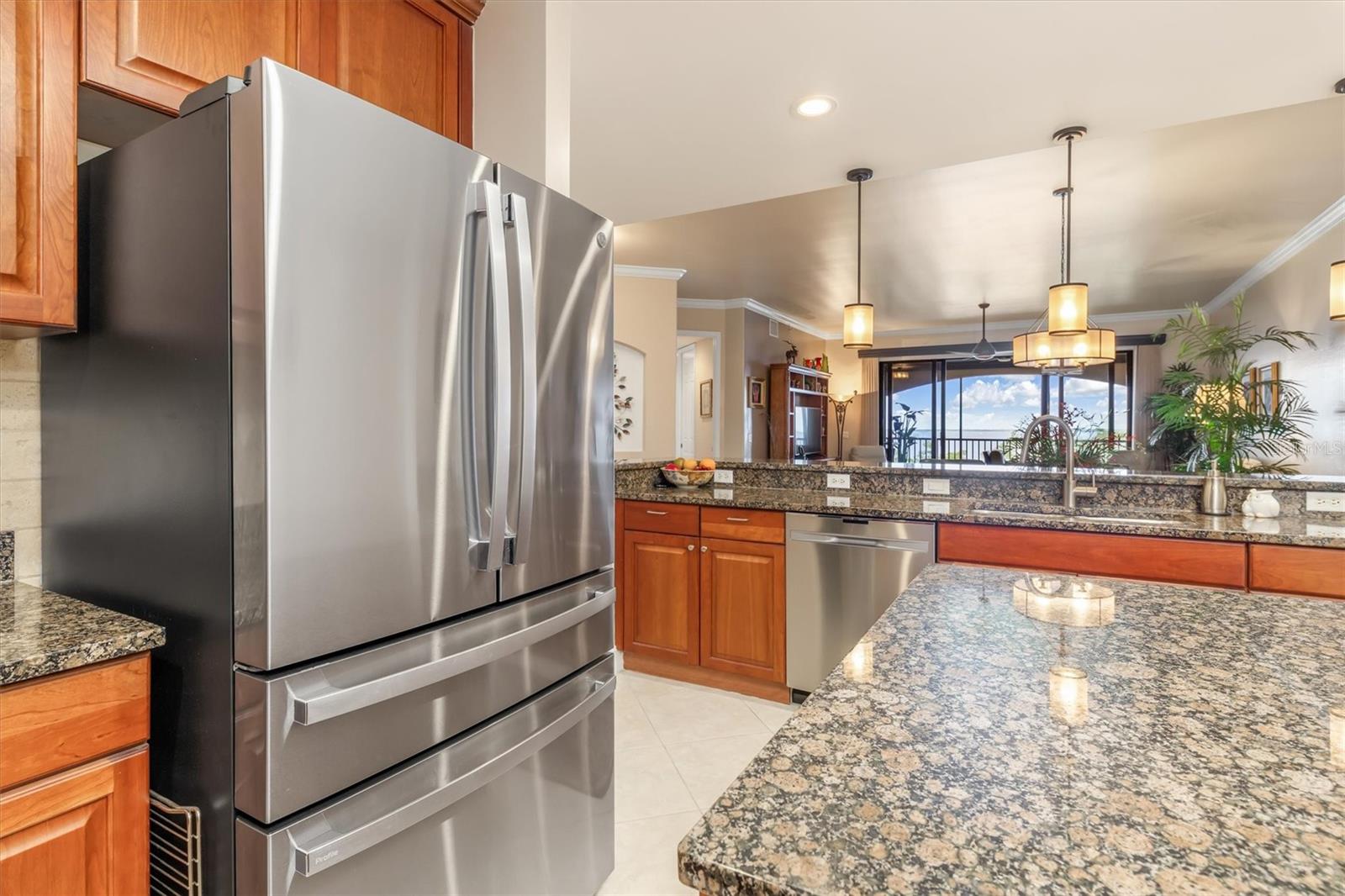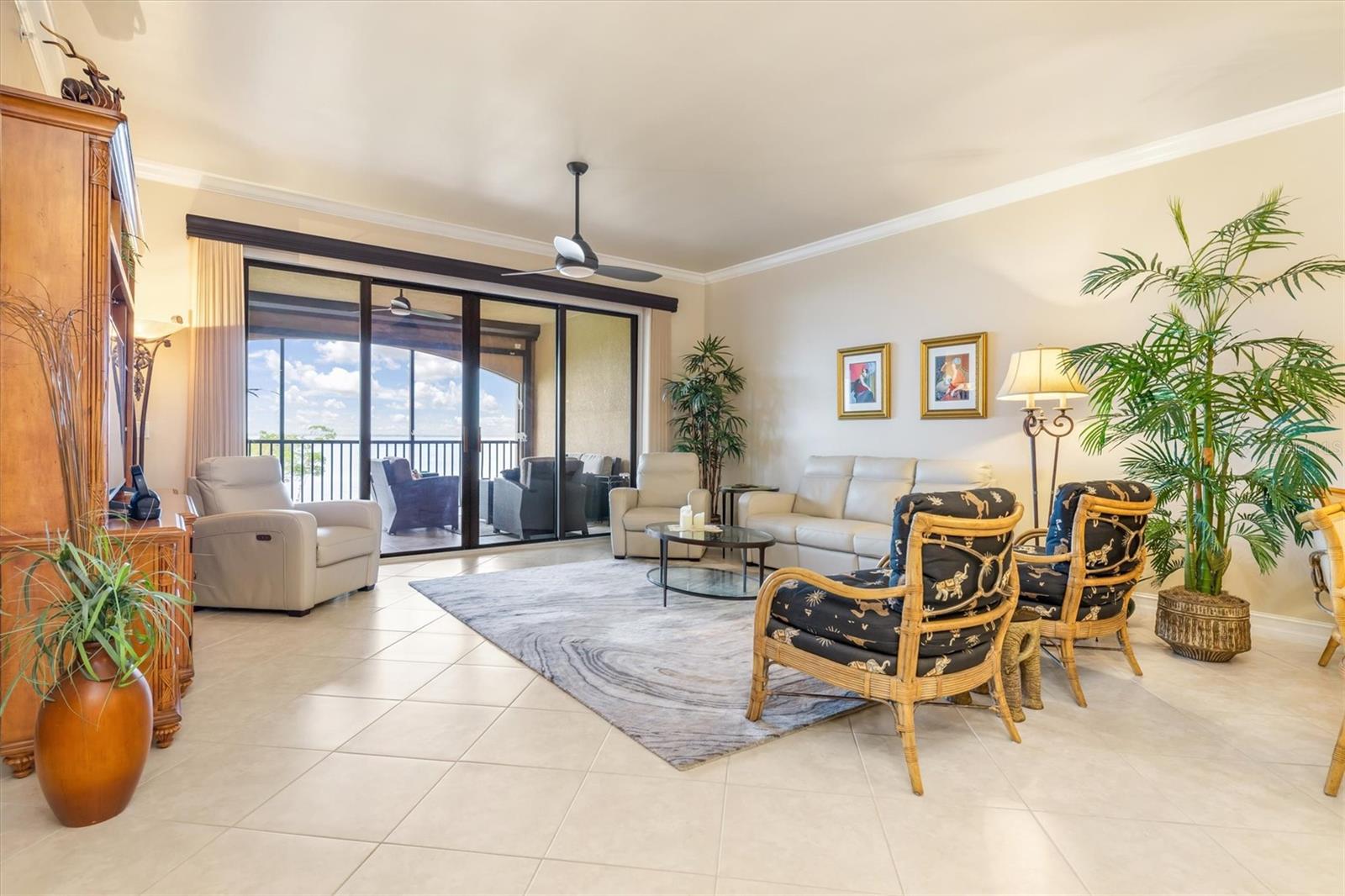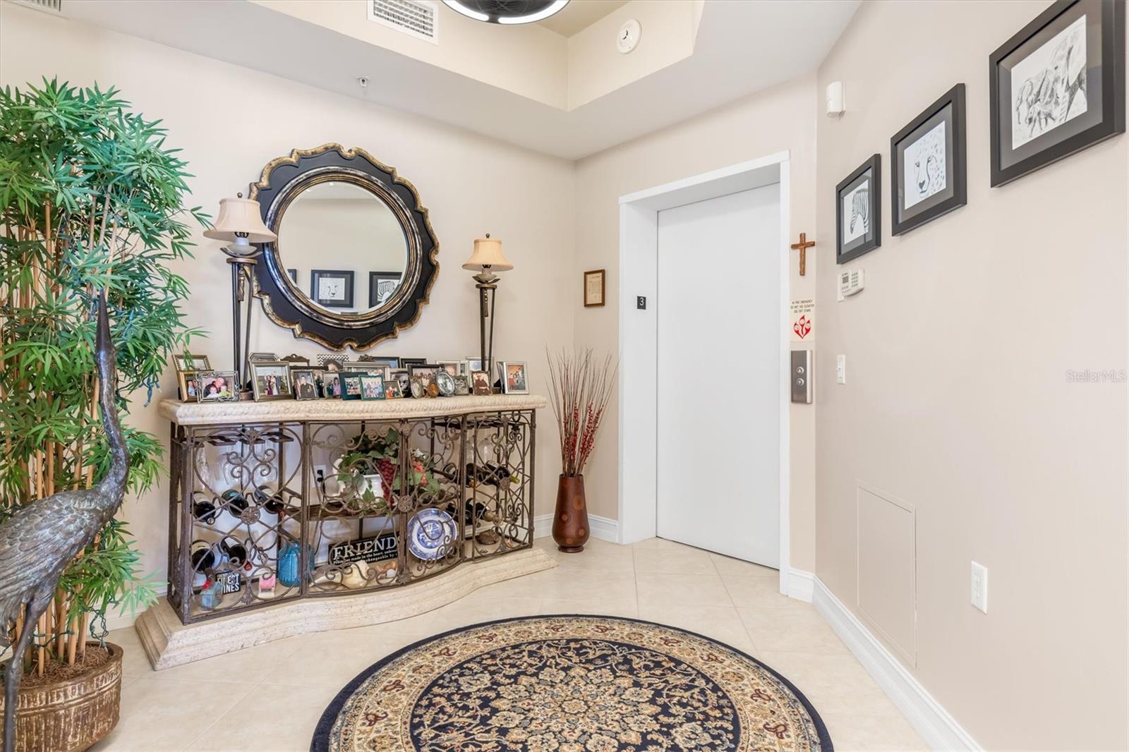 Check out the virtual 3-D walk through above! Luxury Gulf-View Condo in Gated Community! Welcome to your dream home! This stunning 3-bedroom, 3-bathroom condo on the 3rd floor offers luxurious living with breathtaking full Gulf views and spectacular sunsets from the lanai. Accessible via a private elevator, this residence combines elegance, comfort, and convenience. Interior Features: Kitchen: Modern granite countertops, wood cabinets with pull-out shelves, two spacious pantries, and stainless steel appliances make this kitchen both functional and stylish. Master Suite: A serene retreat with sliding glass doors to the lanai, two walk-in closets, and an ensuite bathroom featuring dual sinks, an oval soaking tub, a walk-in shower with a rain showerhead, and plenty of natural light. Third Bedroom/Office: Includes a Murphy bed for versatile use as a guest room or office. Additional Features: A dedicated laundry room with a sink and ample storage, plus large storage spaces throughout the condo. Outdoor Living: The lanai is equipped with Storm Smart shades, offering peace of mind with hurricane-grade protection while you enjoy the panoramic Gulf views. Community Amenities: Located near the vibrant Fisherman’s Village with shops and dining. There are 2 geo-thermally heated pools, 6 Har-Tru tennis courts, a cabana, gas grills, two fireplaces and a superb clubhouse with full entertaining facilities. On the ground floor of the clubhouse, there are lounge, TV, card, billiards and craft rooms, a library, wifi media center and management's office. On the upper floor, you'll find fitness facilities with state of the art exercise equipment, a gymnasium, the spa and men's and women's locker rooms, each with sauna and steam rooms. The fitness room overlooks the pool and larger lake. Vivante is 3 miles from beautiful, historic Punta Gorda and Tamiami Trail, 7 from I75, a couple of hours from Naples to the south and Sarasota to the north. This luxury condo offers the perfect balance of relaxation and recreation, all within a secure, gated community. Don't miss the opportunity to live the coastal lifestyle in ultimate comfort!