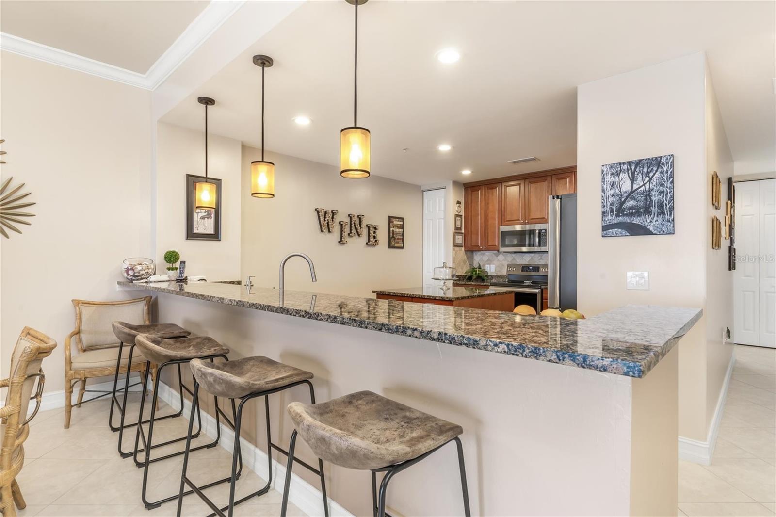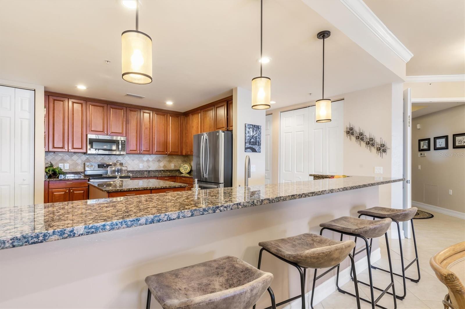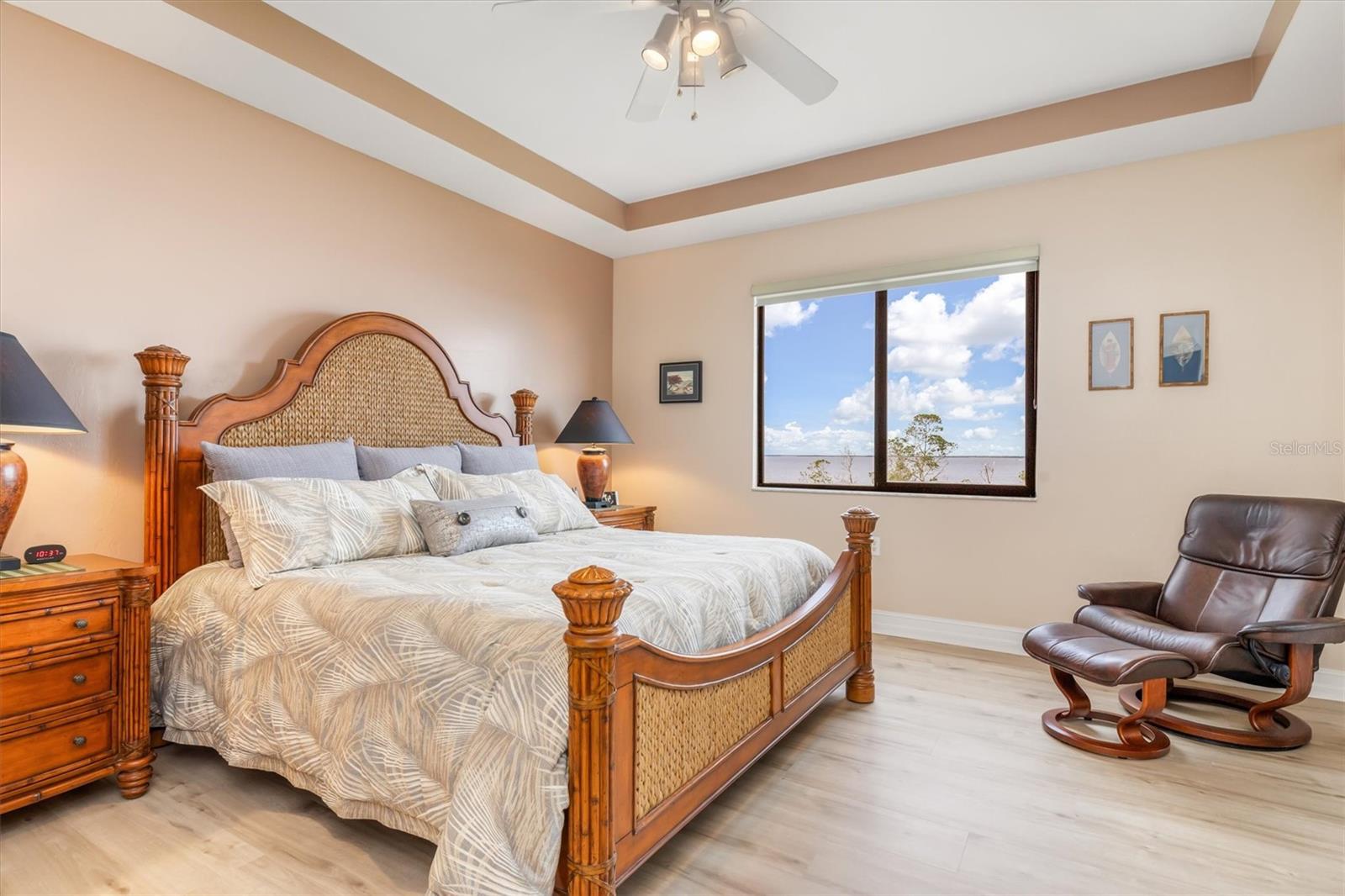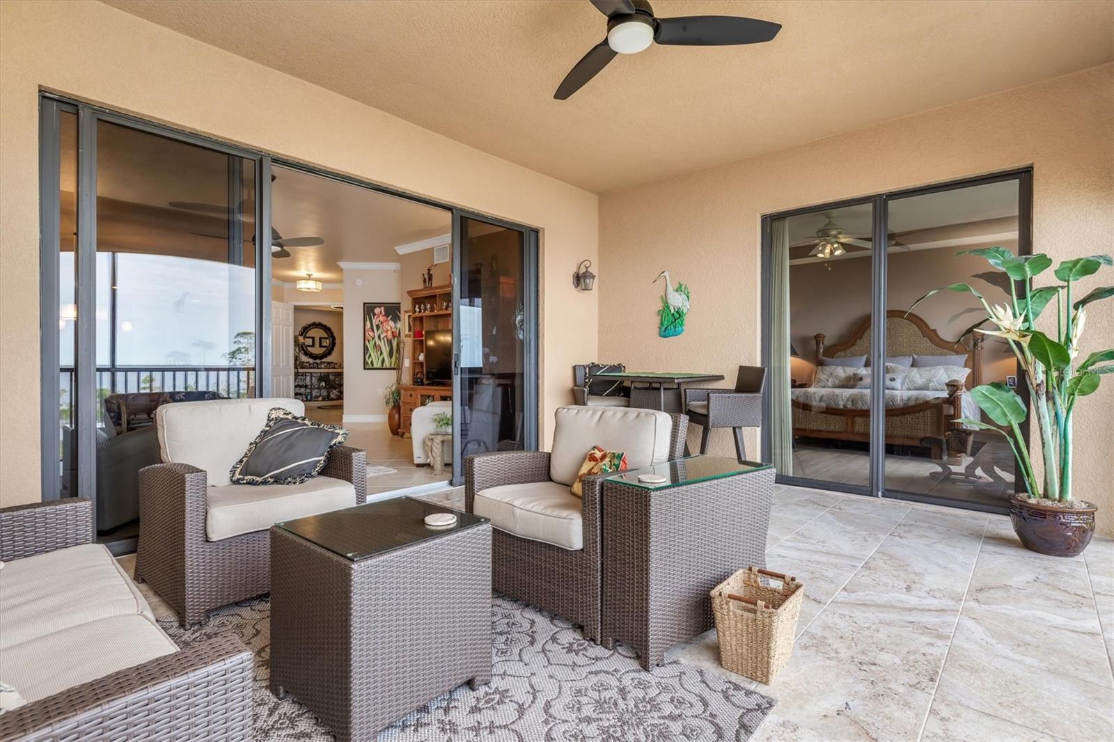 Check out the virtual 3-D walk through above! Luxury Gulf-View Condo in Gated Community! Welcome to your dream home! This stunning 3-bedroom, 3-bathroom condo on the 3rd floor offers luxurious living with breathtaking full Gulf views and spectacular sunsets from the lanai. Accessible via a private elevator, this residence combines elegance, comfort, and convenience. Interior Features: Kitchen: Modern granite countertops, wood cabinets with pull-out shelves, two spacious pantries, and stainless steel appliances make this kitchen both functional and stylish. Master Suite: A serene retreat with sliding glass doors to the lanai, two walk-in closets, and an ensuite bathroom featuring dual sinks, an oval soaking tub, a walk-in shower with a rain showerhead, and plenty of natural light. Third Bedroom/Office: Includes a Murphy bed for versatile use as a guest room or office. Additional Features: A dedicated laundry room with a sink and ample storage, plus large storage spaces throughout the condo. Outdoor Living: The lanai is equipped with Storm Smart shades, offering peace of mind with hurricane-grade protection while you enjoy the panoramic Gulf views. Community Amenities: Located near the vibrant Fisherman’s Village with shops and dining. There are 2 geo-thermally heated pools, 6 Har-Tru tennis courts, a cabana, gas grills, two fireplaces and a superb clubhouse with full entertaining facilities. On the ground floor of the clubhouse, there are lounge, TV, card, billiards and craft rooms, a library, wifi media center and management's office. On the upper floor, you'll find fitness facilities with state of the art exercise equipment, a gymnasium, the spa and men's and women's locker rooms, each with sauna and steam rooms. The fitness room overlooks the pool and larger lake. Vivante is 3 miles from beautiful, historic Punta Gorda and Tamiami Trail, 7 from I75, a couple of hours from Naples to the south and Sarasota to the north. This luxury condo offers the perfect balance of relaxation and recreation, all within a secure, gated community. Don't miss the opportunity to live the coastal lifestyle in ultimate comfort!