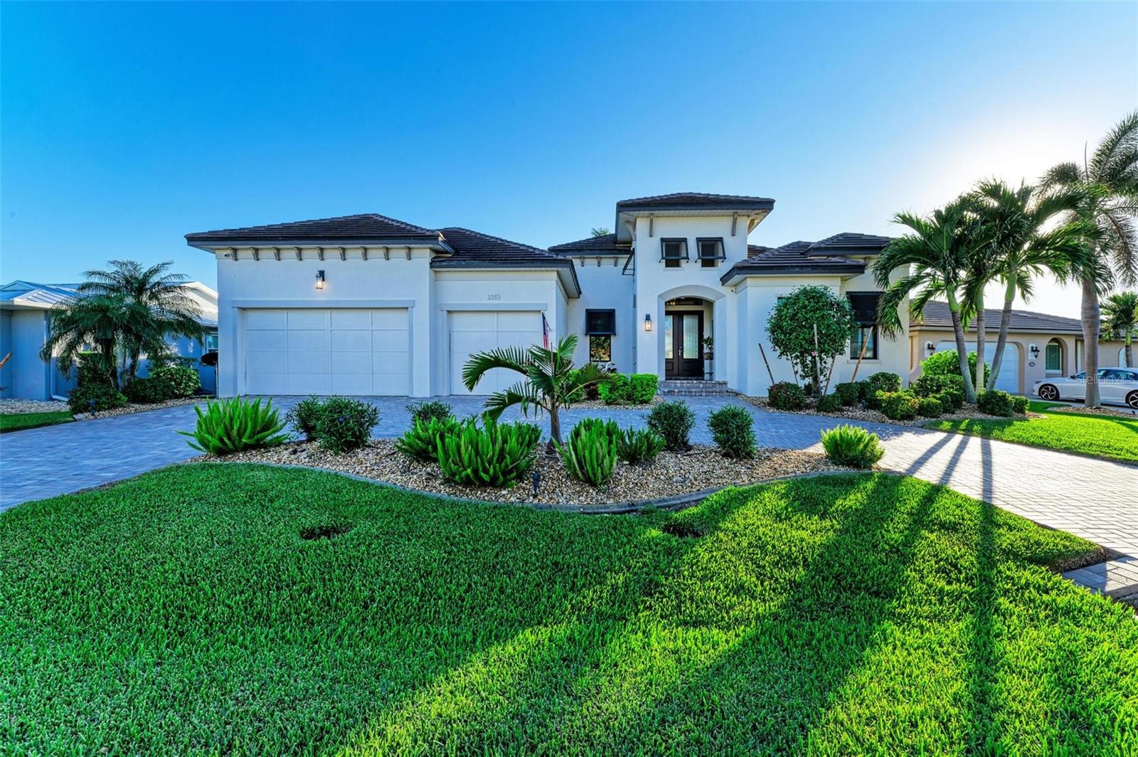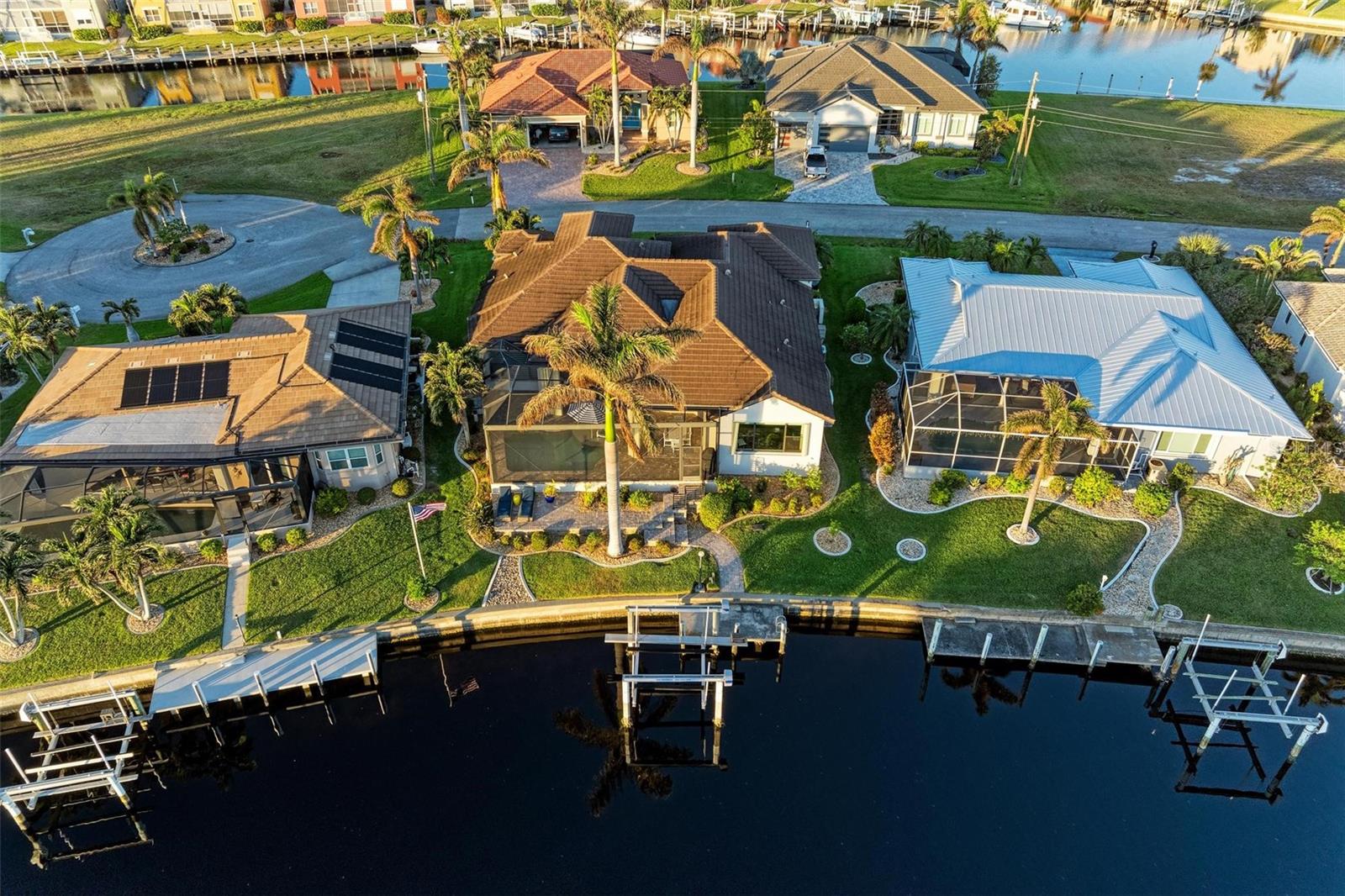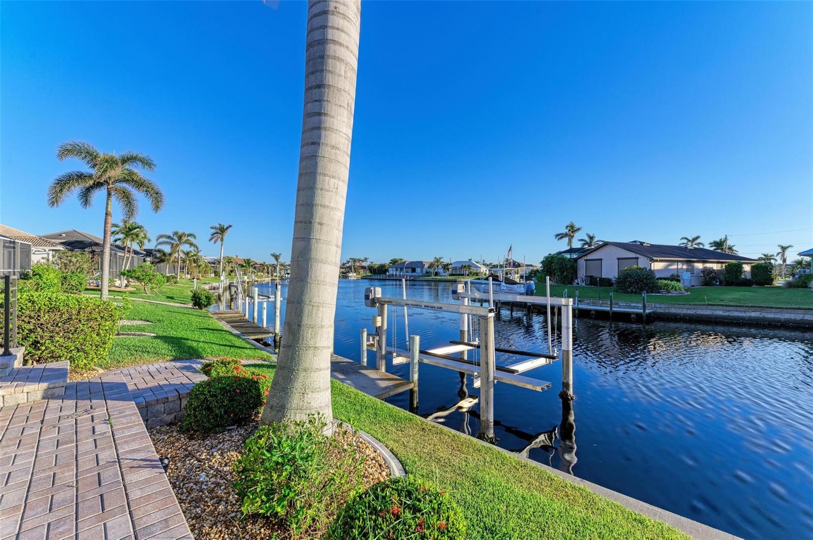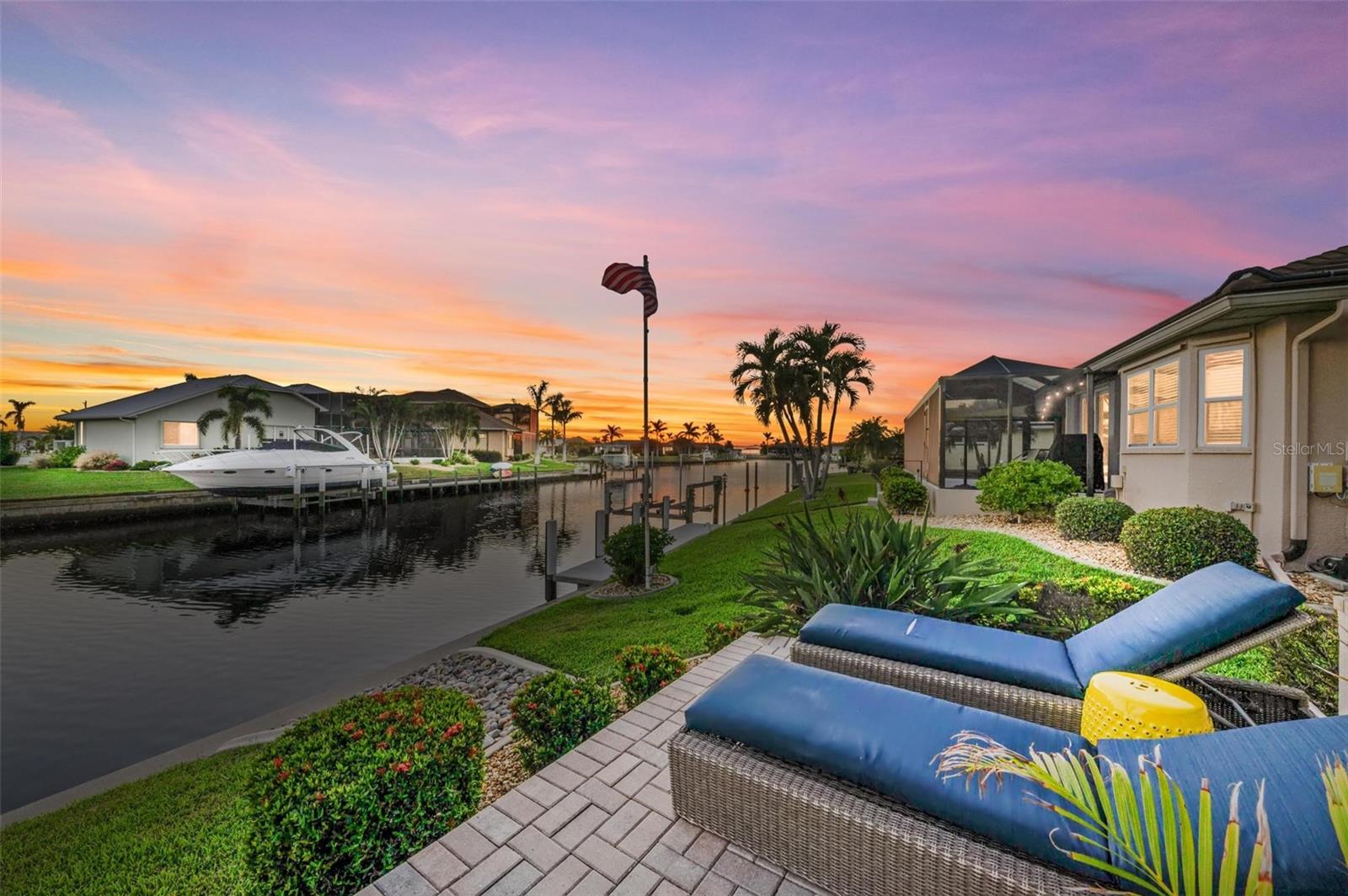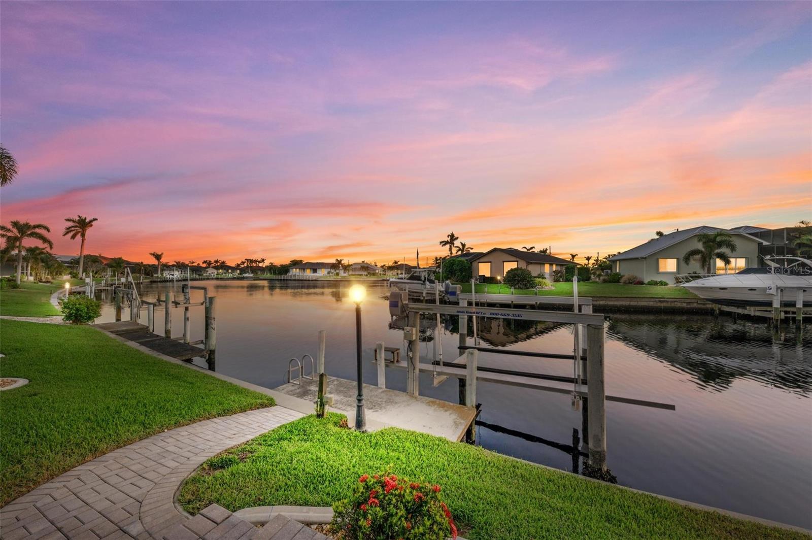 MOTIVATED SELLER FOR THIS Incredible 2016 built SOUTHERN EXPOSURE Turnberry II by Arthur Rutenberg WATERFRONT POOL HOME with DOCK/LIFT, 3 bedrooms, 3 bathrooms, a den, a 3-car garage and gorgeous finishes awaits new owners! Notice the incredible curb appeal with the architectural upgrades chosen including corbel details, a high-hat entry, large circular driveway, upgraded landscaping, and low voltage lighting. Inside the entry take in the niches with custom wallpaper applications, tray ceiling designs, 12' ceilings and 8' doors, beautiful tile and wood floors, custom lighting, and so much more! The open concept floor plan in ideal for entertaining with a spacious great room with coffered ceilings and a wall of pocket sliding glass doors all connected to the kitchen/dining rooms and outdoor spaces. The gourmet kitchen is a dream, with stone counters and custom cabinetry with glass front doors and both in-cabinet and under-cabinet lighting, upgraded stainless steel appliances, a breakfast bar, and a large walk-in pantry. The dining room has a custom round tray ceiling and aquarium glass windows to take in the outdoor views. To the right side of the home, the primary suite is a cozy retreat, with a separate sitting area with a wall of windows with Hunter Douglas blinds, a great space for large furniture, and is connected to a spa-like bathroom with private water closet, separate free-standing tub, large glass shower and massive walk-in closet with organizers. On the opposite side of the home, off the kitchen, find a great welcome center that connects to the garage with a built-in storage room with A/C, or it can be turned back into a 3 car garage. Notice the whole home generator JUST ADDED with buried propane tank for maximum hurricane protection/efficiency! Back inside, off of the welcome center, there is a spacious laundry room with great cabinets and sink, and at the opposite end of the welcome center, a spacious guest suite awaits, with en-suite bathroom with shower and walk-in closet. At the front of the home, a luxurious den with a wall of windows to take in the views and remote-control Hunter Douglas blinds is a wonderful space. Lastly, inside, find a guest bathroom with access to the pool and a 3rd bedroom with built-in storage (currently used as an office). Outside, there is an incredible heated pool with sun shelf, and great entertaining spaces, with two separate areas for both dining and relaxing, all overlooking the beautiful water views and glorious sunsets. Owners have added a separate patio outside of the lanai and an extended walkway to the dock with lift and 63' of city maintained concrete seawall, and great deep water sailboat access to Charlotte Harbor and the Gulf of Mexico! This home has incredible features and upgrades, so be sure to ask for the FEATURES SHEET & CLICK THE FULL VIRTUAL TOUR LINKS FOR ADDITIONAL DETAILS! Nearby to great golfing, shopping, restaurants, parks, Downtown Punta Gorda, I-75, and the PGD airport, this home is ideal. Schedule your showing today!