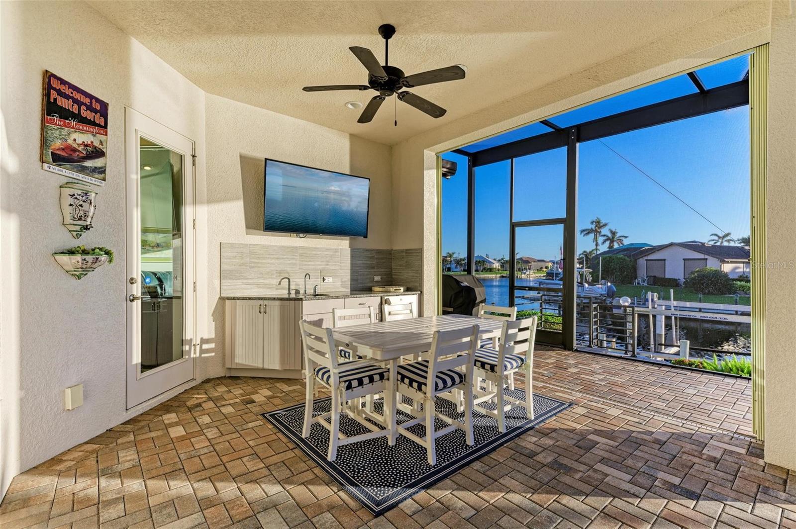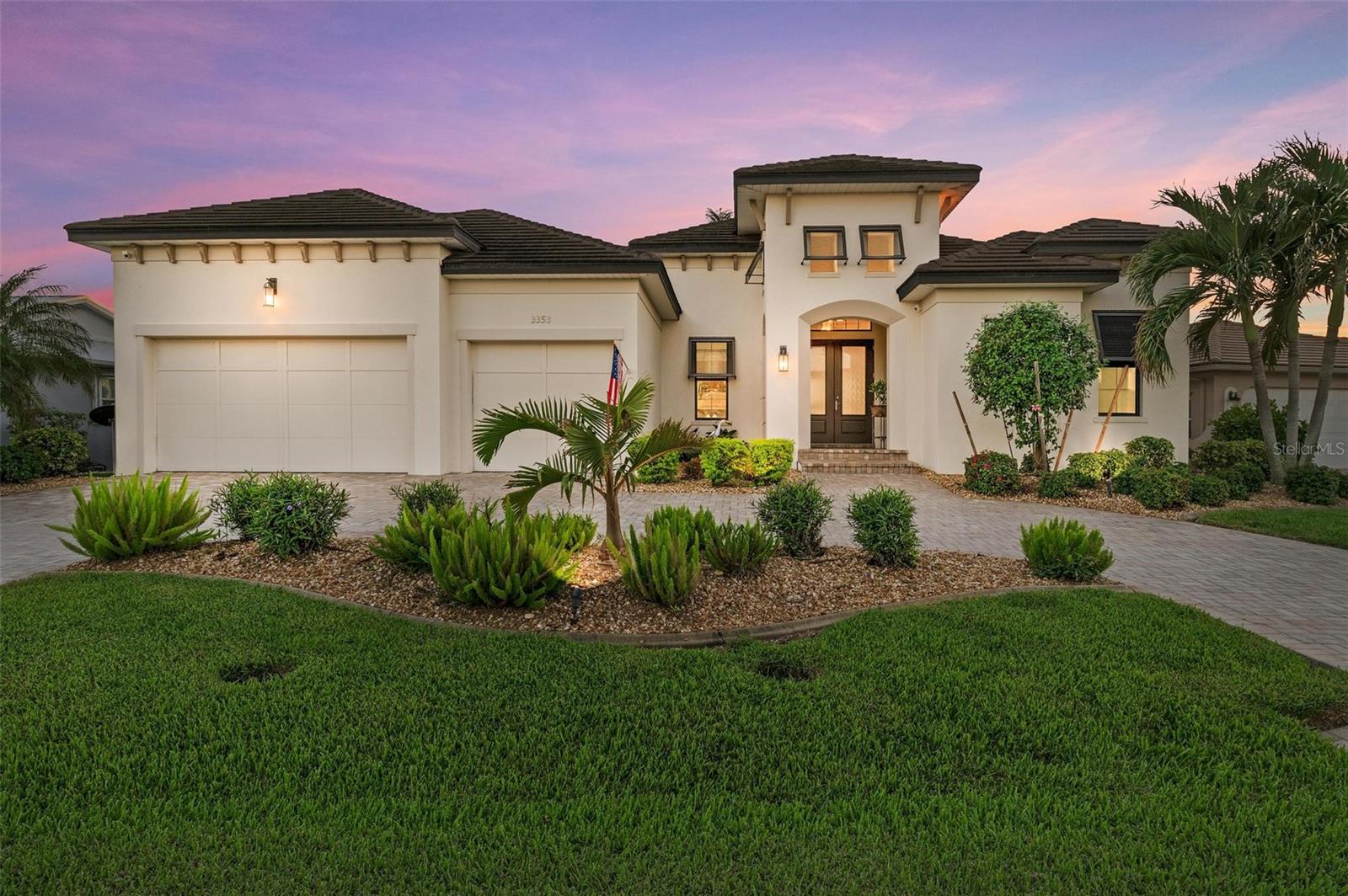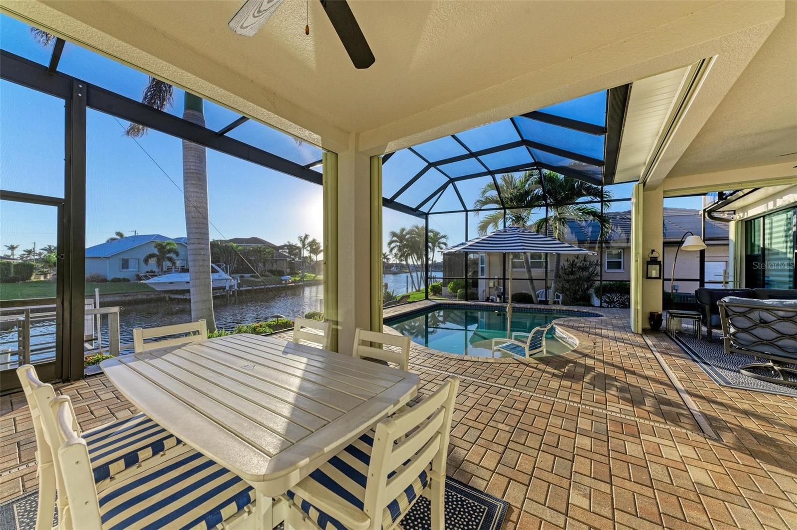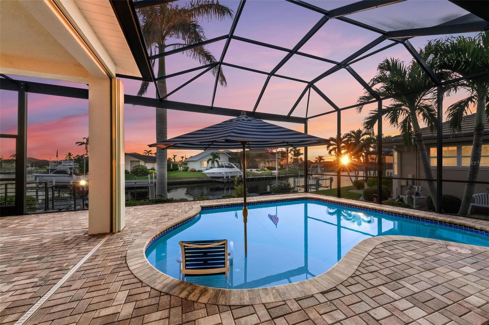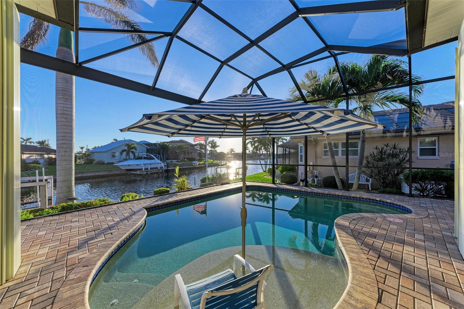 MOTIVATED SELLER FOR THIS Incredible 2016 built SOUTHERN EXPOSURE Turnberry II by Arthur Rutenberg WATERFRONT POOL HOME with DOCK/LIFT, 3 bedrooms, 3 bathrooms, a den, a 3-car garage and gorgeous finishes awaits new owners! Notice the incredible curb appeal with the architectural upgrades chosen including corbel details, a high-hat entry, large circular driveway, upgraded landscaping, and low voltage lighting. Inside the entry take in the niches with custom wallpaper applications, tray ceiling designs, 12' ceilings and 8' doors, beautiful tile and wood floors, custom lighting, and so much more! The open concept floor plan in ideal for entertaining with a spacious great room with coffered ceilings and a wall of pocket sliding glass doors all connected to the kitchen/dining rooms and outdoor spaces. The gourmet kitchen is a dream, with stone counters and custom cabinetry with glass front doors and both in-cabinet and under-cabinet lighting, upgraded stainless steel appliances, a breakfast bar, and a large walk-in pantry. The dining room has a custom round tray ceiling and aquarium glass windows to take in the outdoor views. To the right side of the home, the primary suite is a cozy retreat, with a separate sitting area with a wall of windows with Hunter Douglas blinds, a great space for large furniture, and is connected to a spa-like bathroom with private water closet, separate free-standing tub, large glass shower and massive walk-in closet with organizers. On the opposite side of the home, off the kitchen, find a great welcome center that connects to the garage with a built-in storage room with A/C, or it can be turned back into a 3 car garage. Notice the whole home generator JUST ADDED with buried propane tank for maximum hurricane protection/efficiency! Back inside, off of the welcome center, there is a spacious laundry room with great cabinets and sink, and at the opposite end of the welcome center, a spacious guest suite awaits, with en-suite bathroom with shower and walk-in closet. At the front of the home, a luxurious den with a wall of windows to take in the views and remote-control Hunter Douglas blinds is a wonderful space. Lastly, inside, find a guest bathroom with access to the pool and a 3rd bedroom with built-in storage (currently used as an office). Outside, there is an incredible heated pool with sun shelf, and great entertaining spaces, with two separate areas for both dining and relaxing, all overlooking the beautiful water views and glorious sunsets. Owners have added a separate patio outside of the lanai and an extended walkway to the dock with lift and 63' of city maintained concrete seawall, and great deep water sailboat access to Charlotte Harbor and the Gulf of Mexico! This home has incredible features and upgrades, so be sure to ask for the FEATURES SHEET & CLICK THE FULL VIRTUAL TOUR LINKS FOR ADDITIONAL DETAILS! Nearby to great golfing, shopping, restaurants, parks, Downtown Punta Gorda, I-75, and the PGD airport, this home is ideal. Schedule your showing today!