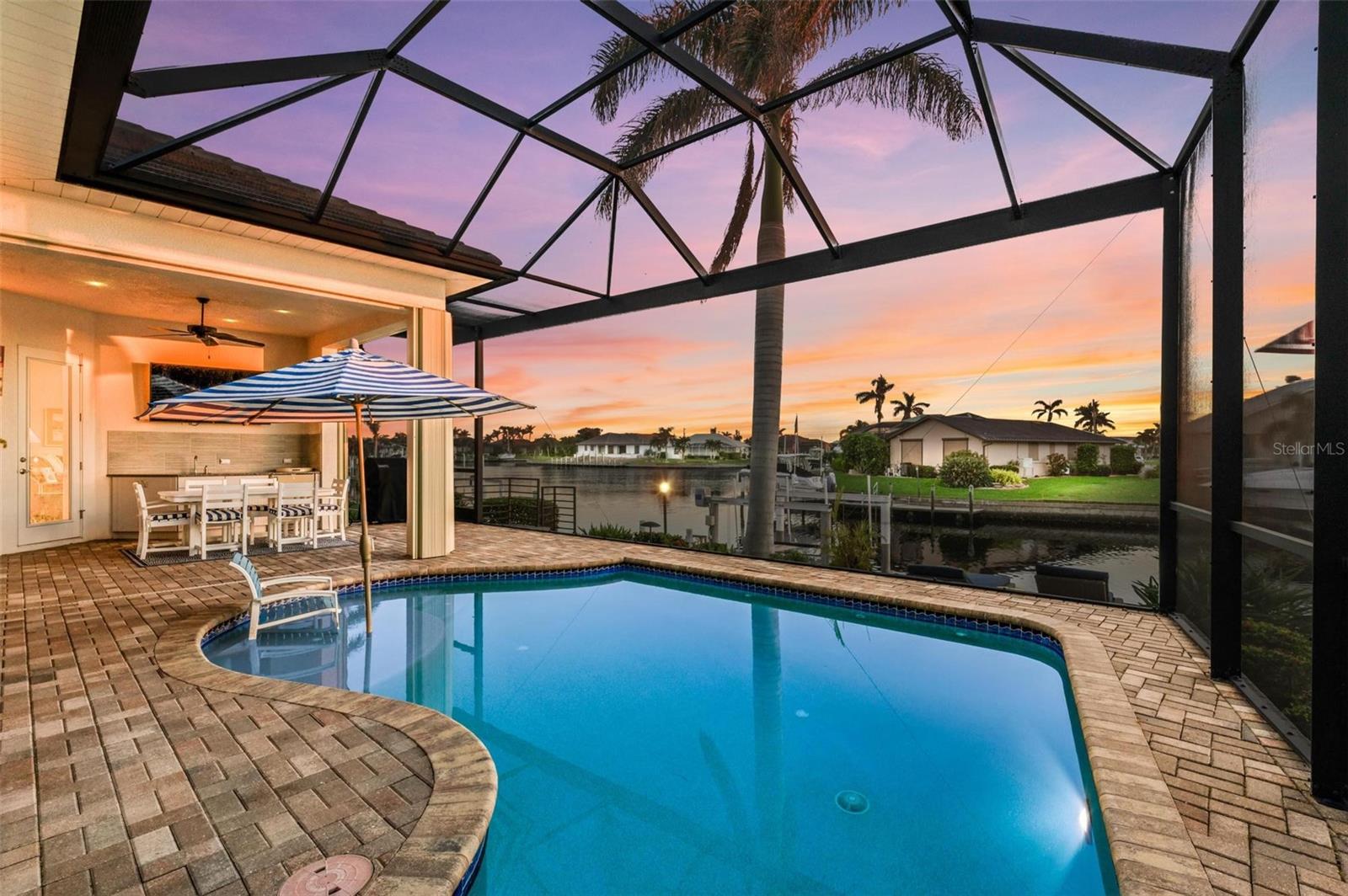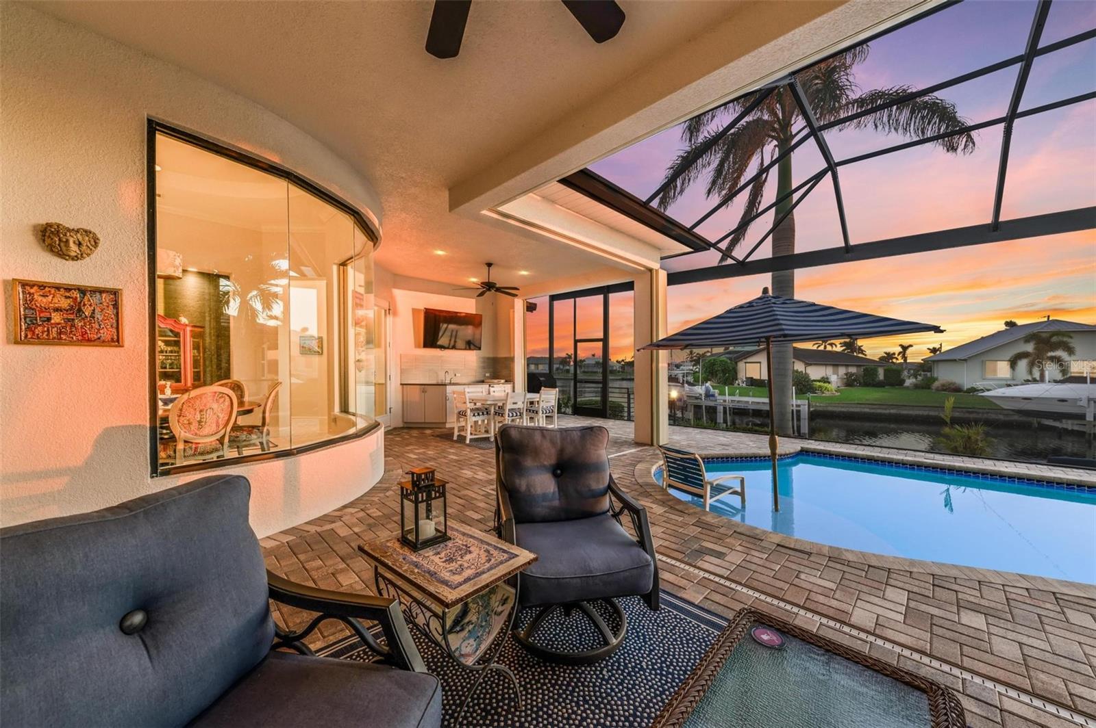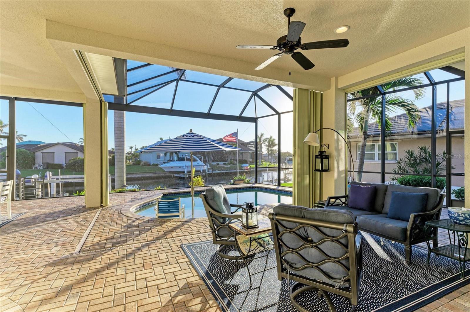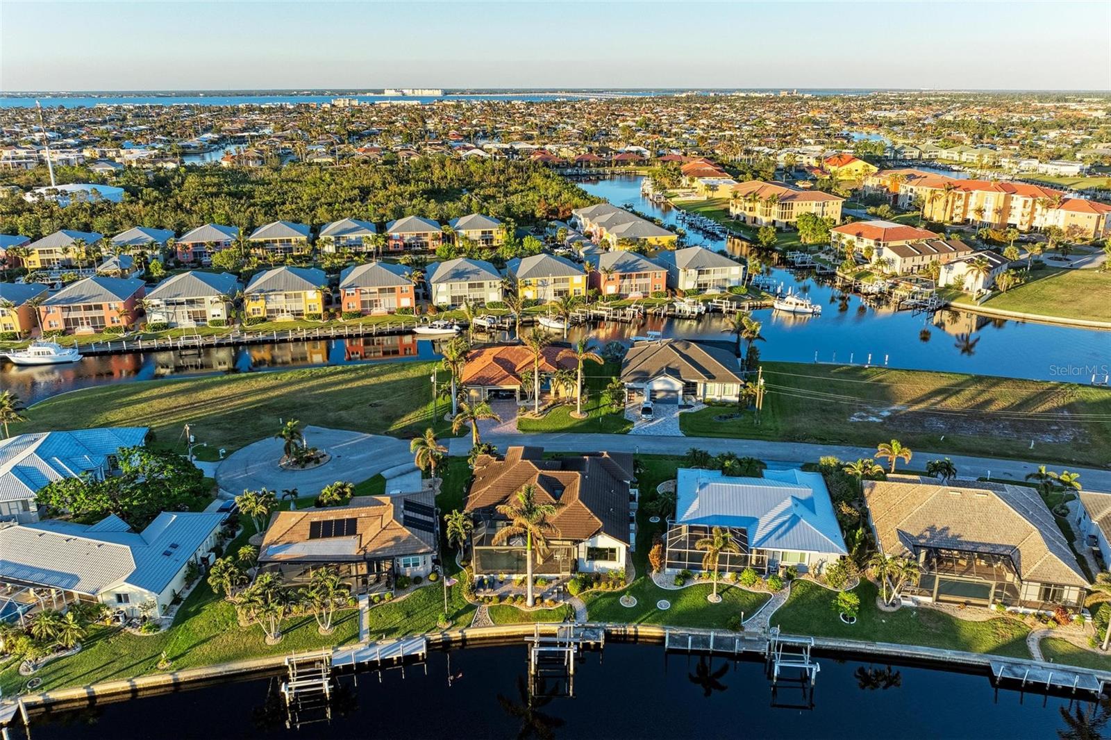 MOTIVATED SELLER FOR THIS Incredible 2016 built SOUTHERN EXPOSURE Turnberry II by Arthur Rutenberg WATERFRONT POOL HOME with DOCK/LIFT, 3 bedrooms, 3 bathrooms, a den, a 3-car garage and gorgeous finishes awaits new owners! Notice the incredible curb appeal with the architectural upgrades chosen including corbel details, a high-hat entry, large circular driveway, upgraded landscaping, and low voltage lighting. Inside the entry take in the niches with custom wallpaper applications, tray ceiling designs, 12' ceilings and 8' doors, beautiful tile and wood floors, custom lighting, and so much more! The open concept floor plan in ideal for entertaining with a spacious great room with coffered ceilings and a wall of pocket sliding glass doors all connected to the kitchen/dining rooms and outdoor spaces. The gourmet kitchen is a dream, with stone counters and custom cabinetry with glass front doors and both in-cabinet and under-cabinet lighting, upgraded stainless steel appliances, a breakfast bar, and a large walk-in pantry. The dining room has a custom round tray ceiling and aquarium glass windows to take in the outdoor views. To the right side of the home, the primary suite is a cozy retreat, with a separate sitting area with a wall of windows with Hunter Douglas blinds, a great space for large furniture, and is connected to a spa-like bathroom with private water closet, separate free-standing tub, large glass shower and massive walk-in closet with organizers. On the opposite side of the home, off the kitchen, find a great welcome center that connects to the garage with a built-in storage room with A/C, or it can be turned back into a 3 car garage. Notice the whole home generator JUST ADDED with buried propane tank for maximum hurricane protection/efficiency! Back inside, off of the welcome center, there is a spacious laundry room with great cabinets and sink, and at the opposite end of the welcome center, a spacious guest suite awaits, with en-suite bathroom with shower and walk-in closet. At the front of the home, a luxurious den with a wall of windows to take in the views and remote-control Hunter Douglas blinds is a wonderful space. Lastly, inside, find a guest bathroom with access to the pool and a 3rd bedroom with built-in storage (currently used as an office). Outside, there is an incredible heated pool with sun shelf, and great entertaining spaces, with two separate areas for both dining and relaxing, all overlooking the beautiful water views and glorious sunsets. Owners have added a separate patio outside of the lanai and an extended walkway to the dock with lift and 63' of city maintained concrete seawall, and great deep water sailboat access to Charlotte Harbor and the Gulf of Mexico! This home has incredible features and upgrades, so be sure to ask for the FEATURES SHEET & CLICK THE FULL VIRTUAL TOUR LINKS FOR ADDITIONAL DETAILS! Nearby to great golfing, shopping, restaurants, parks, Downtown Punta Gorda, I-75, and the PGD airport, this home is ideal. Schedule your showing today!