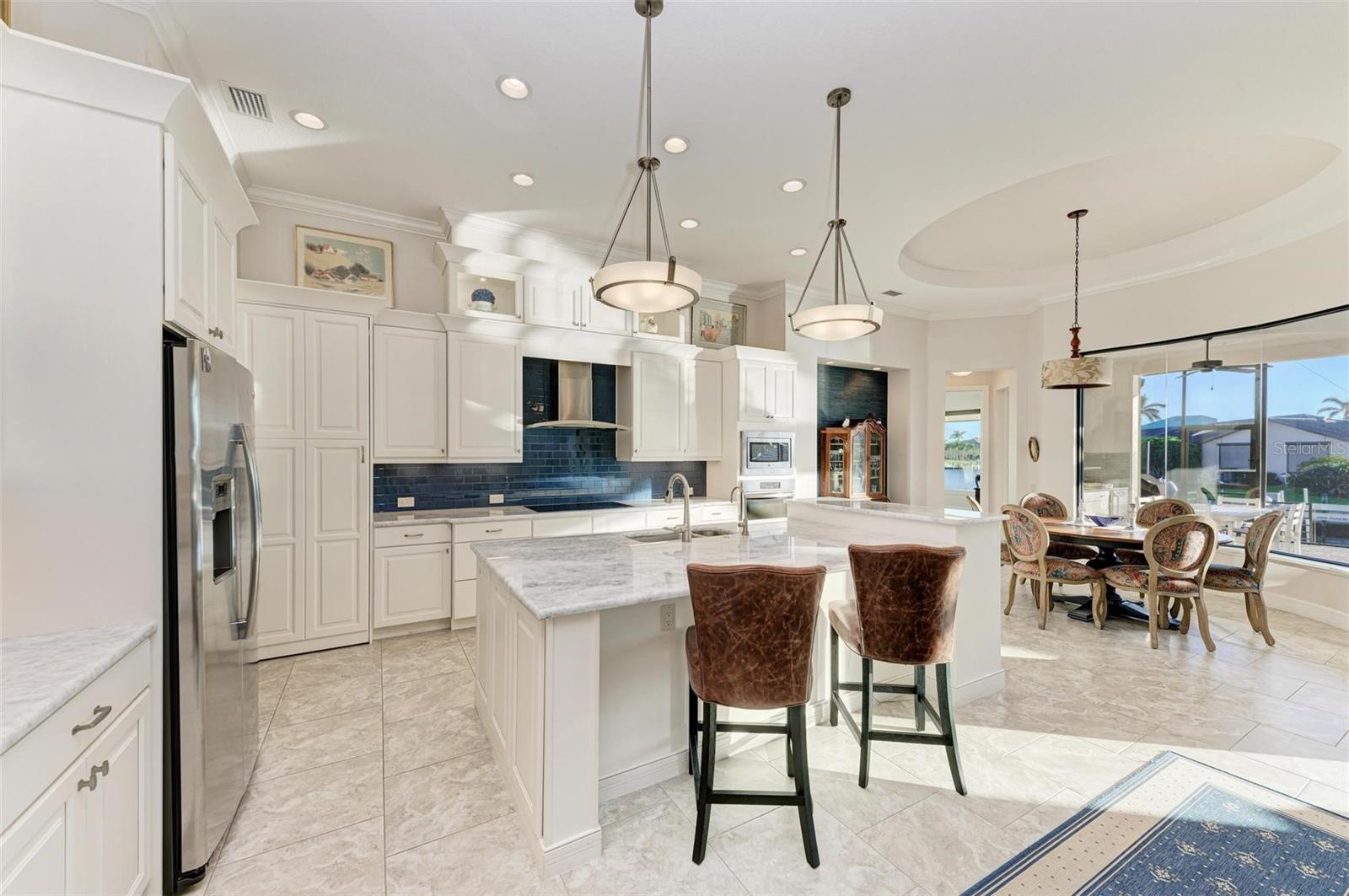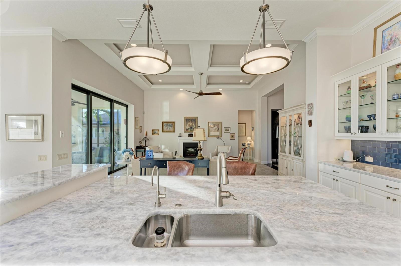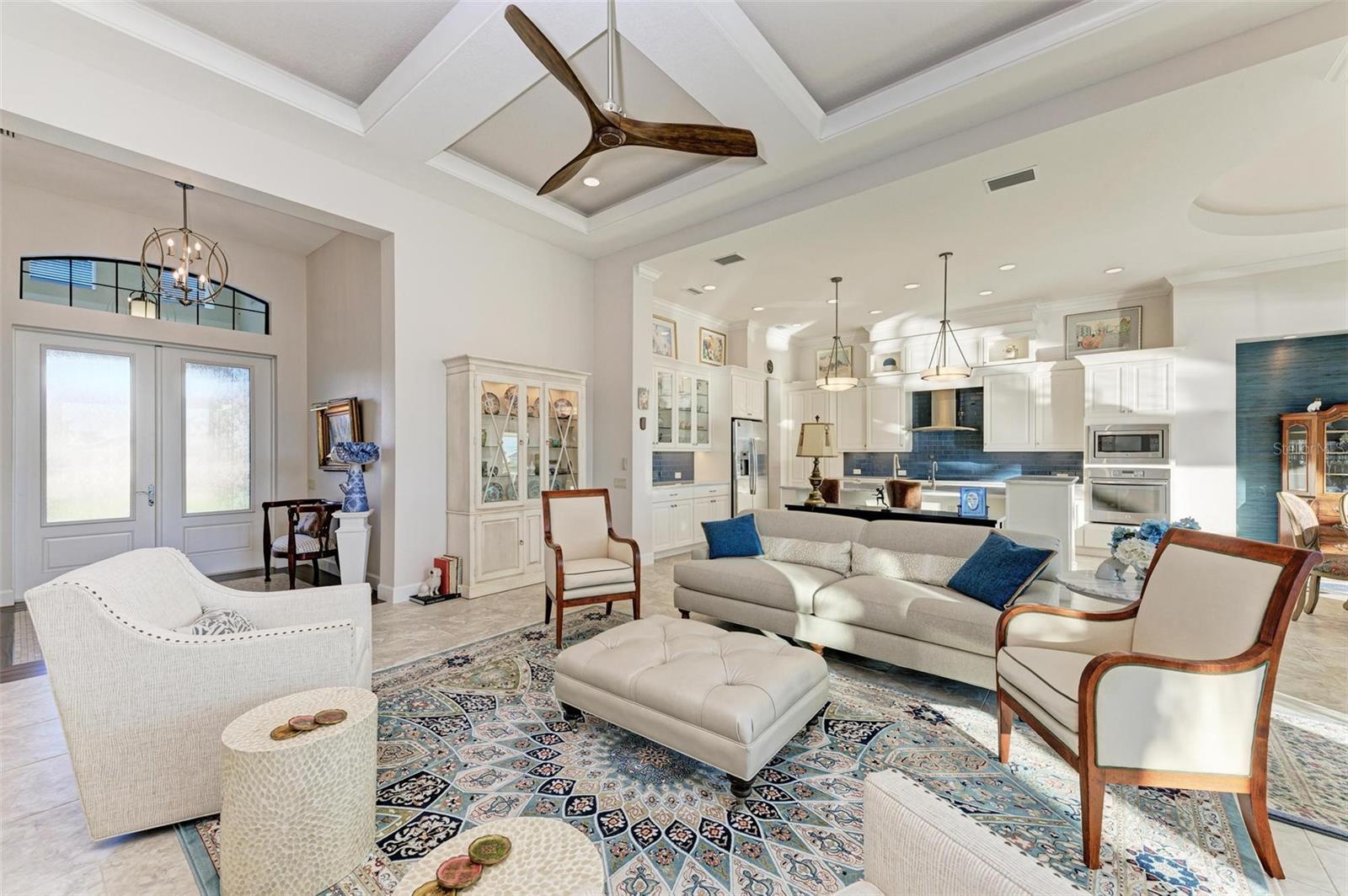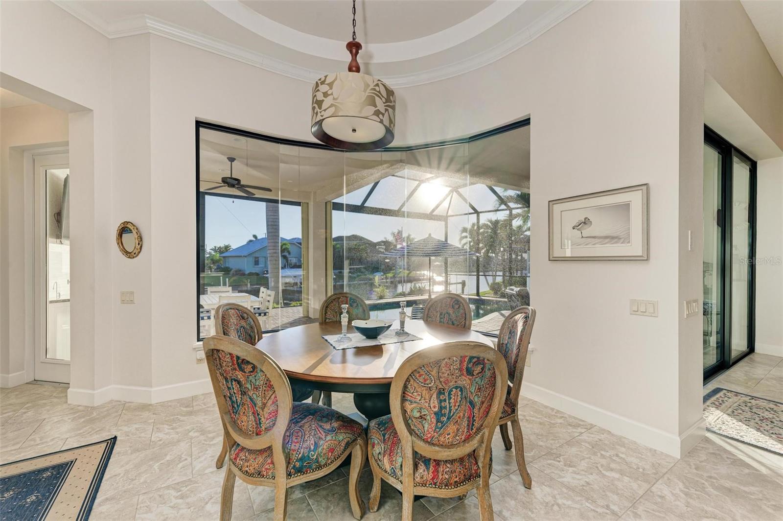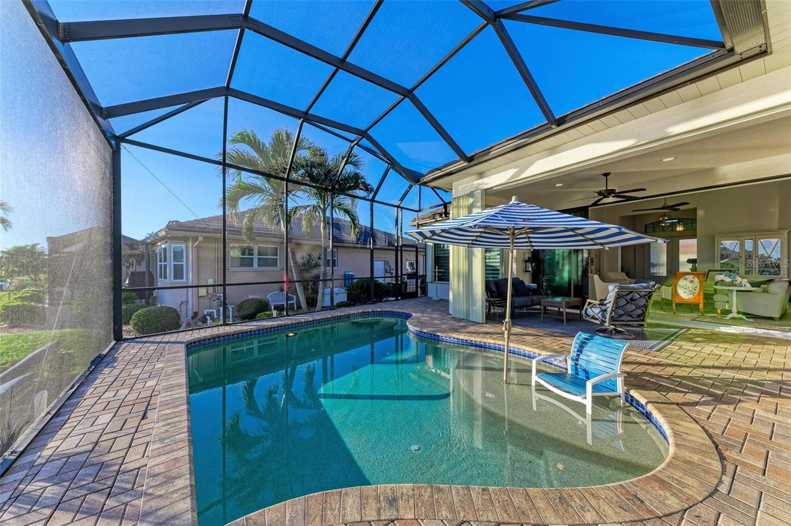 MOTIVATED SELLER FOR THIS Incredible 2016 built SOUTHERN EXPOSURE Turnberry II by Arthur Rutenberg WATERFRONT POOL HOME with DOCK/LIFT, 3 bedrooms, 3 bathrooms, a den, a 3-car garage and gorgeous finishes awaits new owners! Notice the incredible curb appeal with the architectural upgrades chosen including corbel details, a high-hat entry, large circular driveway, upgraded landscaping, and low voltage lighting. Inside the entry take in the niches with custom wallpaper applications, tray ceiling designs, 12' ceilings and 8' doors, beautiful tile and wood floors, custom lighting, and so much more! The open concept floor plan in ideal for entertaining with a spacious great room with coffered ceilings and a wall of pocket sliding glass doors all connected to the kitchen/dining rooms and outdoor spaces. The gourmet kitchen is a dream, with stone counters and custom cabinetry with glass front doors and both in-cabinet and under-cabinet lighting, upgraded stainless steel appliances, a breakfast bar, and a large walk-in pantry. The dining room has a custom round tray ceiling and aquarium glass windows to take in the outdoor views. To the right side of the home, the primary suite is a cozy retreat, with a separate sitting area with a wall of windows with Hunter Douglas blinds, a great space for large furniture, and is connected to a spa-like bathroom with private water closet, separate free-standing tub, large glass shower and massive walk-in closet with organizers. On the opposite side of the home, off the kitchen, find a great welcome center that connects to the garage with a built-in storage room with A/C, or it can be turned back into a 3 car garage. Notice the whole home generator JUST ADDED with buried propane tank for maximum hurricane protection/efficiency! Back inside, off of the welcome center, there is a spacious laundry room with great cabinets and sink, and at the opposite end of the welcome center, a spacious guest suite awaits, with en-suite bathroom with shower and walk-in closet. At the front of the home, a luxurious den with a wall of windows to take in the views and remote-control Hunter Douglas blinds is a wonderful space. Lastly, inside, find a guest bathroom with access to the pool and a 3rd bedroom with built-in storage (currently used as an office). Outside, there is an incredible heated pool with sun shelf, and great entertaining spaces, with two separate areas for both dining and relaxing, all overlooking the beautiful water views and glorious sunsets. Owners have added a separate patio outside of the lanai and an extended walkway to the dock with lift and 63' of city maintained concrete seawall, and great deep water sailboat access to Charlotte Harbor and the Gulf of Mexico! This home has incredible features and upgrades, so be sure to ask for the FEATURES SHEET & CLICK THE FULL VIRTUAL TOUR LINKS FOR ADDITIONAL DETAILS! Nearby to great golfing, shopping, restaurants, parks, Downtown Punta Gorda, I-75, and the PGD airport, this home is ideal. Schedule your showing today!