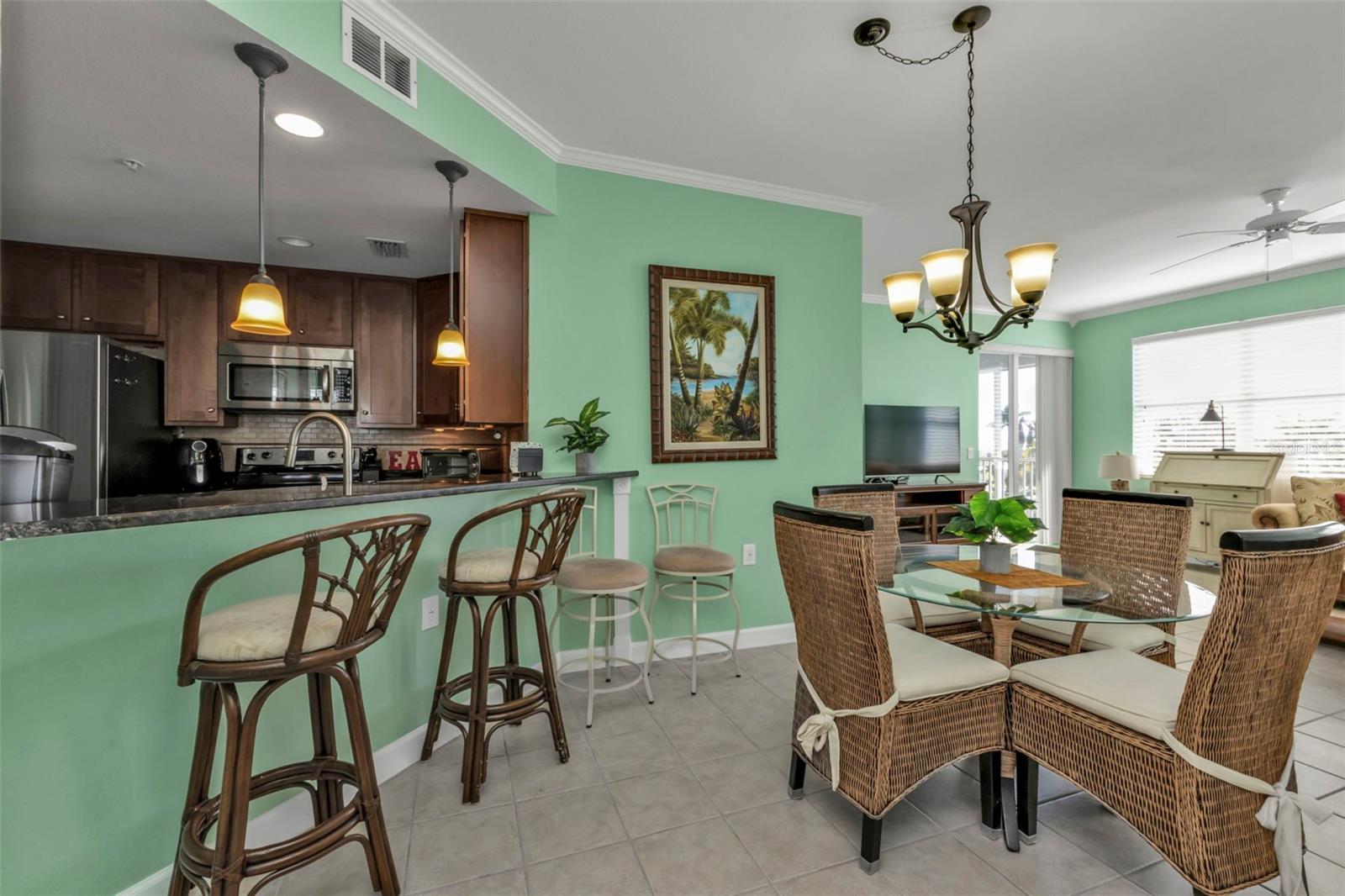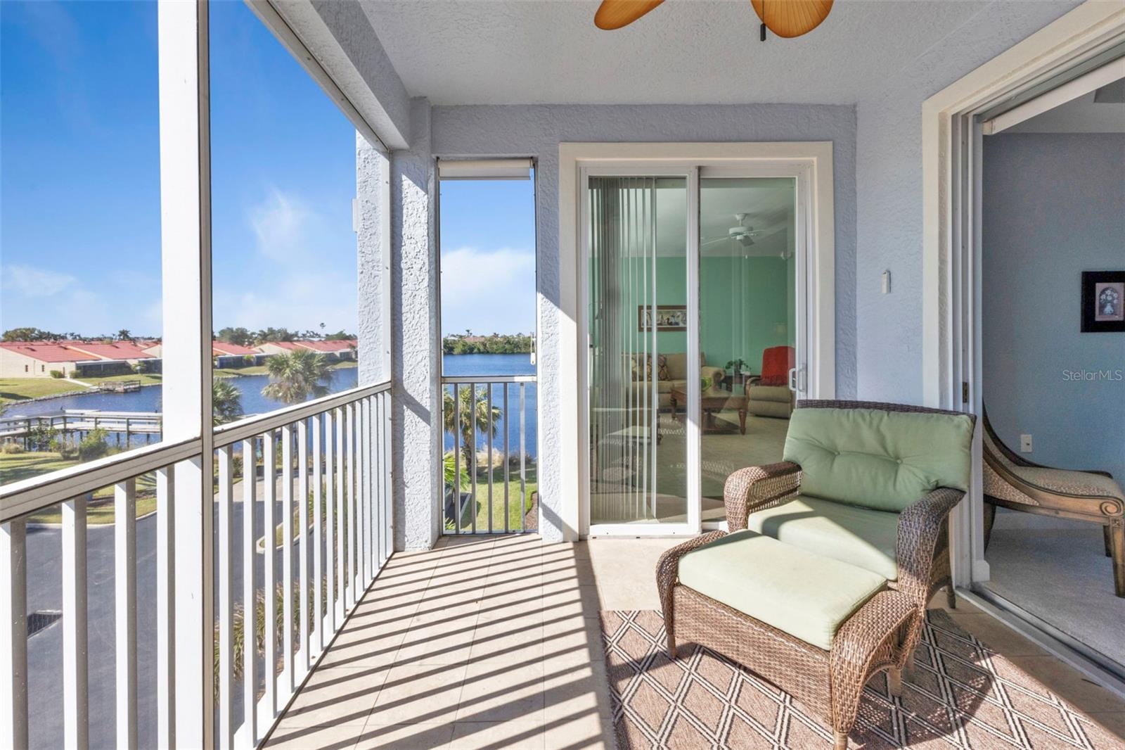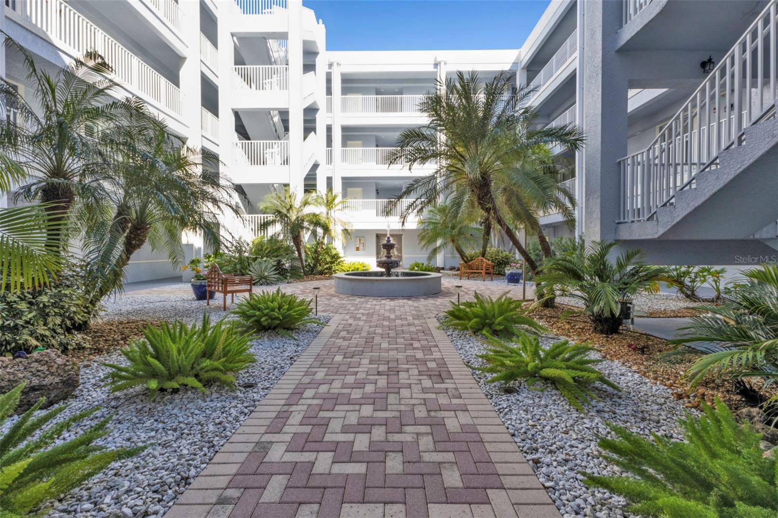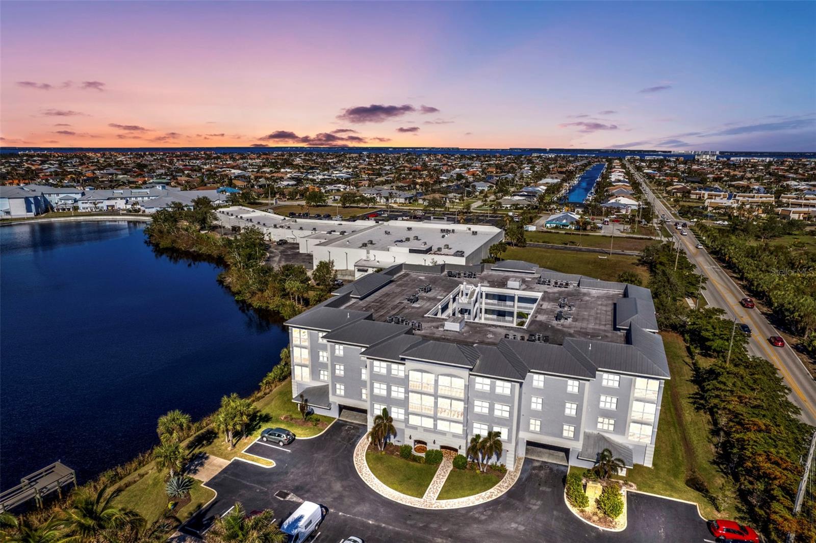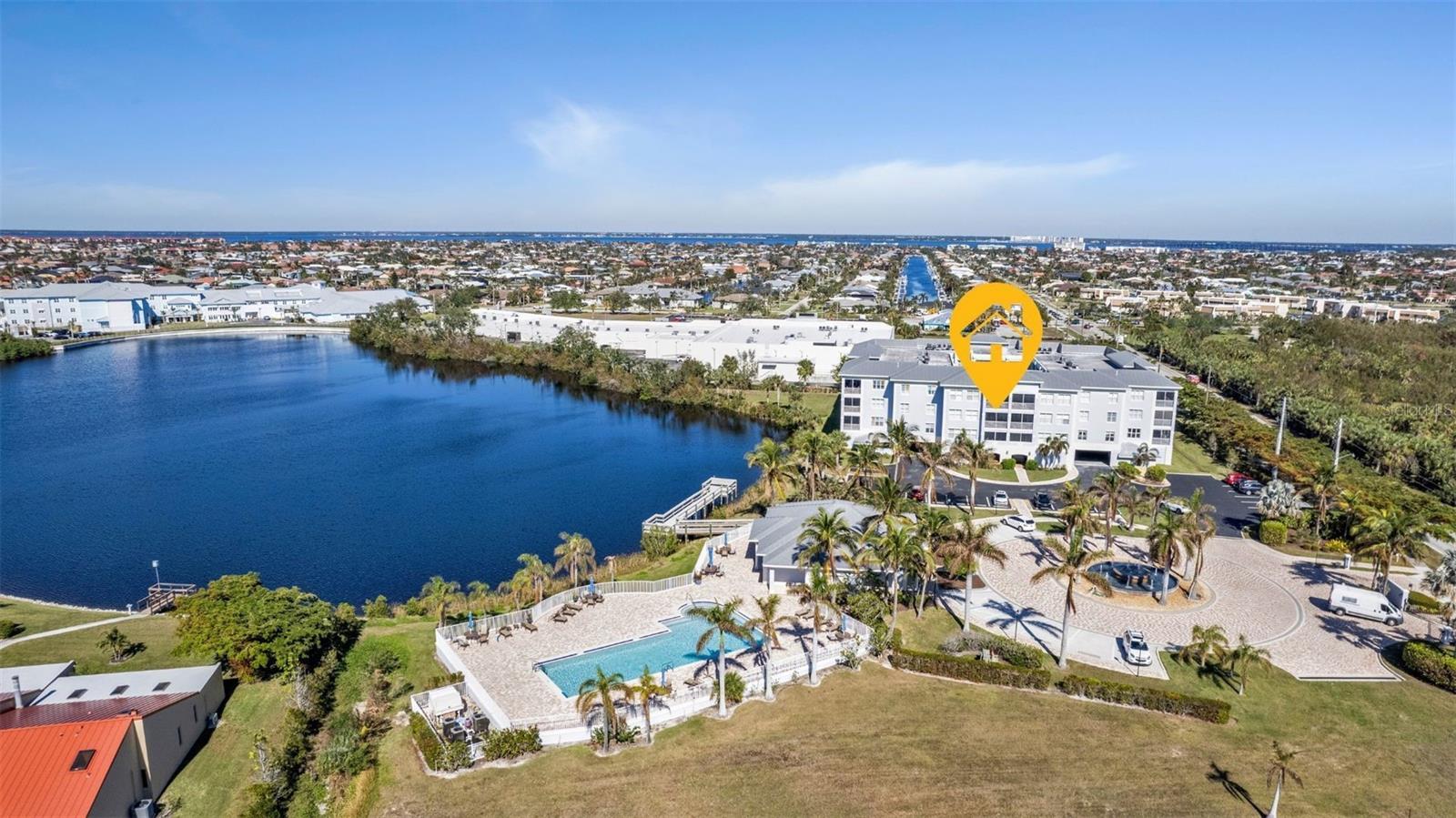 Enjoy this incredible end unit 3rd floor condo with beautiful lake and fountain views! Inside the main foyer with tray ceilings, notice the bright and open floor plan, with the kitchen with granite countertops, wooden cabinetry, and updated appliances open to the breakfast bar and dining area, also connected to the large great room! The wall of windows in the great room and the sliding glass doors to the screened lanai overlook the massive fountain and lake on property, as well as the clubhouse, pool, and fishing pier. Back near the kitchen, the first guest bedroom also has great windows and views of the courtyard, and excellent storage space. Farther down the hall, find a laundry room with great storage and a stackable washer/dryer. At the end of the hall, the guest bathroom is beautifully updated with a newer vanity and glass bowl for a sink, and a shower with glass enclosure. Last but not least, the primary bedroom is spacious with a walk-in closet, a large layout perfect for king sized furniture, and an en suite bathroom with tub/separate shower, and updated vanity with granite top. This room also has slider access to the lanai and beautiful views. The Preserve at Bal Harbor is gated, with an under building parking spot and large storage room, a beautiful clubhouse with large pool, and a massive lake with fishing pier. Nearby to all things Punta Gorda, this unit is being sold fully furnished and is ready for you! Schedule your showing today & BE SURE TO CLICK THE FULL VIRTUAL TOUR LINKS FOR DETAILS!