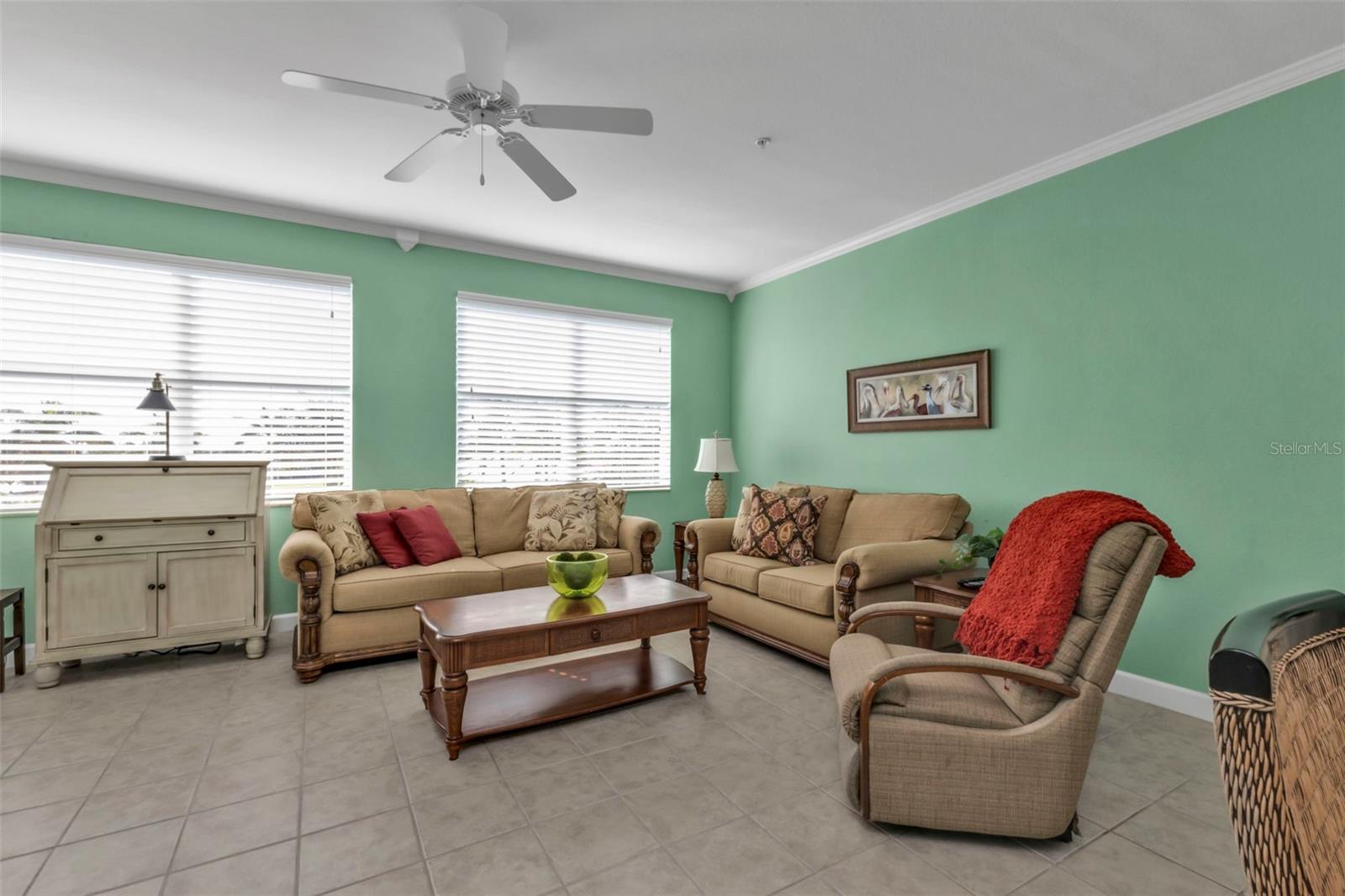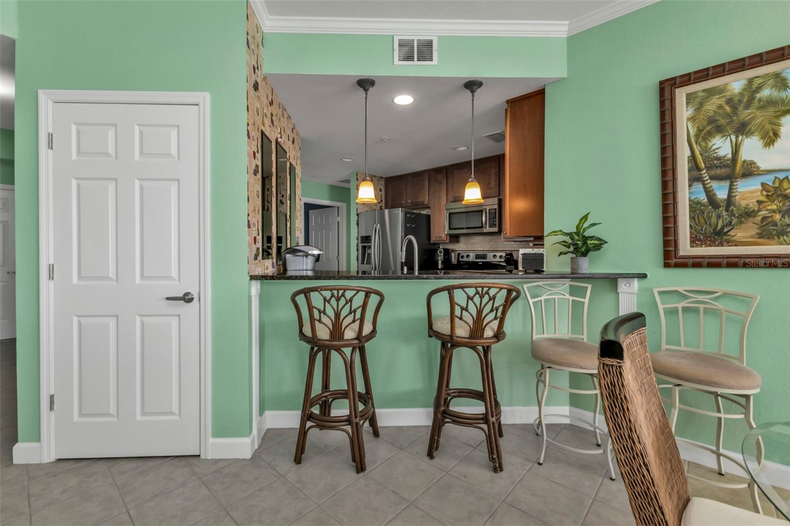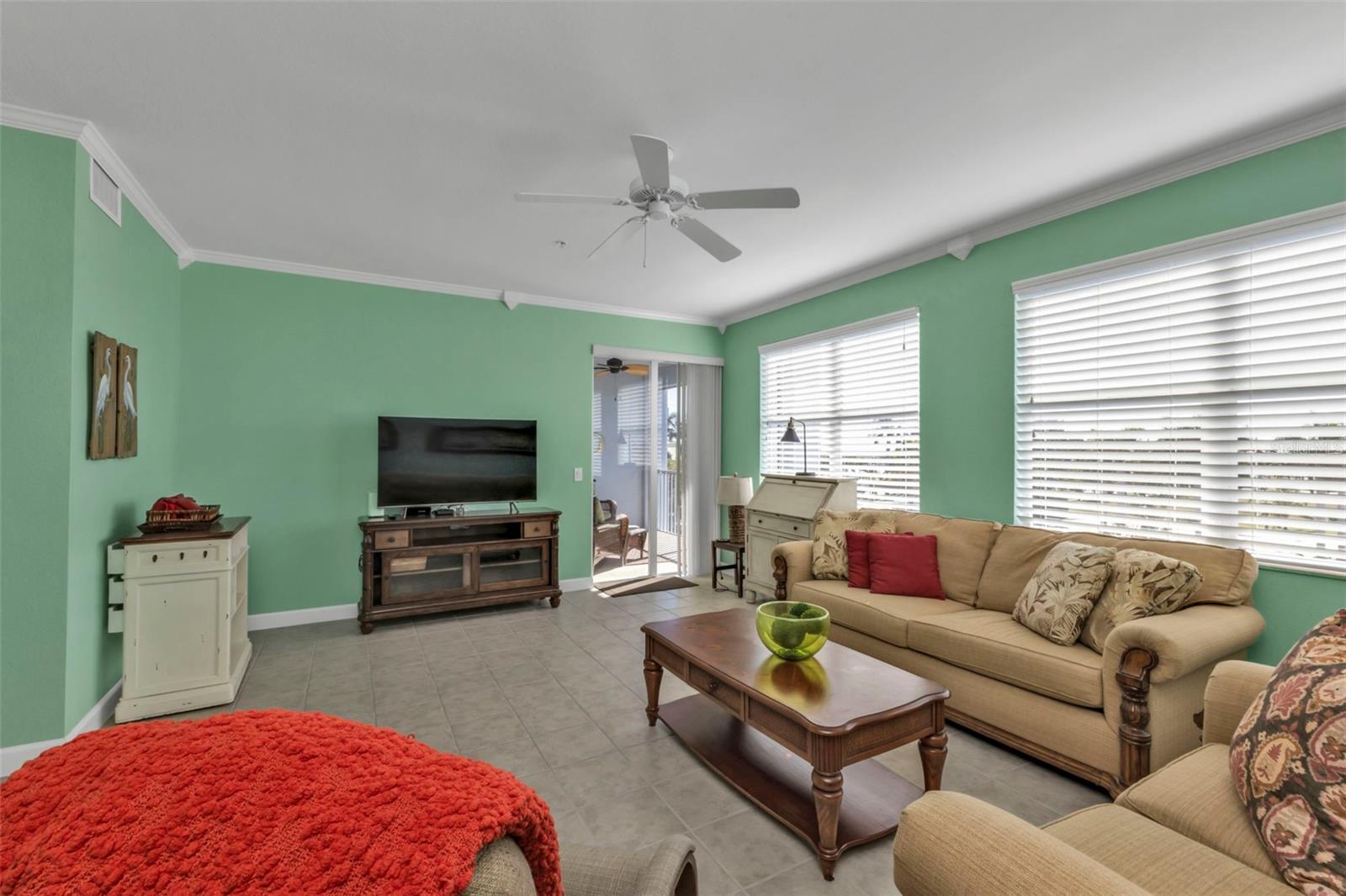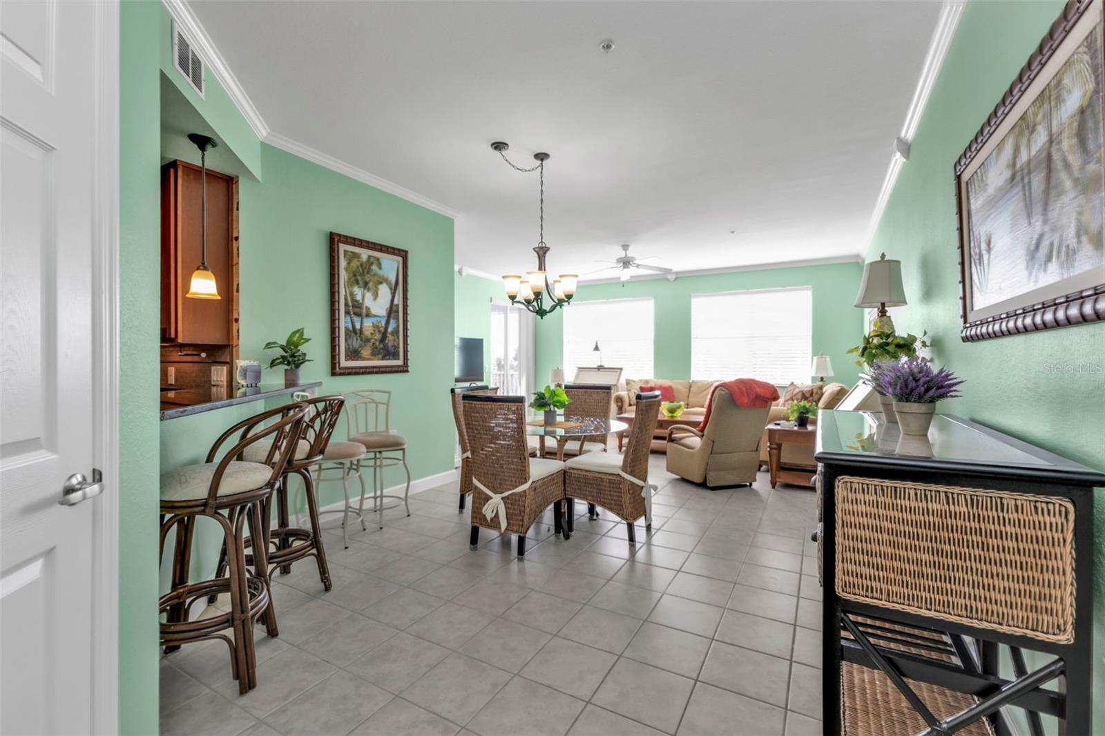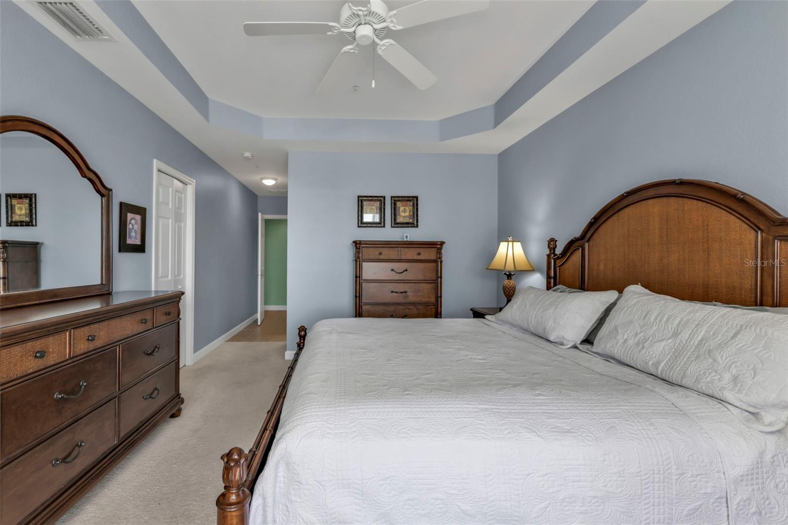 Enjoy this incredible end unit 3rd floor condo with beautiful lake and fountain views! Inside the main foyer with tray ceilings, notice the bright and open floor plan, with the kitchen with granite countertops, wooden cabinetry, and updated appliances open to the breakfast bar and dining area, also connected to the large great room! The wall of windows in the great room and the sliding glass doors to the screened lanai overlook the massive fountain and lake on property, as well as the clubhouse, pool, and fishing pier. Back near the kitchen, the first guest bedroom also has great windows and views of the courtyard, and excellent storage space. Farther down the hall, find a laundry room with great storage and a stackable washer/dryer. At the end of the hall, the guest bathroom is beautifully updated with a newer vanity and glass bowl for a sink, and a shower with glass enclosure. Last but not least, the primary bedroom is spacious with a walk-in closet, a large layout perfect for king sized furniture, and an en suite bathroom with tub/separate shower, and updated vanity with granite top. This room also has slider access to the lanai and beautiful views. The Preserve at Bal Harbor is gated, with an under building parking spot and large storage room, a beautiful clubhouse with large pool, and a massive lake with fishing pier. Nearby to all things Punta Gorda, this unit is being sold fully furnished and is ready for you! Schedule your showing today & BE SURE TO CLICK THE FULL VIRTUAL TOUR LINKS FOR DETAILS!