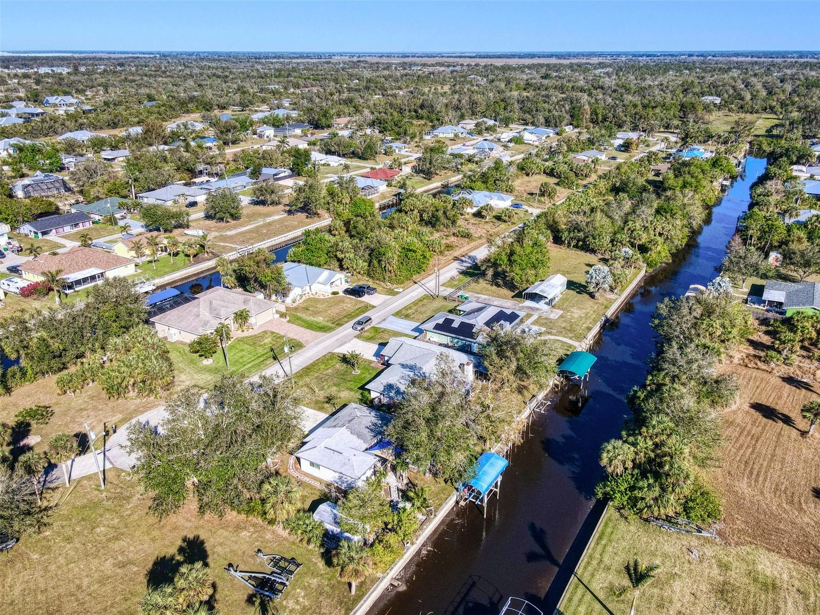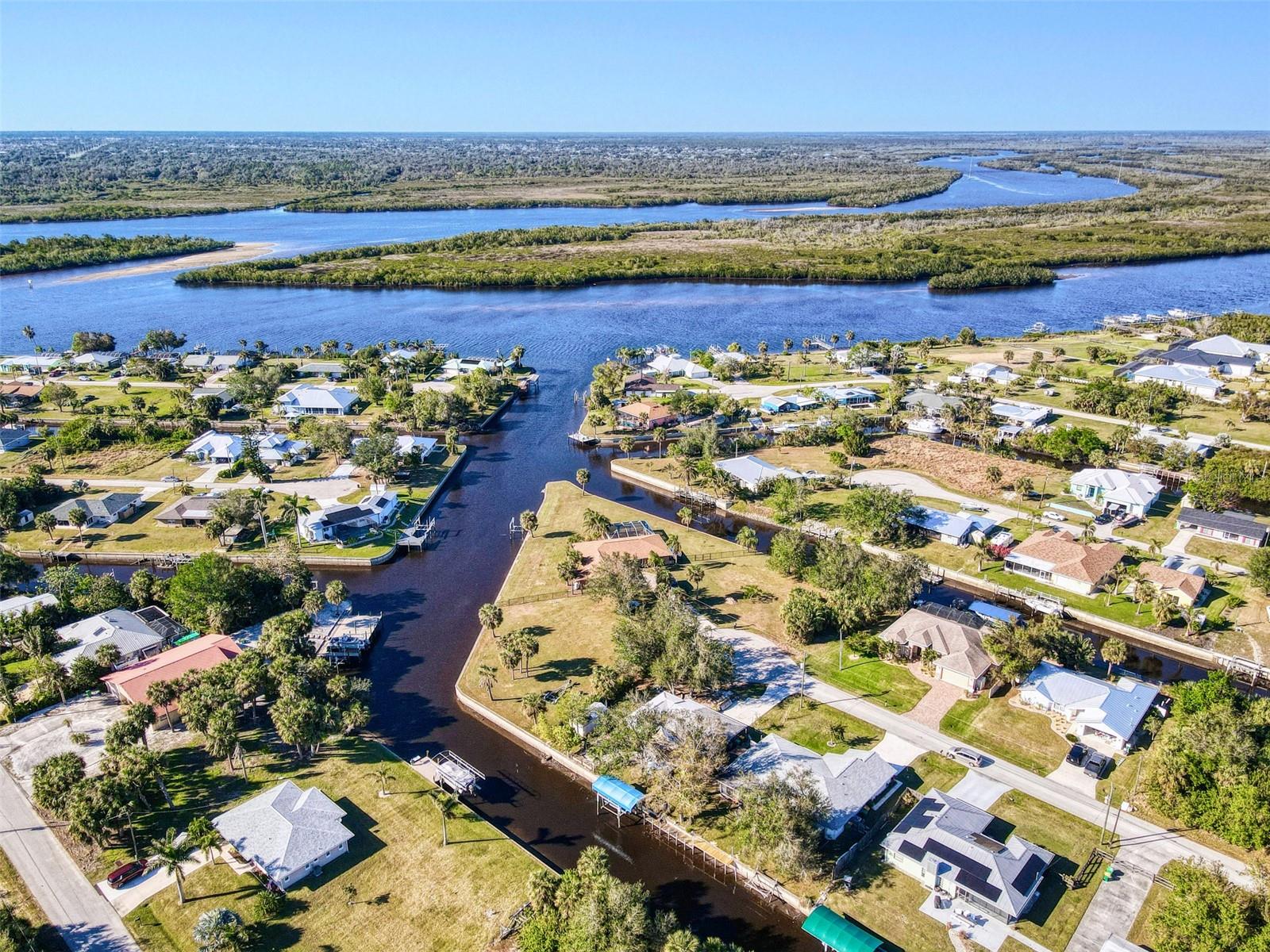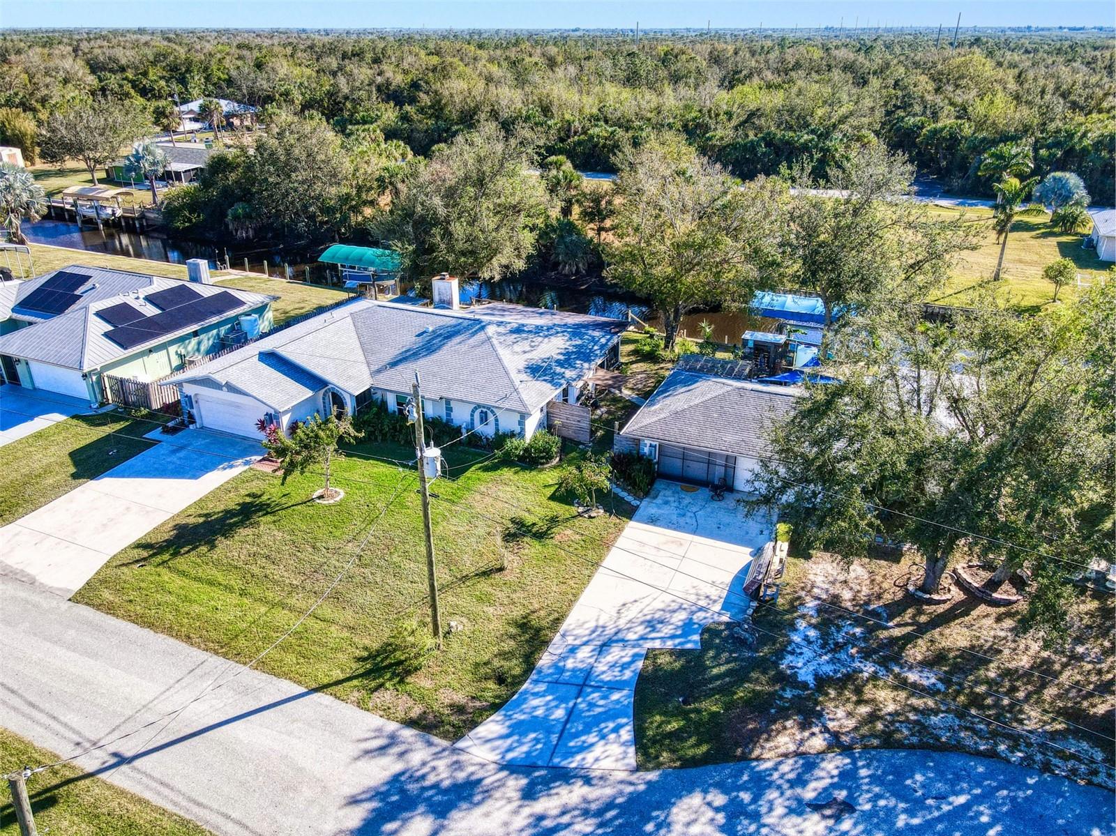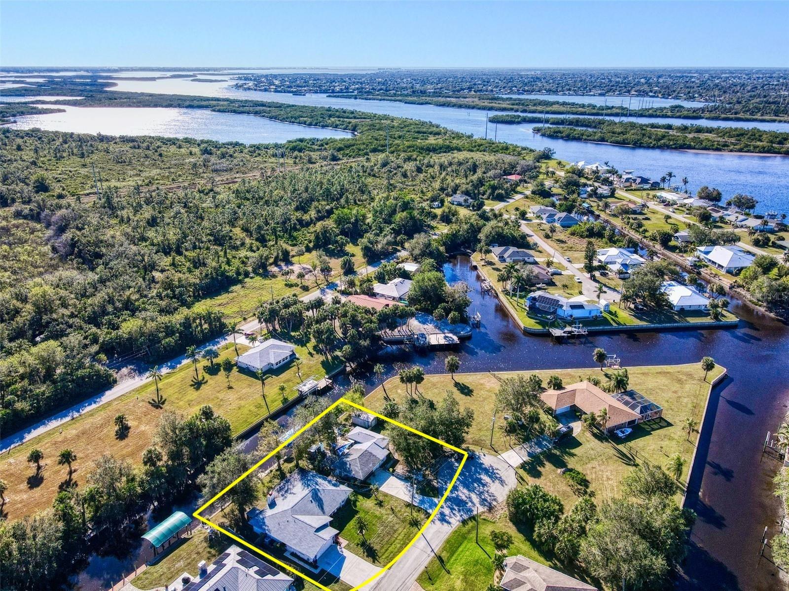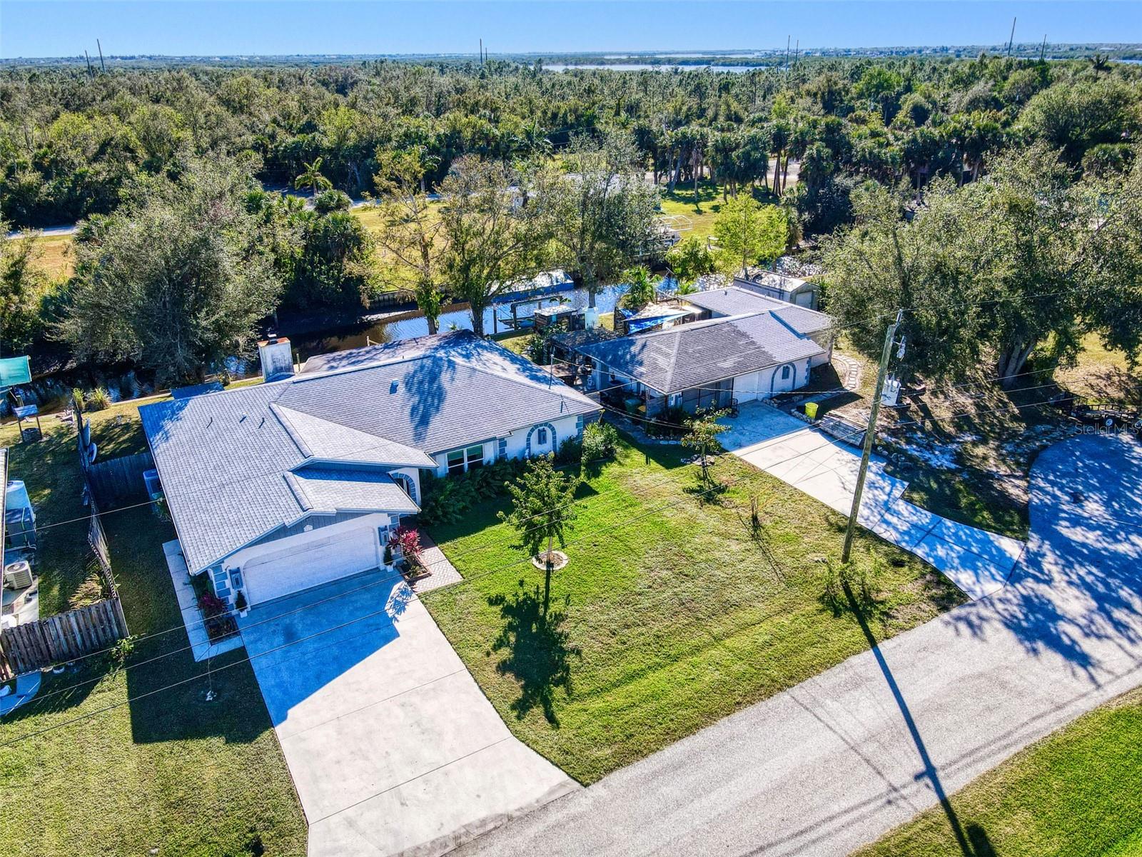 DON'T SKIP OVER THIS ONE, ITS TWO UPDATED LIVING STRUCTURES, 3 CAR GARAGES ON A DOUBLE SALT WATER LOT FOR THE PRICE OF ONE! ****ROOF 2020***NEW WHOLE HOME R.O SYSTEM 2024***NEW IMPACT WINDOWS AND MORE! Welcome to this one-of-a-kind, high-elevation waterfront property in the Palm Shores community(ONLY 15 MINUTES TO DOWNTOWN PUNTA GORDA), featuring a DETACHED 1 bed/ 1 bath, 744 SQ FT GUEST SUITE THATS ALL UNDER CENTRAL A/C and has its own 1 car garage. The current owner has a transferable flood policy at only $1,048 per year! Situated on a rare double lot (.43 acres) with 160 feet of water frontage on a 60-foot-wide deep saltwater canal, this home offers direct access by boat to the Peace River, Charlotte Harbor, and the Gulf of Mexico—ideal for boating and fishing. The detached 744 sq. ft. guest suite, built in 2020, includes a one-bedroom, one-bathroom layout with its own kitchen, in-suite laundry, vaulted ceilings, French-door entrance, and a charming paver patio overlooking the water. It offers comfort and privacy with its own A/C, hot water, septic system, and one-car garage. This versatile space is perfect for guests, a private office, workshop, or even rental income. The main house, built by Fero Homes, is a one-owner property thoughtfully renovated to blend modern luxury with timeless charm. Newer impact windows throughout ensure both natural light and peace of mind. The home features new luxury vinyl plank flooring and ceramic tile throughout, an open-concept split floor plan, and a wood-burning fireplace that adds warmth to the living area. The updated kitchen and living spaces flow seamlessly, with vaulted ceilings creating an open, airy atmosphere. Freshly painted in neutral tones, the home offers a calm, welcoming environment. A whole-home reverse osmosis system, installed in 2024, guarantees pristine water quality for both buildings. The roof was replaced in 2020, providing additional peace of mind. Step outside through the French doors to a nearly 400 sq. ft. screened lanai that expands your living space and offers spectacular water views and stunning sunsets. The private master suite includes an updated en-suite bathroom, walk-in closets, and direct access to the lanai, creating a serene retreat with natural surroundings. Outdoor enthusiasts will appreciate the 65-foot updated wood dock with a boat lift and canopy, perfect for docking your boat and enjoying immediate water access. This home offers the ultimate waterfront lifestyle, with updated features and versatile living spaces. Located in Palm Shores, this home is close to local amenities, downtown Punta Gorda, and a nearby nature preserve with trails and wildlife. For golf lovers, the community golf course provides even more outdoor recreation. Don’t miss the chance to own this waterfront gem—schedule your private tour today!