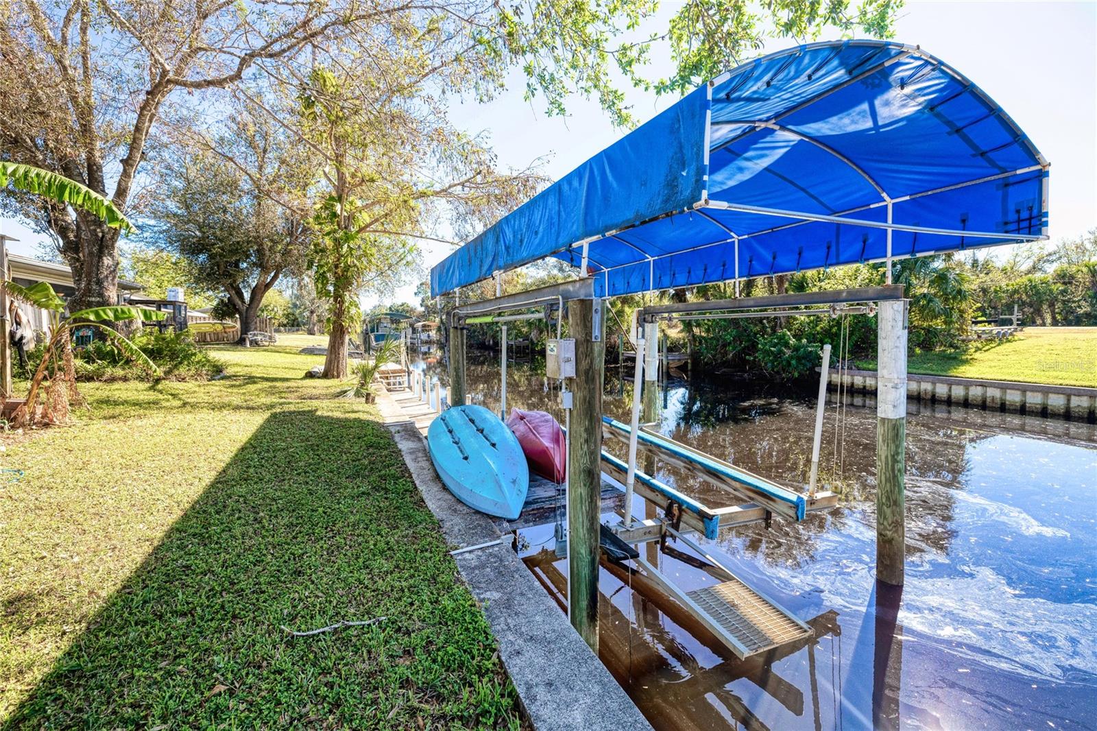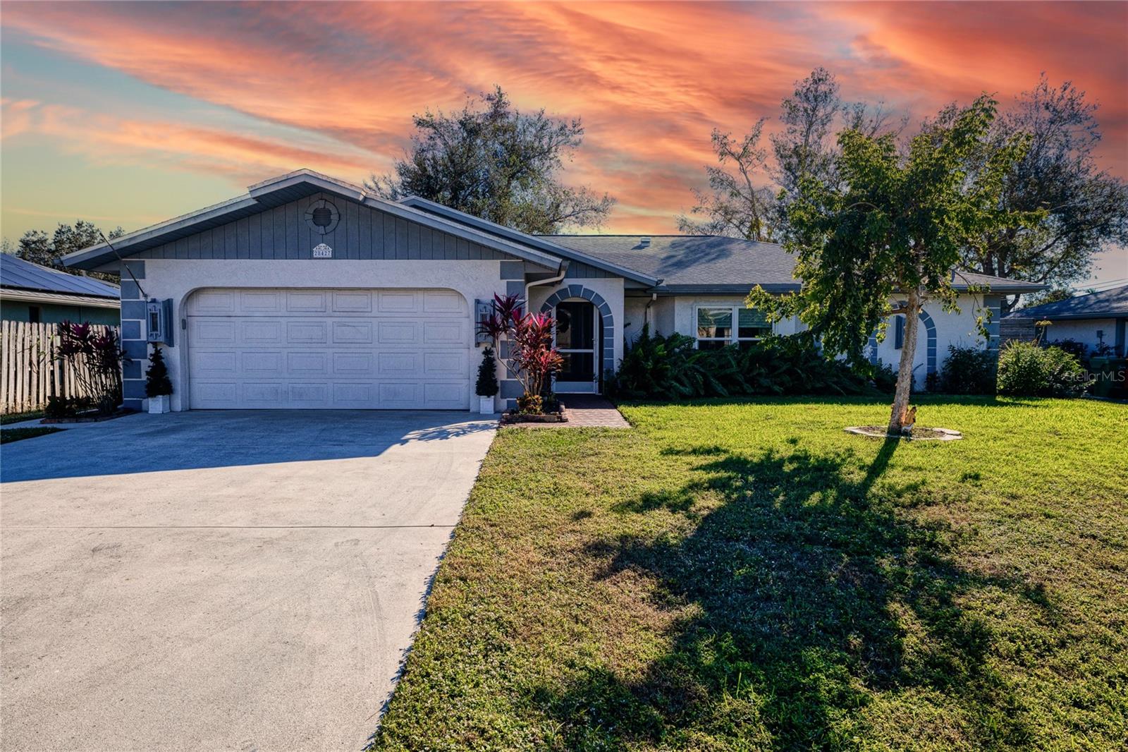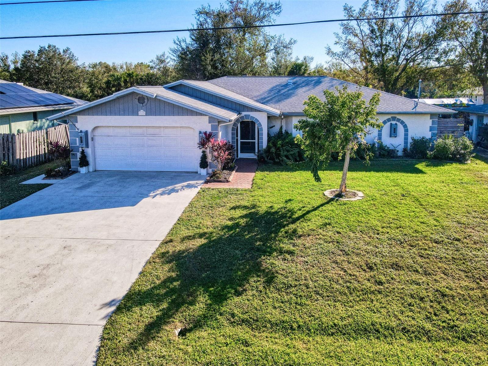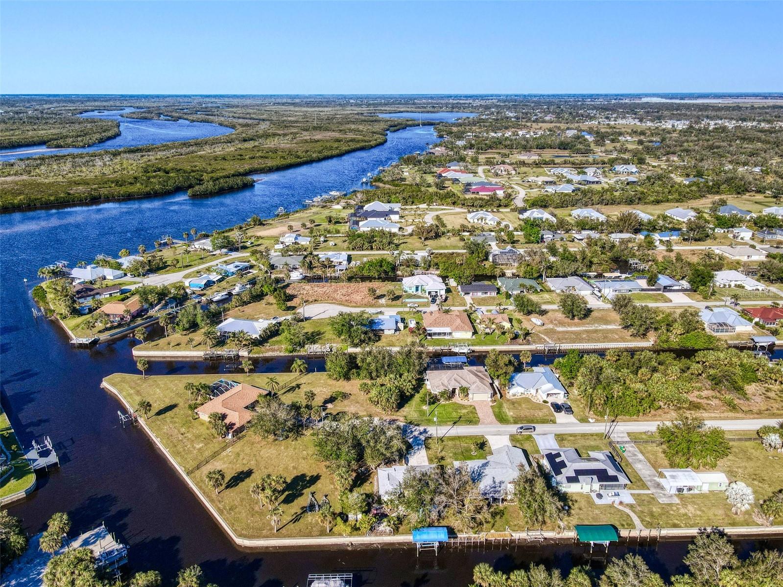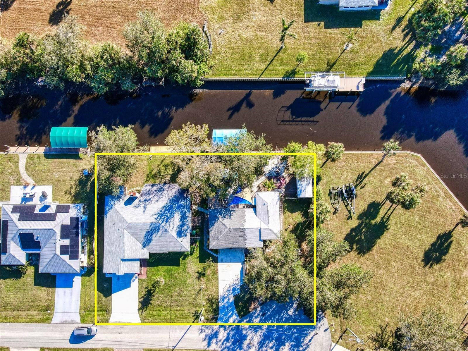 DON'T SKIP OVER THIS ONE, ITS TWO UPDATED LIVING STRUCTURES, 3 CAR GARAGES ON A DOUBLE SALT WATER LOT FOR THE PRICE OF ONE! ****ROOF 2020***NEW WHOLE HOME R.O SYSTEM 2024***NEW IMPACT WINDOWS AND MORE! Welcome to this one-of-a-kind, high-elevation waterfront property in the Palm Shores community(ONLY 15 MINUTES TO DOWNTOWN PUNTA GORDA), featuring a DETACHED 1 bed/ 1 bath, 744 SQ FT GUEST SUITE THATS ALL UNDER CENTRAL A/C and has its own 1 car garage. The current owner has a transferable flood policy at only $1,048 per year! Situated on a rare double lot (.43 acres) with 160 feet of water frontage on a 60-foot-wide deep saltwater canal, this home offers direct access by boat to the Peace River, Charlotte Harbor, and the Gulf of Mexico—ideal for boating and fishing. The detached 744 sq. ft. guest suite, built in 2020, includes a one-bedroom, one-bathroom layout with its own kitchen, in-suite laundry, vaulted ceilings, French-door entrance, and a charming paver patio overlooking the water. It offers comfort and privacy with its own A/C, hot water, septic system, and one-car garage. This versatile space is perfect for guests, a private office, workshop, or even rental income. The main house, built by Fero Homes, is a one-owner property thoughtfully renovated to blend modern luxury with timeless charm. Newer impact windows throughout ensure both natural light and peace of mind. The home features new luxury vinyl plank flooring and ceramic tile throughout, an open-concept split floor plan, and a wood-burning fireplace that adds warmth to the living area. The updated kitchen and living spaces flow seamlessly, with vaulted ceilings creating an open, airy atmosphere. Freshly painted in neutral tones, the home offers a calm, welcoming environment. A whole-home reverse osmosis system, installed in 2024, guarantees pristine water quality for both buildings. The roof was replaced in 2020, providing additional peace of mind. Step outside through the French doors to a nearly 400 sq. ft. screened lanai that expands your living space and offers spectacular water views and stunning sunsets. The private master suite includes an updated en-suite bathroom, walk-in closets, and direct access to the lanai, creating a serene retreat with natural surroundings. Outdoor enthusiasts will appreciate the 65-foot updated wood dock with a boat lift and canopy, perfect for docking your boat and enjoying immediate water access. This home offers the ultimate waterfront lifestyle, with updated features and versatile living spaces. Located in Palm Shores, this home is close to local amenities, downtown Punta Gorda, and a nearby nature preserve with trails and wildlife. For golf lovers, the community golf course provides even more outdoor recreation. Don’t miss the chance to own this waterfront gem—schedule your private tour today!