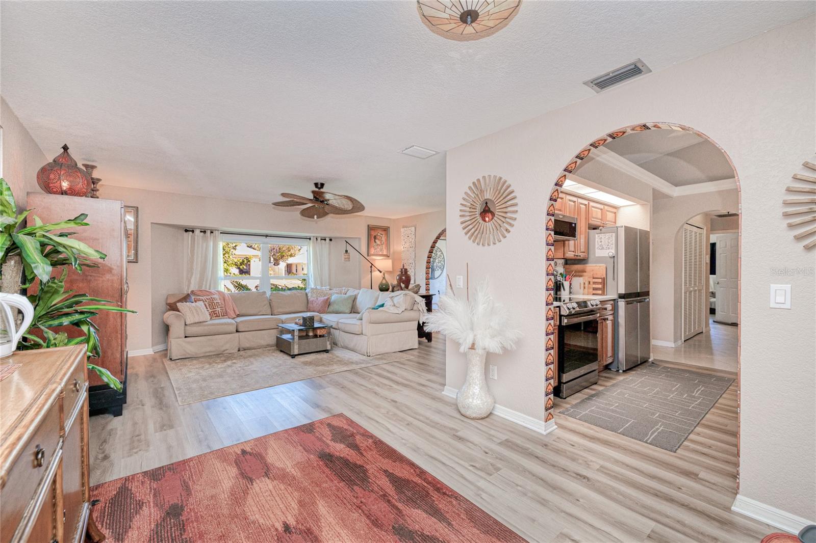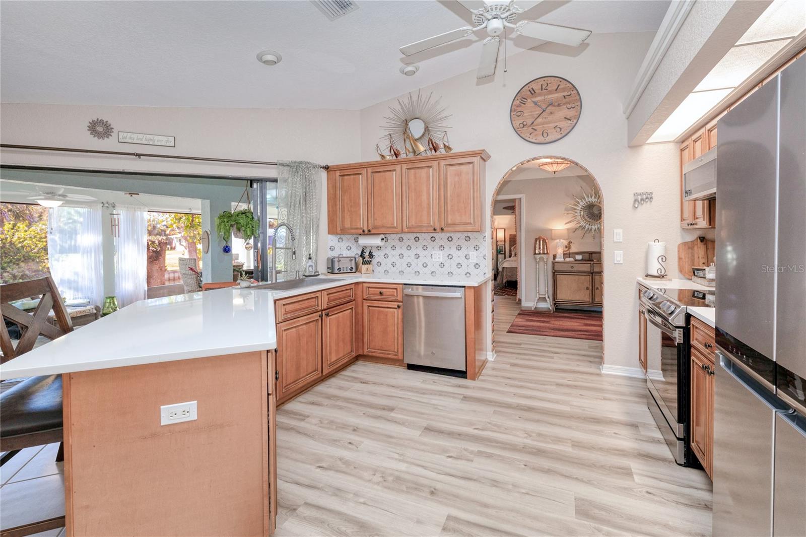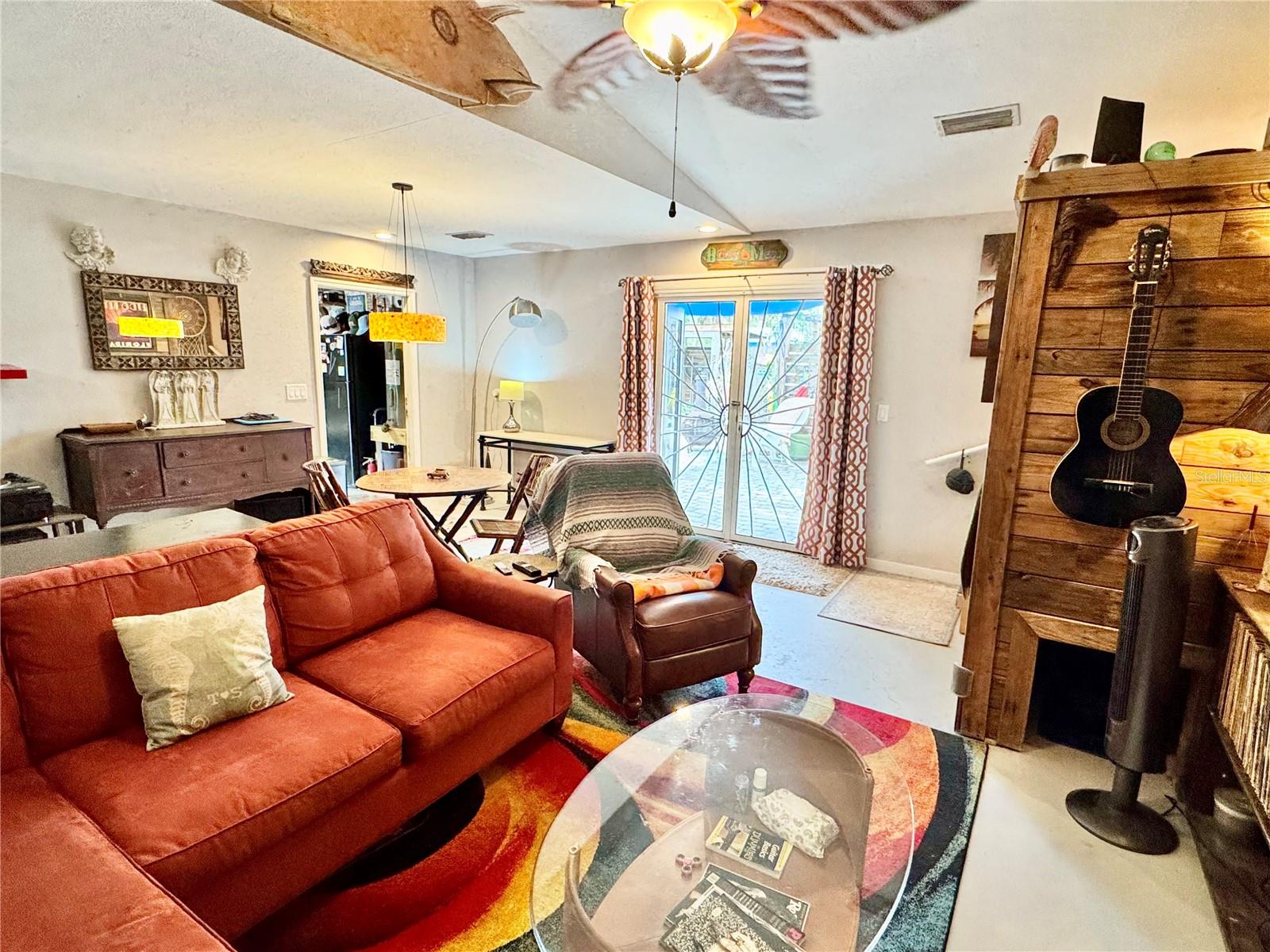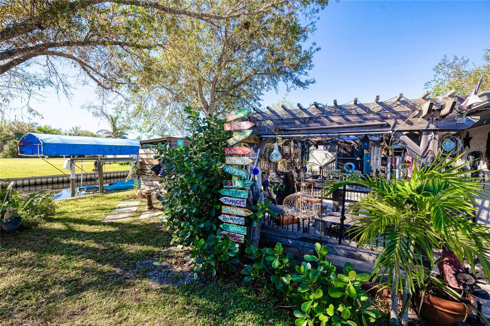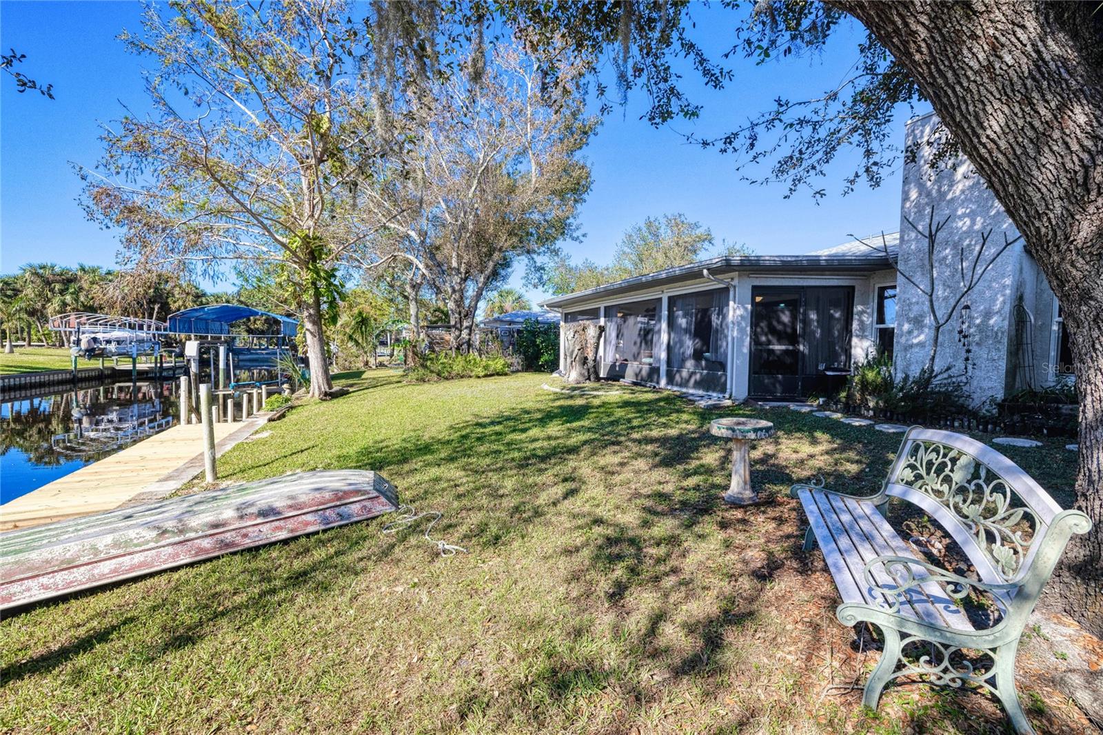 DON'T SKIP OVER THIS ONE, ITS TWO UPDATED LIVING STRUCTURES, 3 CAR GARAGES ON A DOUBLE SALT WATER LOT FOR THE PRICE OF ONE! ****ROOF 2020***NEW WHOLE HOME R.O SYSTEM 2024***NEW IMPACT WINDOWS AND MORE! Welcome to this one-of-a-kind, high-elevation waterfront property in the Palm Shores community(ONLY 15 MINUTES TO DOWNTOWN PUNTA GORDA), featuring a DETACHED 1 bed/ 1 bath, 744 SQ FT GUEST SUITE THATS ALL UNDER CENTRAL A/C and has its own 1 car garage. The current owner has a transferable flood policy at only $1,048 per year! Situated on a rare double lot (.43 acres) with 160 feet of water frontage on a 60-foot-wide deep saltwater canal, this home offers direct access by boat to the Peace River, Charlotte Harbor, and the Gulf of Mexico—ideal for boating and fishing. The detached 744 sq. ft. guest suite, built in 2020, includes a one-bedroom, one-bathroom layout with its own kitchen, in-suite laundry, vaulted ceilings, French-door entrance, and a charming paver patio overlooking the water. It offers comfort and privacy with its own A/C, hot water, septic system, and one-car garage. This versatile space is perfect for guests, a private office, workshop, or even rental income. The main house, built by Fero Homes, is a one-owner property thoughtfully renovated to blend modern luxury with timeless charm. Newer impact windows throughout ensure both natural light and peace of mind. The home features new luxury vinyl plank flooring and ceramic tile throughout, an open-concept split floor plan, and a wood-burning fireplace that adds warmth to the living area. The updated kitchen and living spaces flow seamlessly, with vaulted ceilings creating an open, airy atmosphere. Freshly painted in neutral tones, the home offers a calm, welcoming environment. A whole-home reverse osmosis system, installed in 2024, guarantees pristine water quality for both buildings. The roof was replaced in 2020, providing additional peace of mind. Step outside through the French doors to a nearly 400 sq. ft. screened lanai that expands your living space and offers spectacular water views and stunning sunsets. The private master suite includes an updated en-suite bathroom, walk-in closets, and direct access to the lanai, creating a serene retreat with natural surroundings. Outdoor enthusiasts will appreciate the 65-foot updated wood dock with a boat lift and canopy, perfect for docking your boat and enjoying immediate water access. This home offers the ultimate waterfront lifestyle, with updated features and versatile living spaces. Located in Palm Shores, this home is close to local amenities, downtown Punta Gorda, and a nearby nature preserve with trails and wildlife. For golf lovers, the community golf course provides even more outdoor recreation. Don’t miss the chance to own this waterfront gem—schedule your private tour today!