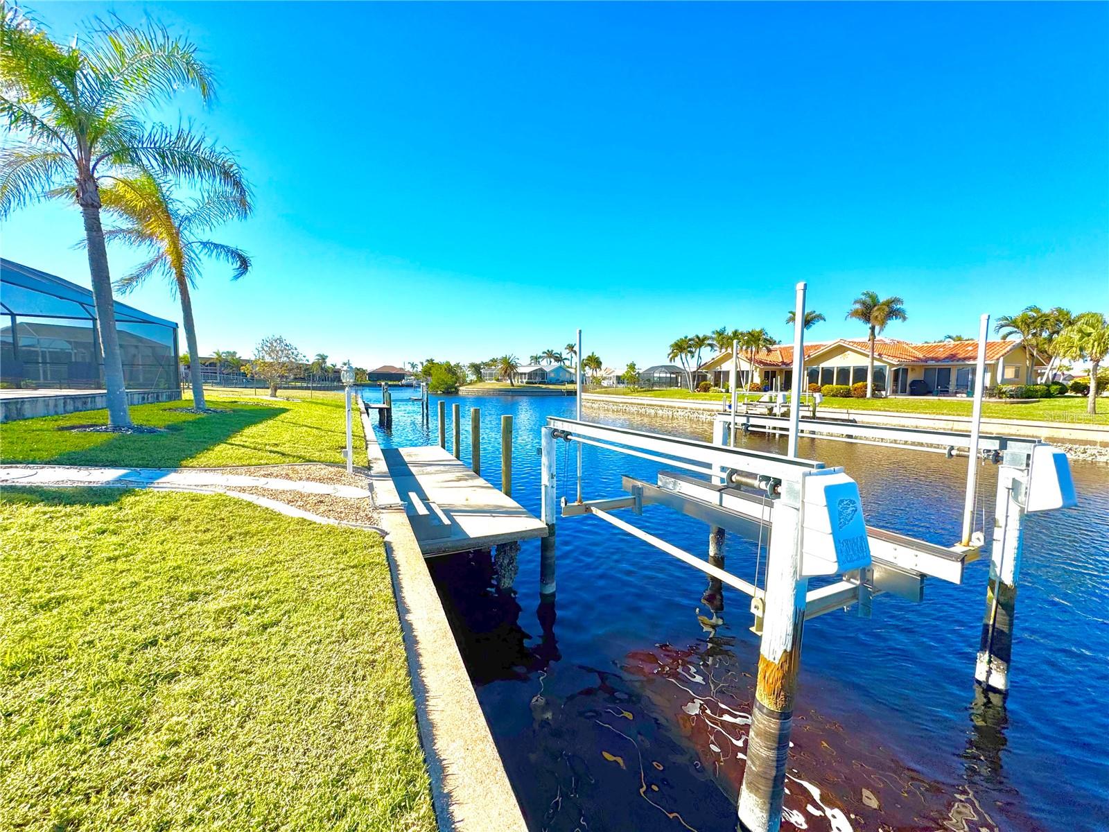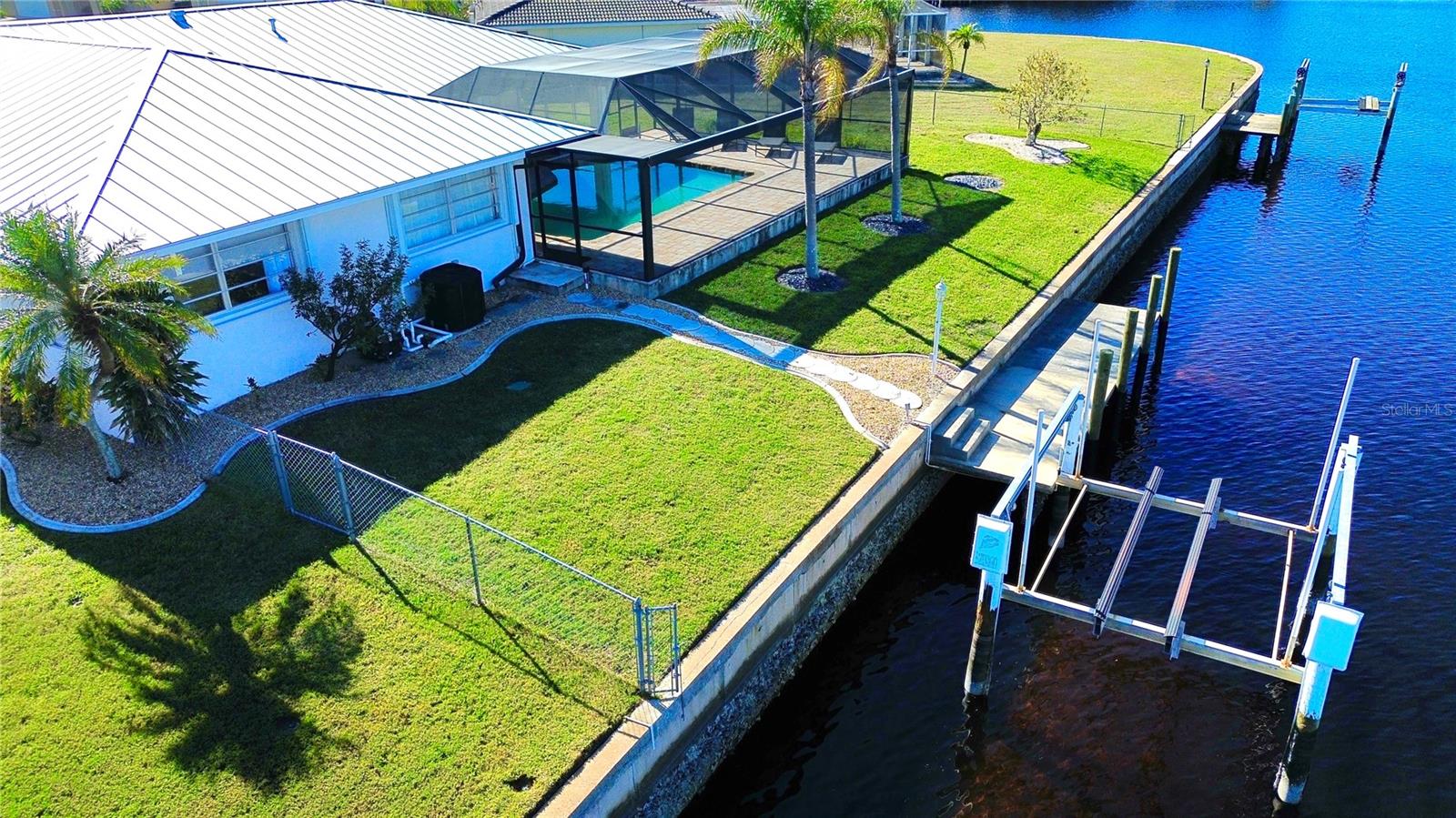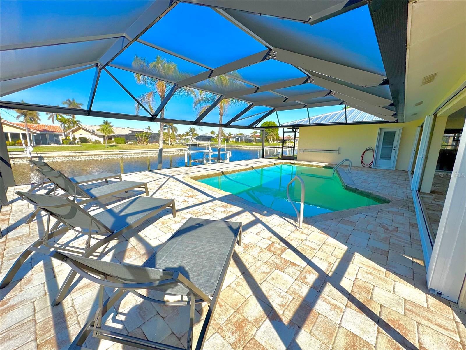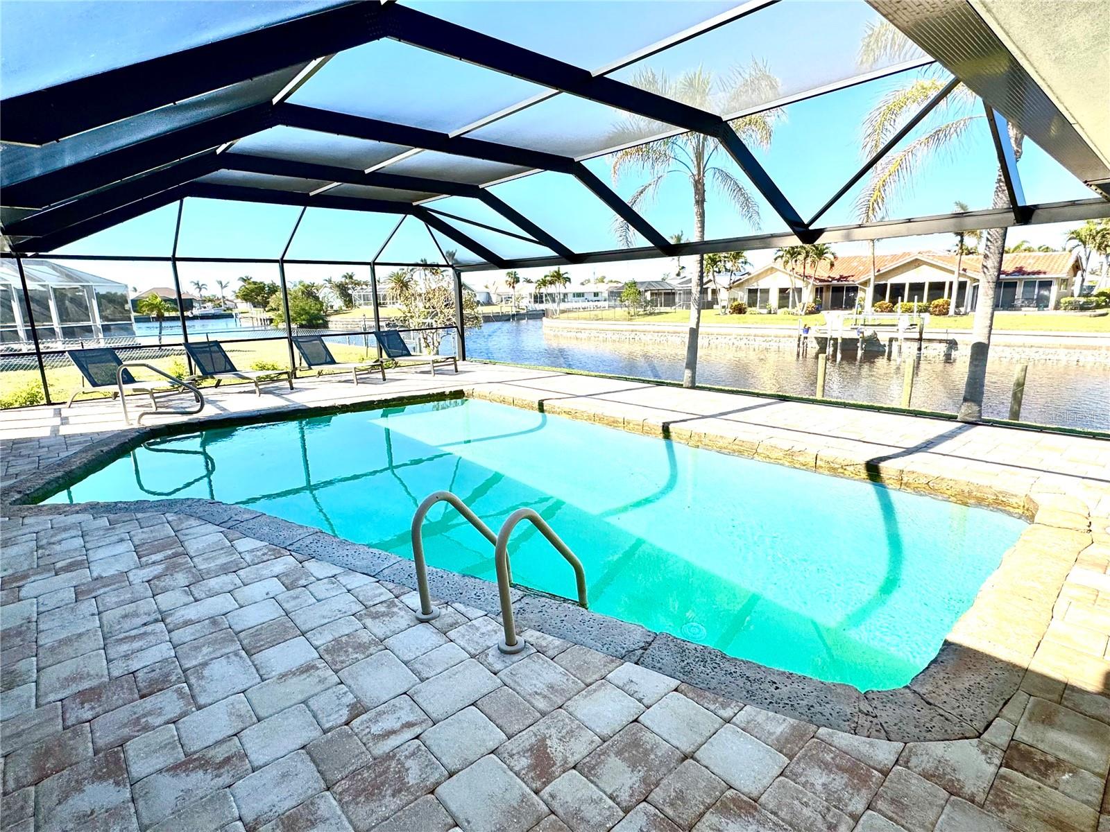 Welcome home to your stunning 116 FEET of SALTWATER FRONTAGE, a coastal oasis in the highly desirable PGI! TURNKEY FURNISHED with high-end furniture! Nestled on an oversized .25 acres on a cul-de-sac road, this move in ready home boasts breathtaking WIDE INTERSECTING CANAL views and an exceptional outdoor living space! Featuring a custom remodeled heated pool - created by a designer known for crafting pools at Disney! Boasting uninterrupted views of the water with a new PANORAMIC POOL CAGE done in 2023! COMPLETE with a POOL ACCESS BATHROOM! NEW METAL ROOF in 2023! ACCORDION SHUTTERS all around in 2023! No flooding during Helene or Milton per the homeowner!! The concrete seawall is maintained by the City of Punta Gorda! Enjoy the daily coastal breezes from your dock, complete with new pilings 11/2024! The 10,000 lb boat lift is maintained semi-annually by Boat Lift Pro's and was just serviced 11/2024. The spacious split floorpan is ideal for hosting and entertaining. Whether you are a boating enthusiast or simply seeking a tranquil retreat, this property is sure to check all of your boxes and more!! This home is situated in a prime location in Punta Gorda Isles, less than 6 minutes by car to Fisherman's Village and is less than 10 minutes to downtown Punta Gorda!! Punta Gorda is home to endless miles of bike paths along the Charlotte Harbor, unique shops & dining, weekend Farmer's markets and many fabulous outdoor events. Be sure to schedule your showing today, before this amazing home becomes someone else's dream home!!