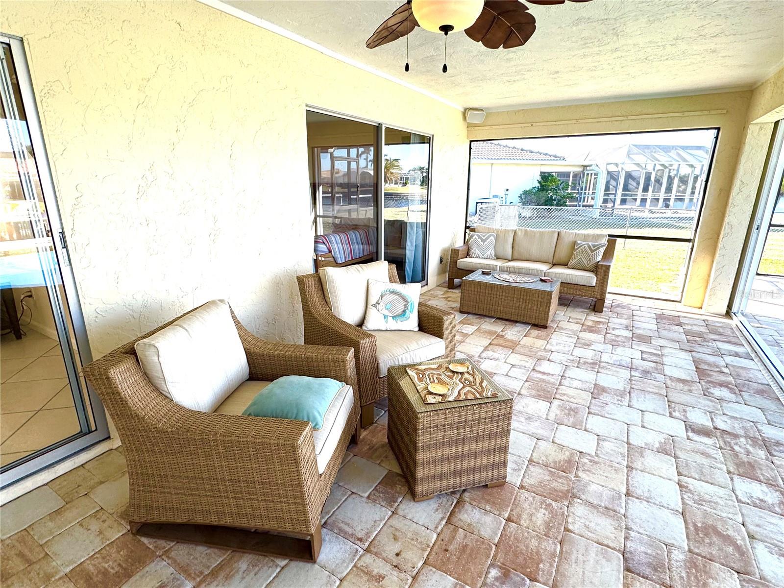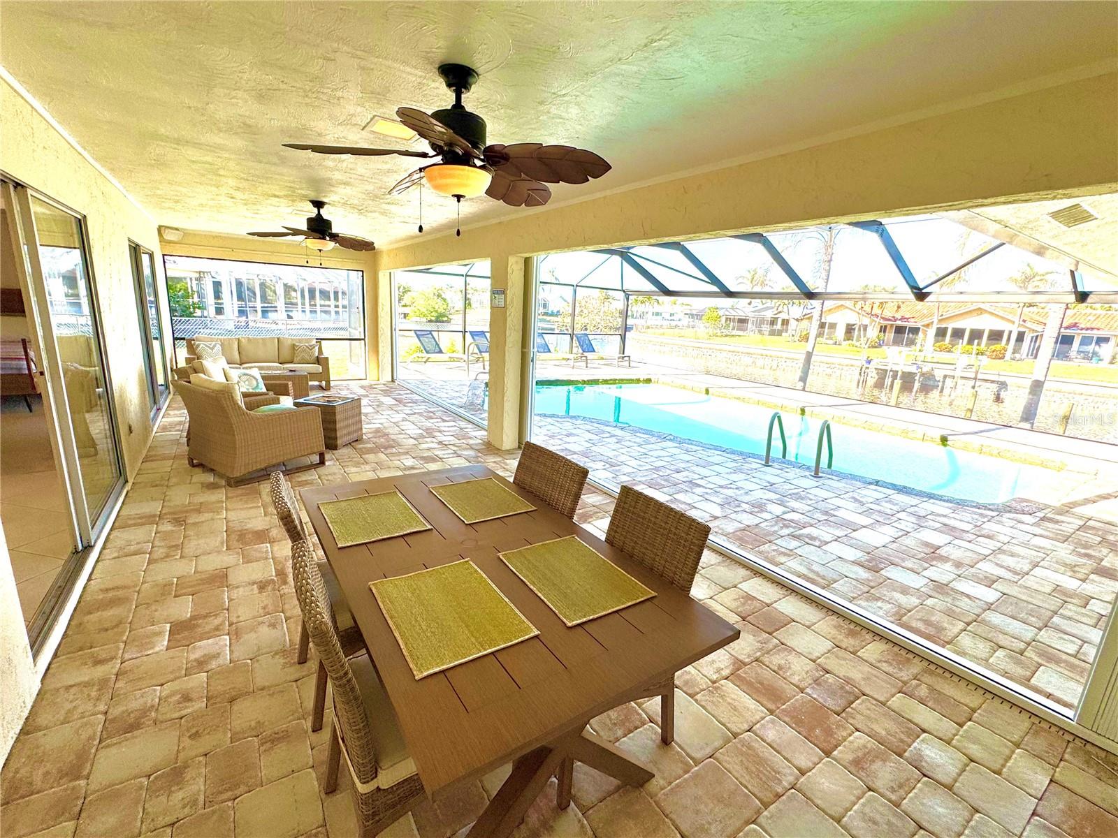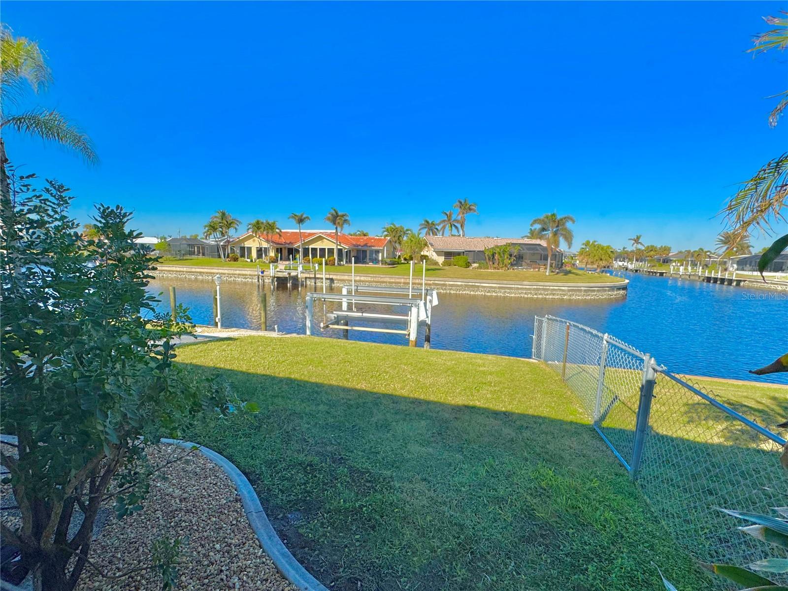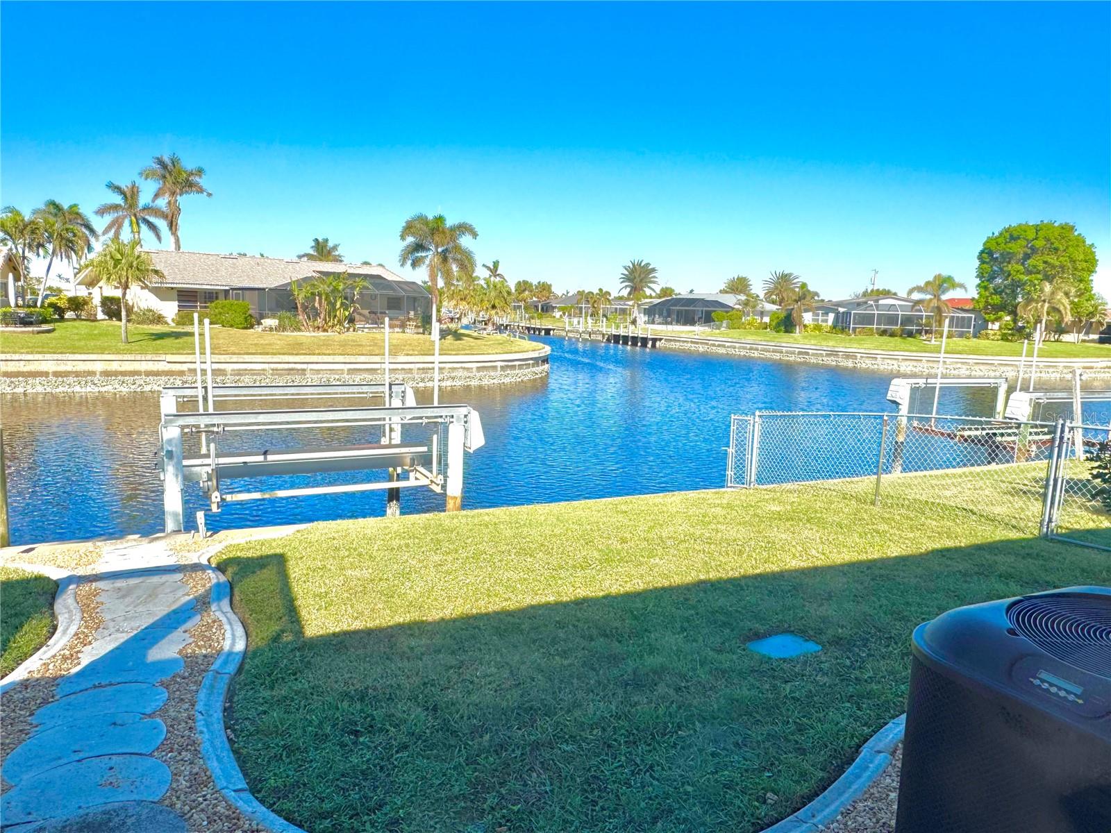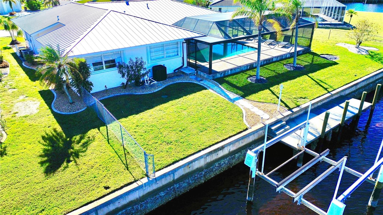 Welcome home to your stunning 116 FEET of SALTWATER FRONTAGE, a coastal oasis in the highly desirable PGI! TURNKEY FURNISHED with high-end furniture! Nestled on an oversized .25 acres on a cul-de-sac road, this move in ready home boasts breathtaking WIDE INTERSECTING CANAL views and an exceptional outdoor living space! Featuring a custom remodeled heated pool - created by a designer known for crafting pools at Disney! Boasting uninterrupted views of the water with a new PANORAMIC POOL CAGE done in 2023! COMPLETE with a POOL ACCESS BATHROOM! NEW METAL ROOF in 2023! ACCORDION SHUTTERS all around in 2023! No flooding during Helene or Milton per the homeowner!! The concrete seawall is maintained by the City of Punta Gorda! Enjoy the daily coastal breezes from your dock, complete with new pilings 11/2024! The 10,000 lb boat lift is maintained semi-annually by Boat Lift Pro's and was just serviced 11/2024. The spacious split floorpan is ideal for hosting and entertaining. Whether you are a boating enthusiast or simply seeking a tranquil retreat, this property is sure to check all of your boxes and more!! This home is situated in a prime location in Punta Gorda Isles, less than 6 minutes by car to Fisherman's Village and is less than 10 minutes to downtown Punta Gorda!! Punta Gorda is home to endless miles of bike paths along the Charlotte Harbor, unique shops & dining, weekend Farmer's markets and many fabulous outdoor events. Be sure to schedule your showing today, before this amazing home becomes someone else's dream home!!