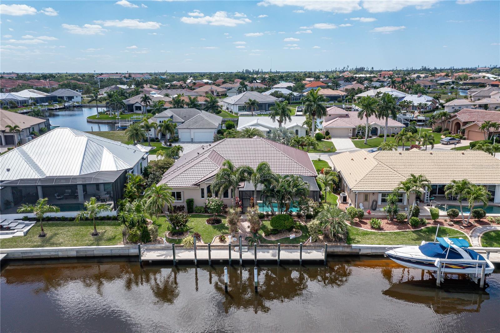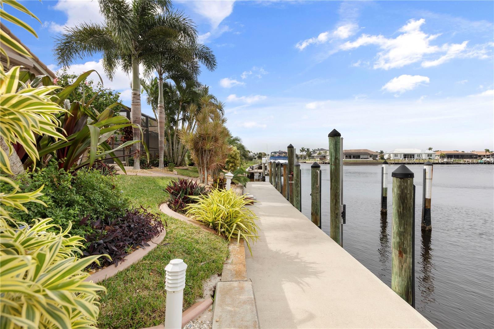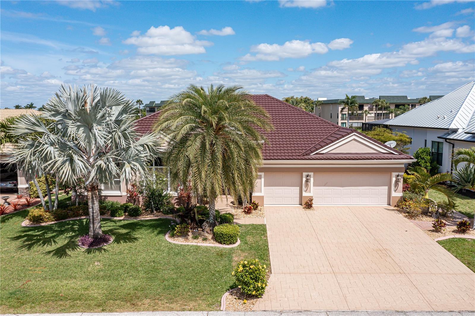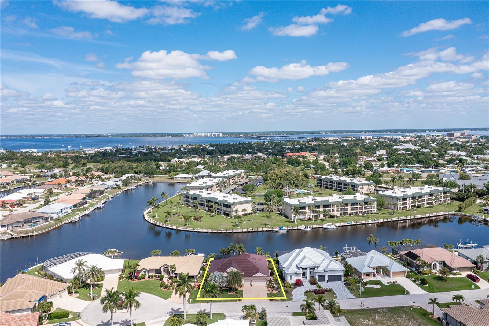 PGI CUSTOM WATERFRONT BEAUTY W/QUICK BOATING ACCESS & **NEW ROOF** (INSTALLED MARCH 2024) (Roof Info at end of description). Custom, 3 bed/2 bath + study, waterfront home in Punta Gorda Isles is located on one of the few streets in PGI w/UNDERGROUND UTILITIES. Reach open water in under 15 minutes from your backyard! Inside, the home features a spacious, open floor plan w/formal living room, formal dining room & separate family room. Architectural details include HIGH CEILINGS throughout, tile floors in kitchen & family room, hardwood floors in living room & dining room, arched transom windows in front, & plantation shutters in bedrooms. The living room has beautiful, engineered hardwood flooring, crown molding & sliding glass doors that open to the lanai. Formal dining room has a tray ceiling & chair rail w/wainscot paneling beneath it. Study/home office is nestled just off the foyer & formal living room. It features a built-in desk w/two workstations & a walk-in closet. Easily converts to a 4th bedroom if desired w/removal of desk. The large, gourmet kitchen features granite counters, raised-panel cabinetry w/stepped upper cabinets, INDUCTION RANGE W/DOUBLE CONVECTION OVEN, kitchen R/O water filtration plus a breakfast bar, center island, closet pantry & walk-in butler's pantry. The adjacent breakfast area has a mitered bay window that overlooks the pool & canal view. The family room has a soaring cathedral ceiling, built-in entertainment center, tall windows & disappearing sliding glass doors that open to the lanai. Laundry room features additional storage cabinets w/built-in pantry plus a small storage closet. The master suite has walk-out access to the lanai, two walk-in closets & a large master bath. The master bath offers dual sinks, walk-in shower, linen closet & private WC. Split bedroom layout boasts two, large guest rooms (one w/walk-in closet) that share an elegant guest bath w/two sinks & a combination tub/shower. Outside, the lanai features an in-ground pool, summer kitchen & plenty of room for outdoor entertaining. Enjoy this outdoor living space that overlooks the canal view. The partially FENCED BACKYARD leads to the extended concrete dock. Dock has two outside pilings plus two posts w/slide moors. Water & electric hook-ups are available dockside. Start enjoying some of the best fishing & boating in SW Florida directly from your backyard. Other amenities include an OVERSIZED 3-CAR GARAGE w/bump out & overhead storage, whole-house HURRICANE PROTECTION w/mix of electric roll-downs, panels & accordion shutters, water softener, in-wall speaker system/intercom & humidistat. Lush, tropical landscaping surrounds the home creating the feel of a PRIVATE OASIS when sitting on your lanai. Property is located on a quiet street yet remains close to historic downtown, Fishermen's Village, PGICA building, library & Ring Around the City walking/biking trail. Start enjoying the active lifestyle Punta Gorda offers including golfing, fishing, tennis, pickleball & more. Punta Gorda also offers a lively art & music scene w/weekend festivals throughout the year. 200 MPH Worthouse Metal Tile Roof System installed by Apple Roofing in March 2024.