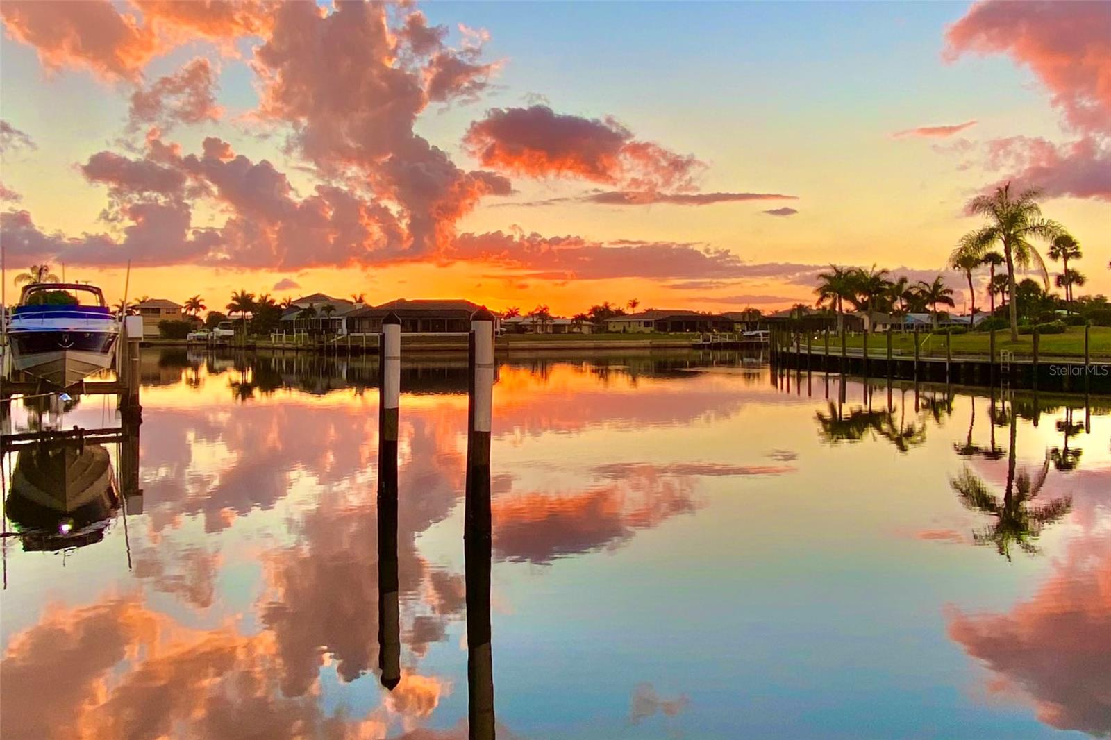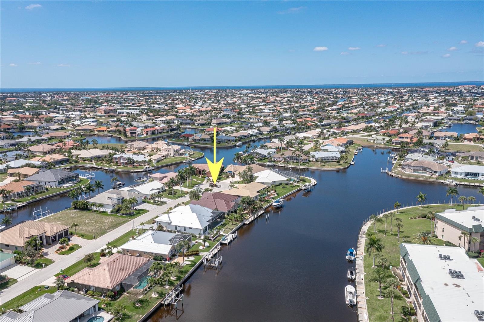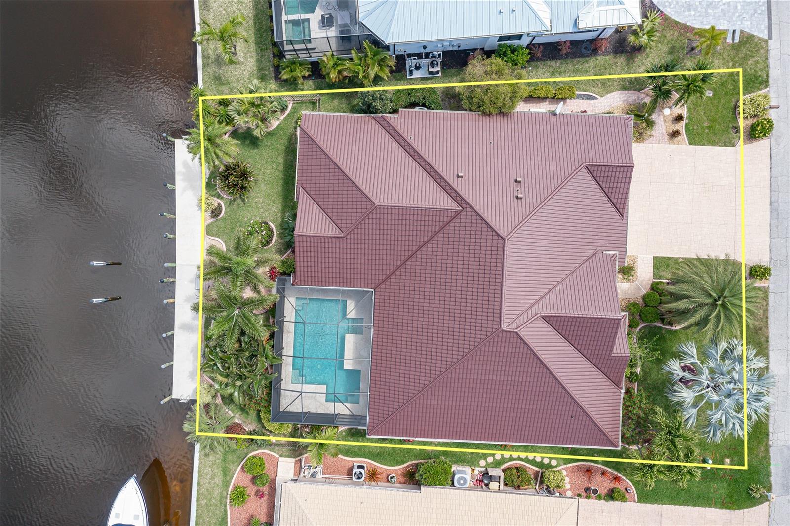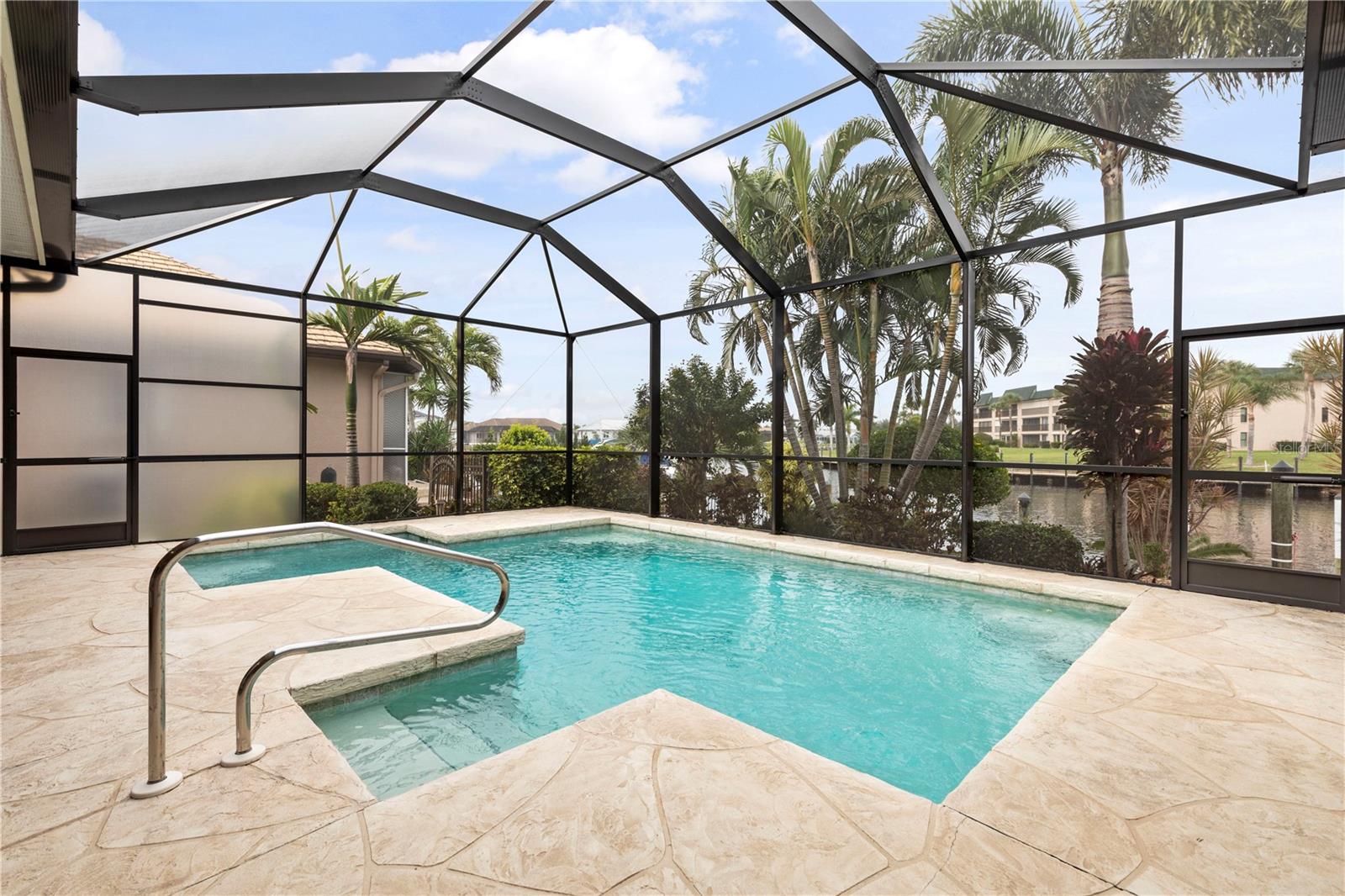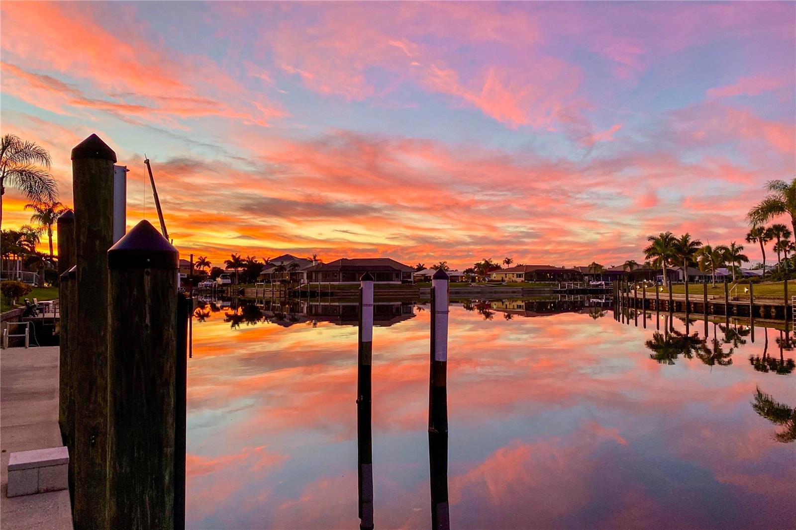 PGI CUSTOM WATERFRONT BEAUTY W/QUICK BOATING ACCESS & **NEW ROOF** (INSTALLED MARCH 2024) (Roof Info at end of description). Custom, 3 bed/2 bath + study, waterfront home in Punta Gorda Isles is located on one of the few streets in PGI w/UNDERGROUND UTILITIES. Reach open water in under 15 minutes from your backyard! Inside, the home features a spacious, open floor plan w/formal living room, formal dining room & separate family room. Architectural details include HIGH CEILINGS throughout, tile floors in kitchen & family room, hardwood floors in living room & dining room, arched transom windows in front, & plantation shutters in bedrooms. The living room has beautiful, engineered hardwood flooring, crown molding & sliding glass doors that open to the lanai. Formal dining room has a tray ceiling & chair rail w/wainscot paneling beneath it. Study/home office is nestled just off the foyer & formal living room. It features a built-in desk w/two workstations & a walk-in closet. Easily converts to a 4th bedroom if desired w/removal of desk. The large, gourmet kitchen features granite counters, raised-panel cabinetry w/stepped upper cabinets, INDUCTION RANGE W/DOUBLE CONVECTION OVEN, kitchen R/O water filtration plus a breakfast bar, center island, closet pantry & walk-in butler's pantry. The adjacent breakfast area has a mitered bay window that overlooks the pool & canal view. The family room has a soaring cathedral ceiling, built-in entertainment center, tall windows & disappearing sliding glass doors that open to the lanai. Laundry room features additional storage cabinets w/built-in pantry plus a small storage closet. The master suite has walk-out access to the lanai, two walk-in closets & a large master bath. The master bath offers dual sinks, walk-in shower, linen closet & private WC. Split bedroom layout boasts two, large guest rooms (one w/walk-in closet) that share an elegant guest bath w/two sinks & a combination tub/shower. Outside, the lanai features an in-ground pool, summer kitchen & plenty of room for outdoor entertaining. Enjoy this outdoor living space that overlooks the canal view. The partially FENCED BACKYARD leads to the extended concrete dock. Dock has two outside pilings plus two posts w/slide moors. Water & electric hook-ups are available dockside. Start enjoying some of the best fishing & boating in SW Florida directly from your backyard. Other amenities include an OVERSIZED 3-CAR GARAGE w/bump out & overhead storage, whole-house HURRICANE PROTECTION w/mix of electric roll-downs, panels & accordion shutters, water softener, in-wall speaker system/intercom & humidistat. Lush, tropical landscaping surrounds the home creating the feel of a PRIVATE OASIS when sitting on your lanai. Property is located on a quiet street yet remains close to historic downtown, Fishermen's Village, PGICA building, library & Ring Around the City walking/biking trail. Start enjoying the active lifestyle Punta Gorda offers including golfing, fishing, tennis, pickleball & more. Punta Gorda also offers a lively art & music scene w/weekend festivals throughout the year. 200 MPH Worthouse Metal Tile Roof System installed by Apple Roofing in March 2024.