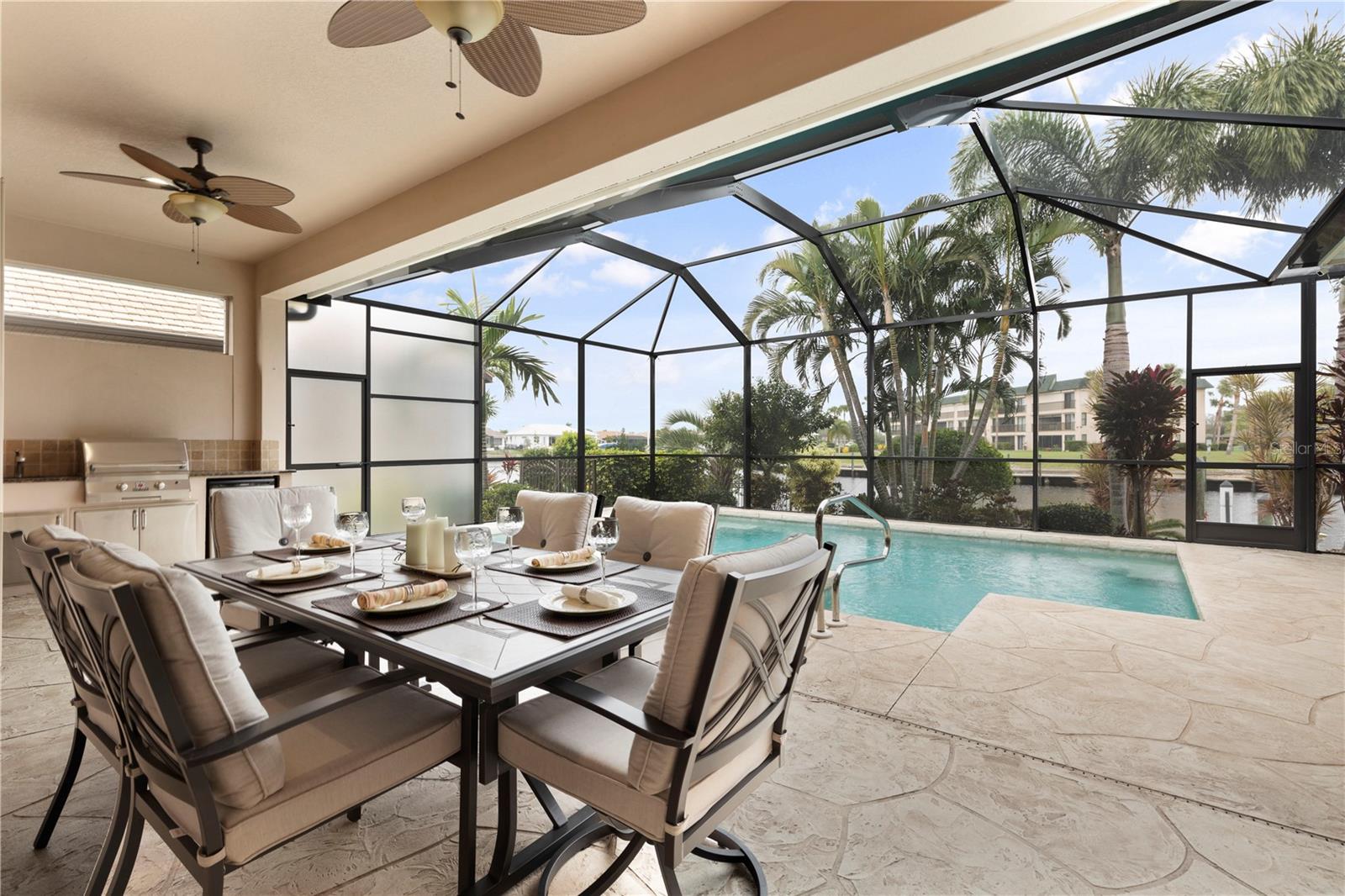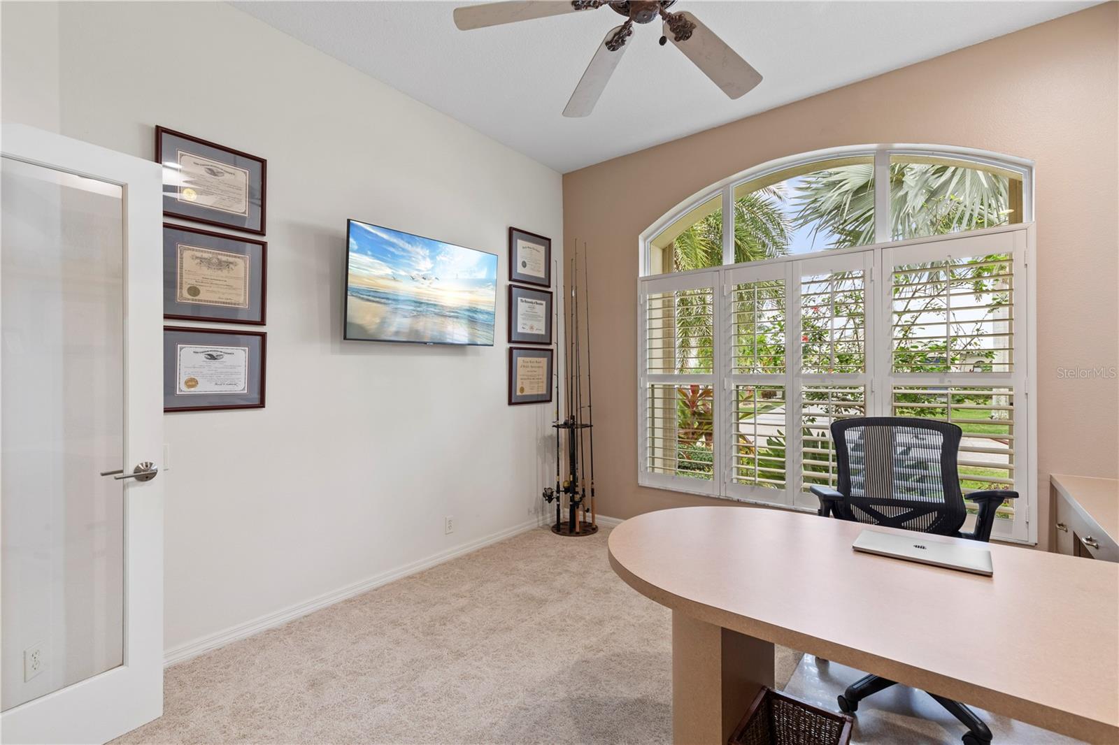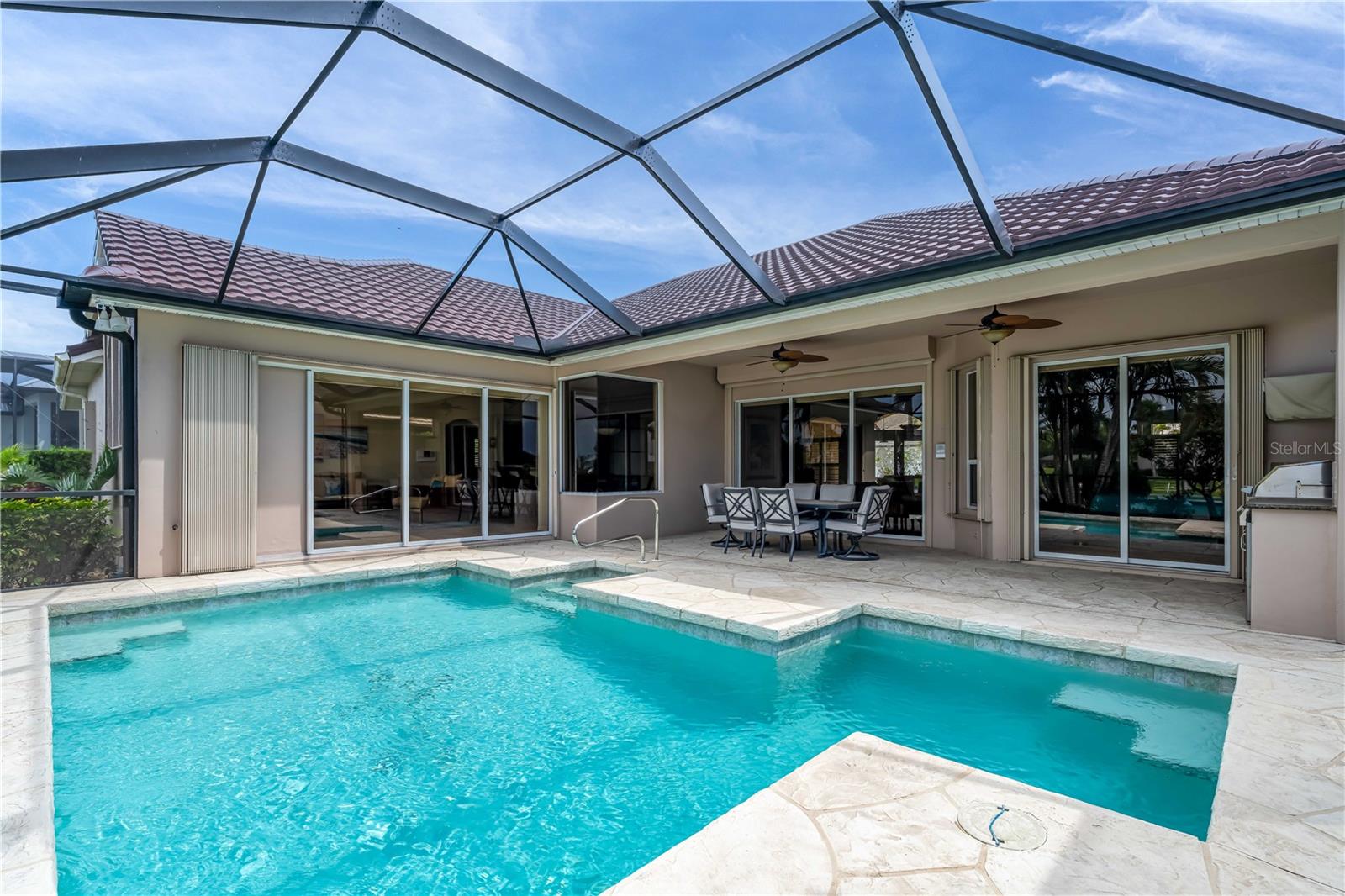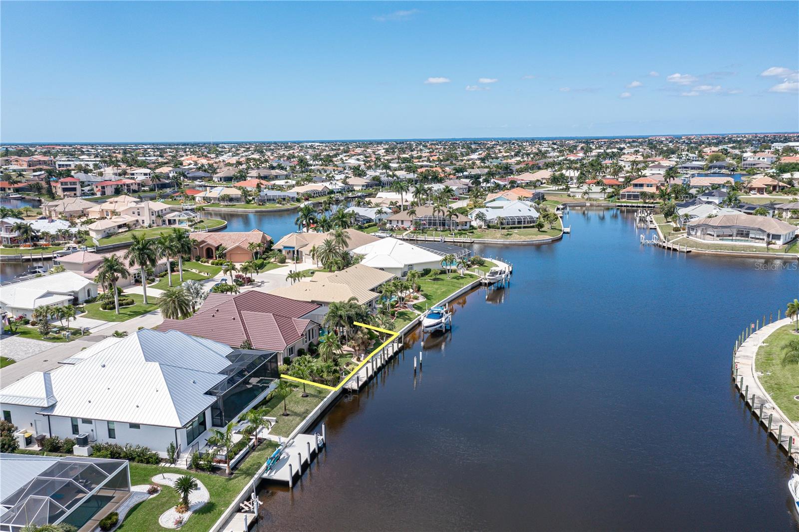 PGI CUSTOM WATERFRONT BEAUTY W/QUICK BOATING ACCESS & **NEW ROOF** (INSTALLED MARCH 2024) (Roof Info at end of description). Custom, 3 bed/2 bath + study, waterfront home in Punta Gorda Isles is located on one of the few streets in PGI w/UNDERGROUND UTILITIES. Reach open water in under 15 minutes from your backyard! Inside, the home features a spacious, open floor plan w/formal living room, formal dining room & separate family room. Architectural details include HIGH CEILINGS throughout, tile floors in kitchen & family room, hardwood floors in living room & dining room, arched transom windows in front, & plantation shutters in bedrooms. The living room has beautiful, engineered hardwood flooring, crown molding & sliding glass doors that open to the lanai. Formal dining room has a tray ceiling & chair rail w/wainscot paneling beneath it. Study/home office is nestled just off the foyer & formal living room. It features a built-in desk w/two workstations & a walk-in closet. Easily converts to a 4th bedroom if desired w/removal of desk. The large, gourmet kitchen features granite counters, raised-panel cabinetry w/stepped upper cabinets, INDUCTION RANGE W/DOUBLE CONVECTION OVEN, kitchen R/O water filtration plus a breakfast bar, center island, closet pantry & walk-in butler's pantry. The adjacent breakfast area has a mitered bay window that overlooks the pool & canal view. The family room has a soaring cathedral ceiling, built-in entertainment center, tall windows & disappearing sliding glass doors that open to the lanai. Laundry room features additional storage cabinets w/built-in pantry plus a small storage closet. The master suite has walk-out access to the lanai, two walk-in closets & a large master bath. The master bath offers dual sinks, walk-in shower, linen closet & private WC. Split bedroom layout boasts two, large guest rooms (one w/walk-in closet) that share an elegant guest bath w/two sinks & a combination tub/shower. Outside, the lanai features an in-ground pool, summer kitchen & plenty of room for outdoor entertaining. Enjoy this outdoor living space that overlooks the canal view. The partially FENCED BACKYARD leads to the extended concrete dock. Dock has two outside pilings plus two posts w/slide moors. Water & electric hook-ups are available dockside. Start enjoying some of the best fishing & boating in SW Florida directly from your backyard. Other amenities include an OVERSIZED 3-CAR GARAGE w/bump out & overhead storage, whole-house HURRICANE PROTECTION w/mix of electric roll-downs, panels & accordion shutters, water softener, in-wall speaker system/intercom & humidistat. Lush, tropical landscaping surrounds the home creating the feel of a PRIVATE OASIS when sitting on your lanai. Property is located on a quiet street yet remains close to historic downtown, Fishermen's Village, PGICA building, library & Ring Around the City walking/biking trail. Start enjoying the active lifestyle Punta Gorda offers including golfing, fishing, tennis, pickleball & more. Punta Gorda also offers a lively art & music scene w/weekend festivals throughout the year. 200 MPH Worthouse Metal Tile Roof System installed by Apple Roofing in March 2024.