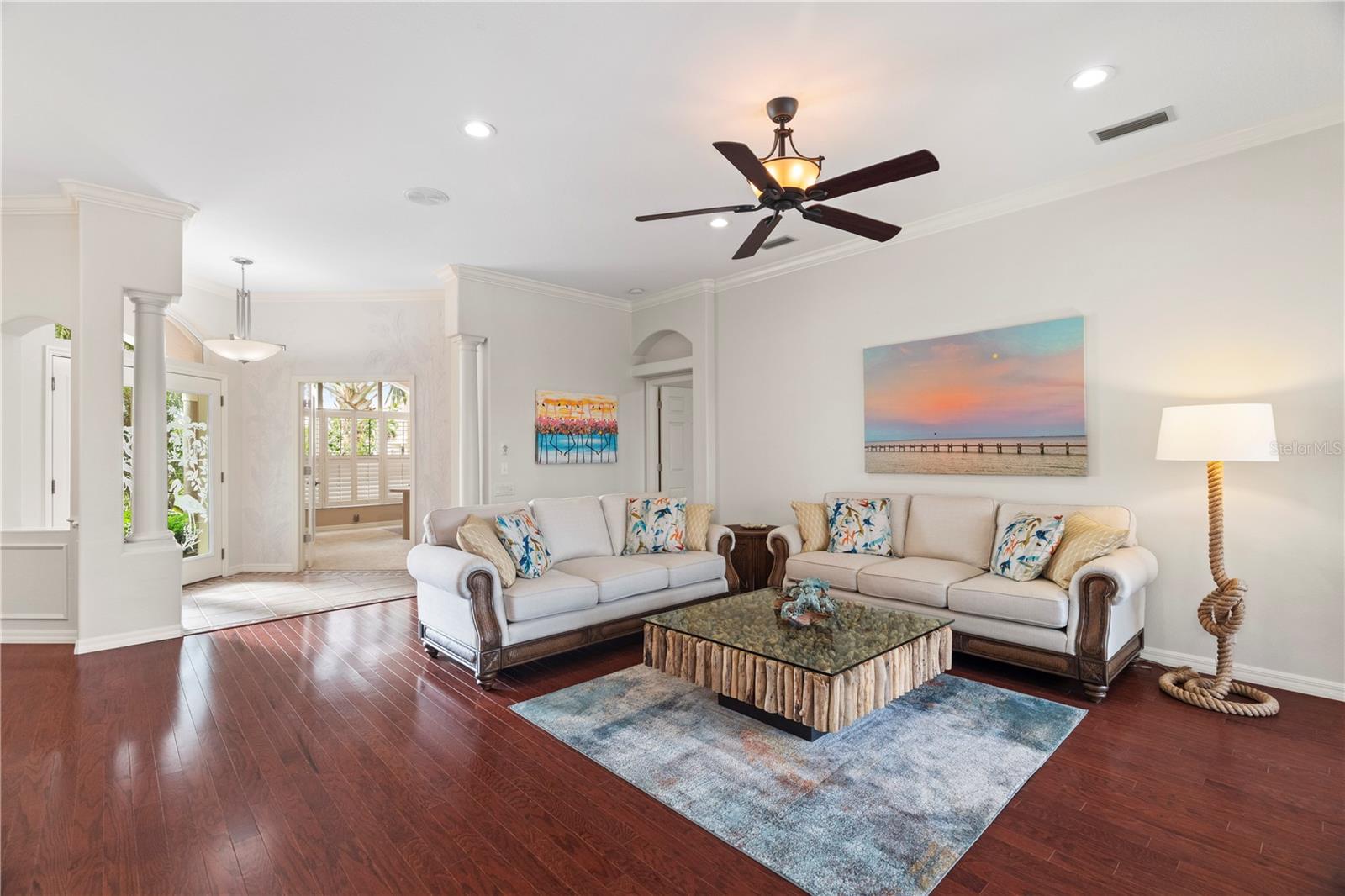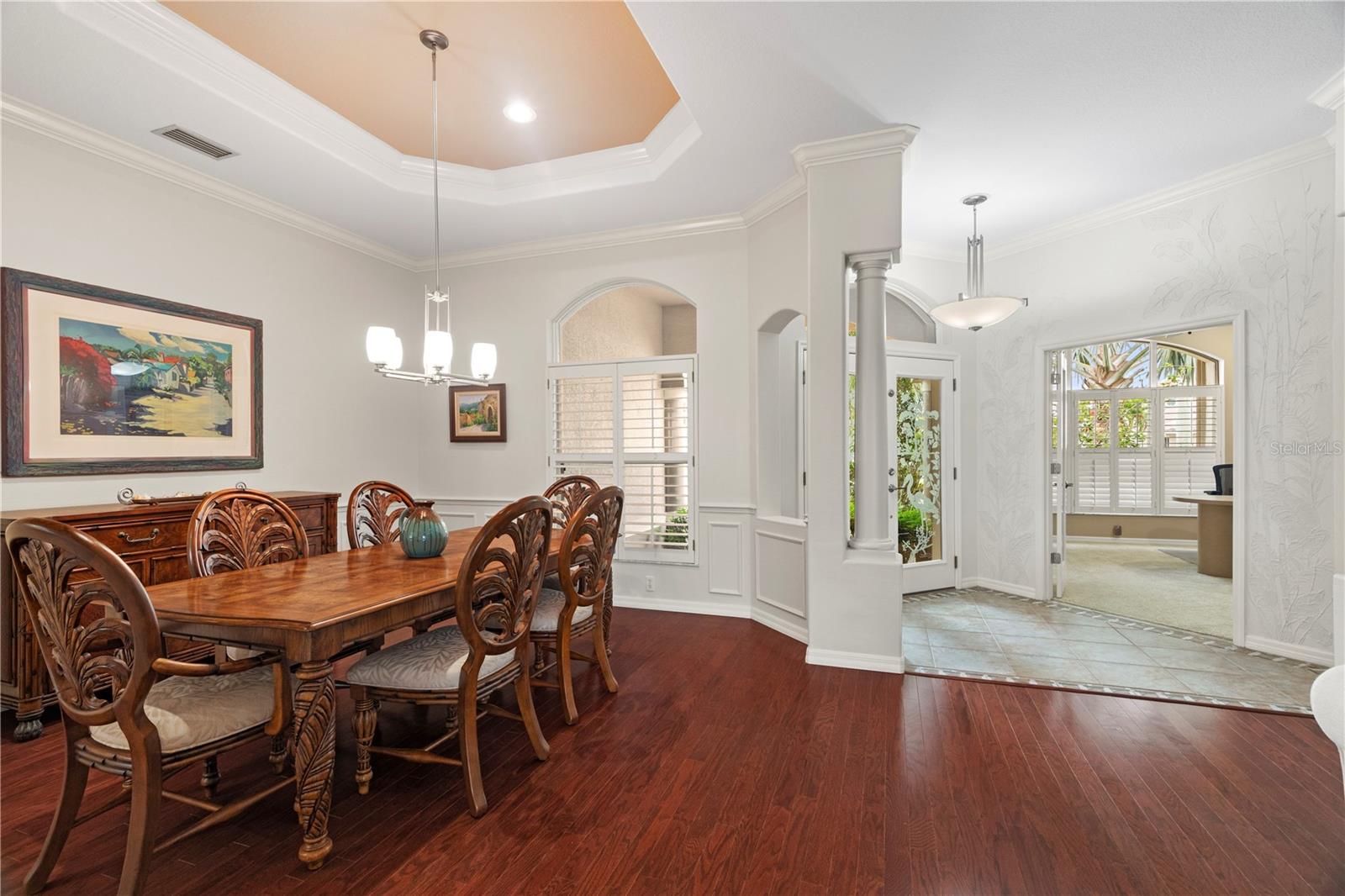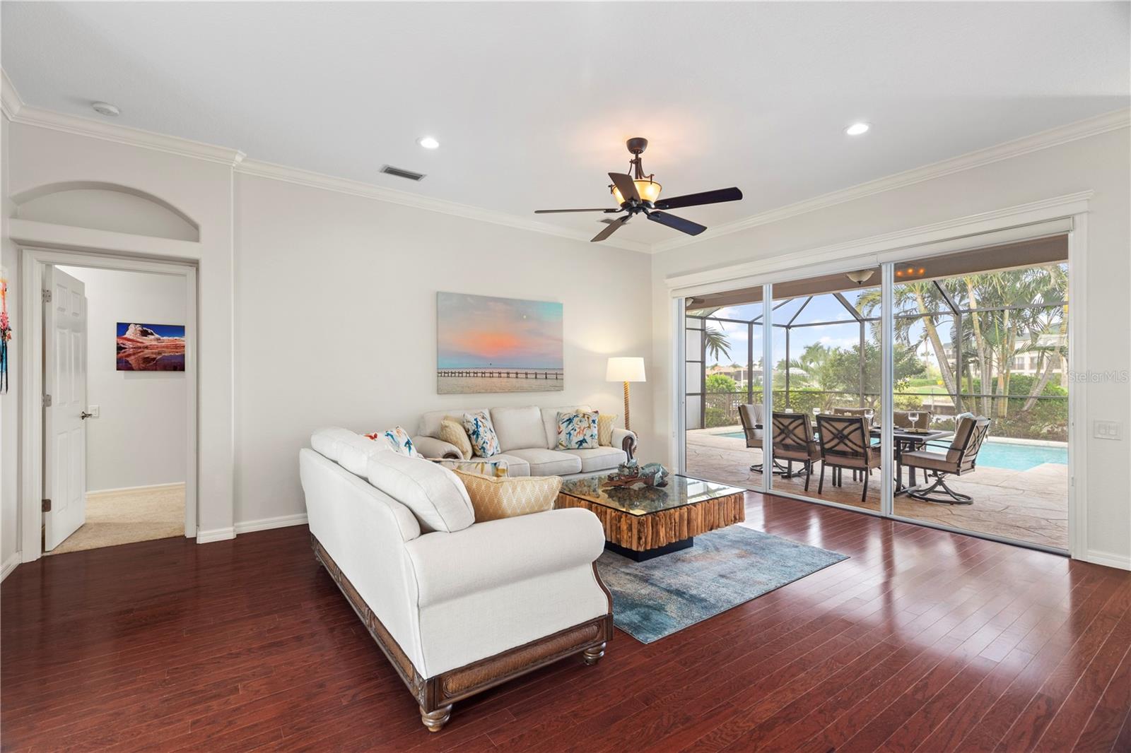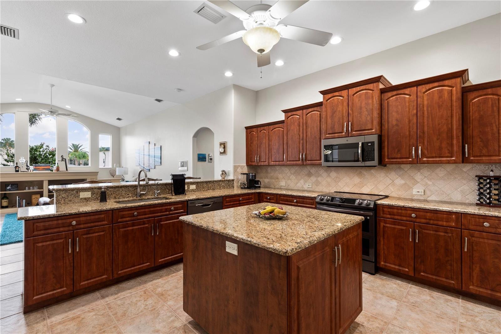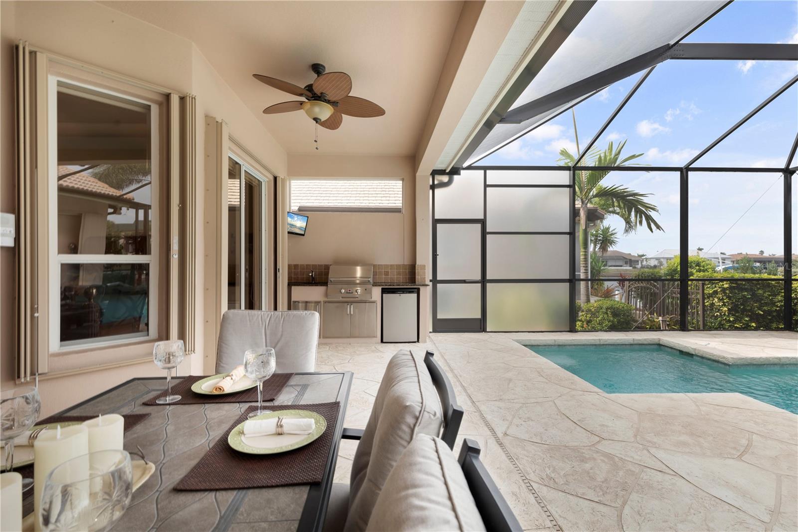 PGI CUSTOM WATERFRONT BEAUTY W/QUICK BOATING ACCESS & **NEW ROOF** (INSTALLED MARCH 2024) (Roof Info at end of description). Custom, 3 bed/2 bath + study, waterfront home in Punta Gorda Isles is located on one of the few streets in PGI w/UNDERGROUND UTILITIES. Reach open water in under 15 minutes from your backyard! Inside, the home features a spacious, open floor plan w/formal living room, formal dining room & separate family room. Architectural details include HIGH CEILINGS throughout, tile floors in kitchen & family room, hardwood floors in living room & dining room, arched transom windows in front, & plantation shutters in bedrooms. The living room has beautiful, engineered hardwood flooring, crown molding & sliding glass doors that open to the lanai. Formal dining room has a tray ceiling & chair rail w/wainscot paneling beneath it. Study/home office is nestled just off the foyer & formal living room. It features a built-in desk w/two workstations & a walk-in closet. Easily converts to a 4th bedroom if desired w/removal of desk. The large, gourmet kitchen features granite counters, raised-panel cabinetry w/stepped upper cabinets, INDUCTION RANGE W/DOUBLE CONVECTION OVEN, kitchen R/O water filtration plus a breakfast bar, center island, closet pantry & walk-in butler's pantry. The adjacent breakfast area has a mitered bay window that overlooks the pool & canal view. The family room has a soaring cathedral ceiling, built-in entertainment center, tall windows & disappearing sliding glass doors that open to the lanai. Laundry room features additional storage cabinets w/built-in pantry plus a small storage closet. The master suite has walk-out access to the lanai, two walk-in closets & a large master bath. The master bath offers dual sinks, walk-in shower, linen closet & private WC. Split bedroom layout boasts two, large guest rooms (one w/walk-in closet) that share an elegant guest bath w/two sinks & a combination tub/shower. Outside, the lanai features an in-ground pool, summer kitchen & plenty of room for outdoor entertaining. Enjoy this outdoor living space that overlooks the canal view. The partially FENCED BACKYARD leads to the extended concrete dock. Dock has two outside pilings plus two posts w/slide moors. Water & electric hook-ups are available dockside. Start enjoying some of the best fishing & boating in SW Florida directly from your backyard. Other amenities include an OVERSIZED 3-CAR GARAGE w/bump out & overhead storage, whole-house HURRICANE PROTECTION w/mix of electric roll-downs, panels & accordion shutters, water softener, in-wall speaker system/intercom & humidistat. Lush, tropical landscaping surrounds the home creating the feel of a PRIVATE OASIS when sitting on your lanai. Property is located on a quiet street yet remains close to historic downtown, Fishermen's Village, PGICA building, library & Ring Around the City walking/biking trail. Start enjoying the active lifestyle Punta Gorda offers including golfing, fishing, tennis, pickleball & more. Punta Gorda also offers a lively art & music scene w/weekend festivals throughout the year. 200 MPH Worthouse Metal Tile Roof System installed by Apple Roofing in March 2024.