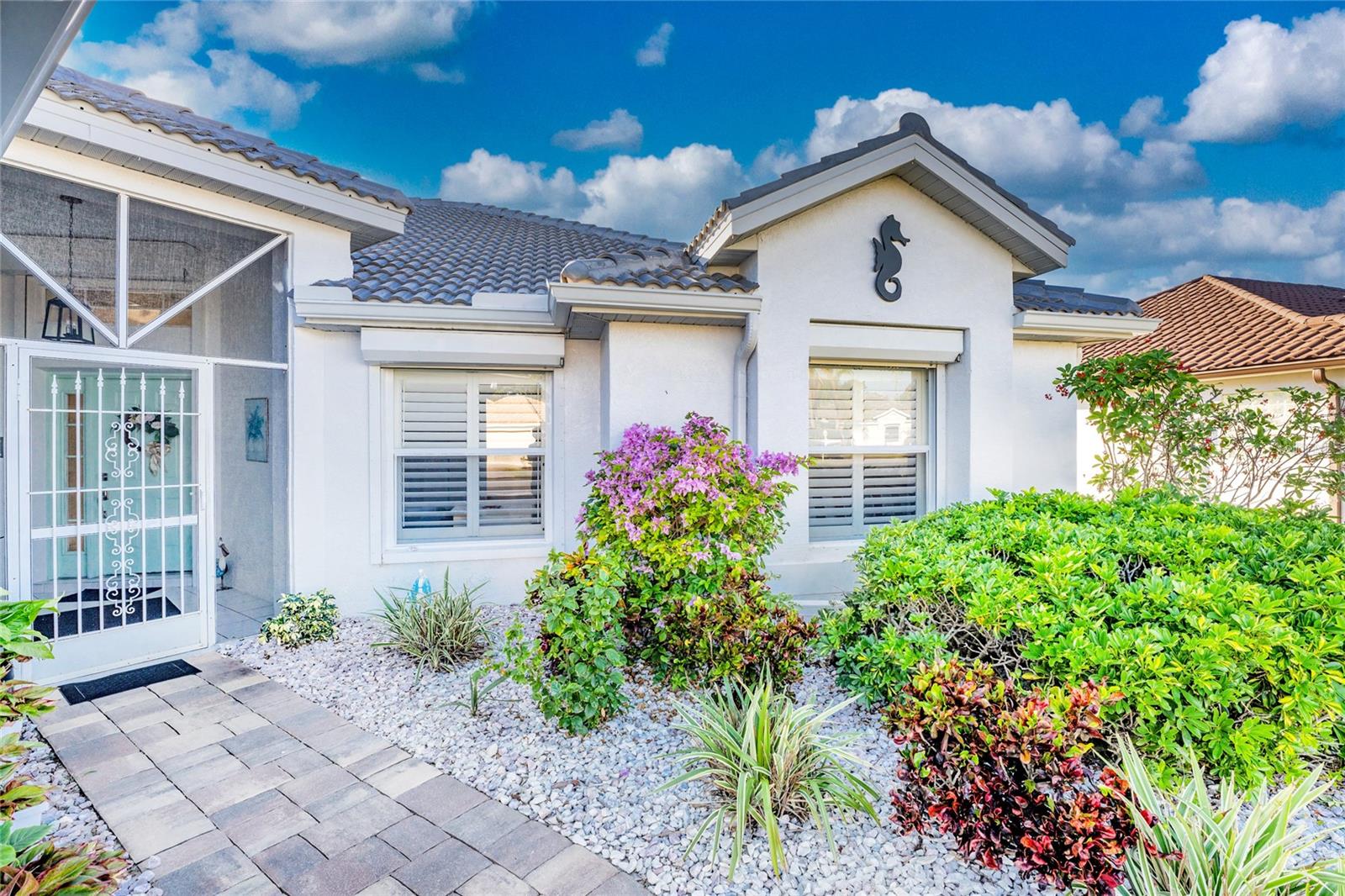 Welcome to the sought-after gated community of Burnt Store Marina, where resort living meets Florida charm! This beautiful Danforth floor plan with 3 bedrooms, 2 bathrooms, and a 2-car garage is being sold furnished—ready for you to move in and start living the good life. Burnt Store Marina is more than a neighborhood; it’s a lifestyle. Enjoy world-class amenities, including an 18- hole executive golf course, social membership, fitness center with a resort-style pool, pickleball and tennis, yacht club. Set sail from the full-service marina with direct access to Charlotte Harbor and the Gulf of Mexico beyond. The Marina features wet slips, a boat house with dry storage, and a boat ramp. And even if you don’t own your own boat The Freedom Boat Club makes it easy to get on the water anytime! Pull up to this home built for convenient living with its paver driveway, screened entry, and fresh exterior lighting. Landscaping, irrigation, and cable TV are included in your monthly dues, providing a low-maintenance lifestyle. Step on to the expansive screened paver lanai and take in the serene golf course views. The western exposure promises stunning sunsets to enjoy year-round. This home includes pool allocation, making it simple to add your dream pool for even more outdoor enjoyment. The NEW 2025 AIR CONDITIONER and 2024 TILE ROOF and easy-to-use ROLL-DOWN and ACCORDION SHUTTERS, give you complete hurricane protection and it is not in a flood zone. You’ll have peace of mind no matter the season. Inside, the Great Room offers high ceilings, plantation shutters, and a seamless flow between the living and dining areas. Tile floors with new carpet create a polished look, while the sliders to the lanai invite natural light and provide an easy indoor-outdoor lifestyle. The kitchen is a chef’s delight, boasting stainless steel appliances, granite counters, a tile backsplash, a center island, and a roomy eat-in area. Here you’ll also find a full-size pantry with and laundry center for added convenience. The spacious Primary suite features sliding glass doors to the lanai, while the ensuite bath features dual vanities, an enclosed shower, a soaking tub, and private water closet. Both guest bedrooms have new carpeting, and the updated guest bath offers a fresh look with plank tile flooring, a high-vanity sink, and a walk-in shower. This home is a true gem, perfectly blending comfort, style, and the vibrant lifestyle of Burnt Store Marina. Schedule your private tour today and start living the Florida dream!