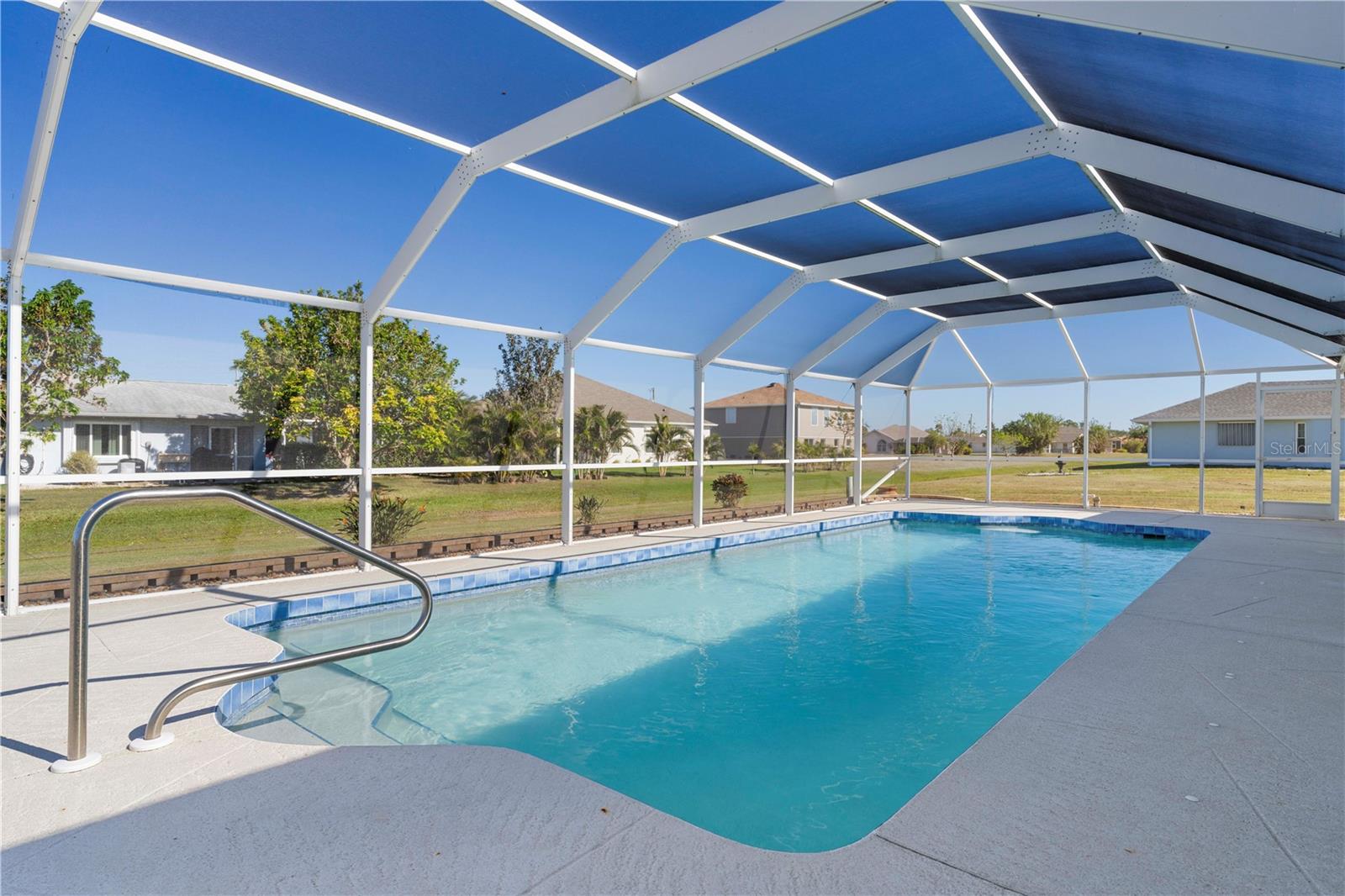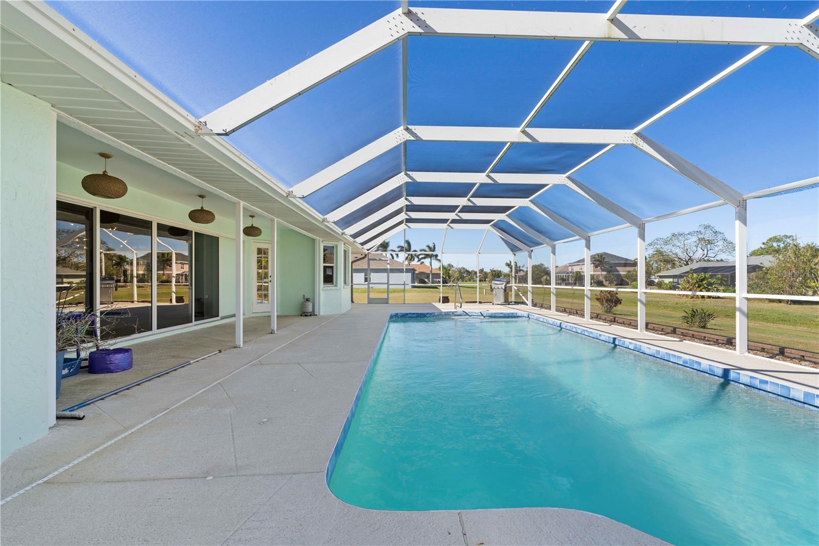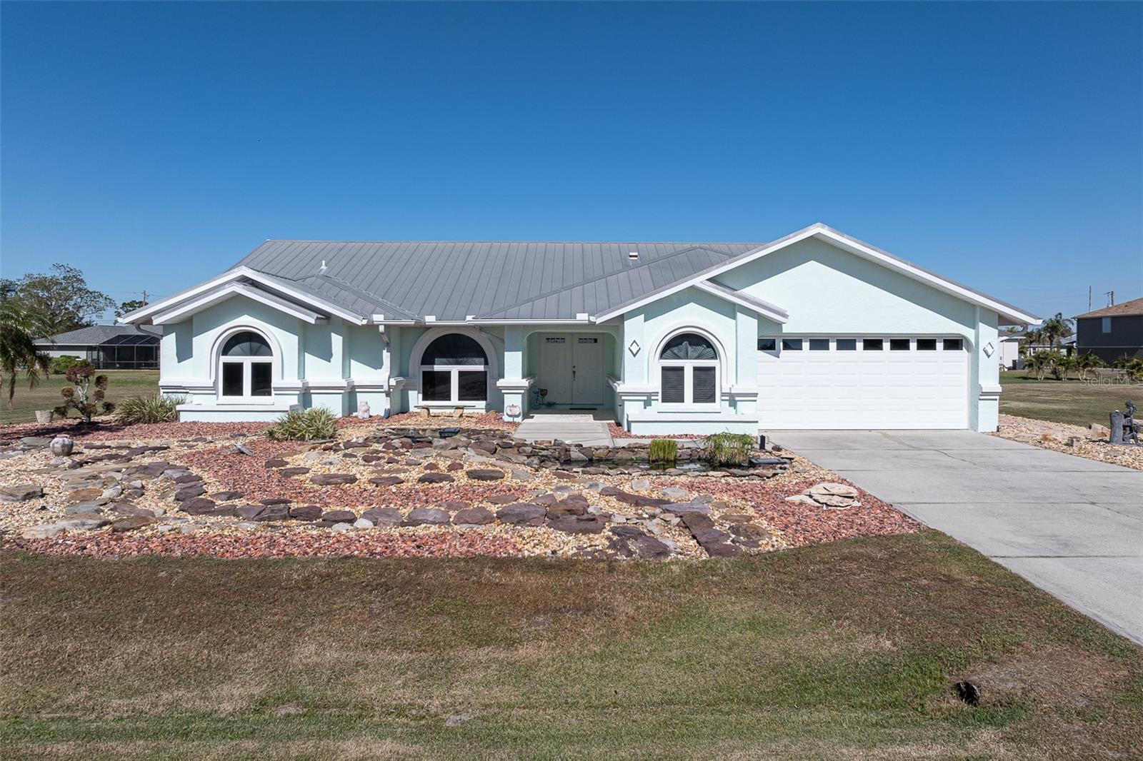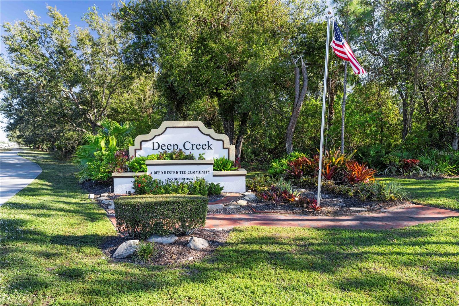 DEEP CREEK HOME W/POOL! Check-out this updated, 3 bed/2 bath home w/low-maintenance, zeroscape front landscaping (including a double Koi pond). Located on a quiet street in the growing, deed-restricted neighborhood of Deep Creek, the property is close to shopping, restaurants & I-75. The home has been meticulously maintained home features over 2,300 sqft of living space under air w/spacious living room w/formal dining area, beautifully updated kitchen & separate family room. Disappearing sliding glass doors extend the living space out onto the lanai. The kitchen boasts a modern flair w/granite counters, high-end, Fisher Paykel & Miele stainless-steel appliances plus an adjacent breakfast area. The kitchen is a chef's delight w/ample cabinet & counter space plus a closet pantry offering additional storage. The large family room is perfect for kicking back w/friends & family to watch a movie or the big game. Architectural details include arched windows, cathedral ceilings in living/dining room & family room, carpet in main living areas & bedrooms plus porcelain tile in the kitchen & master bath plus tile in the guest bathroom as well as a decorative alcove/bumpout in the formal dining area and family rooms. Spacious master suite features walk-out access to the lanai w/a pool view, an oversized walk-in closet & a spa-like master bath w/an updated vanity, tiled shower & separate soaking tub. The split bedroom layout offers privacy to owners & guests alike w/ample guest rooms that share a guest bath. Outside, the lanai features an in-ground pool that was recently refinished w/new marcite coating & waterline tile all surrounded by a resurfaced pool deck w/stamped concrete & cool deck finish plus plenty of room for outdoor entertaining. The home overlooks a wide, greenbelt view for privacy behind the home. Other amenities include hurricane protection provided by a mix of impact-resistant windows & metal panels plus an attached 2 1/2-car garage. Deep Creek offers a semi-private golf course & playground/park area complete w/tennis & basketball courts. Make an appointment today. You won't be disappointed. Vacant lots on either side of the home are owned by the homeowner. Option to purchase adjacent lots w/purchase of the home. Ask list agent for more details.
