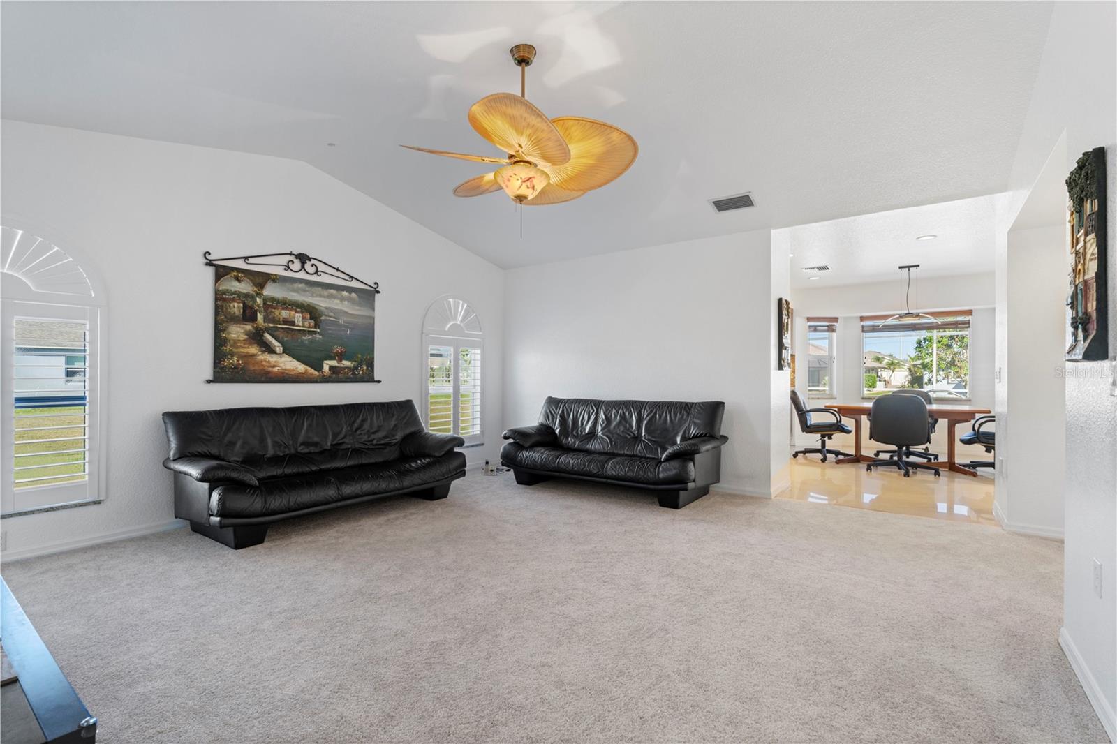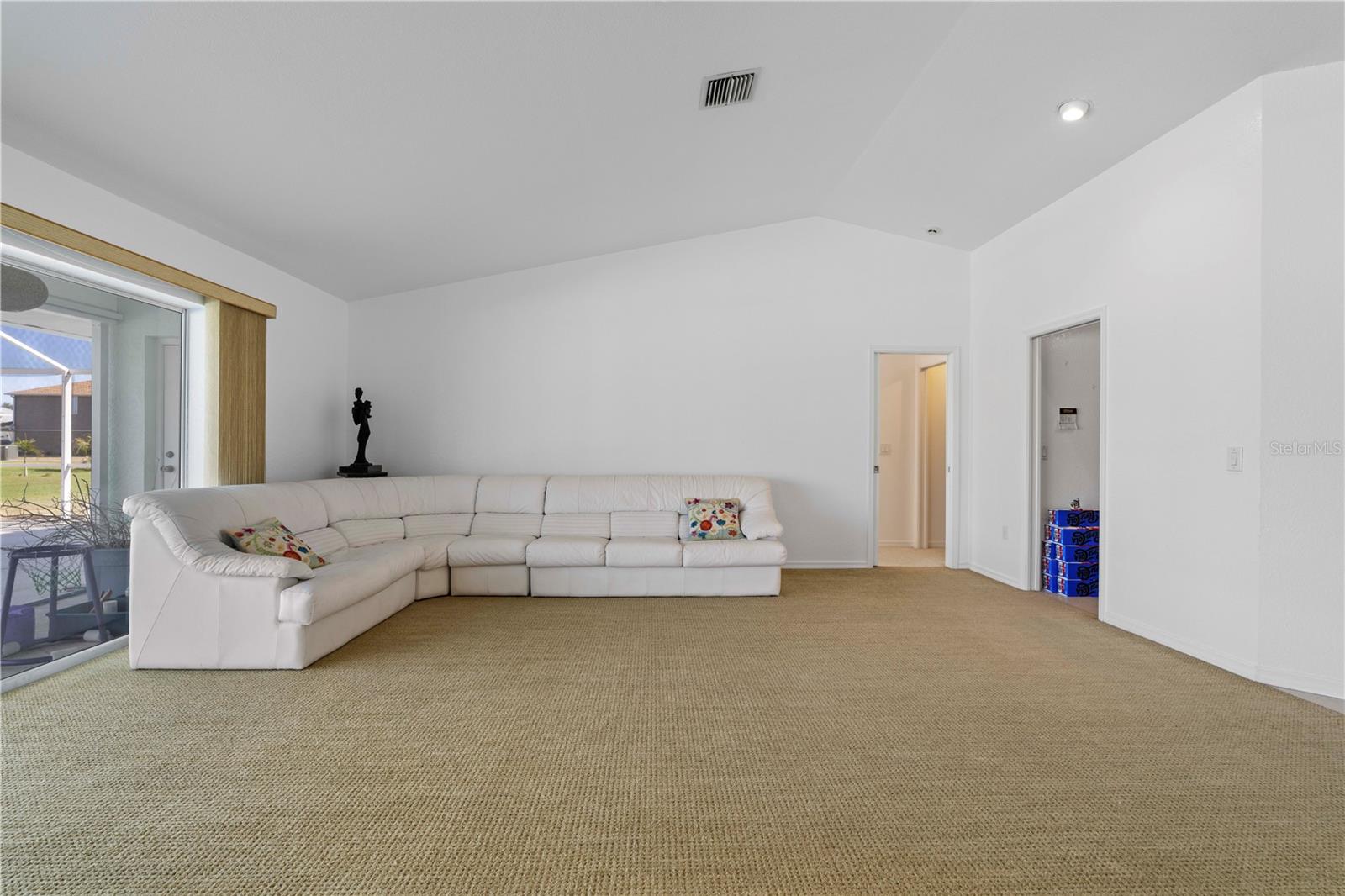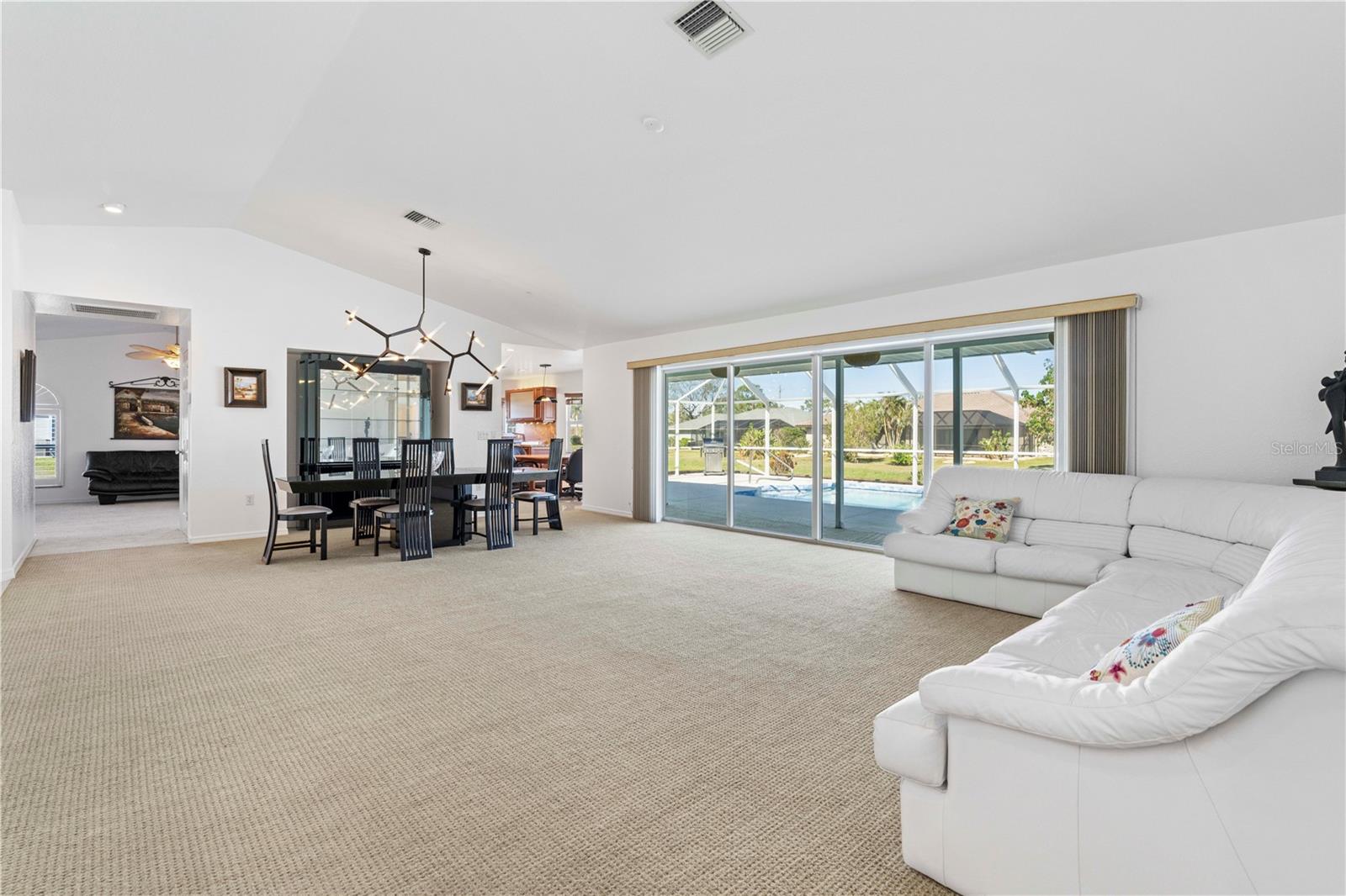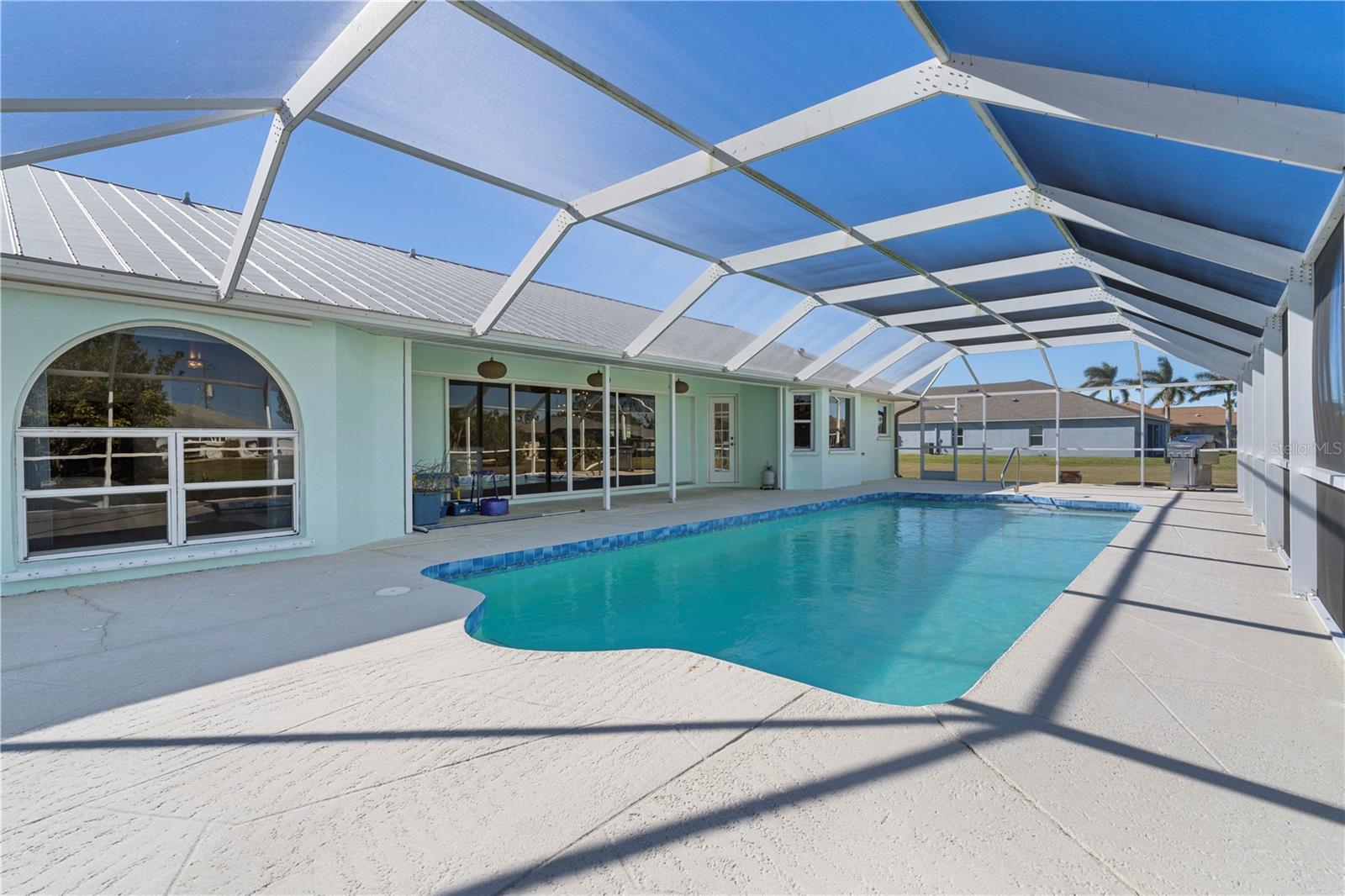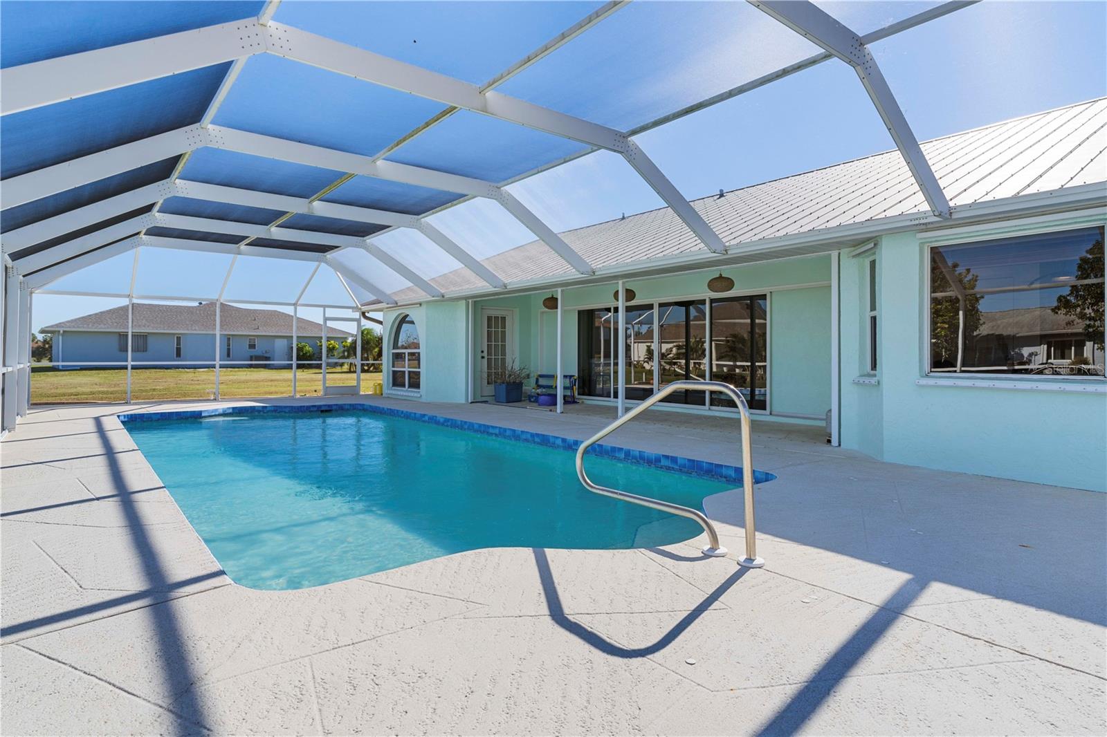 DEEP CREEK HOME W/POOL! Check-out this updated, 3 bed/2 bath home w/low-maintenance, zeroscape front landscaping (including a double Koi pond). Located on a quiet street in the growing, deed-restricted neighborhood of Deep Creek, the property is close to shopping, restaurants & I-75. The home has been meticulously maintained home features over 2,300 sqft of living space under air w/spacious living room w/formal dining area, beautifully updated kitchen & separate family room. Disappearing sliding glass doors extend the living space out onto the lanai. The kitchen boasts a modern flair w/granite counters, high-end, Fisher Paykel & Miele stainless-steel appliances plus an adjacent breakfast area. The kitchen is a chef's delight w/ample cabinet & counter space plus a closet pantry offering additional storage. The large family room is perfect for kicking back w/friends & family to watch a movie or the big game. Architectural details include arched windows, cathedral ceilings in living/dining room & family room, carpet in main living areas & bedrooms plus porcelain tile in the kitchen & master bath plus tile in the guest bathroom as well as a decorative alcove/bumpout in the formal dining area and family rooms. Spacious master suite features walk-out access to the lanai w/a pool view, an oversized walk-in closet & a spa-like master bath w/an updated vanity, tiled shower & separate soaking tub. The split bedroom layout offers privacy to owners & guests alike w/ample guest rooms that share a guest bath. Outside, the lanai features an in-ground pool that was recently refinished w/new marcite coating & waterline tile all surrounded by a resurfaced pool deck w/stamped concrete & cool deck finish plus plenty of room for outdoor entertaining. The home overlooks a wide, greenbelt view for privacy behind the home. Other amenities include hurricane protection provided by a mix of impact-resistant windows & metal panels plus an attached 2 1/2-car garage. Deep Creek offers a semi-private golf course & playground/park area complete w/tennis & basketball courts. Make an appointment today. You won't be disappointed. Vacant lots on either side of the home are owned by the homeowner. Option to purchase adjacent lots w/purchase of the home. Ask list agent for more details.