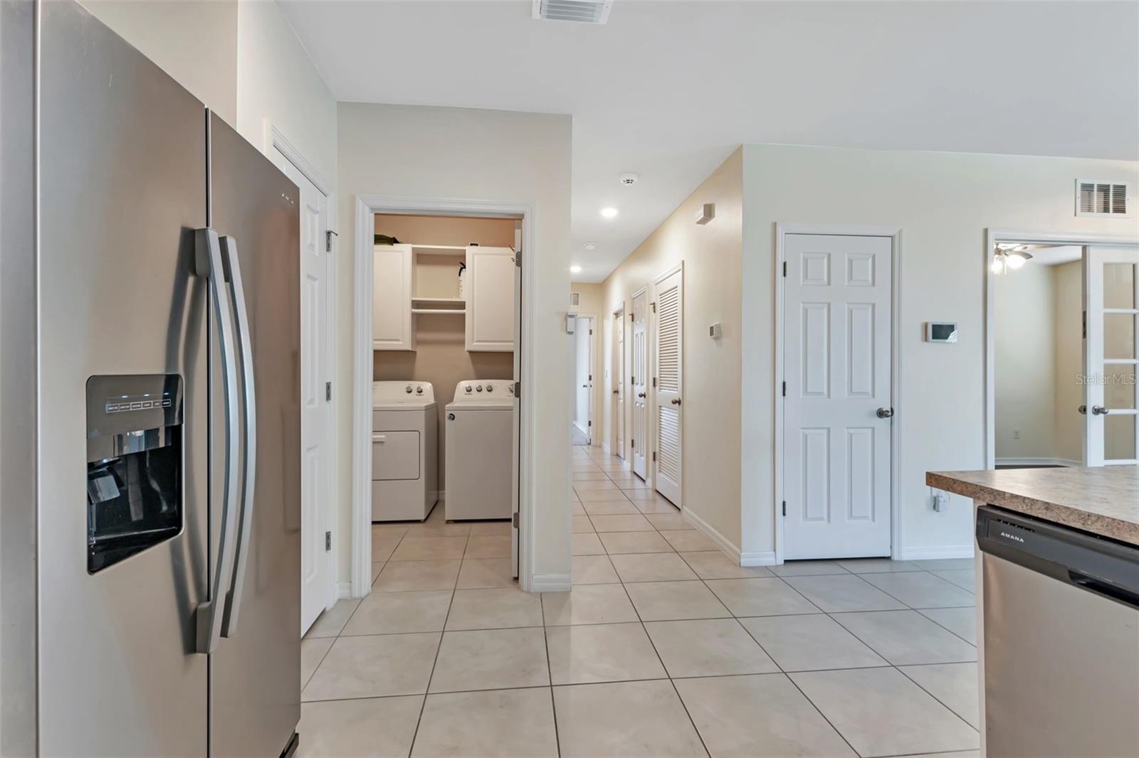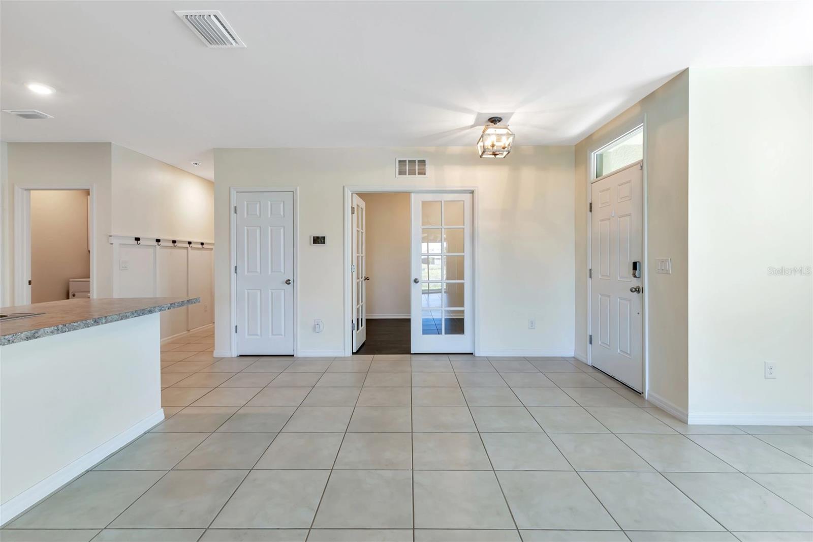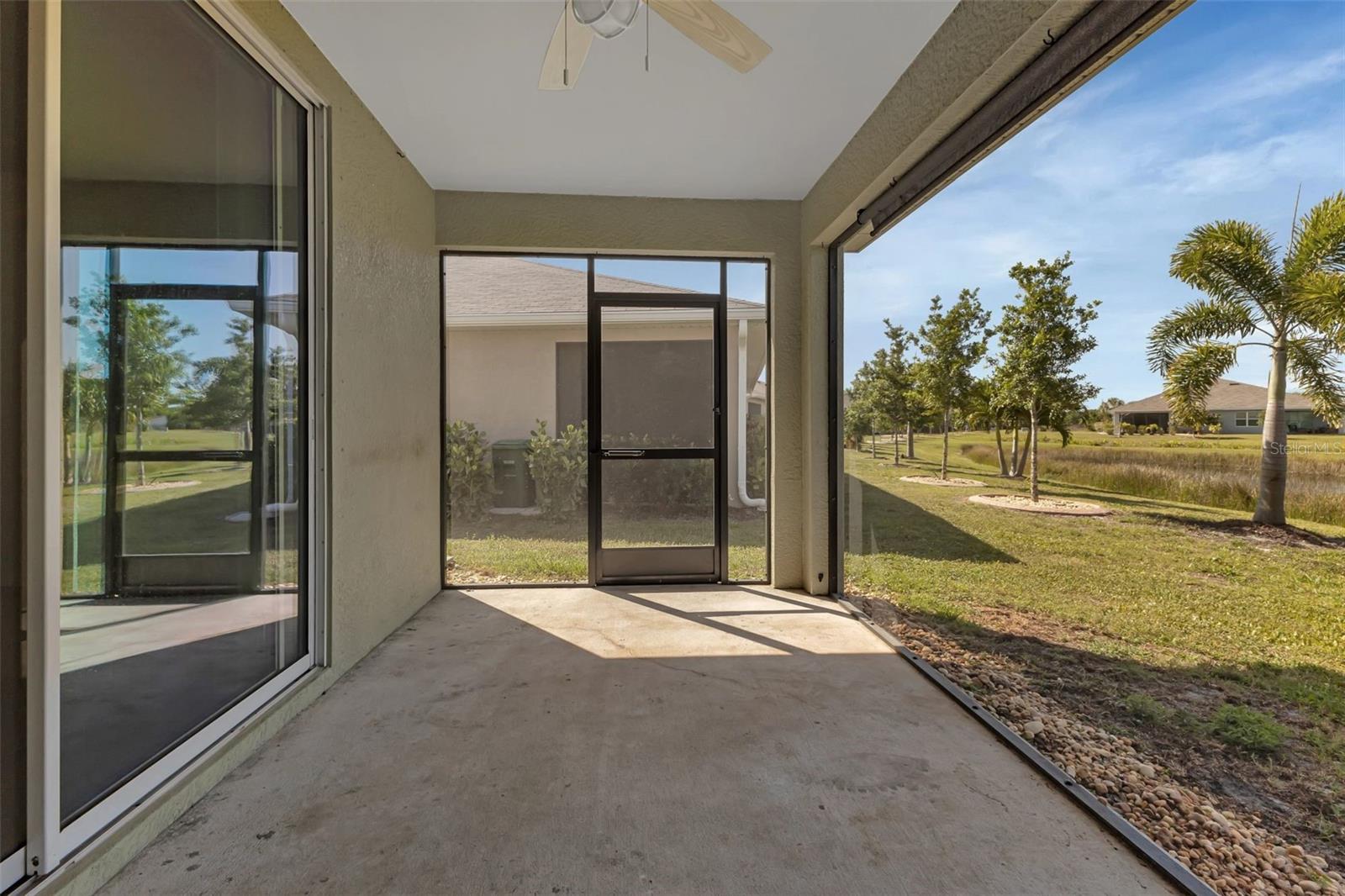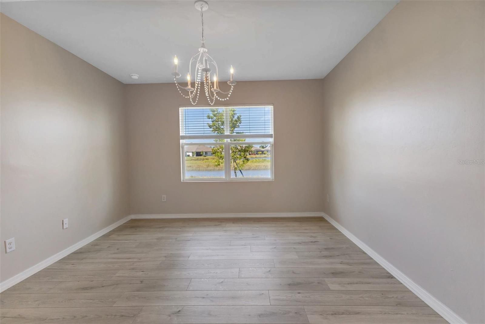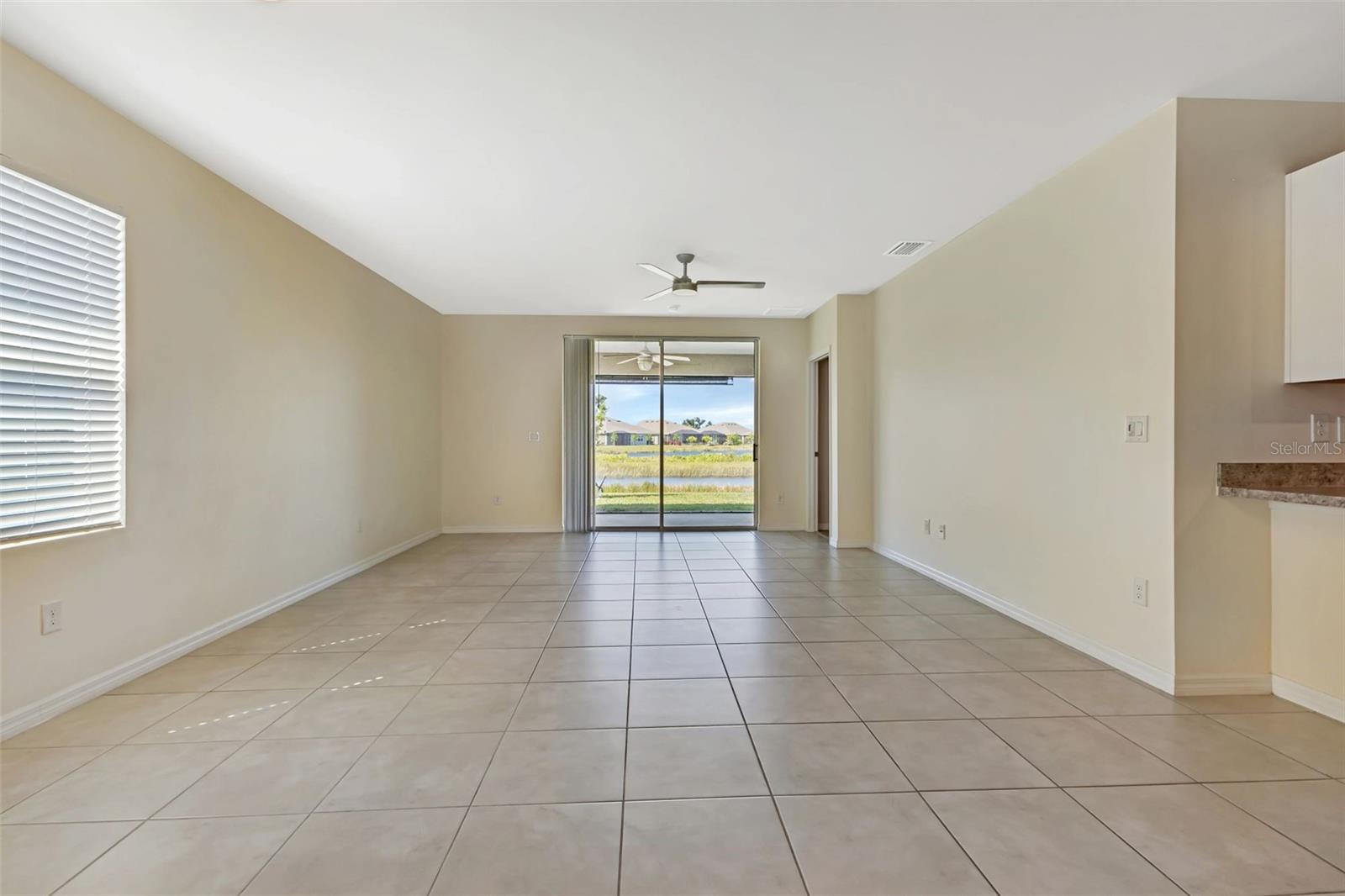 Located within the gated community of Waterford Estates, this welcoming waterfront villa features 2 bedrooms, 2 bathrooms, and an office/den, providing ample space to call your own. As you step inside, you're welcomed by the easy flow between the living, dining, and kitchen areas, enhanced by large ceramic tiles and engineered flooring throughout. The spacious kitchen features stainless steel appliances, a breakfast counter, plenty of cupboard space, and two pantry closets. Conveniently located off the kitchen is the laundry area, complete with storage. Sliding glass doors open onto the lanai, where the Clearview screen allows for uninterrupted views of the tranquil pond beyond. French doors lead to the versatile den/office space, ideal for remote work or relaxation. The primary bedroom, with pond views, features an ensuite bathroom with double sinks, a spacious walk-in closet, and large shower. The split floor plan ensures guest privacy, with a separate bedroom and bath located at the front of the home. Decorative wainscoting down the hallway enhances the home's appeal and character. An oversized 2-car garage provides ample storage space for vehicles and belongings. For added peace of mind, the windows and doors of this villa are hurricane-proof, and hurricane shutters are also included. Residents of Waterford Estates enjoy access to an array of amenities, including two separate community areas with pools, pickleball and tennis courts, bocce courts, picnic area, and a fitness center. The community room features a full kitchen and game room with pool and card tables. Scenic walking paths wind throughout the community, with many residents opting to traverse the neighborhood in golf carts. Located in the vibrant city of Punta Gorda, residents have access to a diverse array of recreational activities and cultural attractions. From waterfront dining and boutique shopping to outdoor adventures such as boating, fishing, and golfing, there's no shortage of opportunities to enjoy the best Florida living offers. Ready to experience the comforts of home in Waterford Estates? Schedule your viewing today!