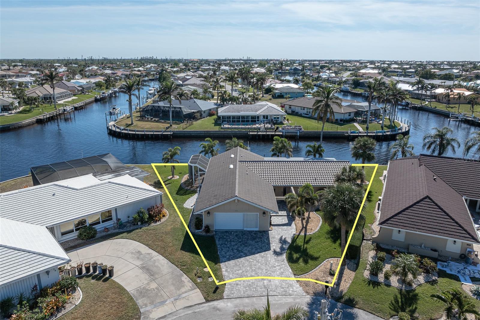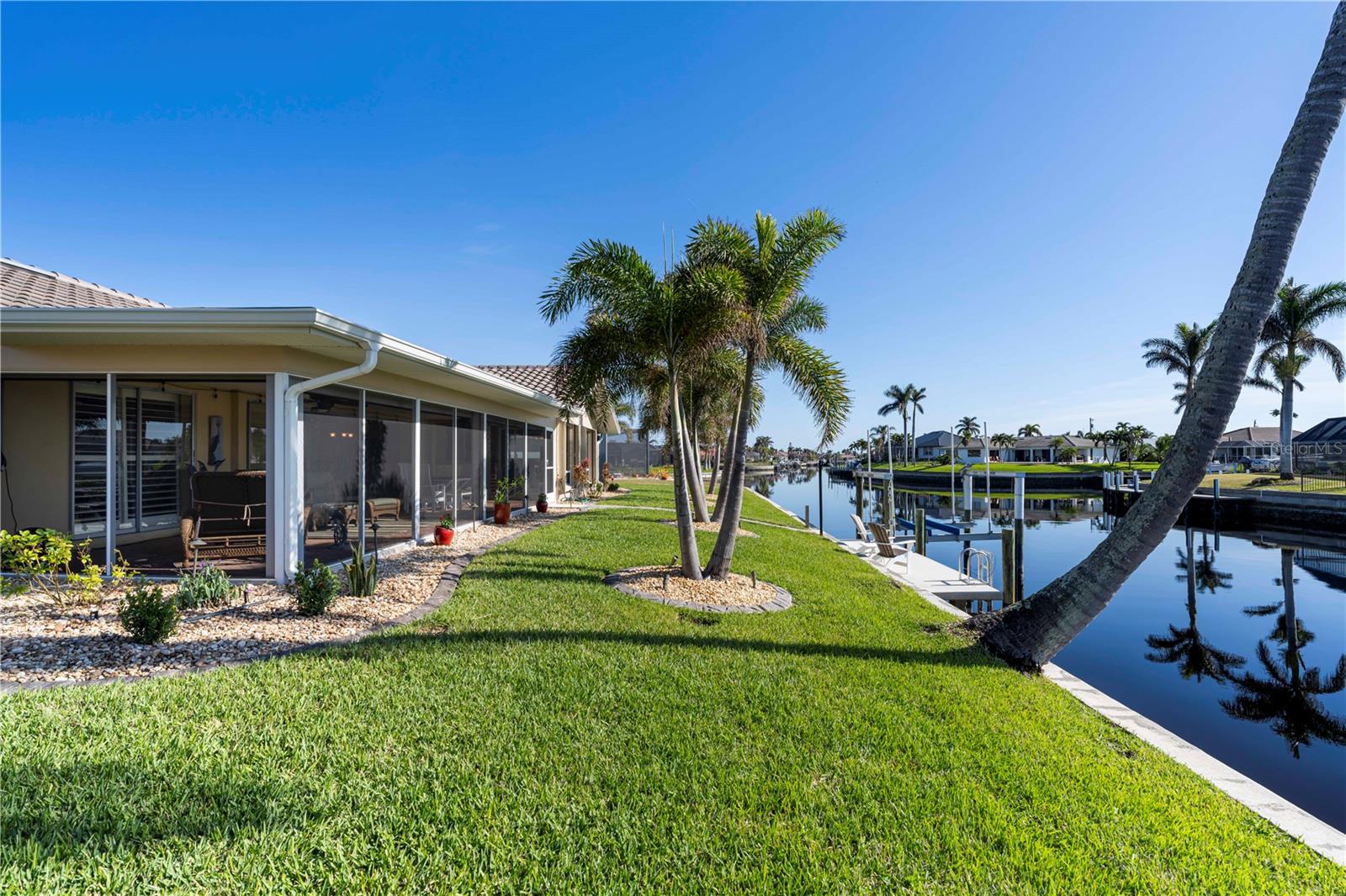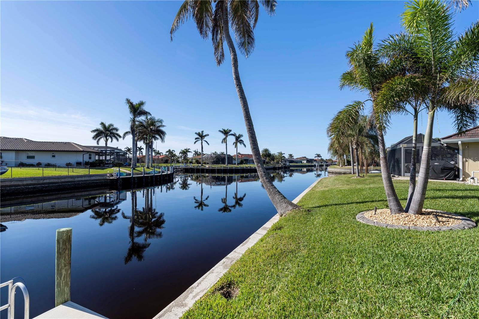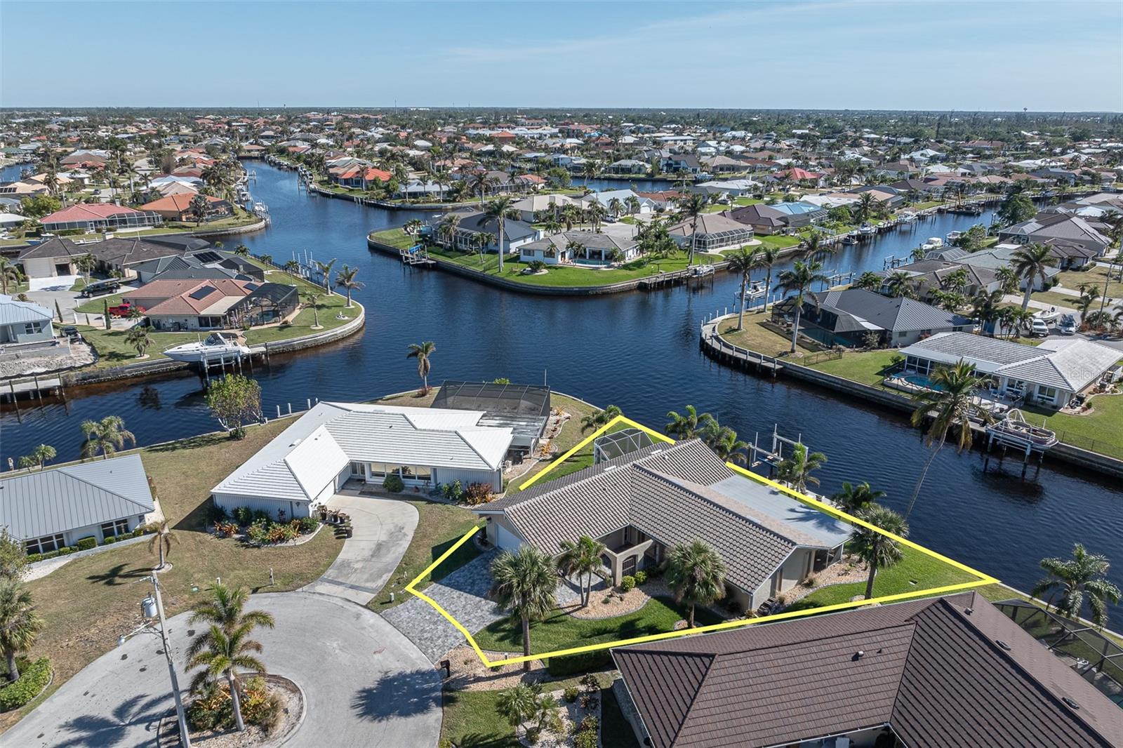 WATERFRONT HOME IN PUNTA GORDA ISLES ON KEY LOT W/**NEW ROOF**, SOUTHERN REAR EXPOSURE & PHENOMENAL VIEW - This updated 3 bed/2 bath, waterfront home has 140 ft of seawall & quick boating access to Charlotte Harbor. Home has been renovated w/updated kitchen & baths. Inside, the modified Bimini floor plan offers an elegant living space featuring Brazilian cherry wood floors. Disappearing sliding glass doors seamlessly connect the living/dining area to the screened lanai, complete with a brick paver deck, where you can relax and enjoy panoramic water views. Home is perfect for Florida living with almost every room in the home opening to an outdoor living space. The kitchen has granite counters, wood cabinetry & under cabinet lighting. The adjacent breakfast area offers stunning canal view & thanks to the southern rear exposure, you can catch glimpses of both the sunrise & sunset. The split bedroom layout features a spacious master suite w/spa-like master bath & an oversized walk-in closet. The master bath has dual sinks & a tiled shower w/rainfall shower head & built-in corner bench. The guest bedrooms share an updated guest bath. One guest room is currently used as a den/family room w/pocket doors opening to the kitchen area & sliding glass doors that open to a second screened patio that provides additional outdoor entertaining space. There's room for a pool, if desired. Renderings for potential pool attached to MLS. Brick paver walkway leads to the extended concrete dock w/10,000 lb boat lift that was added in 2018. Water & electric hook-ups are available dockside. Start enjoying some of the best fishing & boating SW Florida has to offer from your backyard. Reach open water in under 15 minutes. Other updates include NEW EAGLE TILE ROOF (2023), whole house replumb with PEX (2020), home rewired (2014), NEW paver driveway/walkways (2022) & NEW irrigation system (2022). Home has an attached two-car garage with an epoxy floor (2021), NEW storage cabinets & slatwall (2021). Hurricane protection provided by steel accordion shutters & an electric Kevlar screen on the main lanai. Thanks to the home’s high elevation, it experienced no flooding or water intrusion during recent hurricanes. Consider joining the Punta Gorda Isles Civic Association - here you'll find numerous social and boating clubs to connect with like-minded neighbors. Miles of sidewalks in PGI easily connect you to numerous parks, Fishermen's Village, the library, the PGICA building & historic downtown. There's more to Punta Gorda than boating, an active lifestyle awaits here w/golfing, fishing, tennis, pickleball & more. The city also offers a lively art & music scene w/weekend festivals throughout the year. Discover why Punta Gorda Isles is considered a hidden gem of SW Florida. Make an appointment today.