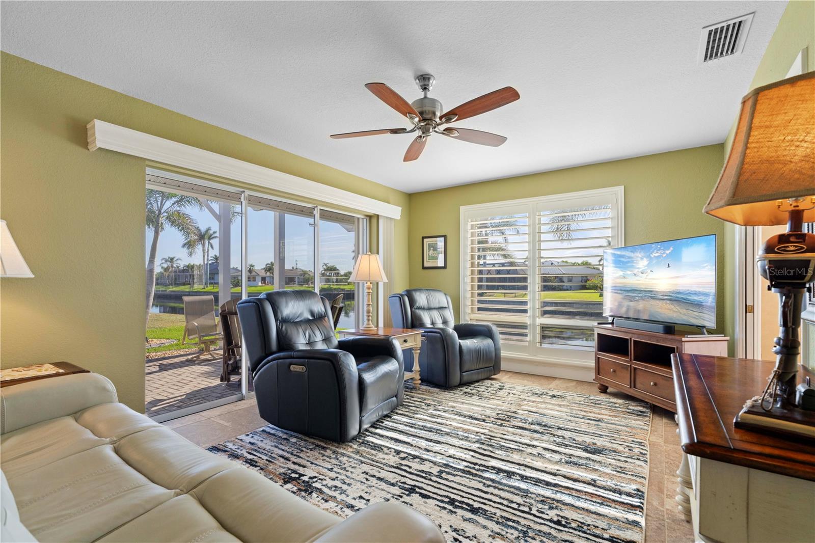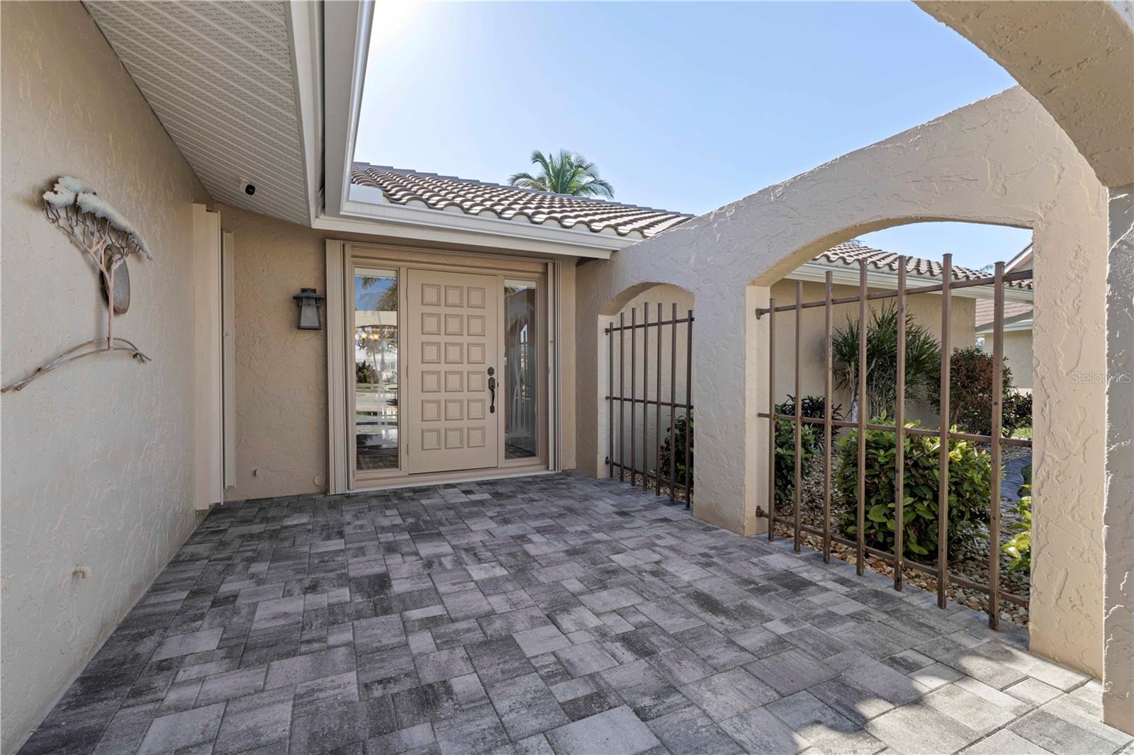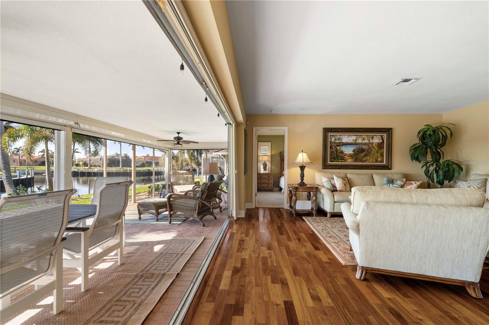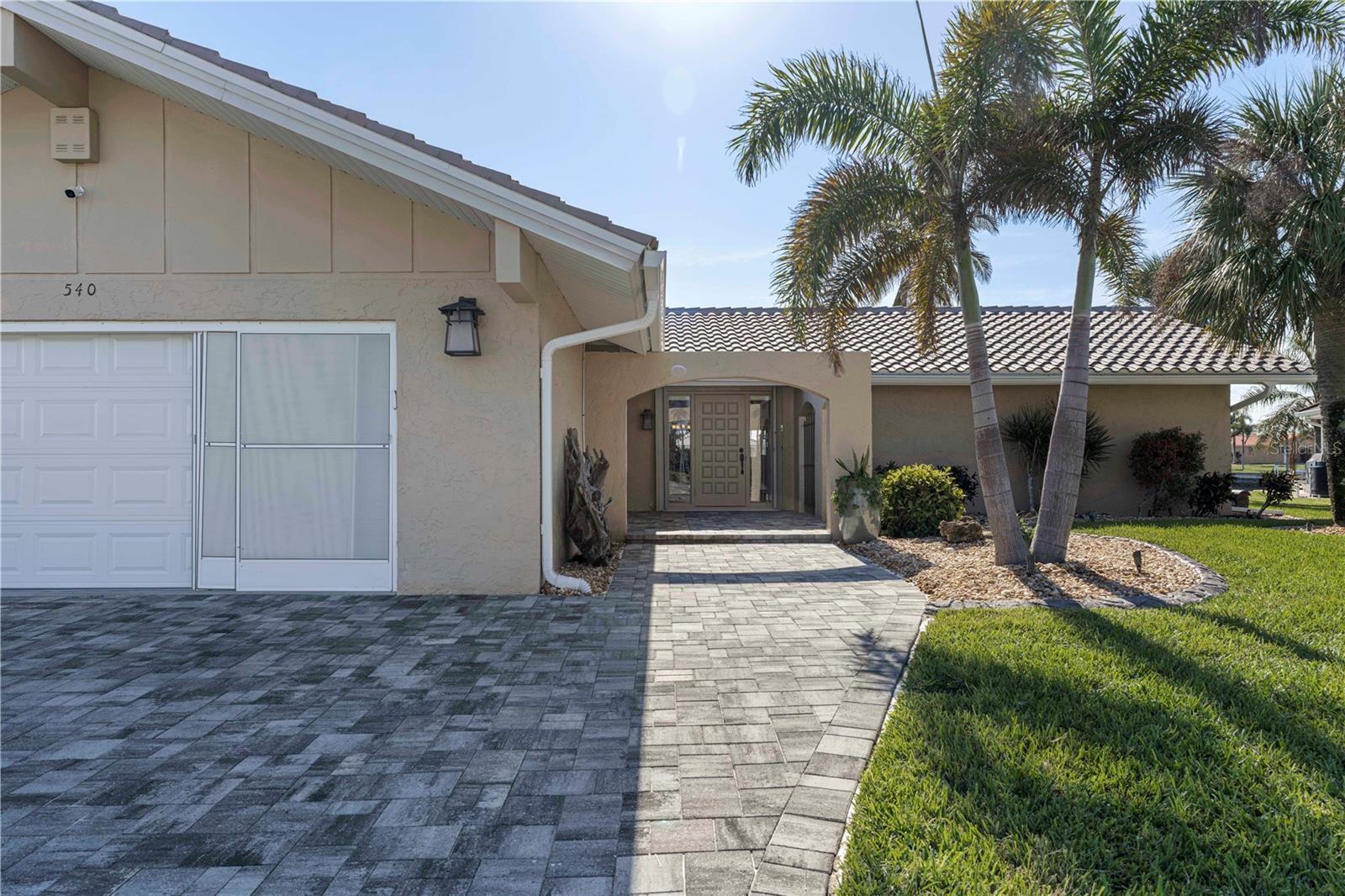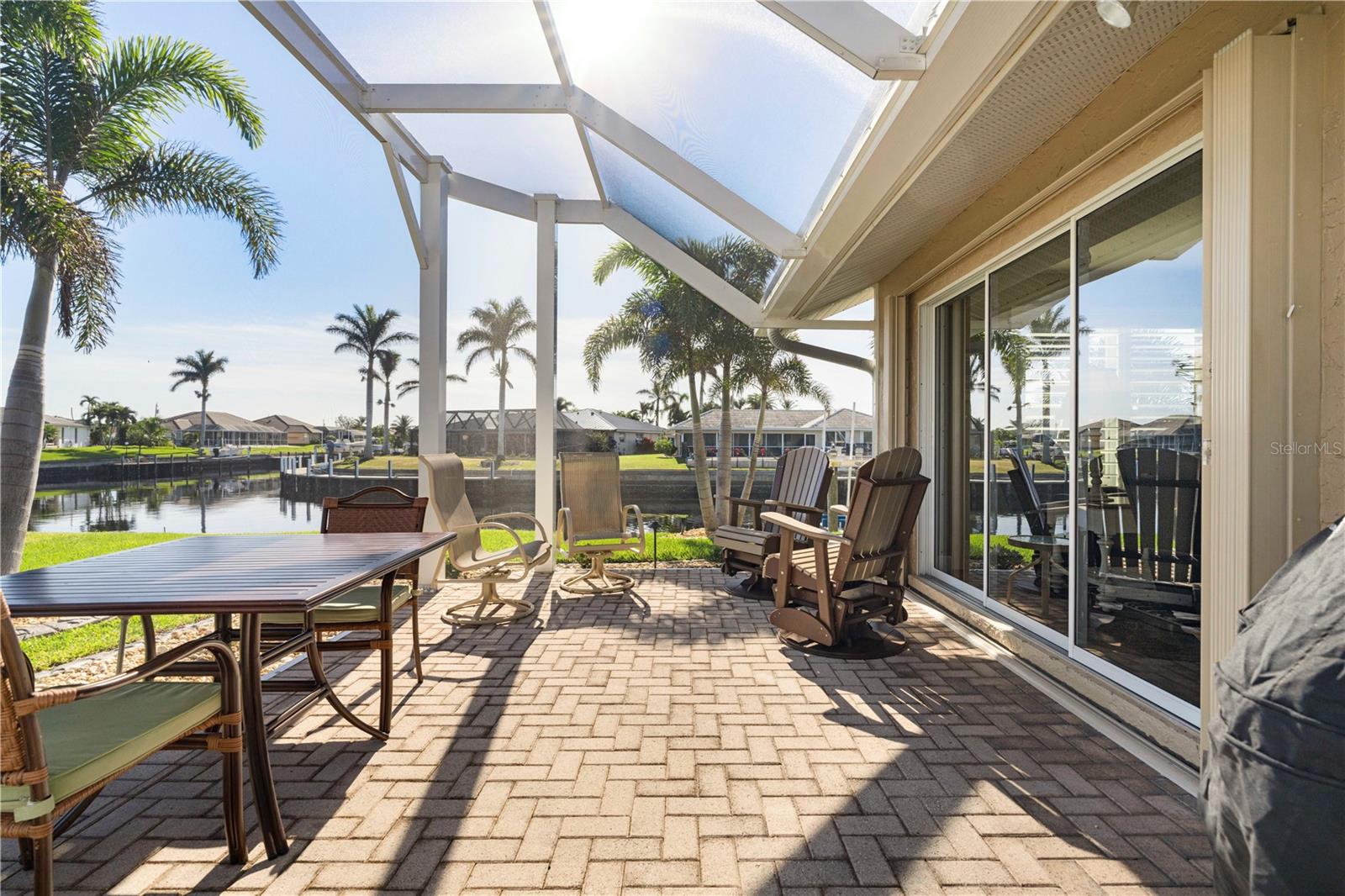 WATERFRONT HOME IN PUNTA GORDA ISLES ON KEY LOT W/**NEW ROOF**, SOUTHERN REAR EXPOSURE & PHENOMENAL VIEW - This updated 3 bed/2 bath, waterfront home has 140 ft of seawall & quick boating access to Charlotte Harbor. Home has been renovated w/updated kitchen & baths. Inside, the modified Bimini floor plan offers an elegant living space featuring Brazilian cherry wood floors. Disappearing sliding glass doors seamlessly connect the living/dining area to the screened lanai, complete with a brick paver deck, where you can relax and enjoy panoramic water views. Home is perfect for Florida living with almost every room in the home opening to an outdoor living space. The kitchen has granite counters, wood cabinetry & under cabinet lighting. The adjacent breakfast area offers stunning canal view & thanks to the southern rear exposure, you can catch glimpses of both the sunrise & sunset. The split bedroom layout features a spacious master suite w/spa-like master bath & an oversized walk-in closet. The master bath has dual sinks & a tiled shower w/rainfall shower head & built-in corner bench. The guest bedrooms share an updated guest bath. One guest room is currently used as a den/family room w/pocket doors opening to the kitchen area & sliding glass doors that open to a second screened patio that provides additional outdoor entertaining space. There's room for a pool, if desired. Renderings for potential pool attached to MLS. Brick paver walkway leads to the extended concrete dock w/10,000 lb boat lift that was added in 2018. Water & electric hook-ups are available dockside. Start enjoying some of the best fishing & boating SW Florida has to offer from your backyard. Reach open water in under 15 minutes. Other updates include NEW EAGLE TILE ROOF (2023), whole house replumb with PEX (2020), home rewired (2014), NEW paver driveway/walkways (2022) & NEW irrigation system (2022). Home has an attached two-car garage with an epoxy floor (2021), NEW storage cabinets & slatwall (2021). Hurricane protection provided by steel accordion shutters & an electric Kevlar screen on the main lanai. Thanks to the home’s high elevation, it experienced no flooding or water intrusion during recent hurricanes. Consider joining the Punta Gorda Isles Civic Association - here you'll find numerous social and boating clubs to connect with like-minded neighbors. Miles of sidewalks in PGI easily connect you to numerous parks, Fishermen's Village, the library, the PGICA building & historic downtown. There's more to Punta Gorda than boating, an active lifestyle awaits here w/golfing, fishing, tennis, pickleball & more. The city also offers a lively art & music scene w/weekend festivals throughout the year. Discover why Punta Gorda Isles is considered a hidden gem of SW Florida. Make an appointment today.