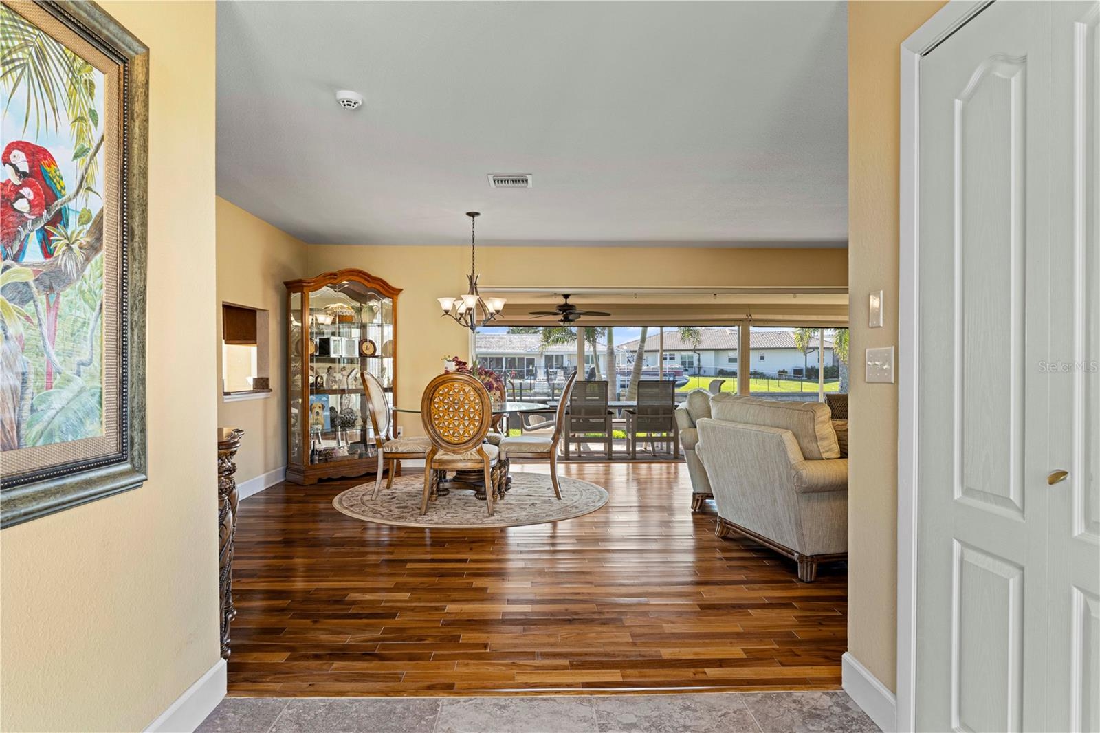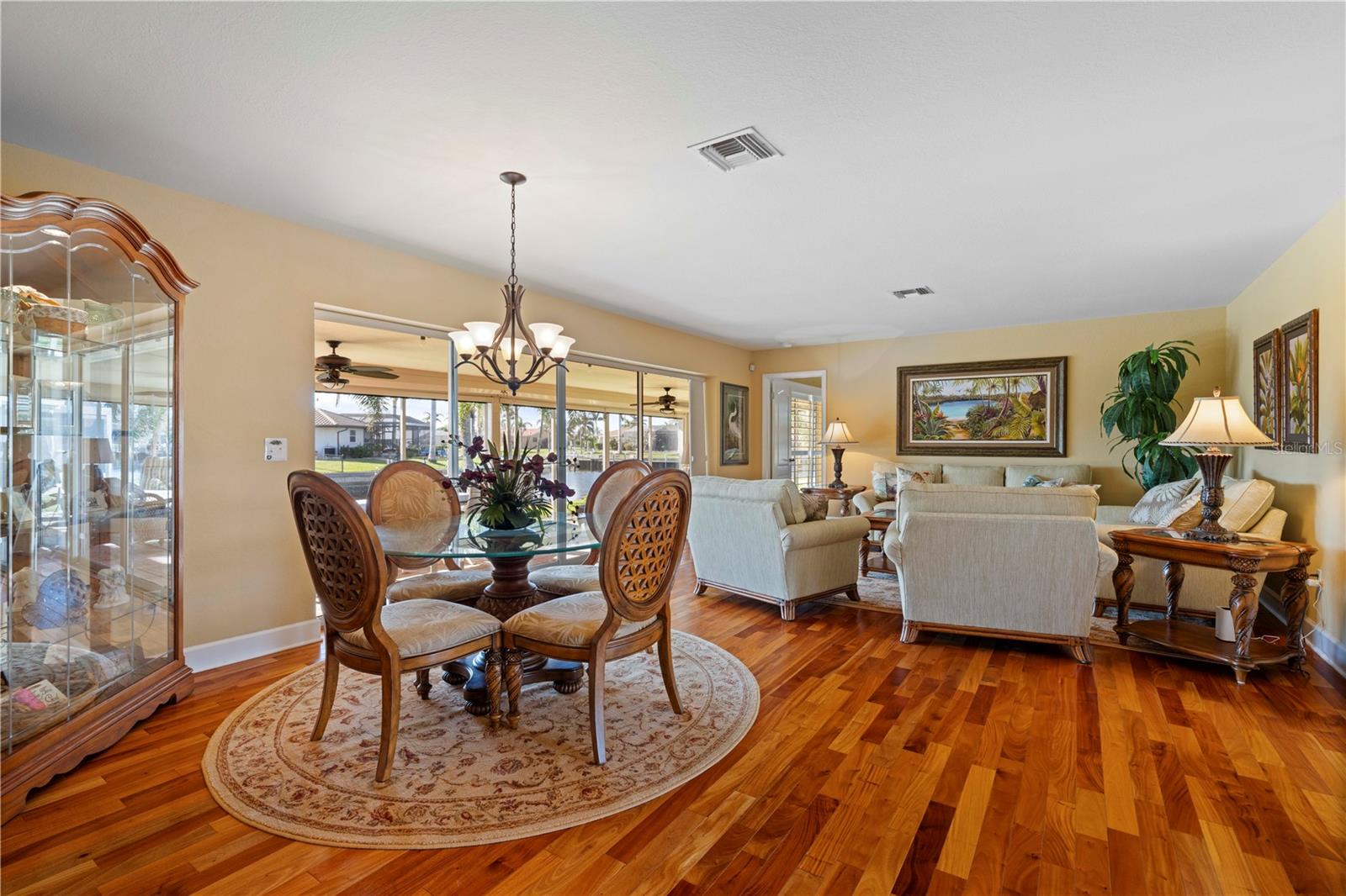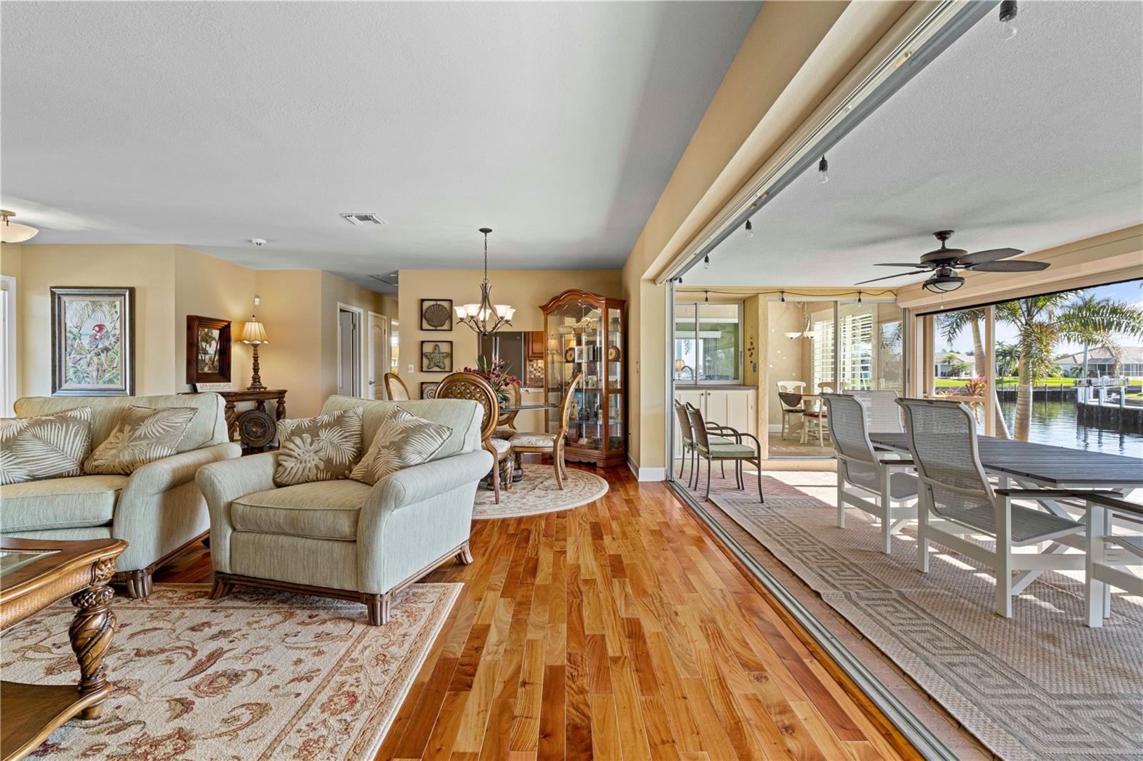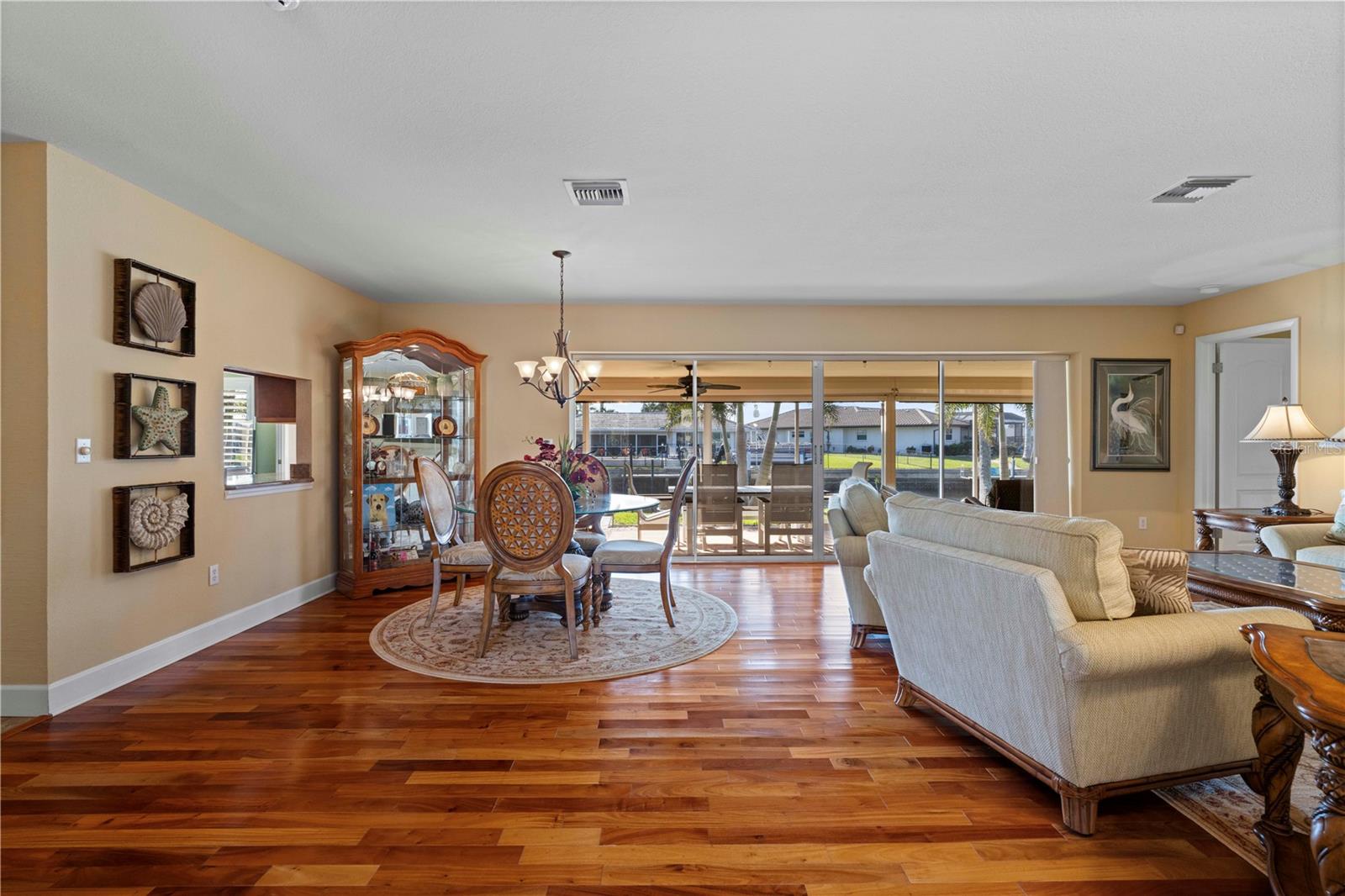 WATERFRONT HOME IN PUNTA GORDA ISLES ON KEY LOT W/**NEW ROOF**, SOUTHERN REAR EXPOSURE & PHENOMENAL VIEW - This updated 3 bed/2 bath, waterfront home has 140 ft of seawall & quick boating access to Charlotte Harbor. Home has been renovated w/updated kitchen & baths. Inside, the modified Bimini floor plan offers an elegant living space featuring Brazilian cherry wood floors. Disappearing sliding glass doors seamlessly connect the living/dining area to the screened lanai, complete with a brick paver deck, where you can relax and enjoy panoramic water views. Home is perfect for Florida living with almost every room in the home opening to an outdoor living space. The kitchen has granite counters, wood cabinetry & under cabinet lighting. The adjacent breakfast area offers stunning canal view & thanks to the southern rear exposure, you can catch glimpses of both the sunrise & sunset. The split bedroom layout features a spacious master suite w/spa-like master bath & an oversized walk-in closet. The master bath has dual sinks & a tiled shower w/rainfall shower head & built-in corner bench. The guest bedrooms share an updated guest bath. One guest room is currently used as a den/family room w/pocket doors opening to the kitchen area & sliding glass doors that open to a second screened patio that provides additional outdoor entertaining space. There's room for a pool, if desired. Renderings for potential pool attached to MLS. Brick paver walkway leads to the extended concrete dock w/10,000 lb boat lift that was added in 2018. Water & electric hook-ups are available dockside. Start enjoying some of the best fishing & boating SW Florida has to offer from your backyard. Reach open water in under 15 minutes. Other updates include NEW EAGLE TILE ROOF (2023), whole house replumb with PEX (2020), home rewired (2014), NEW paver driveway/walkways (2022) & NEW irrigation system (2022). Home has an attached two-car garage with an epoxy floor (2021), NEW storage cabinets & slatwall (2021). Hurricane protection provided by steel accordion shutters & an electric Kevlar screen on the main lanai. Thanks to the home’s high elevation, it experienced no flooding or water intrusion during recent hurricanes. Consider joining the Punta Gorda Isles Civic Association - here you'll find numerous social and boating clubs to connect with like-minded neighbors. Miles of sidewalks in PGI easily connect you to numerous parks, Fishermen's Village, the library, the PGICA building & historic downtown. There's more to Punta Gorda than boating, an active lifestyle awaits here w/golfing, fishing, tennis, pickleball & more. The city also offers a lively art & music scene w/weekend festivals throughout the year. Discover why Punta Gorda Isles is considered a hidden gem of SW Florida. Make an appointment today.