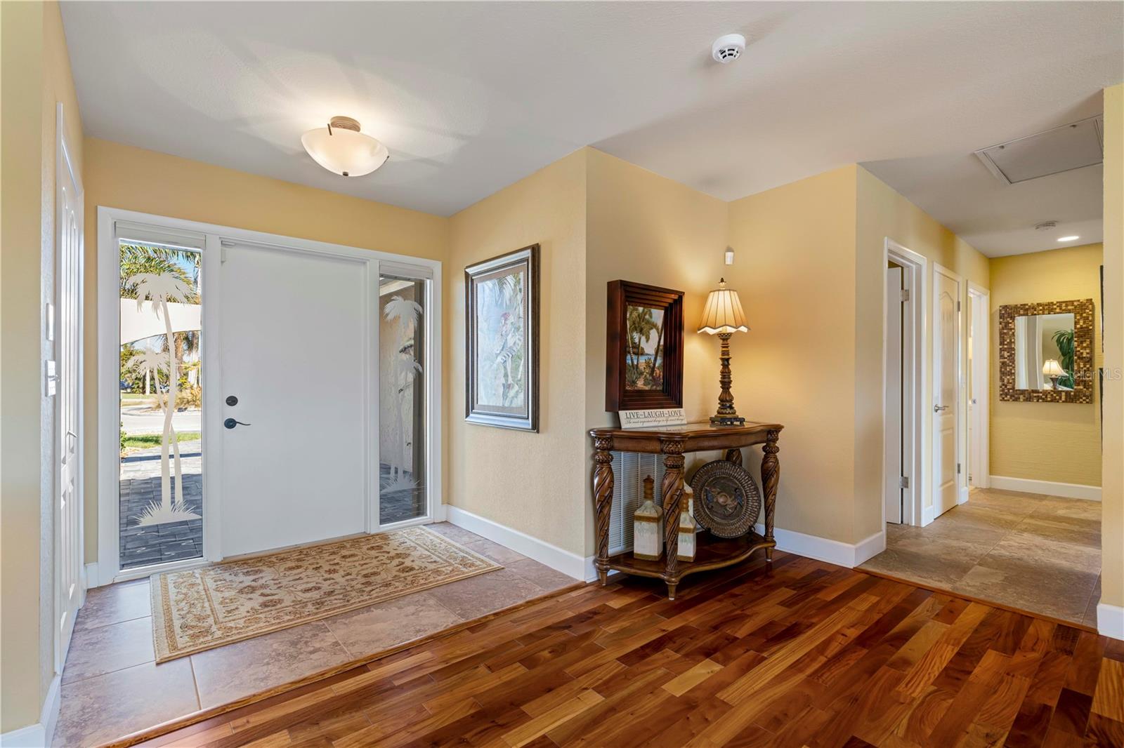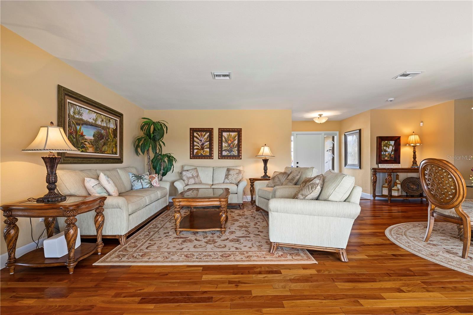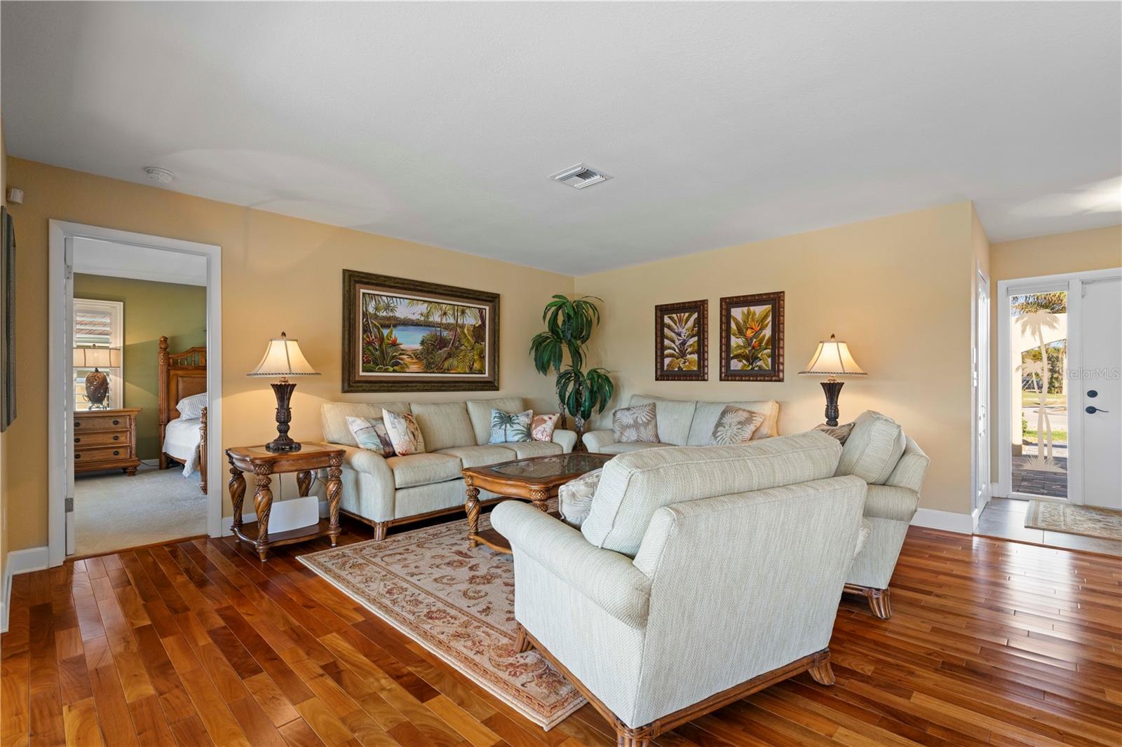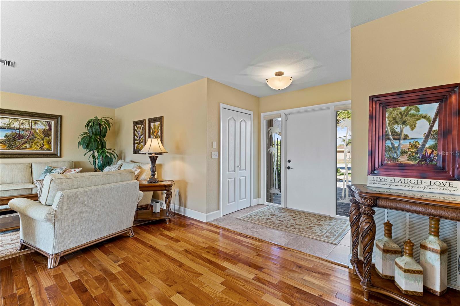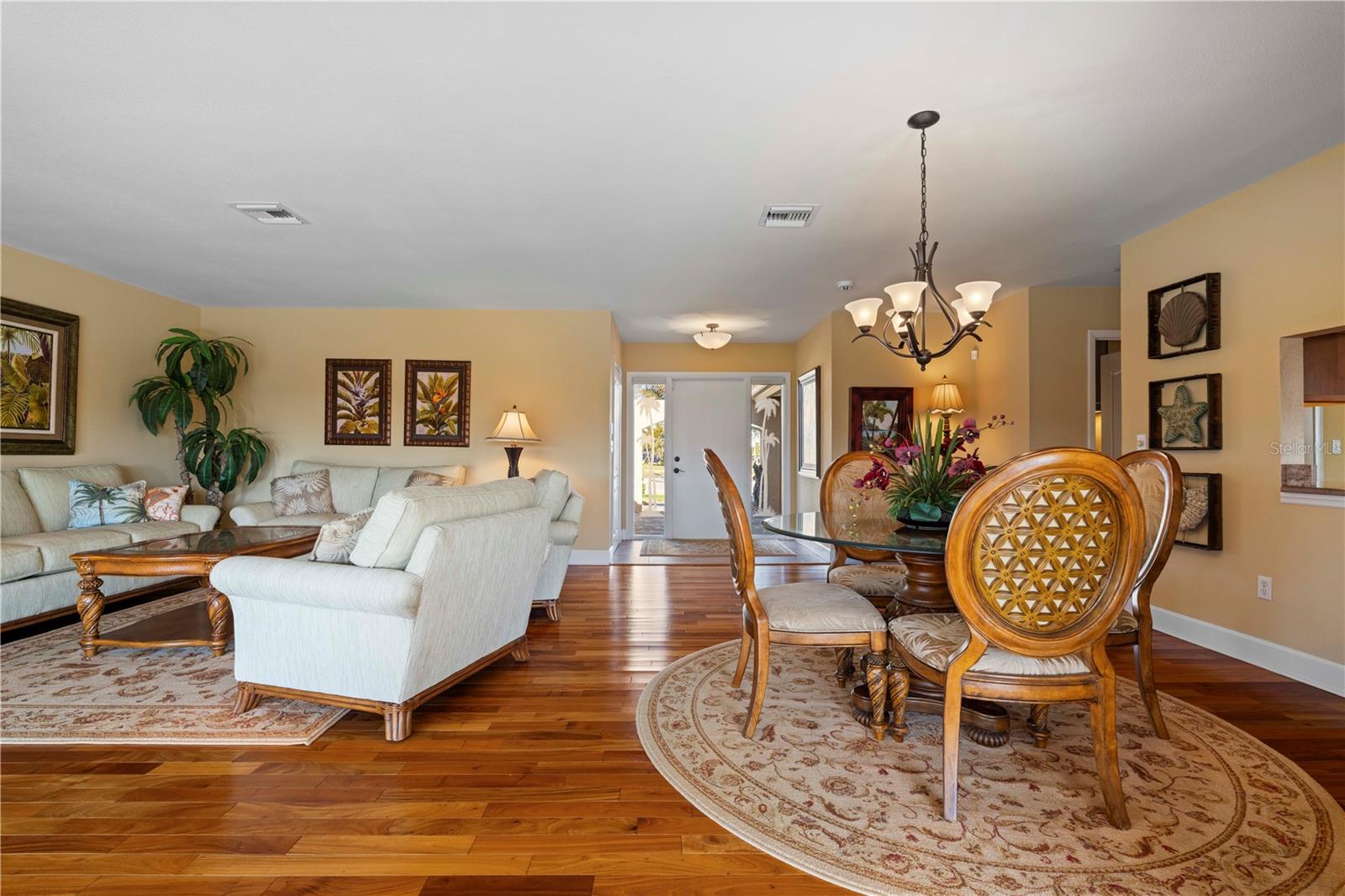 WATERFRONT HOME IN PUNTA GORDA ISLES ON KEY LOT W/**NEW ROOF**, SOUTHERN REAR EXPOSURE & PHENOMENAL VIEW - This updated 3 bed/2 bath, waterfront home has 140 ft of seawall & quick boating access to Charlotte Harbor. Home has been renovated w/updated kitchen & baths. Inside, the modified Bimini floor plan offers an elegant living space featuring Brazilian cherry wood floors. Disappearing sliding glass doors seamlessly connect the living/dining area to the screened lanai, complete with a brick paver deck, where you can relax and enjoy panoramic water views. Home is perfect for Florida living with almost every room in the home opening to an outdoor living space. The kitchen has granite counters, wood cabinetry & under cabinet lighting. The adjacent breakfast area offers stunning canal view & thanks to the southern rear exposure, you can catch glimpses of both the sunrise & sunset. The split bedroom layout features a spacious master suite w/spa-like master bath & an oversized walk-in closet. The master bath has dual sinks & a tiled shower w/rainfall shower head & built-in corner bench. The guest bedrooms share an updated guest bath. One guest room is currently used as a den/family room w/pocket doors opening to the kitchen area & sliding glass doors that open to a second screened patio that provides additional outdoor entertaining space. There's room for a pool, if desired. Renderings for potential pool attached to MLS. Brick paver walkway leads to the extended concrete dock w/10,000 lb boat lift that was added in 2018. Water & electric hook-ups are available dockside. Start enjoying some of the best fishing & boating SW Florida has to offer from your backyard. Reach open water in under 15 minutes. Other updates include NEW EAGLE TILE ROOF (2023), whole house replumb with PEX (2020), home rewired (2014), NEW paver driveway/walkways (2022) & NEW irrigation system (2022). Home has an attached two-car garage with an epoxy floor (2021), NEW storage cabinets & slatwall (2021). Hurricane protection provided by steel accordion shutters & an electric Kevlar screen on the main lanai. Thanks to the home’s high elevation, it experienced no flooding or water intrusion during recent hurricanes. Consider joining the Punta Gorda Isles Civic Association - here you'll find numerous social and boating clubs to connect with like-minded neighbors. Miles of sidewalks in PGI easily connect you to numerous parks, Fishermen's Village, the library, the PGICA building & historic downtown. There's more to Punta Gorda than boating, an active lifestyle awaits here w/golfing, fishing, tennis, pickleball & more. The city also offers a lively art & music scene w/weekend festivals throughout the year. Discover why Punta Gorda Isles is considered a hidden gem of SW Florida. Make an appointment today.