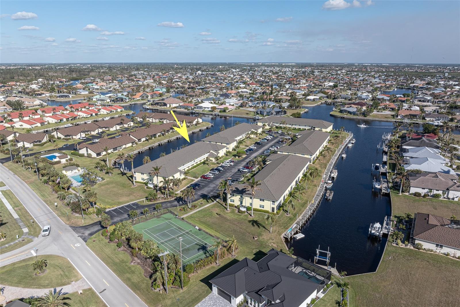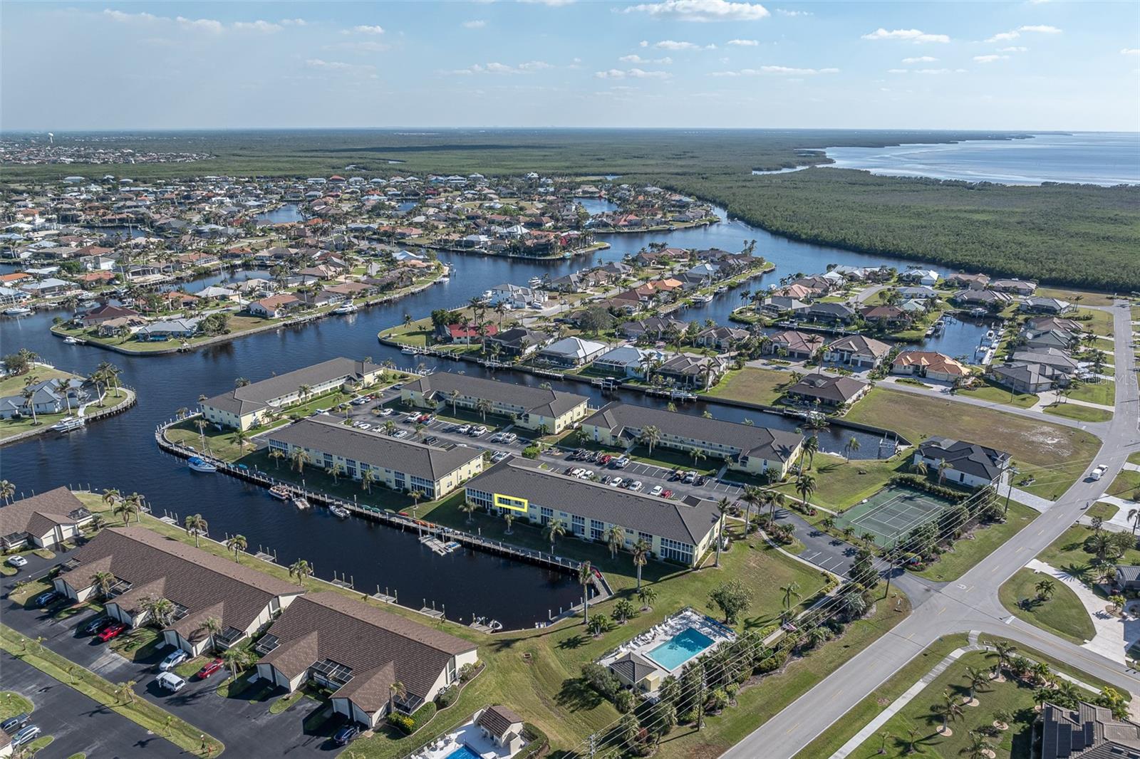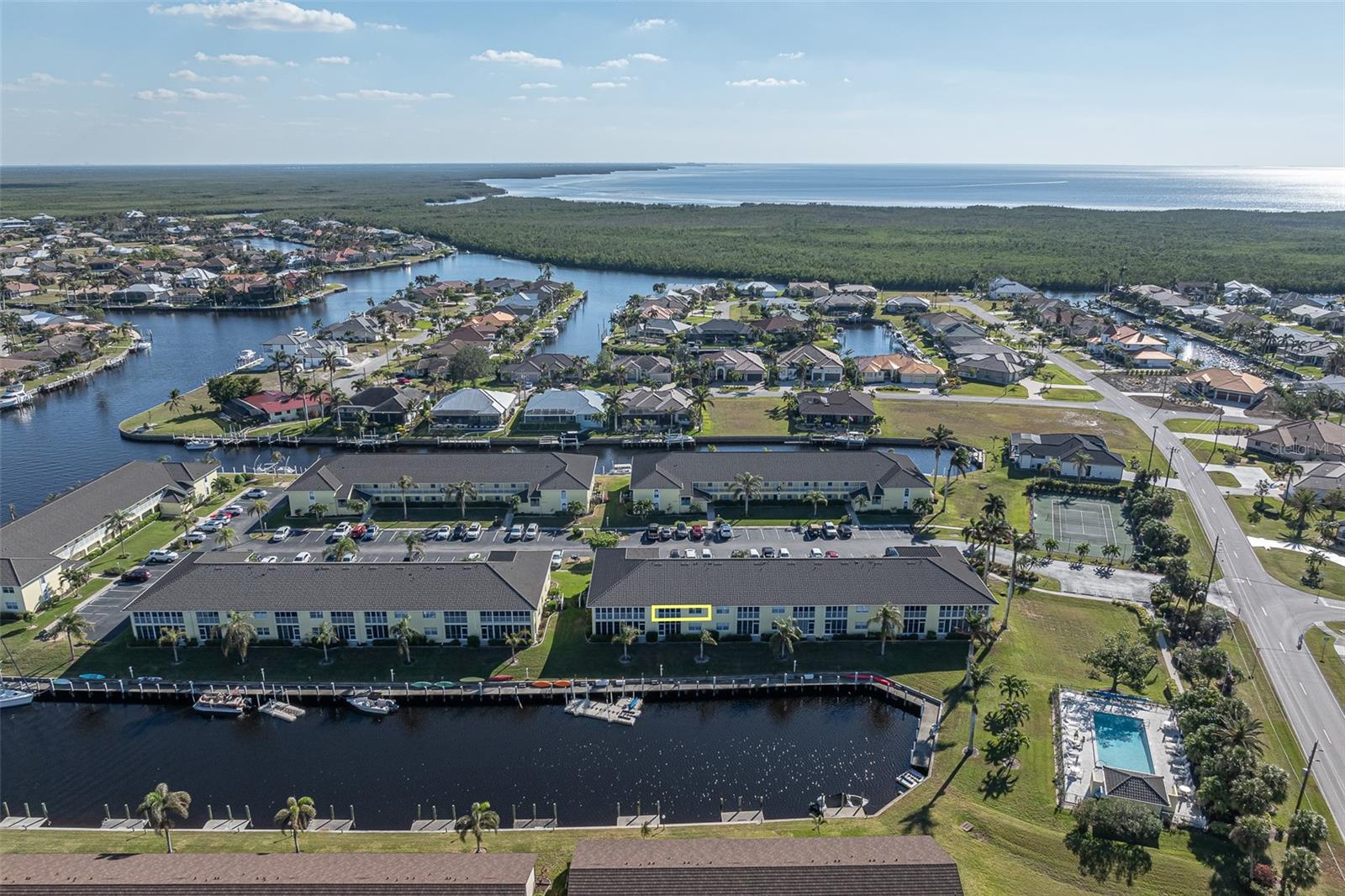 PERFECT WATERFRONT CONDO IN PGI! Check out this spacious & updated 2 bed/2 bath, top-floor unit at Spinnaker Point in Punta Gorda Isles w/wonderful canal view & sailboat access to Charlotte Harbor. CONDO IS BEING SOLD TURNKEY (FULLY FURNISHED w/minor exclusions of personal items). Arrive with just your suitcase & nothing more is needed. Docks are available on 1st come, 1st serve basis and can accommodate boats up to 34 feet - at time of listing, dock space is available. Unit features open floor plan w/a combination formal living room & dining room plus large bedrooms and a private, screened lanai overlooking the docks & canal below. Wood-look, plank tile flooring has been installed throughout the condo. Other architectural details include soaring cathedral ceilings, a screen door & large picture windows. The updated kitchen features granite counters, Shaker-style cabinetry & stainless-steel appliances plus abundant cabinet & counter space including a pantry & breakfast bar. The large laundry room has full-sized washer & dryer & additional overhead storage shelves. The master suite has an oversized walk-in closet & an updated en-suite master bath w/quartz counters & walk-in shower. Guest bedroom is located opposite the beautifully updated guest bath. Lanai features tile floors & screens w/vinyl panels for year-round use. Spinnaker Point is comprised of 70 units. The association boasts NEW ROOFS on all buildings, low monthly maintenance fees, and nearly 1,500 feet of seawall. Condo amenities include a tennis court, heated pool & wraparound dock that is just waiting for your boat or kayak. Located across the street from St. Andrews Golf Course - you choose boating from your backyard or hitting the links out the front door. This condo has everything you need to enjoy the Florida lifestyle. Miles of sidewalks allow you to connect w/the whole of Punta Gorda Isles, numerous local parks, Fishermen's Village, Isles Yacht Club & even historic downtown. Punta Gorda also boasts a lively music & art scene w/live music & art exhibits/fairs frequently found around town. Come find out why Punta Gorda is often voted one of the best places to live, work & retire in Florida. Make an appointment today. Condo is ideal as a full-time residence, winter retreat or investment opportunity.