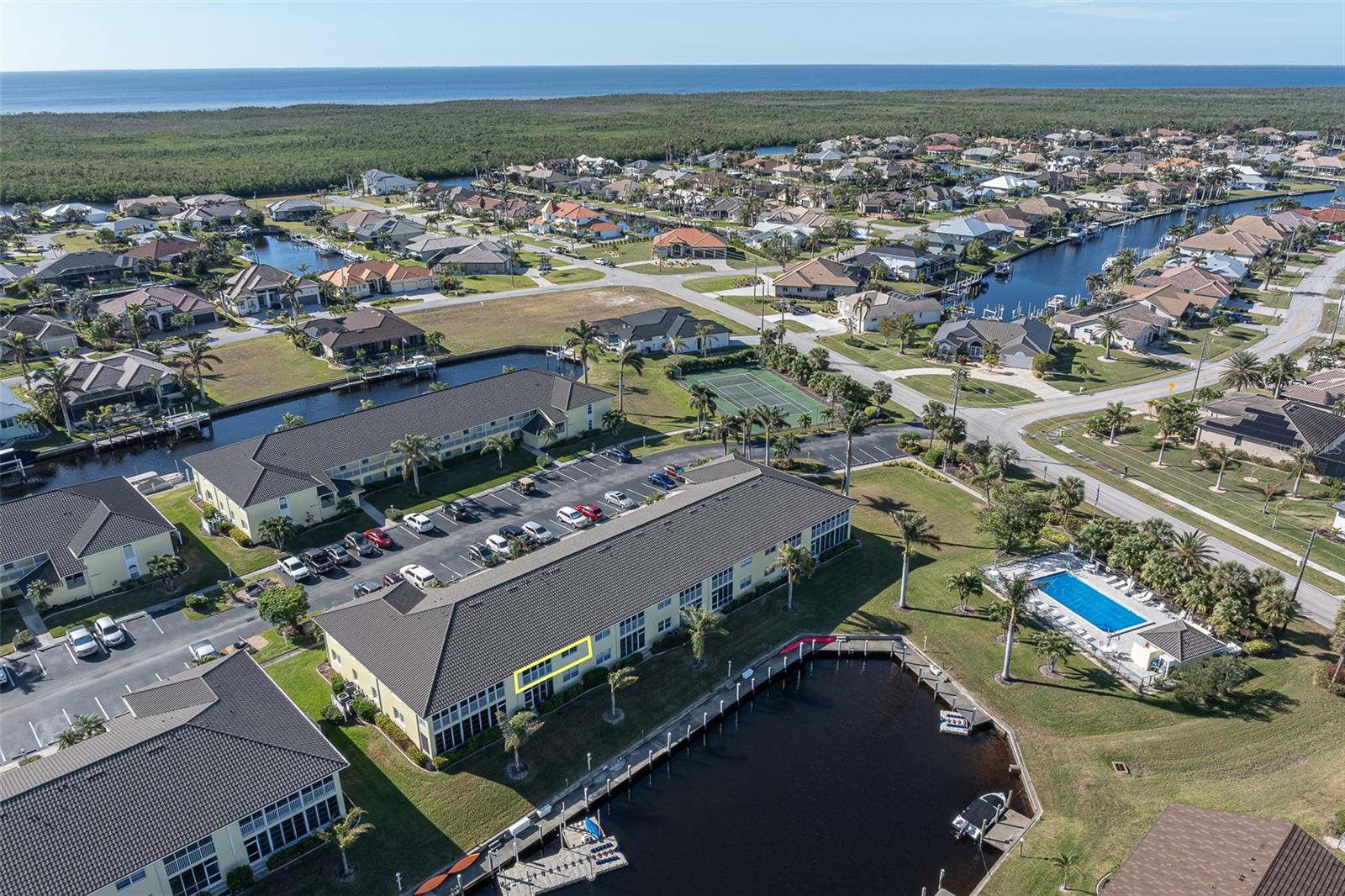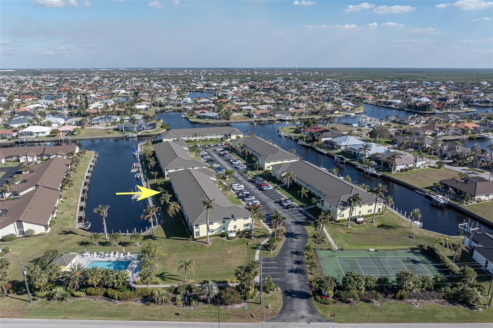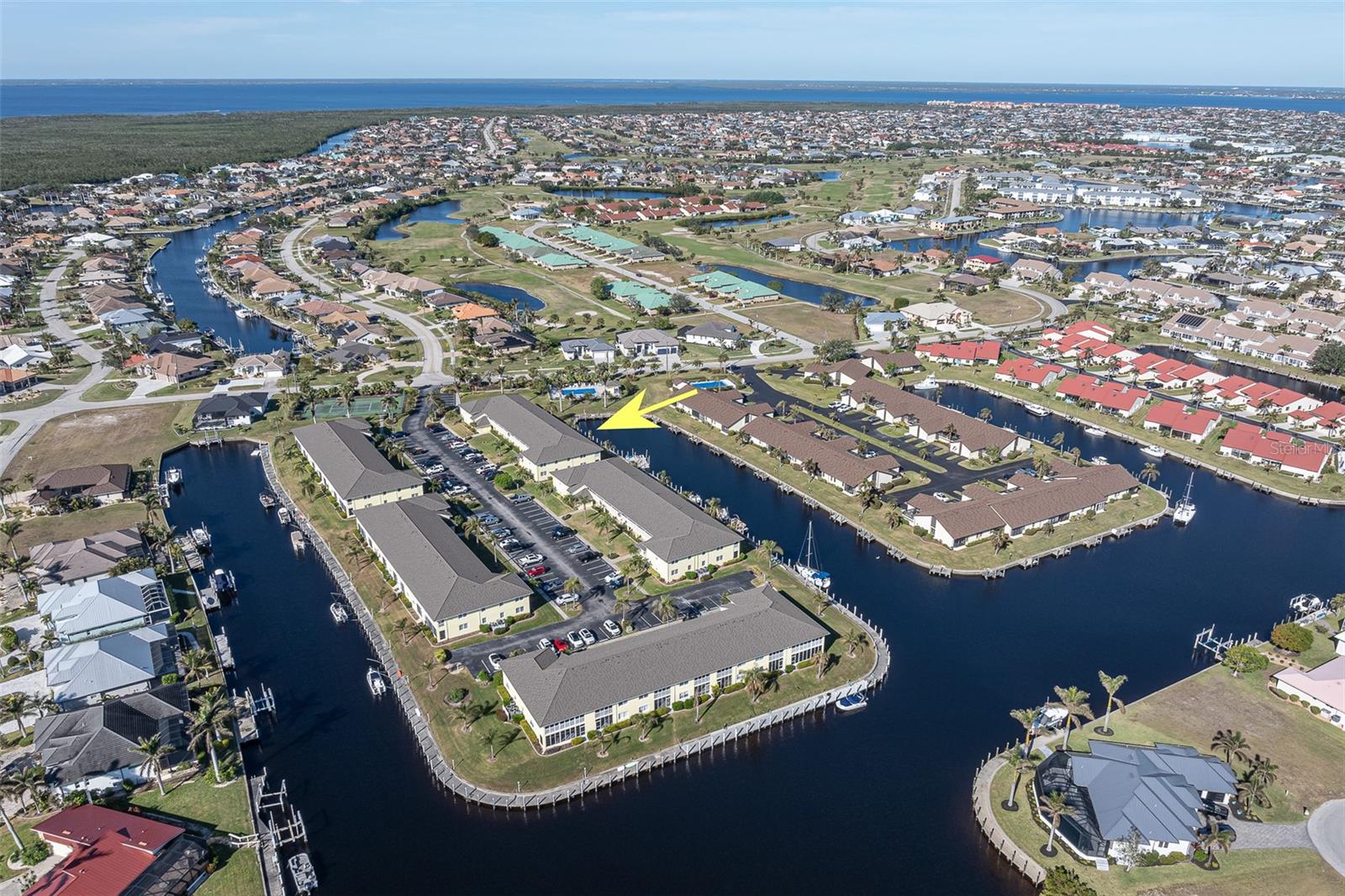 PERFECT WATERFRONT CONDO IN PGI! Check out this spacious & updated 2 bed/2 bath, top-floor unit at Spinnaker Point in Punta Gorda Isles w/wonderful canal view & sailboat access to Charlotte Harbor. CONDO IS BEING SOLD TURNKEY (FULLY FURNISHED w/minor exclusions of personal items). Arrive with just your suitcase & nothing more is needed. Docks are available on 1st come, 1st serve basis and can accommodate boats up to 34 feet - at time of listing, dock space is available. Unit features open floor plan w/a combination formal living room & dining room plus large bedrooms and a private, screened lanai overlooking the docks & canal below. Wood-look, plank tile flooring has been installed throughout the condo. Other architectural details include soaring cathedral ceilings, a screen door & large picture windows. The updated kitchen features granite counters, Shaker-style cabinetry & stainless-steel appliances plus abundant cabinet & counter space including a pantry & breakfast bar. The large laundry room has full-sized washer & dryer & additional overhead storage shelves. The master suite has an oversized walk-in closet & an updated en-suite master bath w/quartz counters & walk-in shower. Guest bedroom is located opposite the beautifully updated guest bath. Lanai features tile floors & screens w/vinyl panels for year-round use. Spinnaker Point is comprised of 70 units. The association boasts NEW ROOFS on all buildings, low monthly maintenance fees, and nearly 1,500 feet of seawall. Condo amenities include a tennis court, heated pool & wraparound dock that is just waiting for your boat or kayak. Located across the street from St. Andrews Golf Course - you choose boating from your backyard or hitting the links out the front door. This condo has everything you need to enjoy the Florida lifestyle. Miles of sidewalks allow you to connect w/the whole of Punta Gorda Isles, numerous local parks, Fishermen's Village, Isles Yacht Club & even historic downtown. Punta Gorda also boasts a lively music & art scene w/live music & art exhibits/fairs frequently found around town. Come find out why Punta Gorda is often voted one of the best places to live, work & retire in Florida. Make an appointment today. Condo is ideal as a full-time residence, winter retreat or investment opportunity.