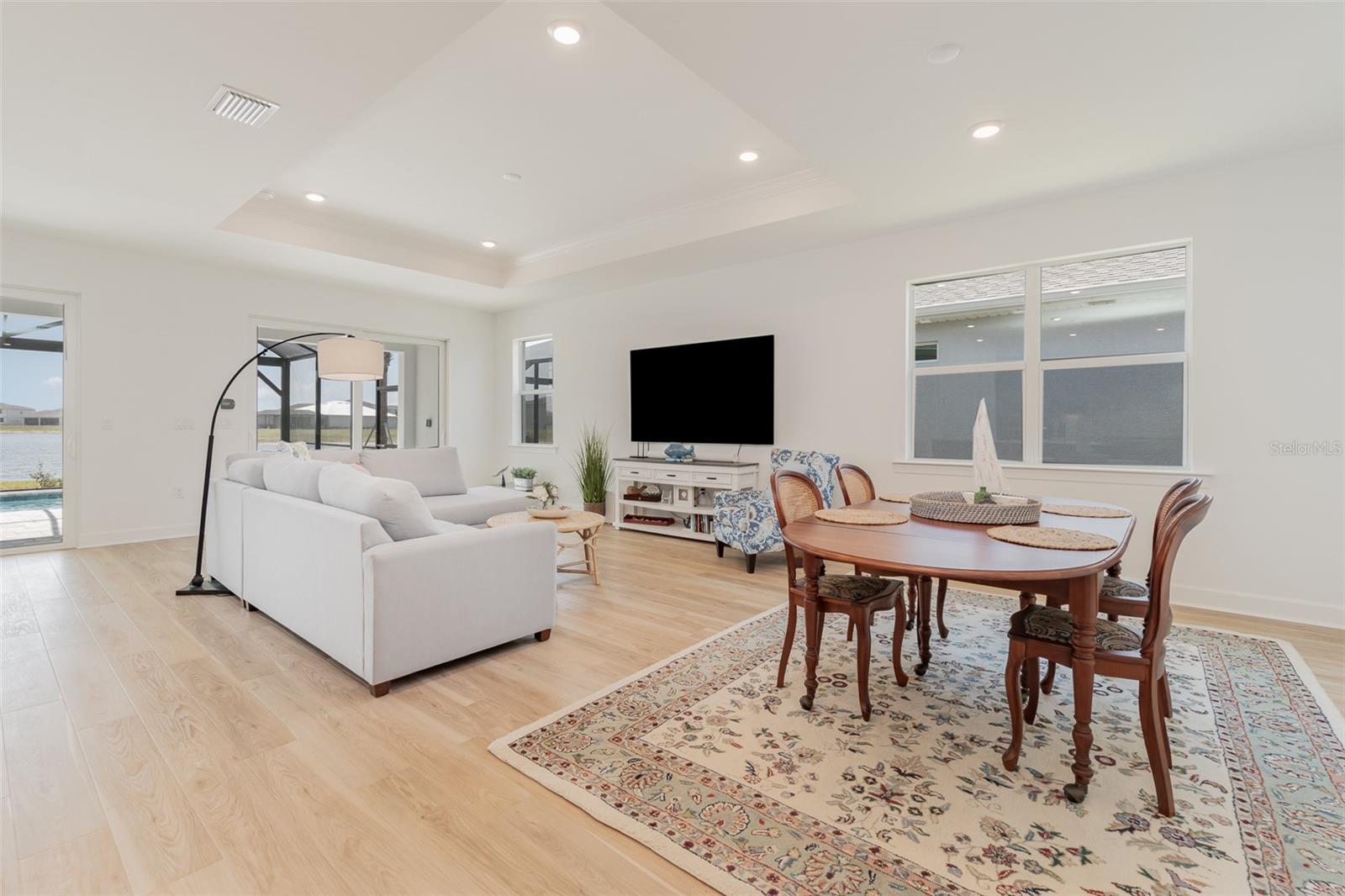 Luxurious Lakeview Oasis in Babcock Ranch Nestled on a premium $90,000 lot, this stunning 3-bedroom plus den, 2-bath home is the epitome of lakeside luxury living. Offering breathtaking panoramic views of the serene lake, this exceptional residence combines elegance, comfort, and modern convenience. With a custom heated saltwater pool and extended lanai, it is the perfect retreat for both relaxation and entertaining. As you step inside, you'll be greeted by an open-concept floor plan that flows seamlessly, adorned with high-end finishes and upgrades throughout. The expansive living area features an upgraded extended gathering room, tray ceiling, and large glass sliding doors that invite natural light and showcase the stunning lake and pool views. The home boasts luxurious vinyl plank flooring throughout, creating a sleek, modern aesthetic that complements the spacious design. The chef-inspired kitchen is a true masterpiece, featuring top-of-the-line built-in appliances, designer cabinets and hardware, and a stylish upgraded backsplash. Whether you're preparing a gourmet meal or enjoying casual dining, the adjacent dining area provides an ideal space for family gatherings or entertaining guests. The private primary suite is a tranquil retreat, offering panoramic lake views through large windows and a tray ceiling that adds to the room's spacious feel. The en-suite bath features a generous-sized spa shower, dual sinks, and a large walk-in closet – a perfect sanctuary for relaxation. Two additional bedrooms and a full bath offer plenty of space for family and guests, while the versatile den provides options for a home office, playroom, or reading nook. Outside, the extended lanai with picture window screens offers an idyllic outdoor living experience. It's prepped for an outdoor kitchen and is the perfect spot for alfresco dining, lounging by the pool, or soaking in the peaceful lake views. The home also features an upgraded 4-foot extension in the 2-car garage, providing additional space for storage or larger vehicles. Living in Babcock Ranch means access to a wealth of world-class amenities, including community pools, pickleball and tennis courts, nature trails, multiple boat ramps, dog parks, and more. Experience weekly live concerts, Food Truck Fridays, farmers markets, and a vibrant social calendar all within this sustainable, solar-powered community. This is more than a home—it's a lifestyle. Don’t miss your chance to own this lakeside gem in NorthRidge, Babcock Ranch. Schedule your private showing today and experience the ultimate in luxurious living.