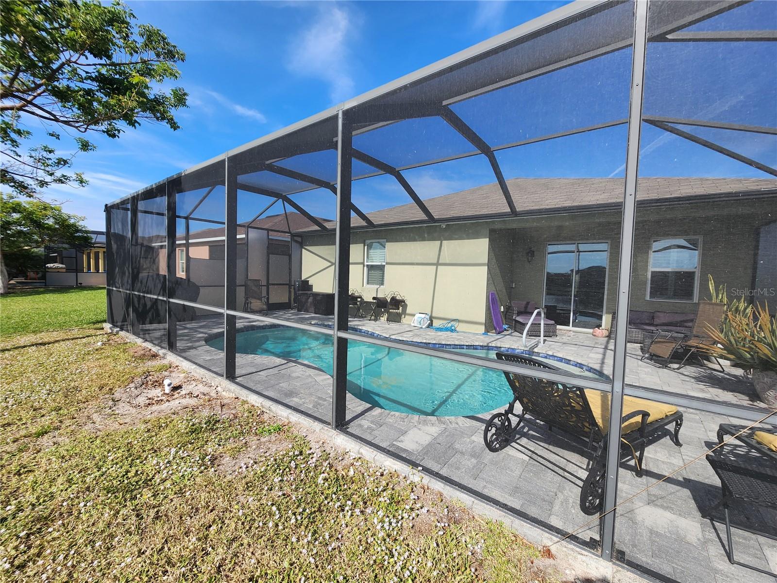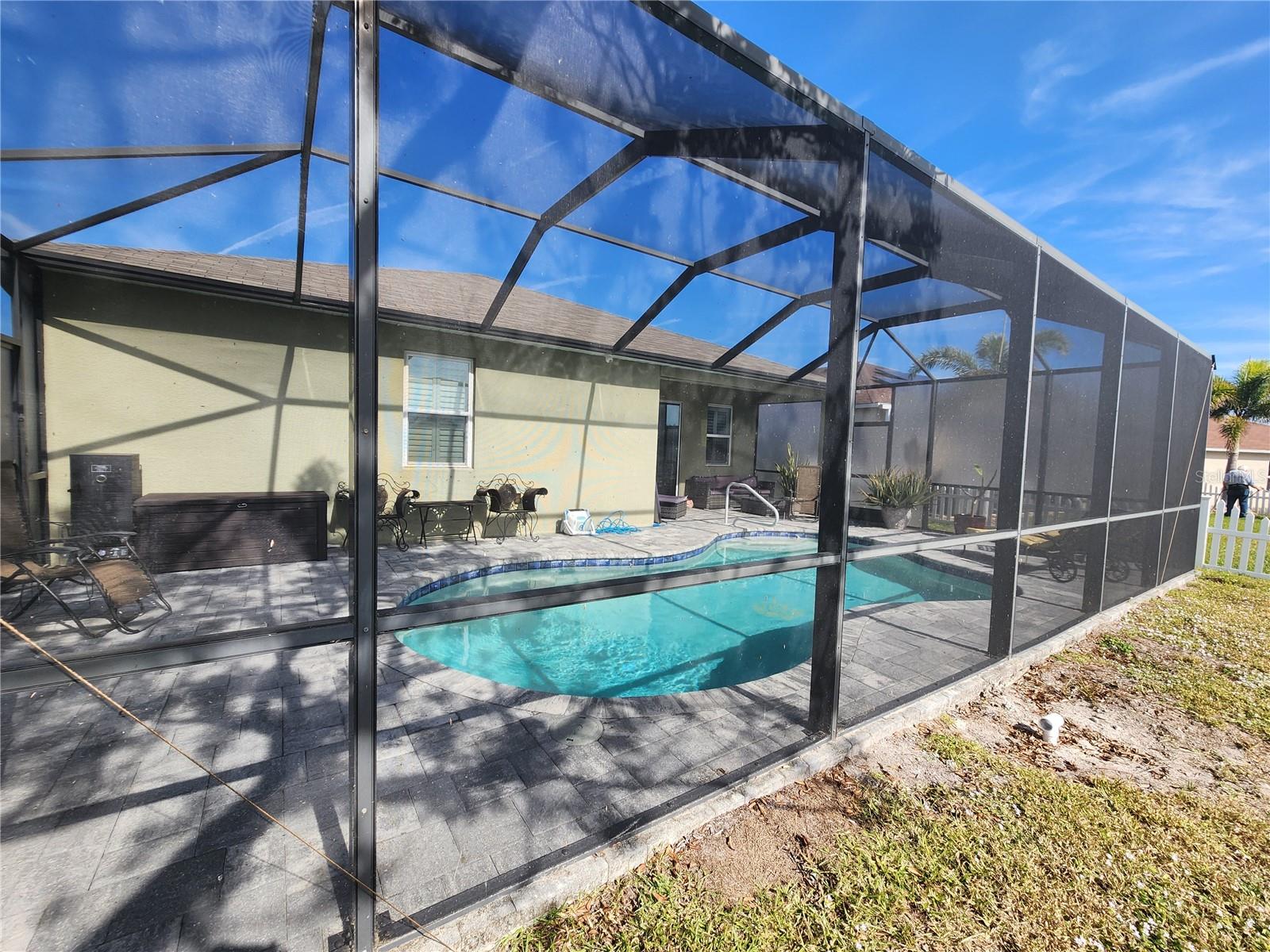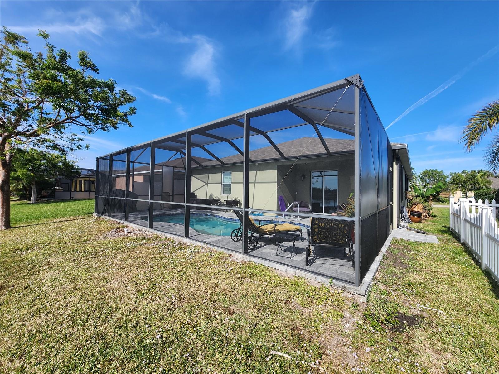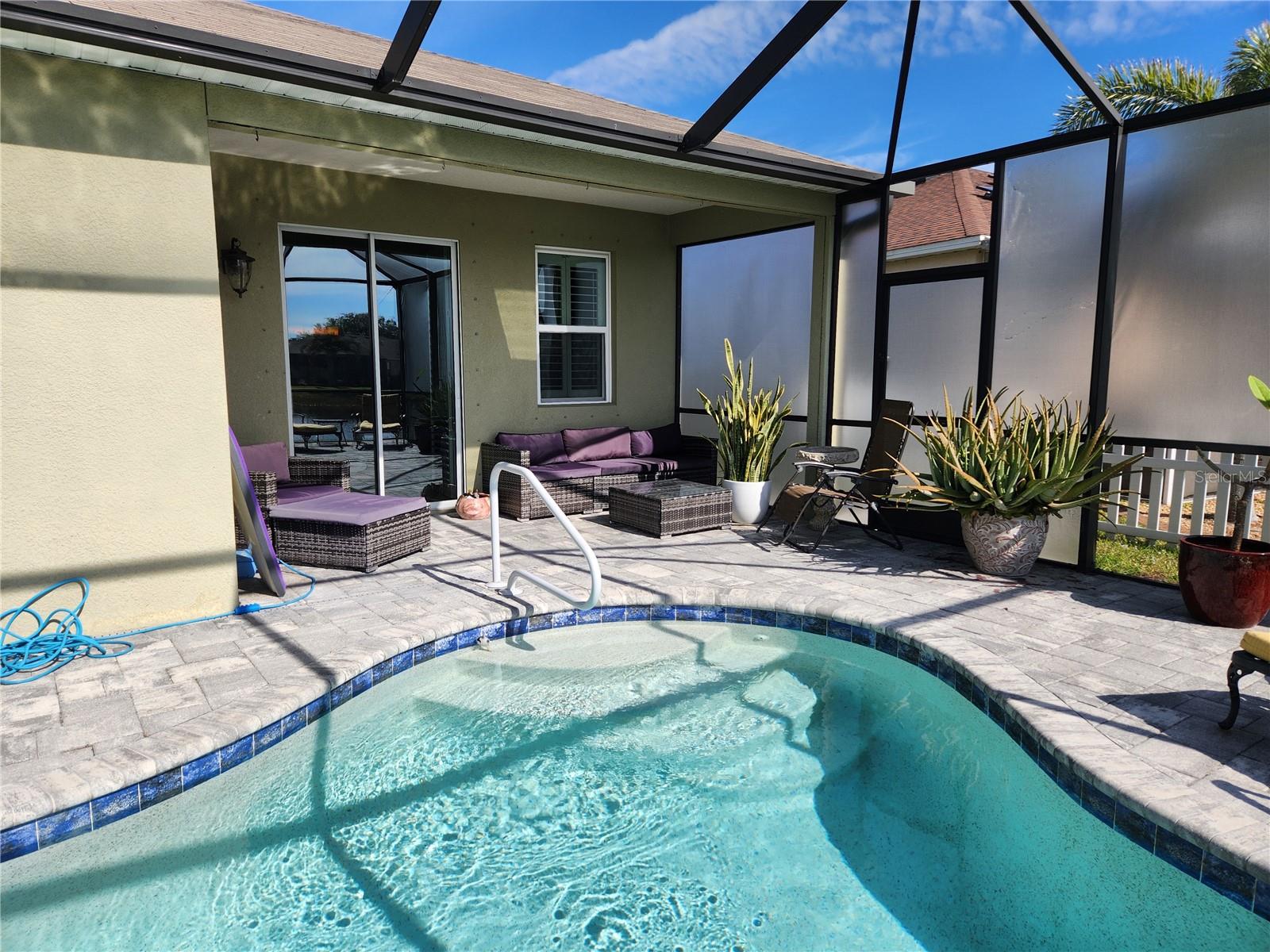 CreekSide – 4 Bedroom / 2 Bathroom with Heated Pool on a Lake. Very well kept & maintained; move-in ready. Tile floors throughout the entire home, beautiful kitchen and an open floor plan. Many upgrades including high ceilings (9’), plantation shutters on all windows, 4-camera CCTV security system, irrigation system and an ultra-efficient state-of-the-art hybrid water heater. The split floor plan has the master bedroom in the rear looking out over the lake. It features a large walk-in closet and bathroom with both a shower and tub and vanity with dual sinks. Two-car garage with hanging storage, screened entry way and a screen enclosed heated pool with a covered lanai. No damage or flooding from hurricanes Ian, Helene or Milton. Not in a flood zone so flood insurance is not required.
