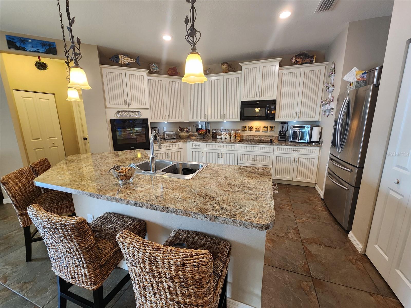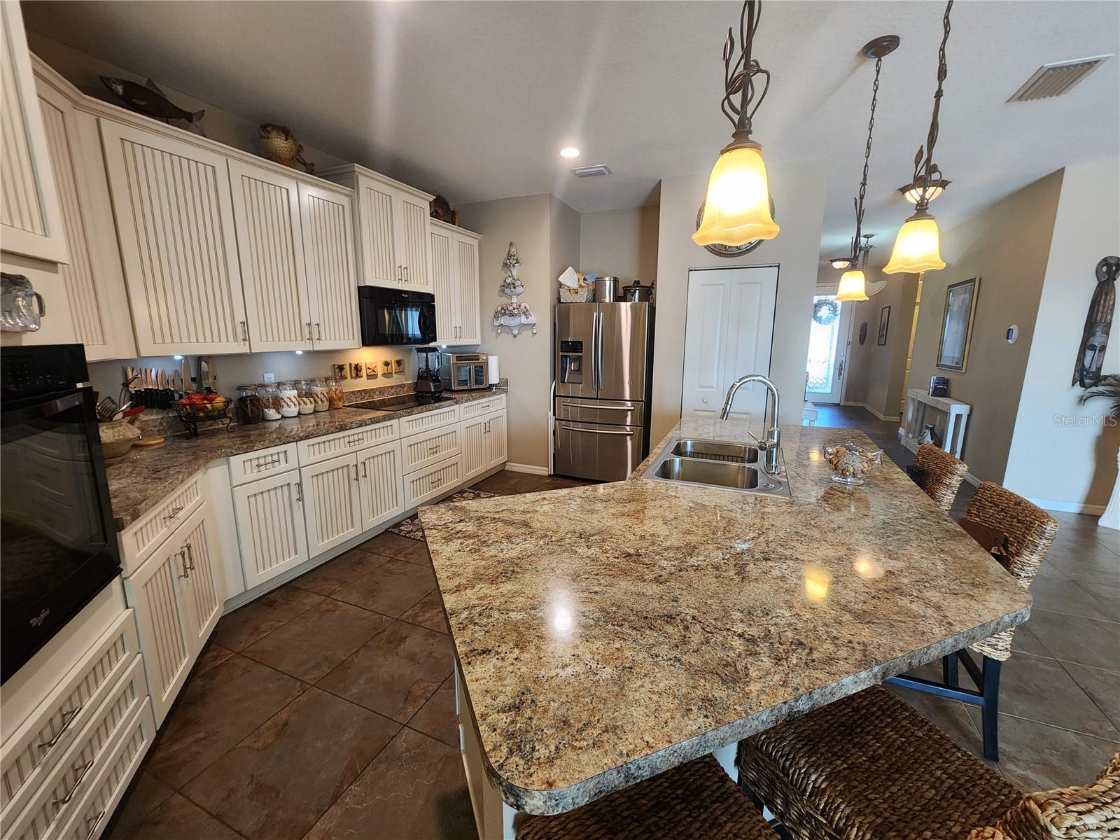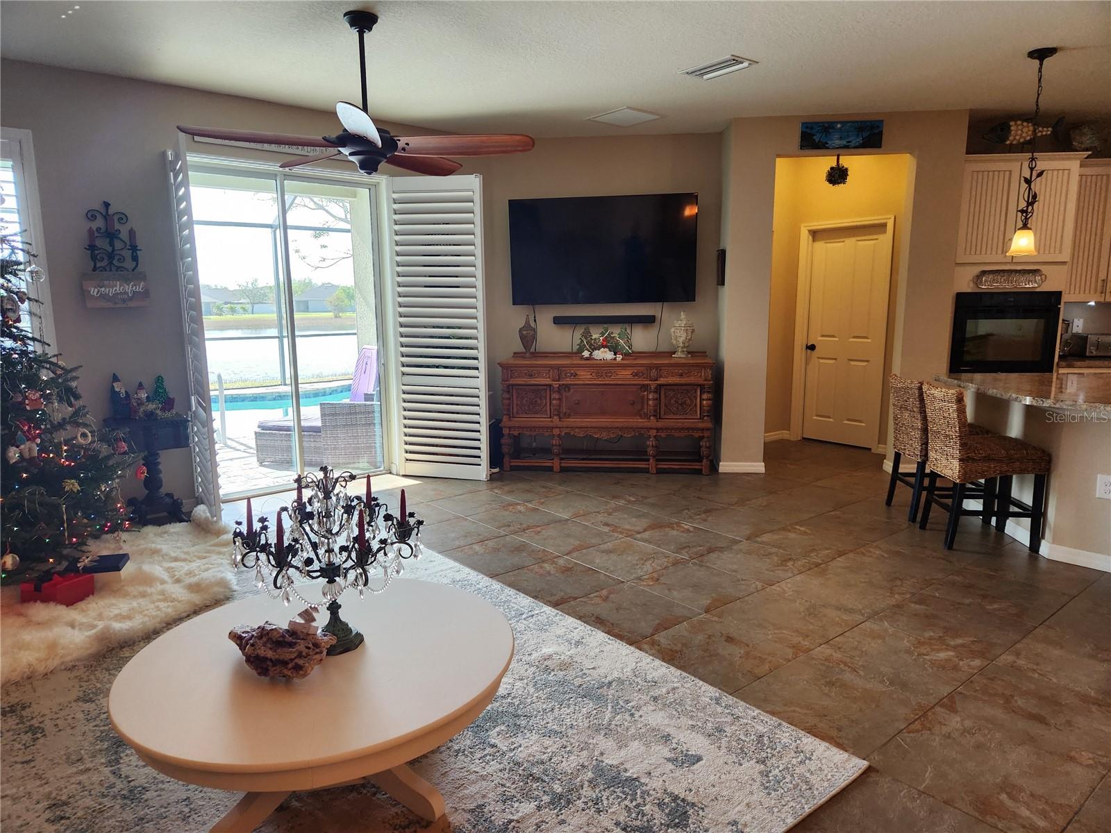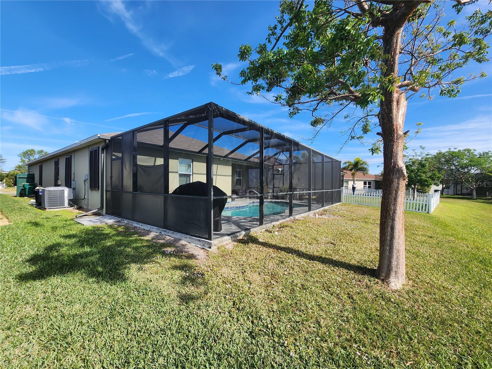 CreekSide – 4 Bedroom / 2 Bathroom with Heated Pool on a Lake. Very well kept & maintained; move-in ready. Tile floors throughout the entire home, beautiful kitchen and an open floor plan. Many upgrades including high ceilings (9’), plantation shutters on all windows, 4-camera CCTV security system, irrigation system and an ultra-efficient state-of-the-art hybrid water heater. The split floor plan has the master bedroom in the rear looking out over the lake. It features a large walk-in closet and bathroom with both a shower and tub and vanity with dual sinks. Two-car garage with hanging storage, screened entry way and a screen enclosed heated pool with a covered lanai. No damage or flooding from hurricanes Ian, Helene or Milton. Not in a flood zone so flood insurance is not required.