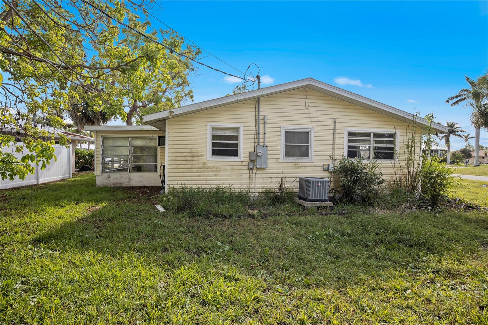 INVESTOR SPECIAL!! 2 Bedroom, 1.5 bathroom home with a Florida room situated on a corner lot in the heart of Punta Gorda. NO HOA FEES! The home did have water intrusion from Hurricane Helene and some remediation has been completed including a 4ft removal of drywall. Complete this home and make it your DREAM home! The living room is spacious and flows to the EAT-IN Kitchen. The kitchen upper cabinets are still useable. The master bedroom has a built-in closet and a private half bathroom. The guest room has a built-in closet and shares the full bathroom nearby. The Florida room has jalousie windows, laundry closet and a wall-unit A/C. The backyard has a storage shed for storing all your lawn and garden tools. 2023 ROOF! Enjoy all the amenities that Punta Gorda has to offer such as biking, fishing, boating, dining, live entertainment, and much more! Close to Fisherman's Village, Ponce De Leon Park, Gilchrist Park, and Historical Downtown Punta Gorda. Just a short car ride to award-winning beaches! Schedule your showing TODAY!