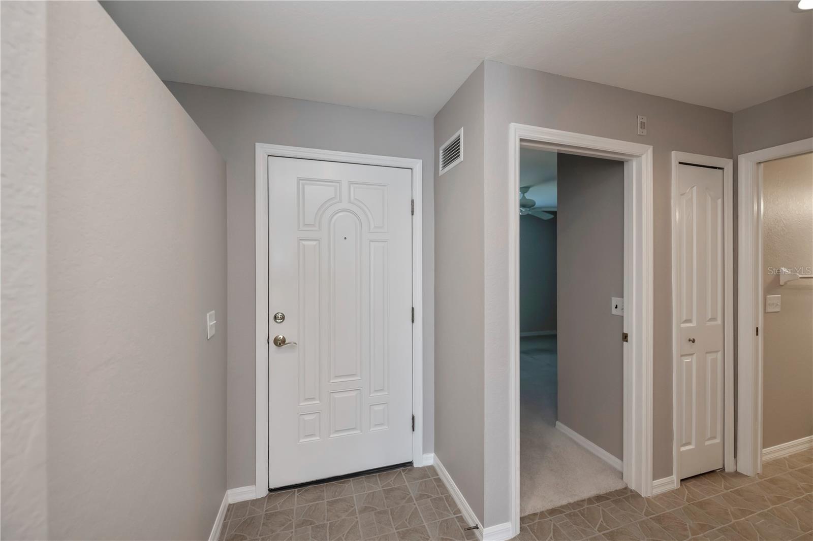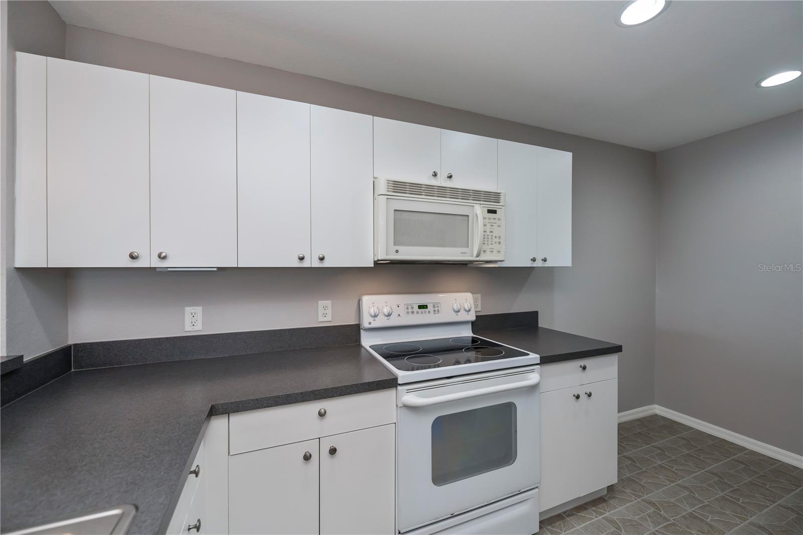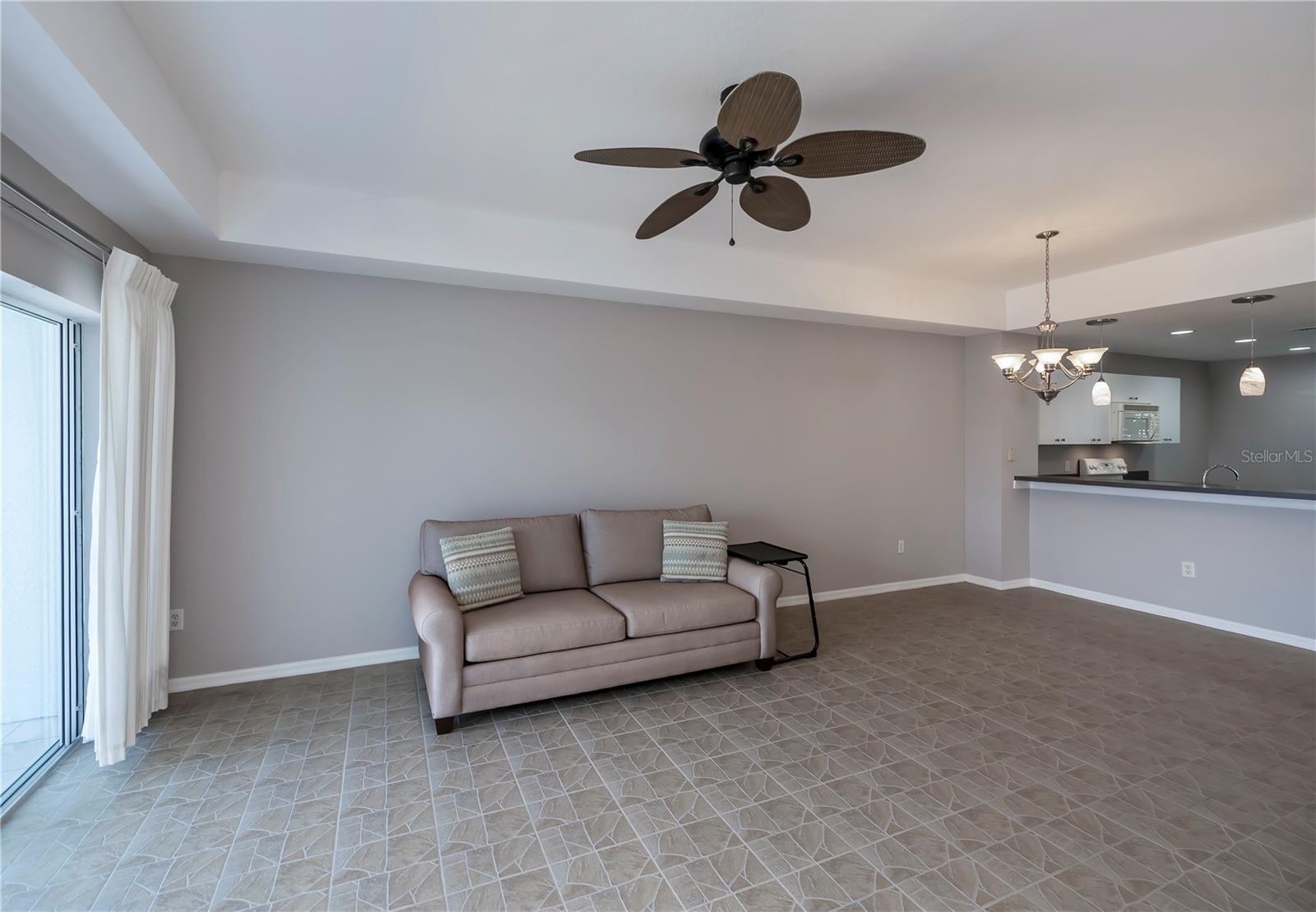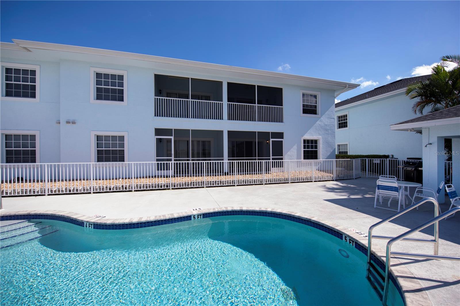FIRST FLOOR, LAKE VIEW, END UNIT 2/2 PLUS French doors DEN condo with spectacular lake view! Sensational sunset views over the lake. Both bedrooms feature carpeting, with tile floor elsewhere. SUPER open floor plan with a spacious kitchen with built-in wall pantry and breakfast bar in this split bedroom floor plan. Volume ceilings and a tray ceiling in the great room and primary ensuite bedroom add to the attraction of this home. Assigned covered parking in front of your home AND a private exterior storage closet add to the appeal of this lakefront beauty. A centrally located heated pool is just steps away. Deep Creek Golf Course is open to the public is just down the street! Community playground, tennis, basketball & more are around the corner as is a waterfront county park with picnic pavilions, lighted tennis, basketball, shuffleboard, majestic oaks with picnic tables. Shopping, restaurants, workout gym, cultural venues, beaches are nearby. Call today for your year-round or winter retreat opportunity in this well-maintained, intimate condo community.