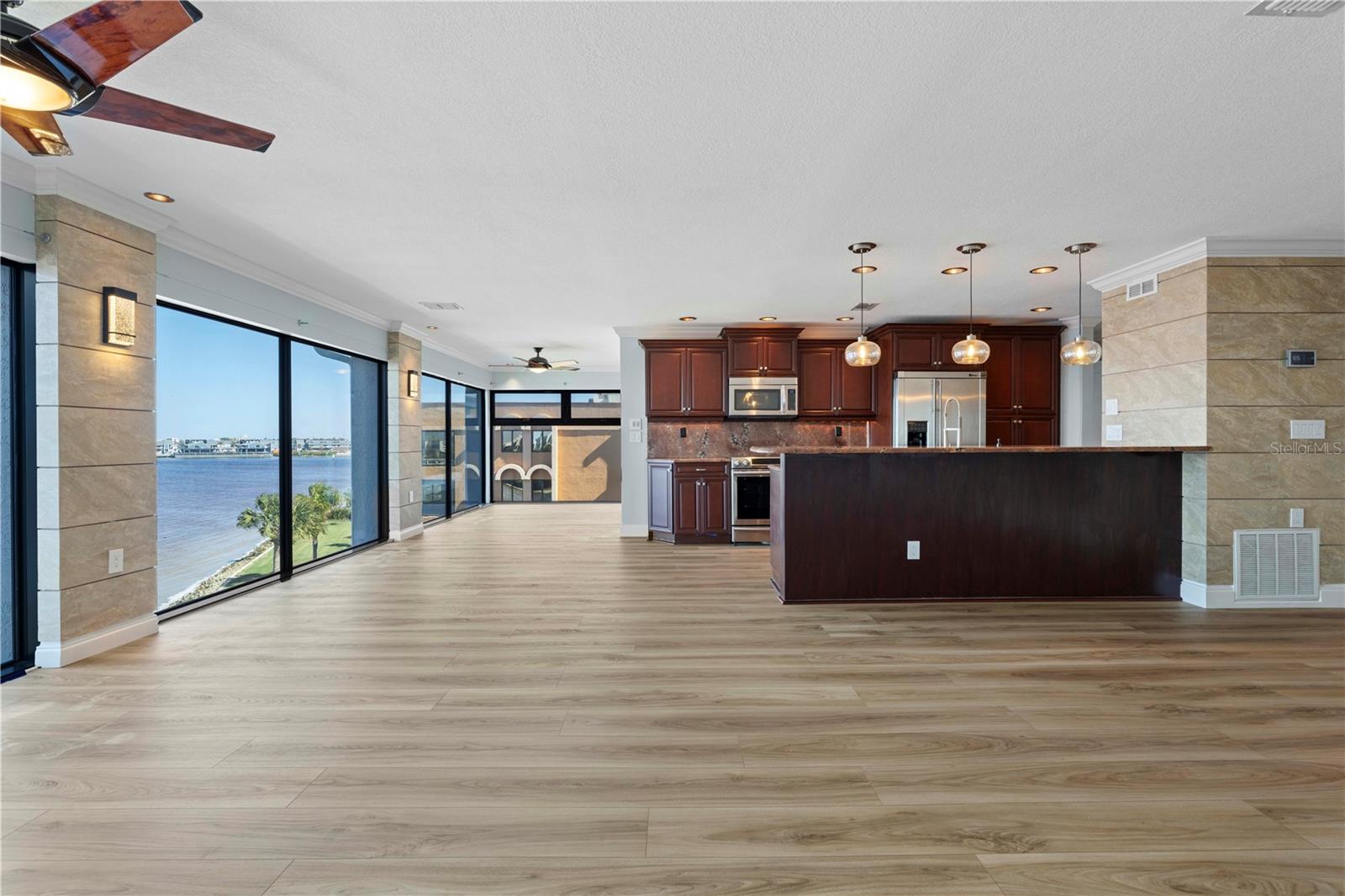 FRONT ROW SEATS TO CHARLOTTE HARBOR! Enjoy full harbor views courtesy of a wall of NEW, IMPACT-RESISTANT, FLOOR-TO-CEILING windows along the entire back of the unit. This spacious 3 bed/2 bath condo at Champagne Estates in Punta Gorda Isles offers approximately 2,200 sq ft of living space w/an open layout & spectacular water views. ALL NEW WOOD-LOOK LUXURY VINYL PLANK FLOORING found throughout the main living areas & guest bedrooms. Tile in master bedroom, bathrooms & laundry room. Architectural details include screened front lanai leading to double door entry, inviting foyer, game room/formal dining area, crown molding, a gourmet kitchen, large bedrooms & lots of closet storage. The main living area is divided into the living/great room area & a game room (or formal dining area) w/room for a full-sized pool table. Great room has a decorative fireplace. The kitchen boasts granite counters w/breakfast bar, custom cabinets, stainless steel appliances & under cabinet lighting. The master retreat has French doors that open to the harbor view, an oversized walk-in closet & spa-like master bath w/dual sinks and an oversized, glass-enclosed, walk-in shower w/double shower heads. The two guest rooms have plenty of storage space w/one of them offering a corner storage bench. Interior laundry room has Whirlpool Duet HE washer & dryer on pedestals plus a utility sink and wall-mounted ironing board. Picture yourself overlooking the harbor & enjoying the boats and aquatic activity that happen below. Unit has hurricane protection w/impact-resistant windows & roll-down shutter on front lanai. Condo association is pet friendly. Condo amenities include one, assigned, underbuilding parking space, adjacent storage room, ample guest parking, elevator, stand-alone clubhouse plus an in-ground heated pool & spa. Condo Association is fully funded and always working to improve the complex - swimming pool has just been resurfaced, tiled and equipment is in place to convert to a salt water pool. The poolside club house was recently renovated as well. Champagne Estates is close to everything. It's walking distance to Fishermen's Village, Isles Yacht Club, the new library, Gilchrist Park & historic downtown Punta Gorda. Miles of sidewalks connects you to numerous parks, nature walks & walking/biking trails throughout the city. Condo complex has new roof. Discover your place in paradise. Make an appointment today.