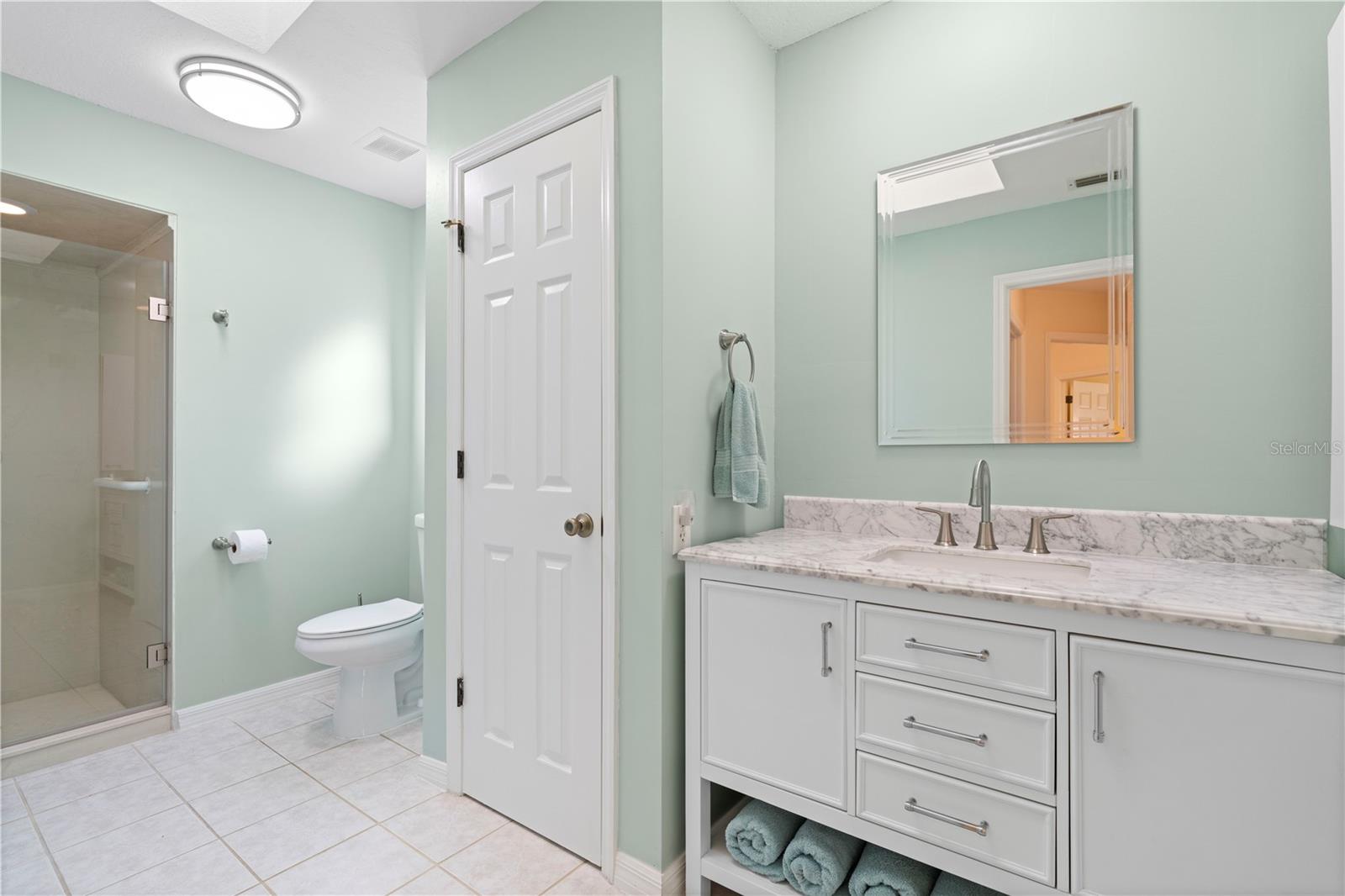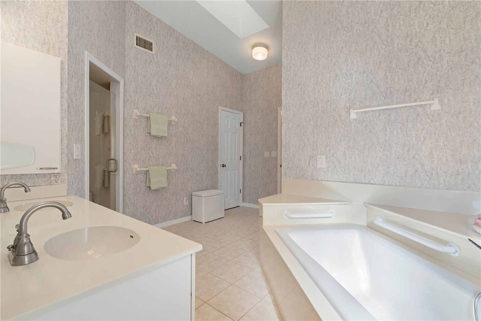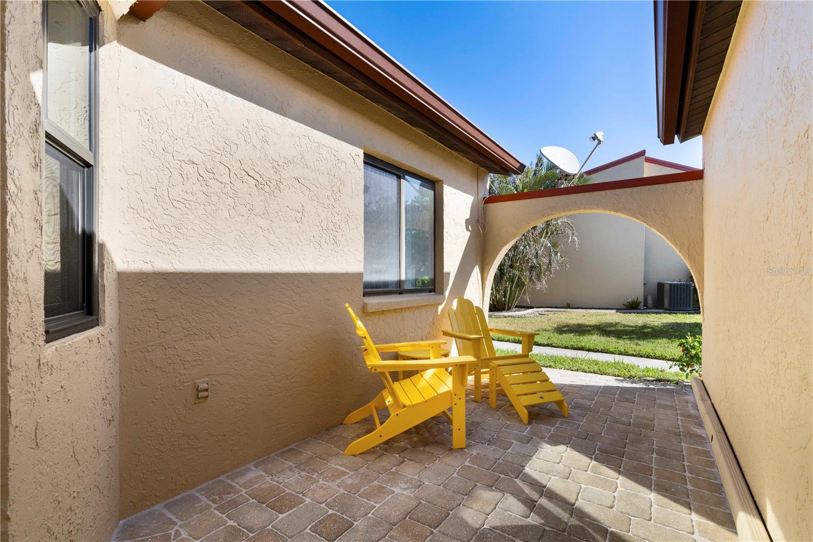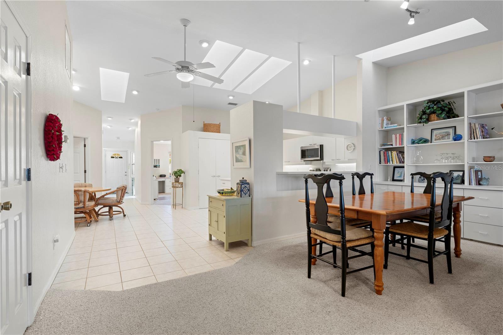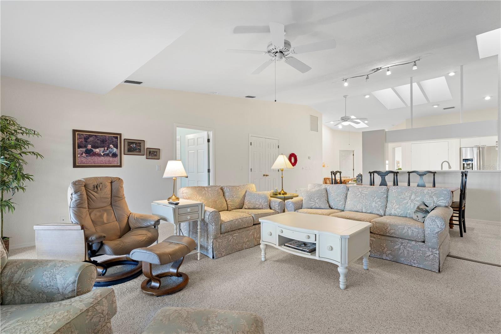 LAKEFRONT VILLA W/**NEW METAL ROOF** AT PARADISE GARDEN VILLAS IN PGI - Spacious, 2,500+ sq ft, 3 bed/2 bath, lakefront villa has a NEW ROOF, NEW SKYLIGHTS, front courtyard & detached two-car garage. Complex is located in the heart of Punta Gorda Isles & is across the street from St Andrews South Golf Club. Enjoy the best of both worlds - relaxing w/lakefront water views or walking across the street for a round of golf with your friends. Interior features include tons of natural light, soaring cathedral ceilings, skylights, spacious kitchen & large, enclosed Florida room w/storage closet. The kitchen boasts solid surface counters, updated appliances, center island, closet pantry as well as under cabinet lighting. Great room is comprised of a large living area & adjacent dining area w/built-in buffet, bookshelf & entertainment center. The master suite has walk-out access to the Florida room w/a fabulous lake view, an oversized walk-in closet including plus an en-suite bath. Master bath has dual sinks, glass-enclosed shower, corner tub & private WC w/linen closet. The two generously sized guest rooms are located at the front of the villa - both have large closets. The guest bath offers a glass-enclosed shower & a linen closet. Interior laundry room has utility sink, full-sized washer/dryer & plus storage shelves. The Florida room has an individual mini-split A/C, built-in bar & boasts walk-out access to the backyard and lakefront viewing pier. Paradise Garden Villas has a park-like setting w/well-maintained tropical landscaping, two in-ground heated pools, a clubhouse, & two lakeside gazebos. Truly paradise found. Make an appointment today.