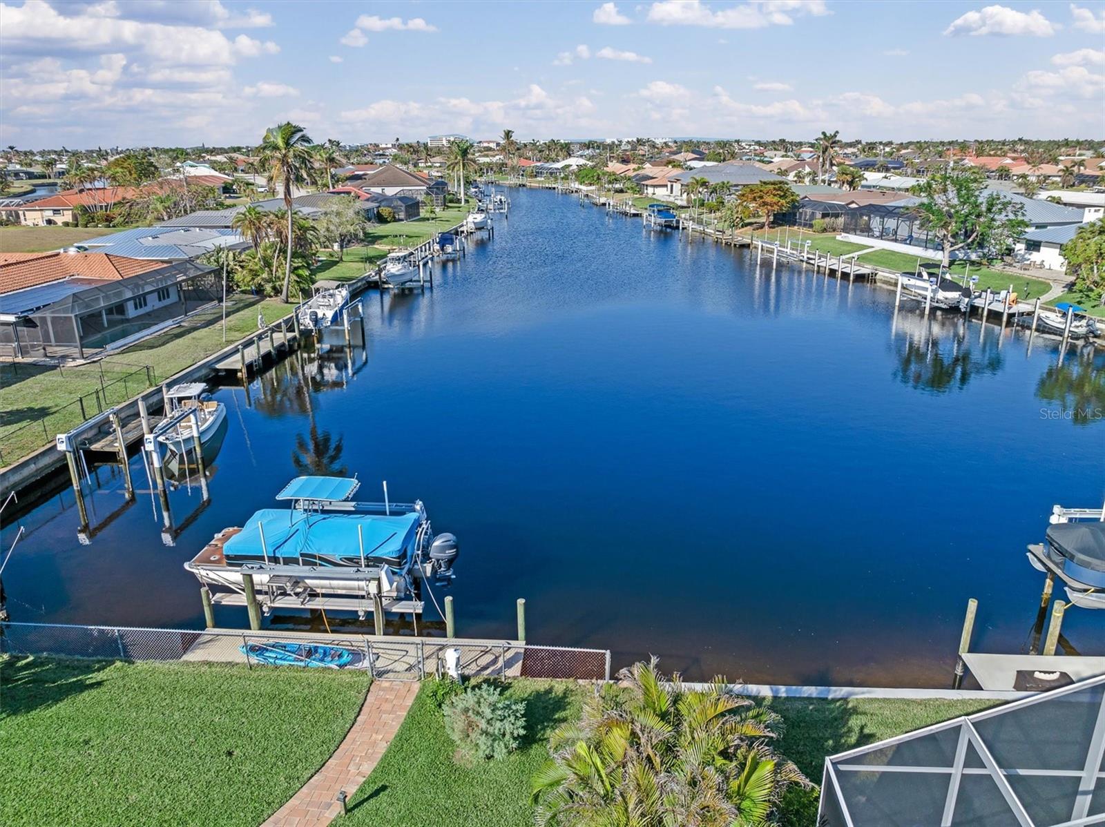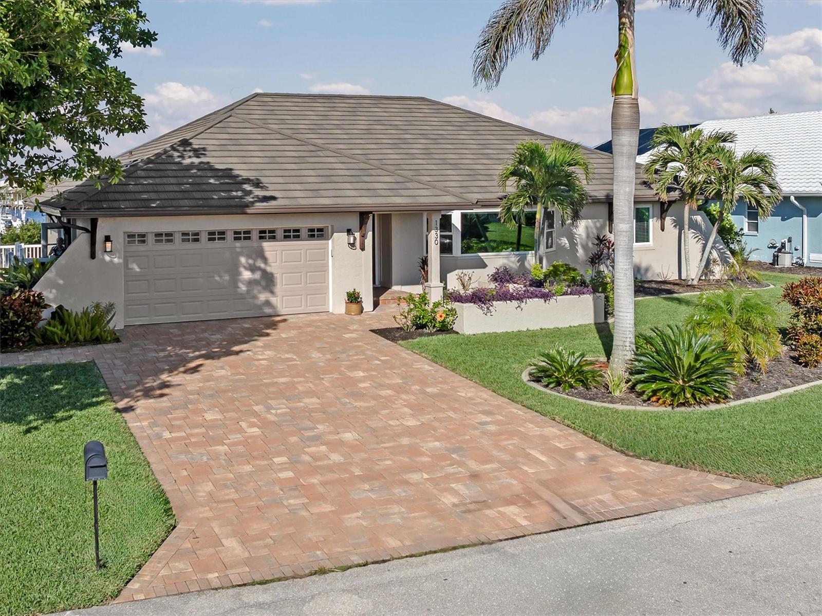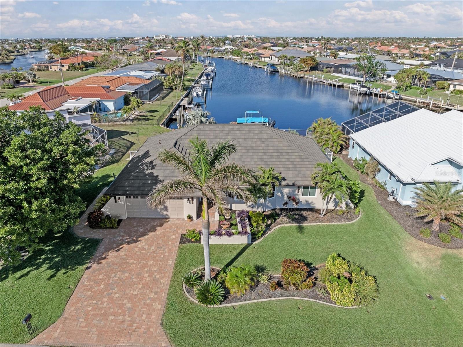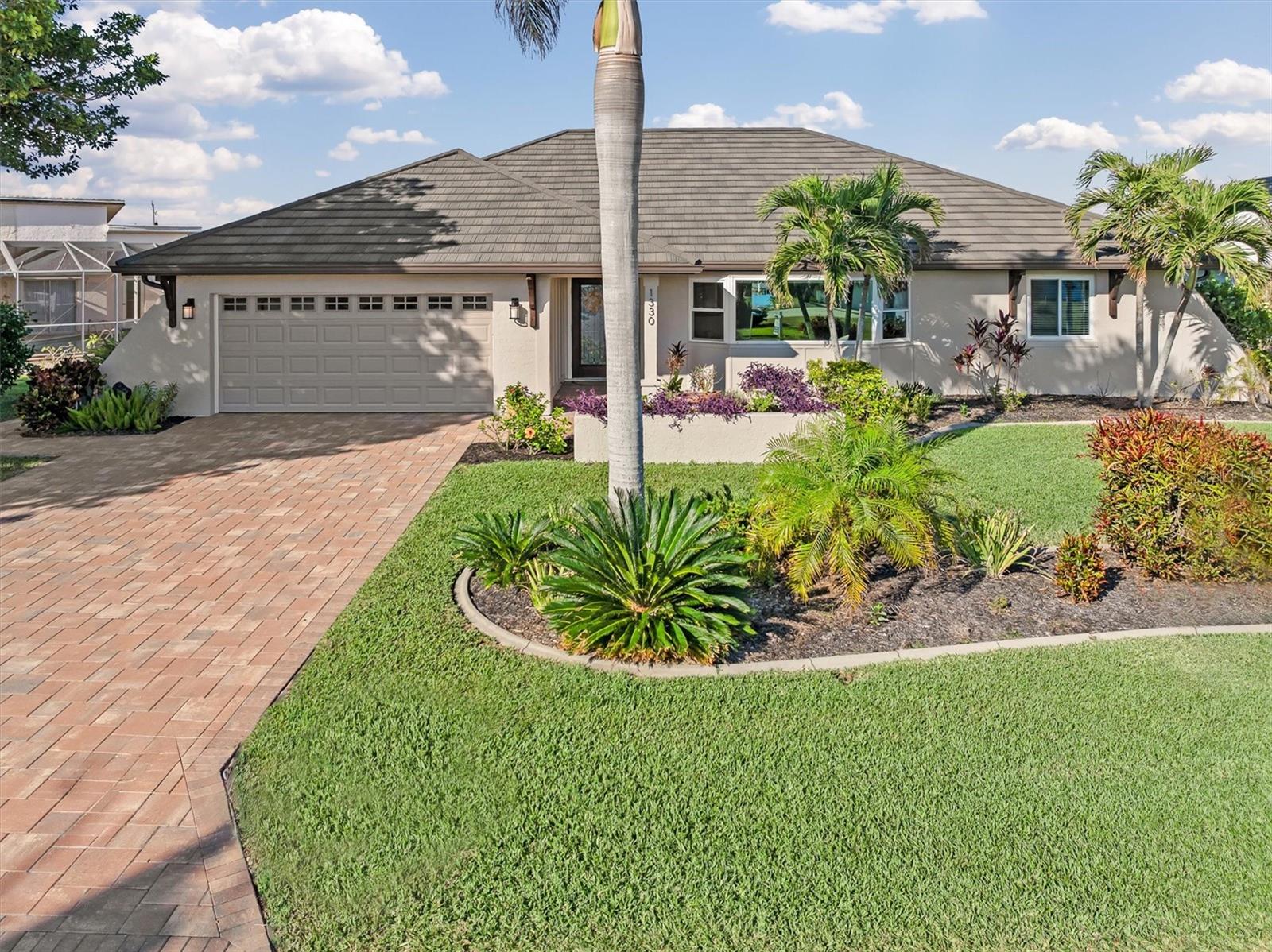 SEE VIRTUAL TOUR 1 FOR WALK-THROUGH AND TOUR 2 FOR 3-D FLOOR PLAN. Exquisite waterfront home in Punta Gorda Isles – completely updated and move-in ready (high and dry, with no damage from recent hurricanes). Featuring an array of modern upgrades, including NEW ROOF, NEW PLUMBING, NEW ELECTRICAL, NEW PAVERS, NEW OUTDOOR KITCHEN, NEW DOCK, NEW GARAGE DOOR/OPENER, NEW IRRIGATION, and NEW INTERIOR AND EXTERIOR LIGHTING, this home offers both elegant functionality and the ultimate in resort-style living. As you arrive, the meticulously landscaped yard greets you with a newly paved driveway and walkway leading to a serene water fountain and quaint garden welcoming you to step inside, where you will find that every detail has been thoughtfully addressed, creating a stylish and inviting space that feels brand-new. The bright and airy living room features a glistening 15-ft bay window, flooding the open floor plan with natural light. Adjacent to the living room, the dining room, two guest bedrooms, and a guest bathroom provide comfort and flexibility for family or guests. The chef-inspired kitchen is a true centerpiece, boasting a breakfast bar, soft-close cabinets, and modern stainless-steel appliances, including a double drop-in stainless sink. The upgraded lighting and fans throughout the home enhance the light and breezy atmosphere. The primary suite, set apart from the guest bedrooms for added privacy, offers tranquil waterfront views and a luxurious ensuite bathroom. Enjoy an extended dual-sink vanity with ample storage, and a walk-in shower designed for relaxation. Unwind in the expansive Florida room and breakfast nook, both overlooking the long canal views. Step outside through hurricane-impact triple sliders to your private outdoor oasis, featuring a 25' x 13' patio with a new custom outdoor kitchen. This space is equipped with a built-in grill, beverage fridge, stainless steel storage, cedar accents, and artistic concrete countertops. Dine under the cedar pergola, soak up the sun, or relax in the shade while savoring the breeze. A paved walkway leads to your 30-ft concrete dock with water, electricity, and an oversized 13,000-lb boat lift stationed alongside more than 60-ft of city-maintained concrete seawall. With quick access to Charlotte Harbor, the Peace River, and the Gulf of Mexico, this home is a boater’s dream. Additional highlights include a spacious laundry room with storage and utility sink, and a custom workshop in the garage. The oversized lot offers ample space for a pool or spa, should you wish to enhance your outdoor experience further. Located in the heart of Punta Gorda Isles, you will be just minutes from Fishermen’s Village, Isles Yacht Club, Ponce and Gilchrist parks, historic downtown Punta Gorda, waterfront dining, and over 18 miles of biking and walking paths. World-class boating, fishing, golfing, and water sports are all at your fingertips, with average winter temperatures in the mid-70s. Easy access to I-75, US-41 and the Punta Gorda Airport, just 15 minutes away, serving over 60 destinations, adds to this property’s appeal. There is room to ADD A POOL, if the buyer so desires. Take advantage of this opportunity to own a truly spectacular waterfront home where every detail has been perfected. PRICED TO SELL, be sure to ask for the Home Features sheet, and schedule your private showing today!